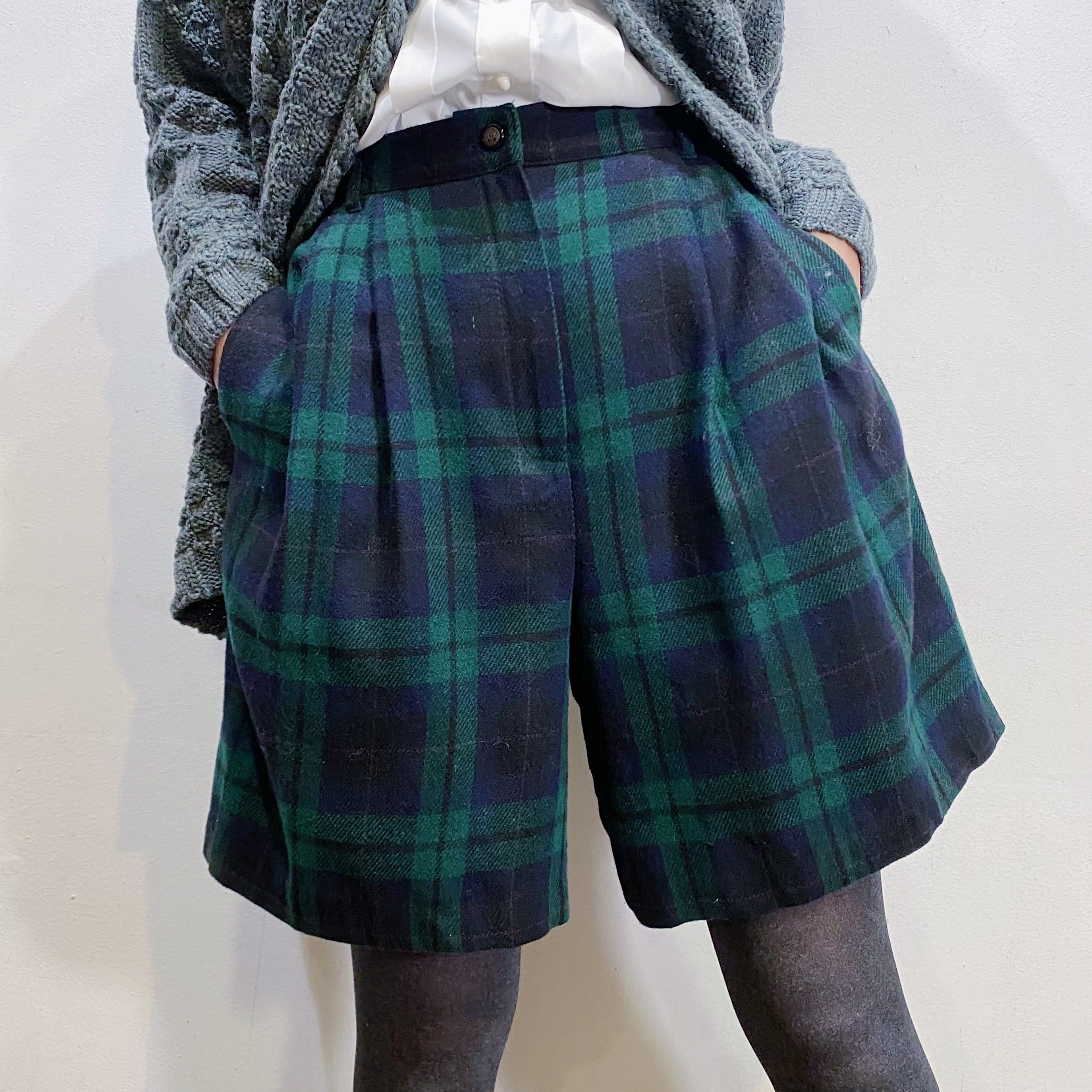 グリーンチェックが可愛い、80年代のショートパンツです。