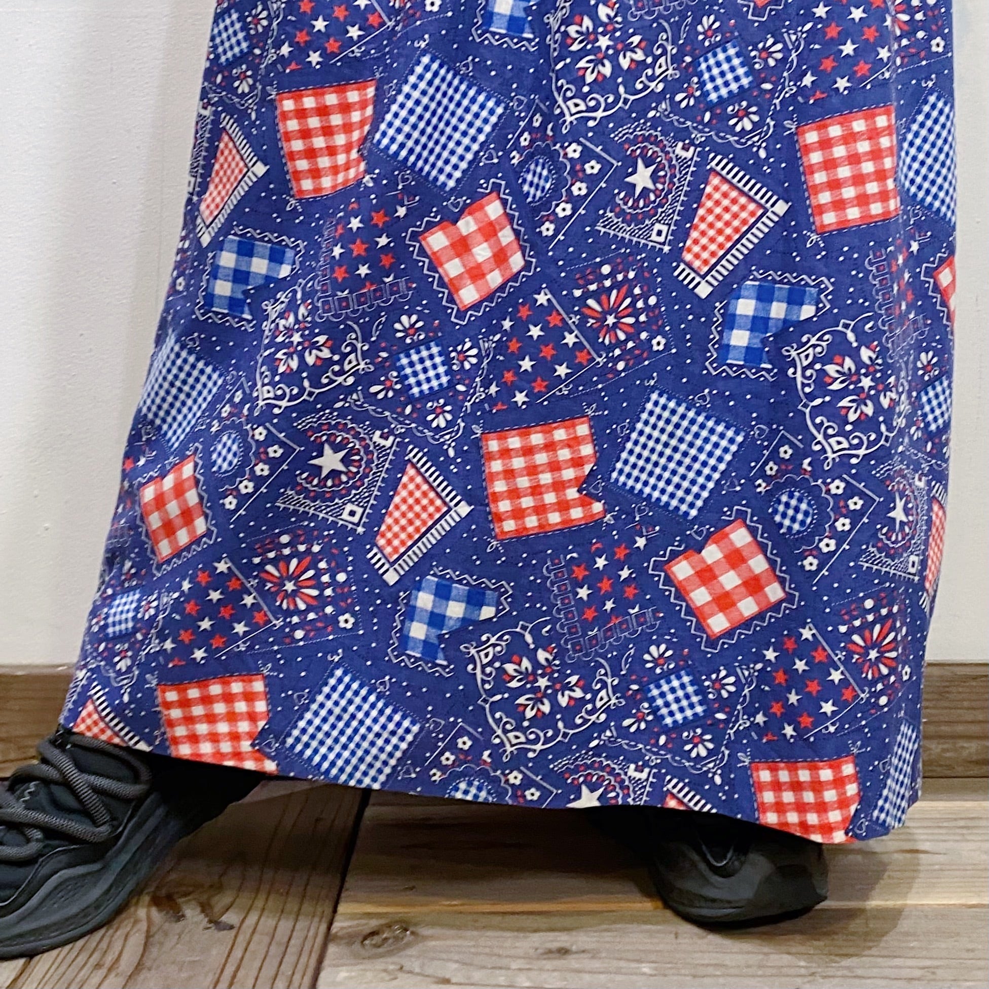 70s bandana printed long dress【1105】