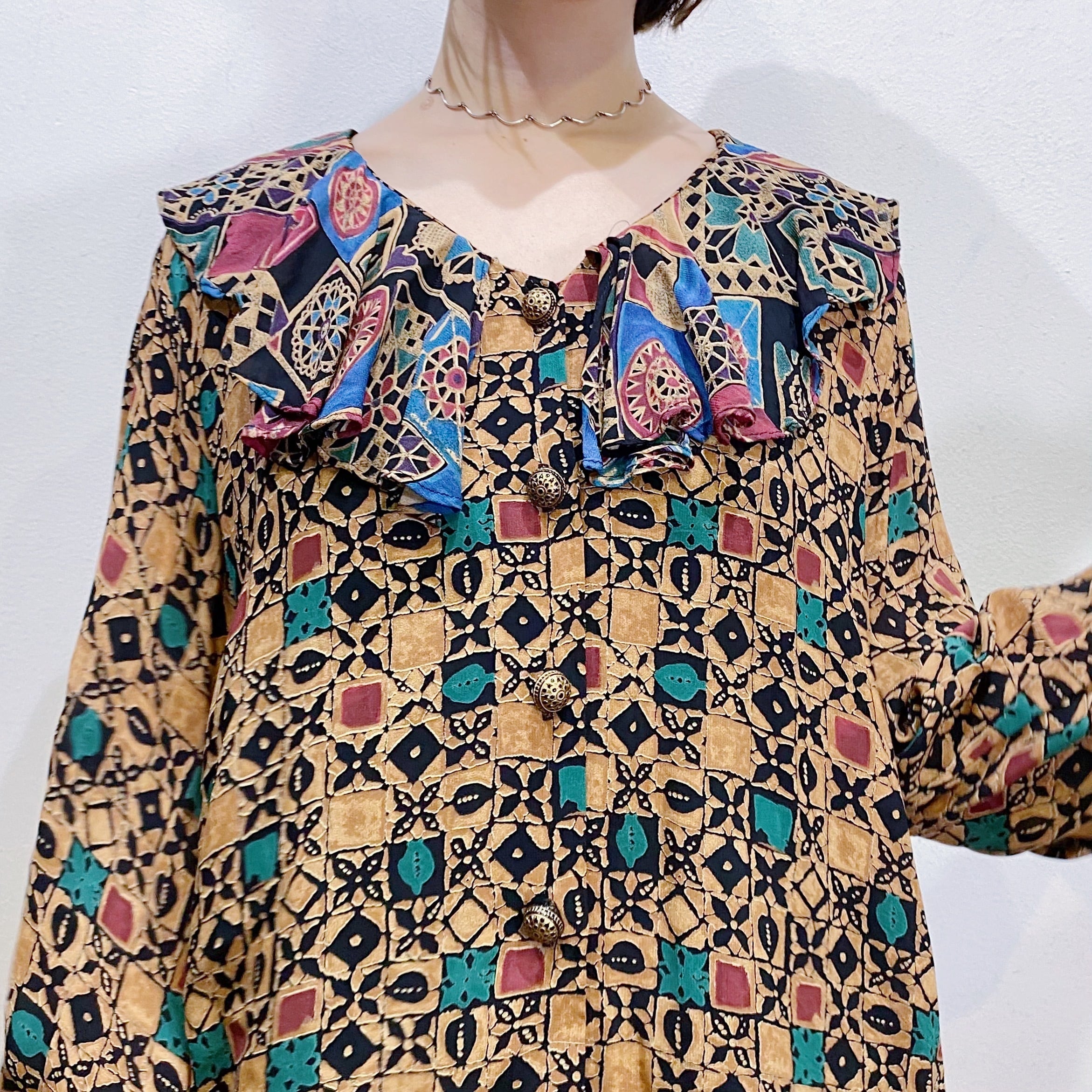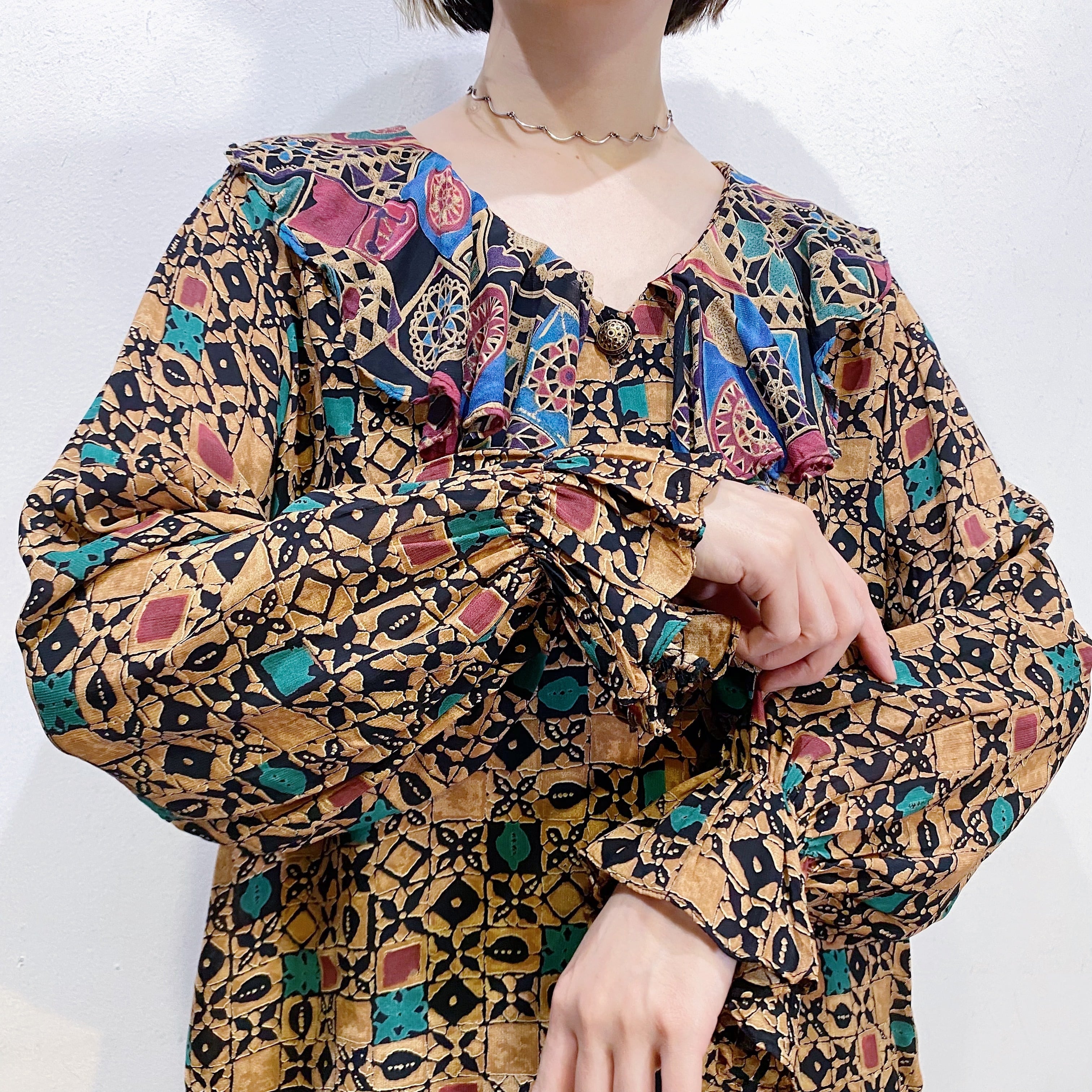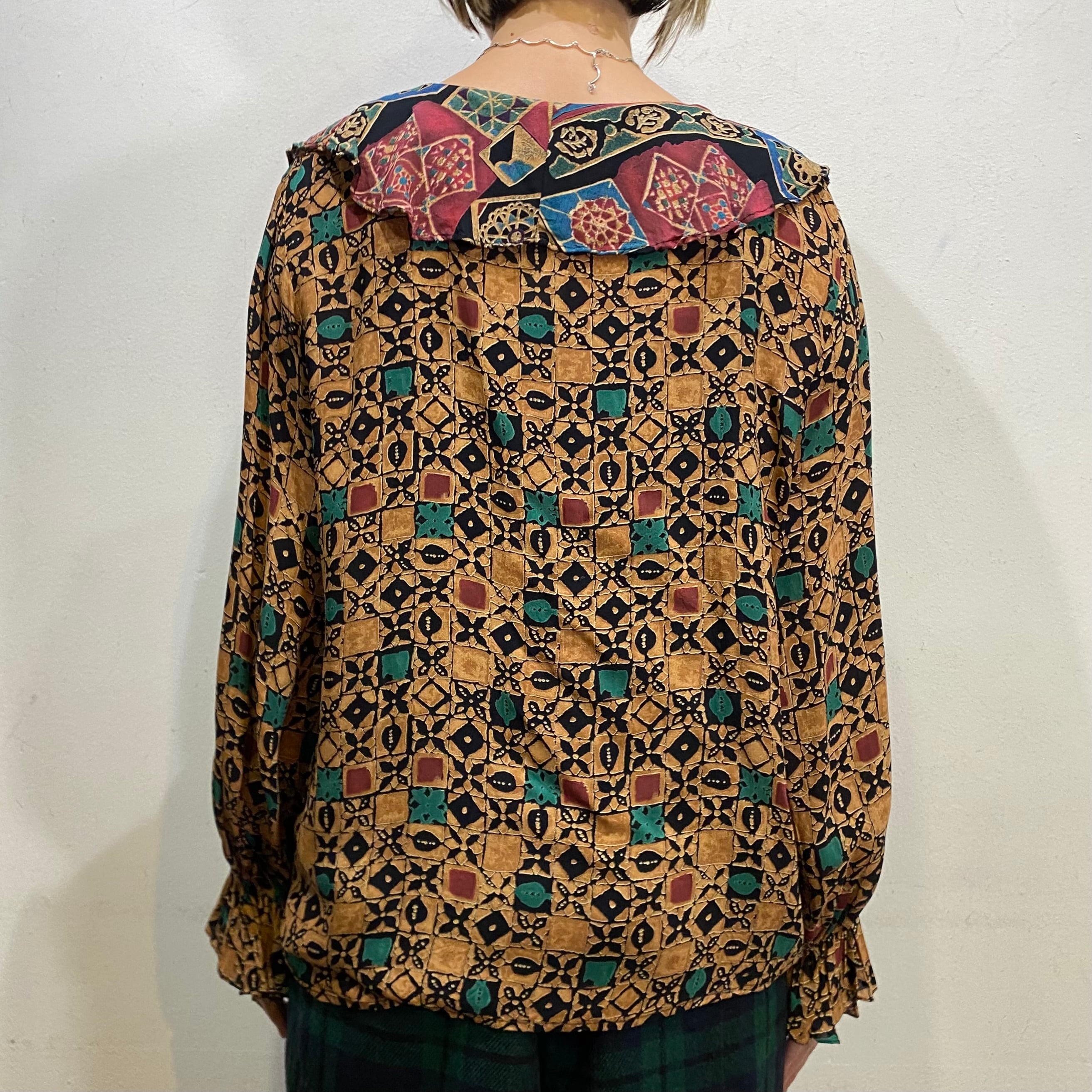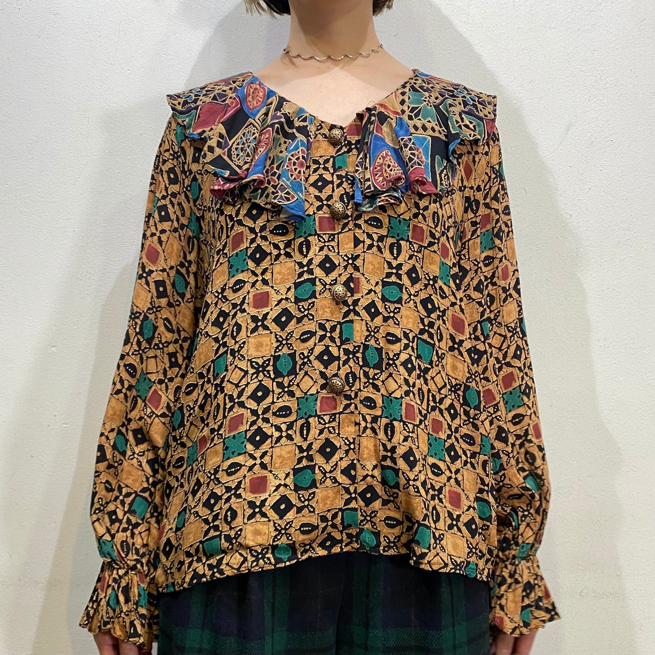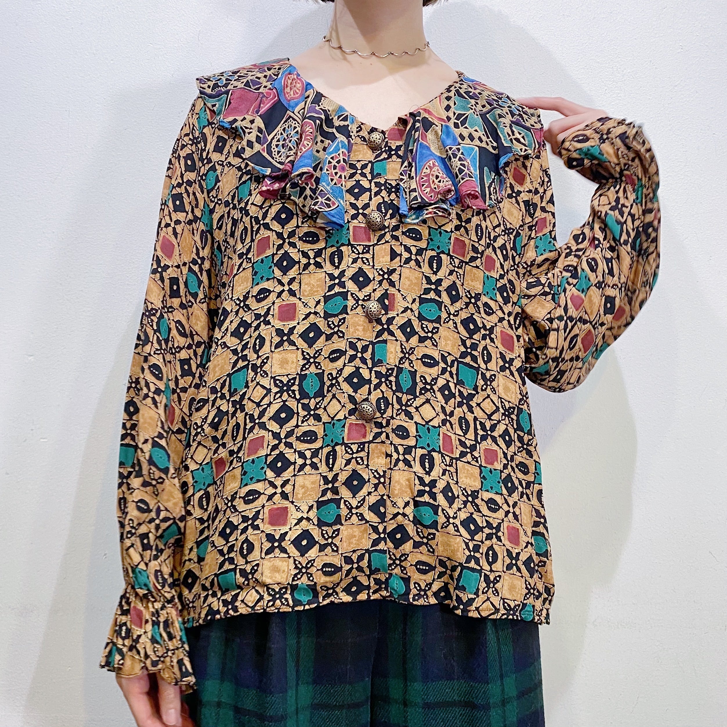 フリフリとした大きな襟が可愛い、80年代の長袖シャツです。