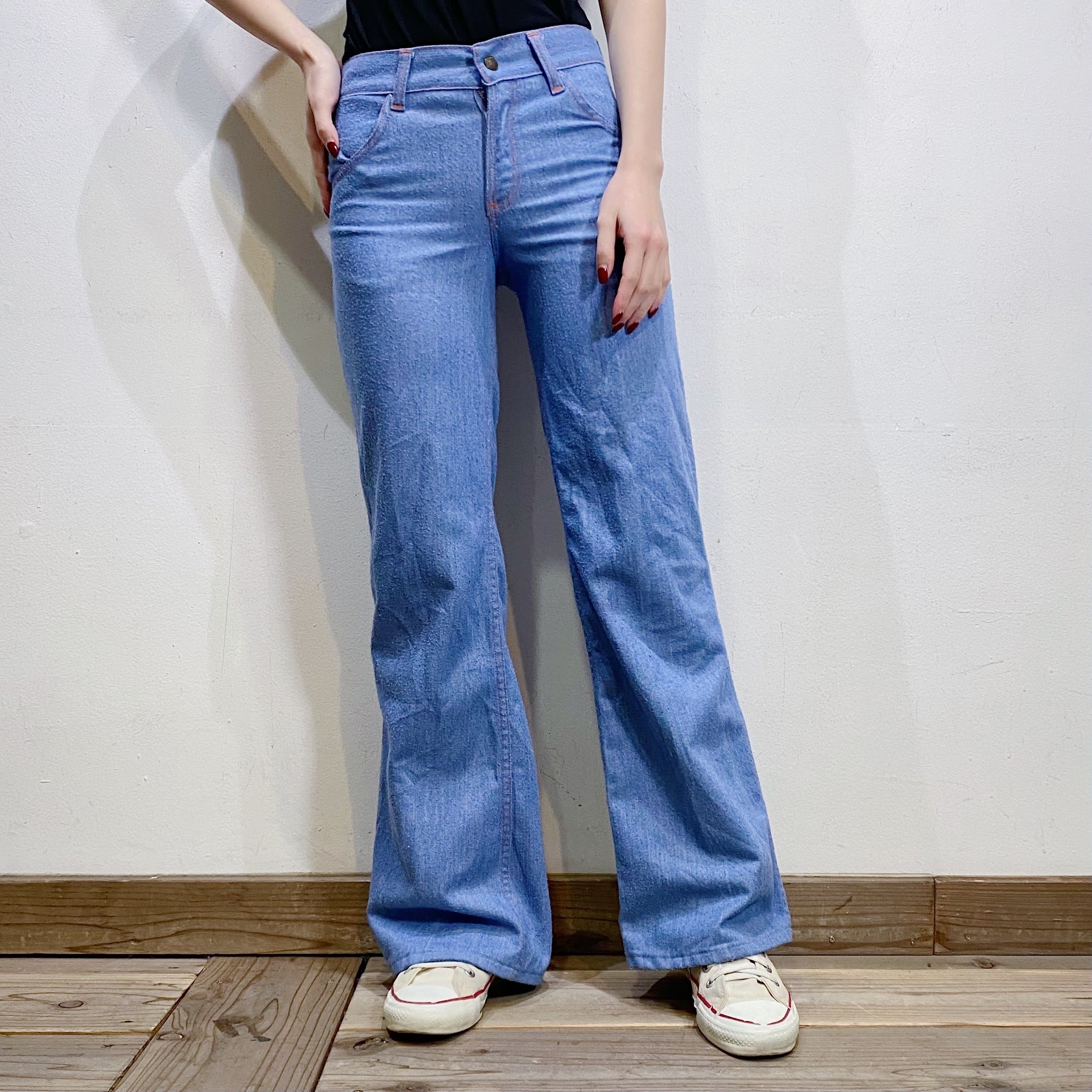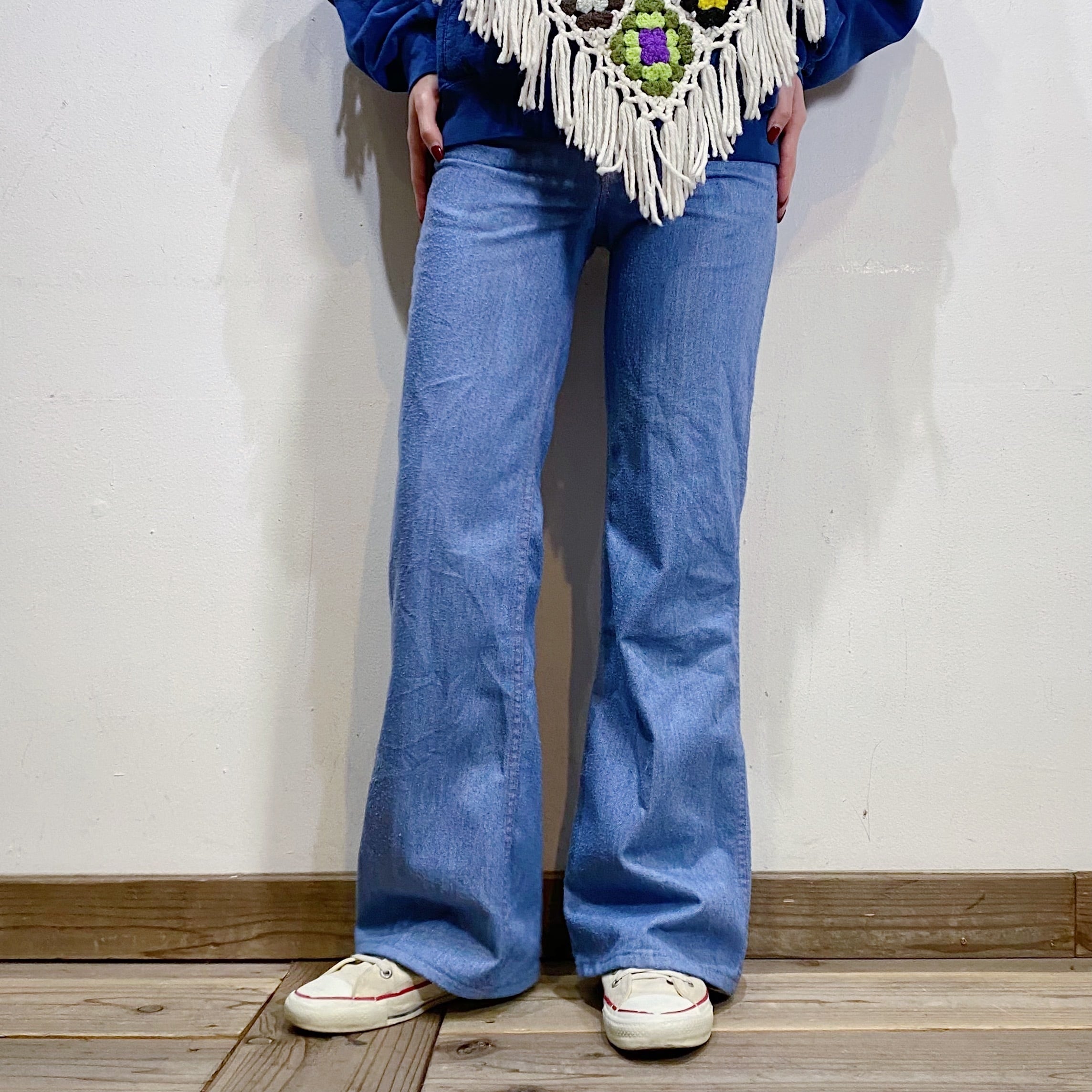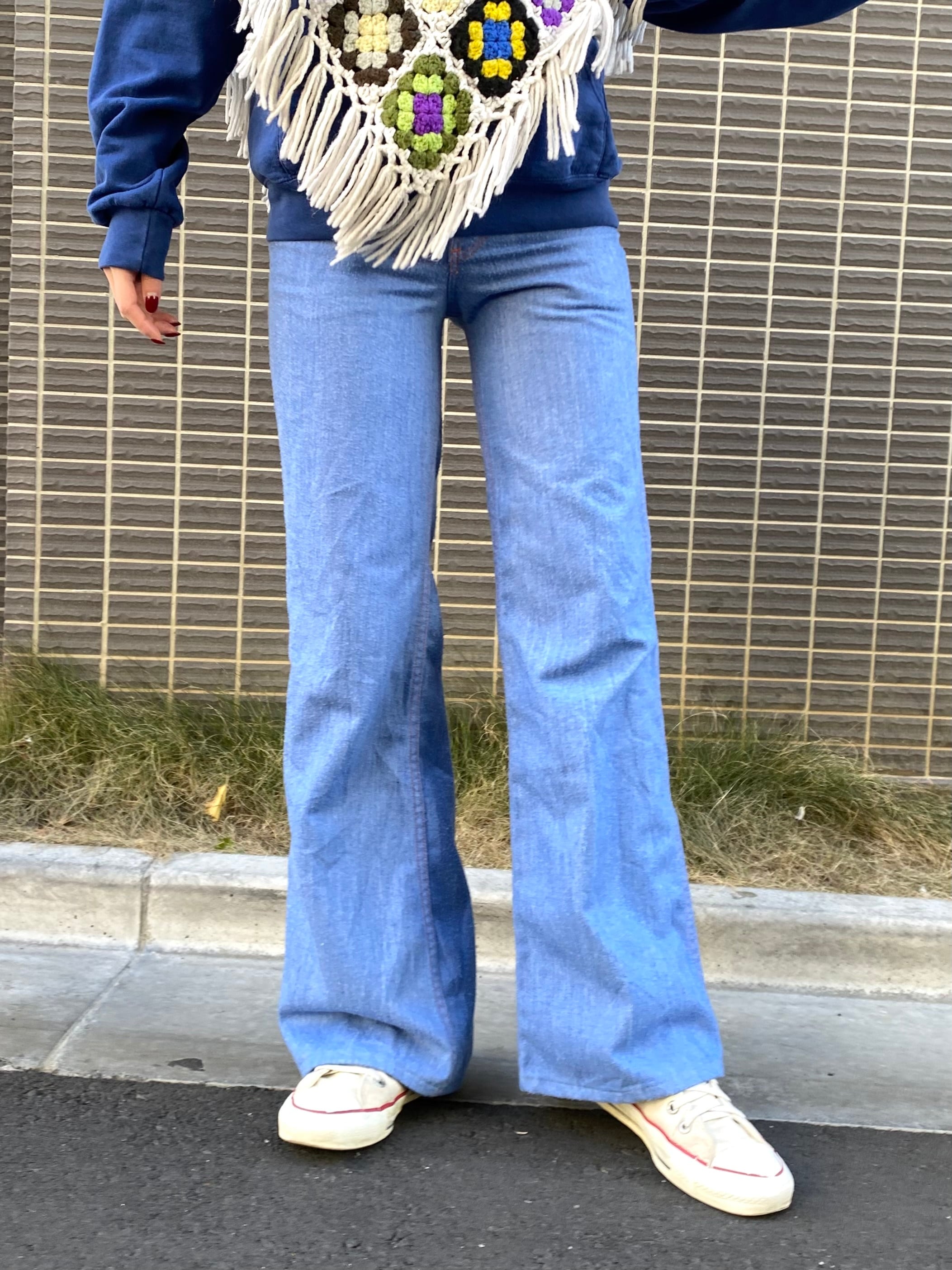 42タロンのジップが使われている、70年代のデニムフレアパンツです。