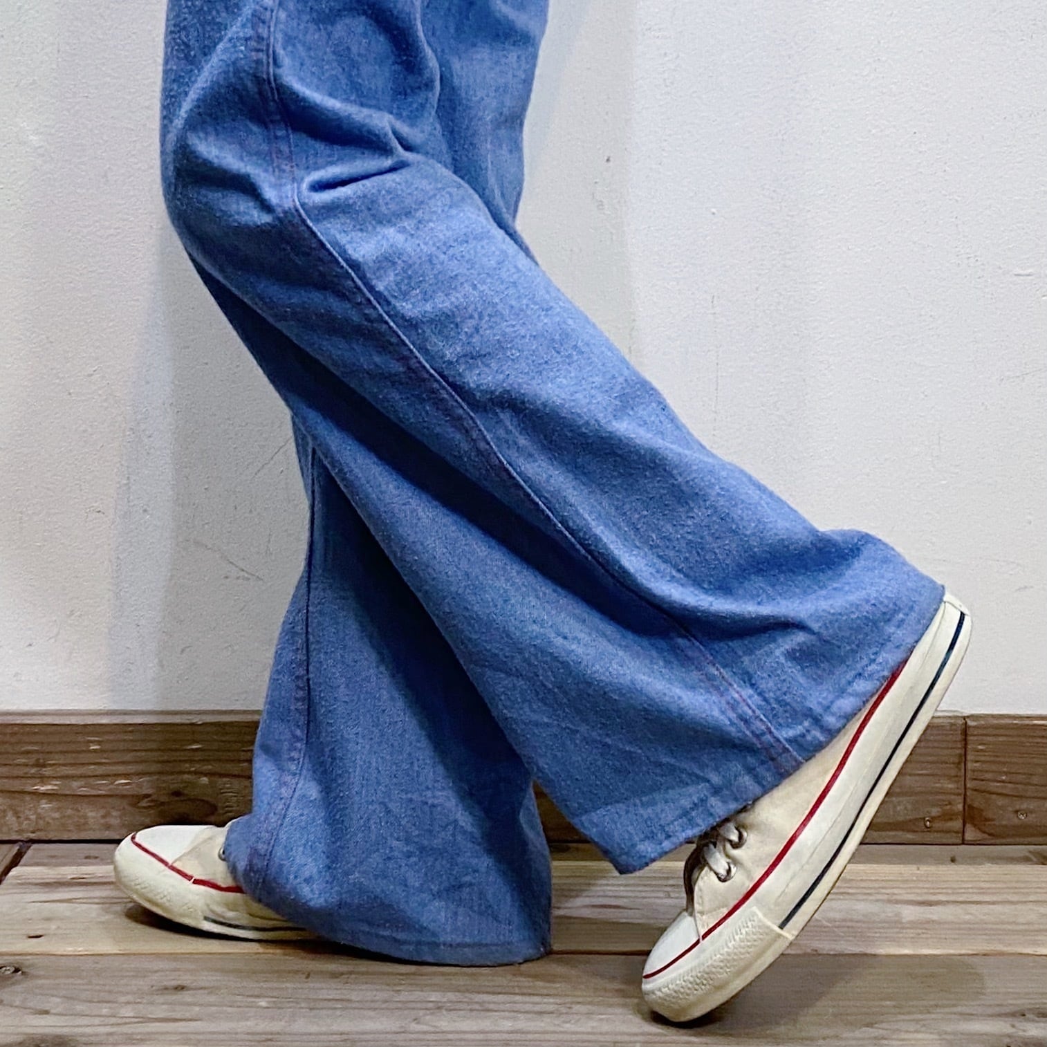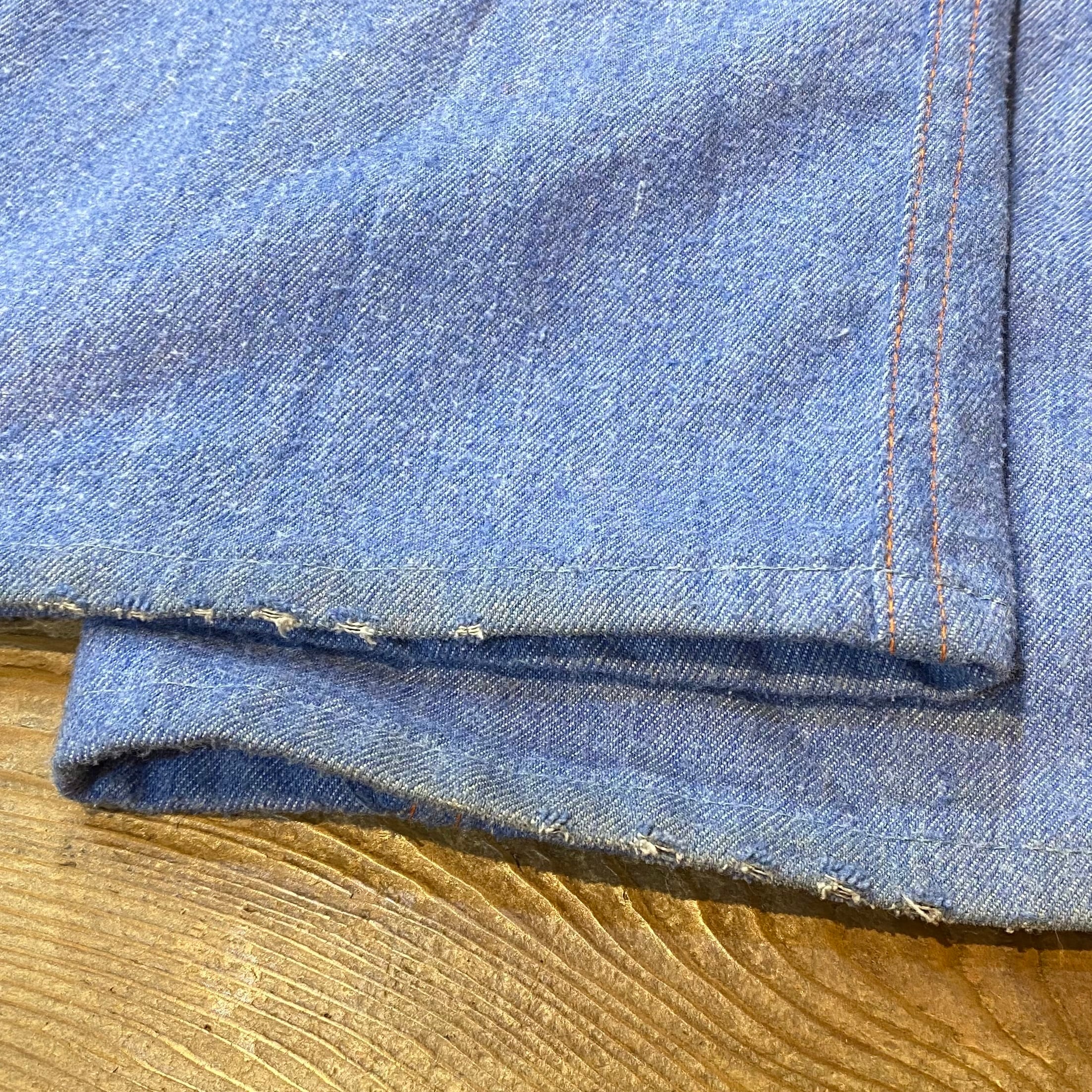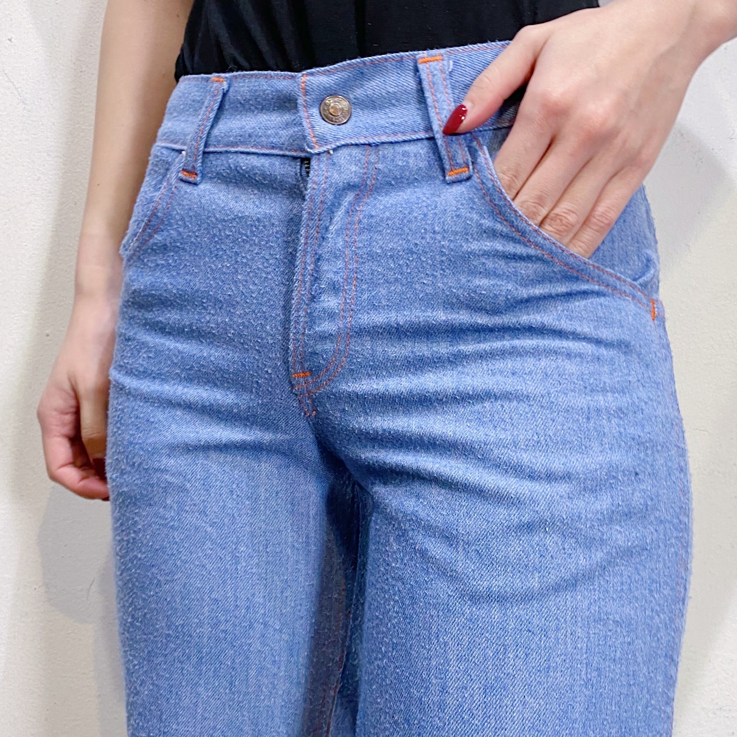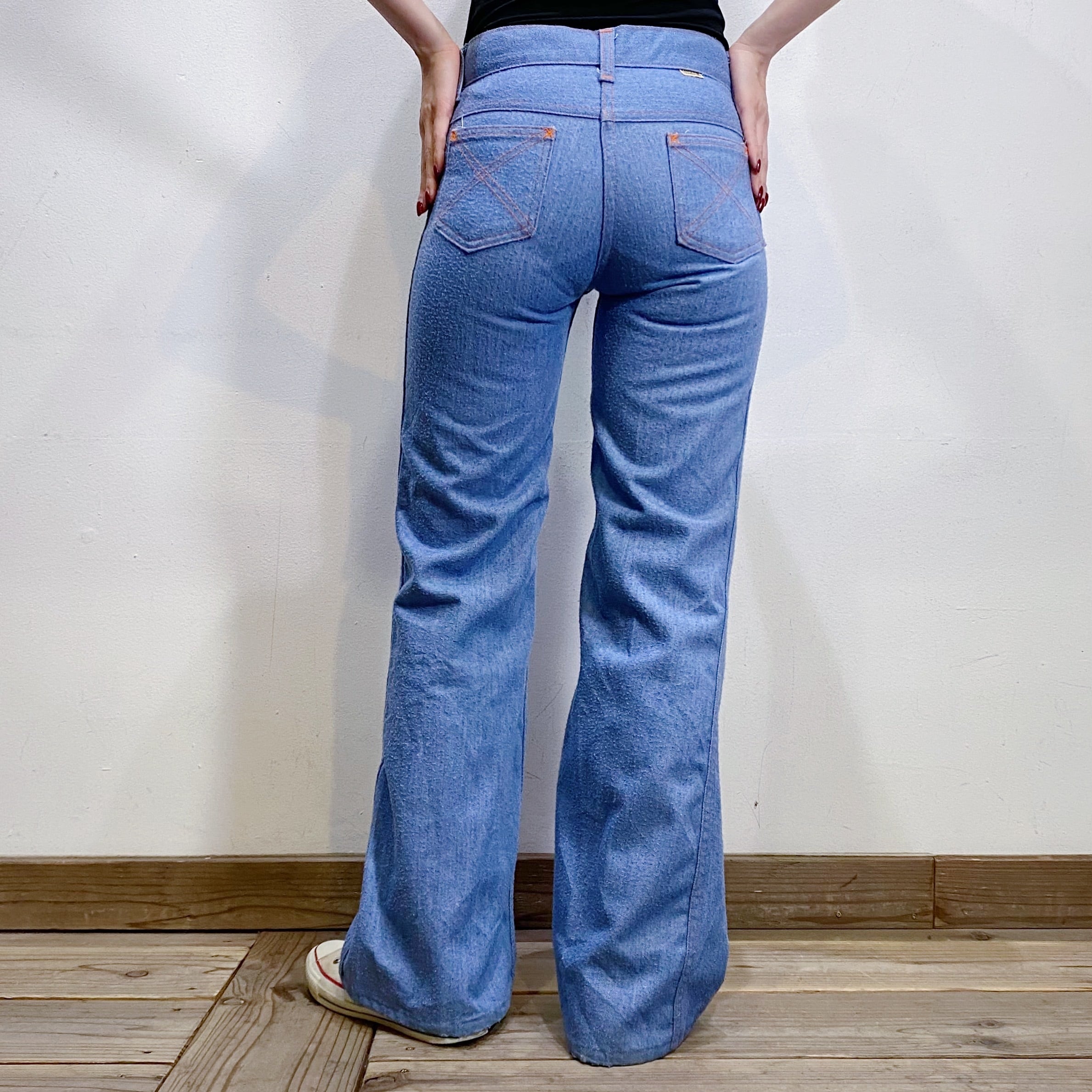 42タロンのジップが使われている、70年代のデニムフレアパンツです。