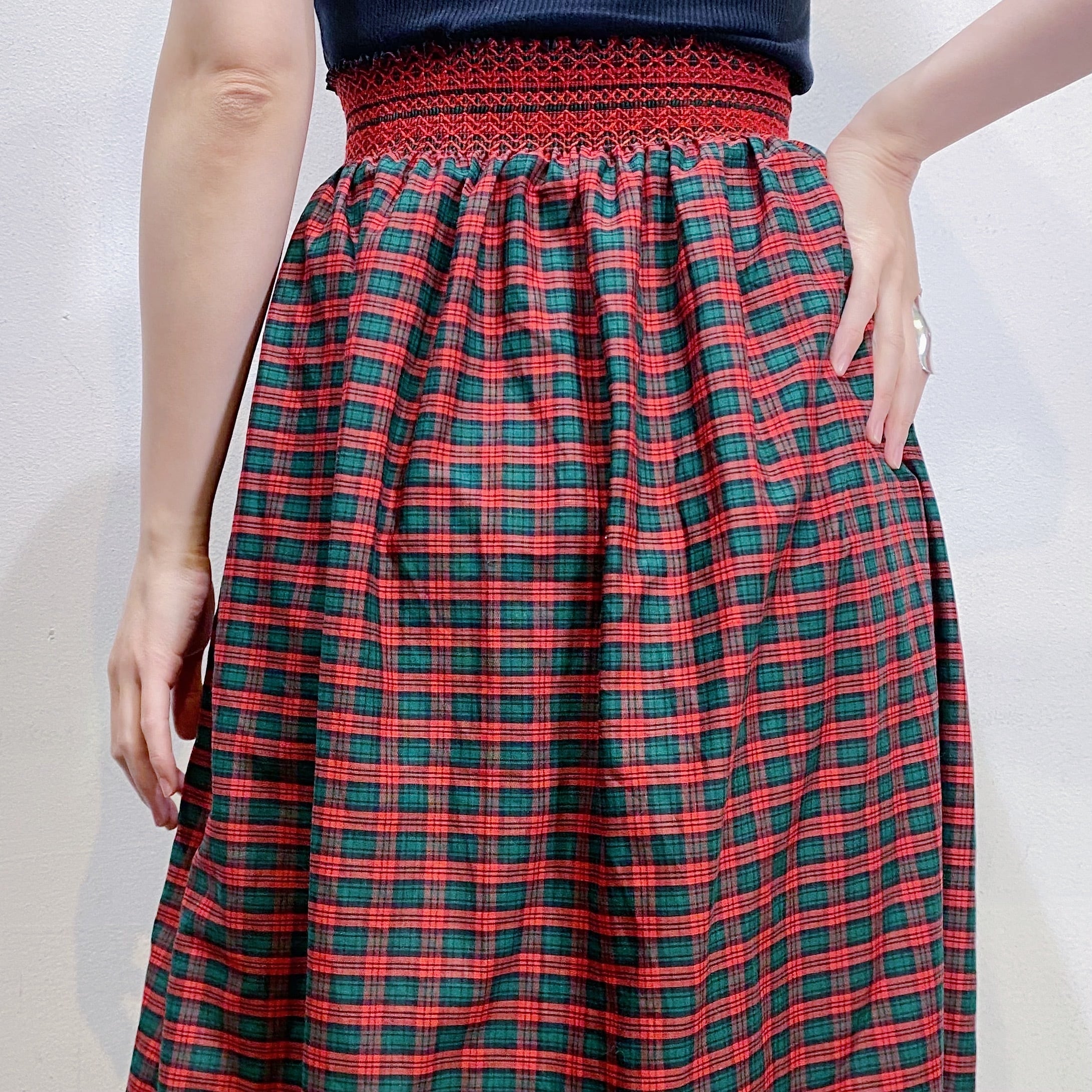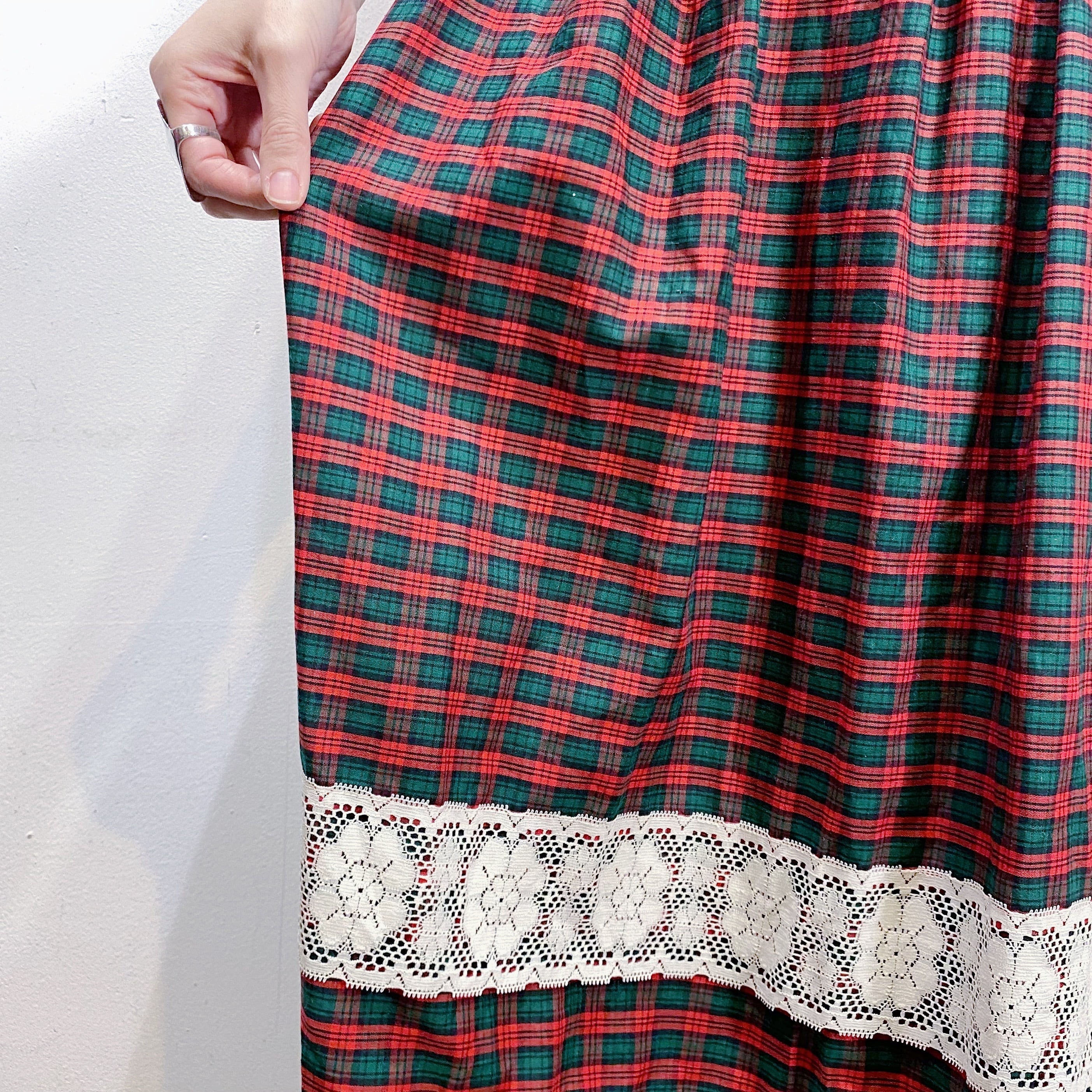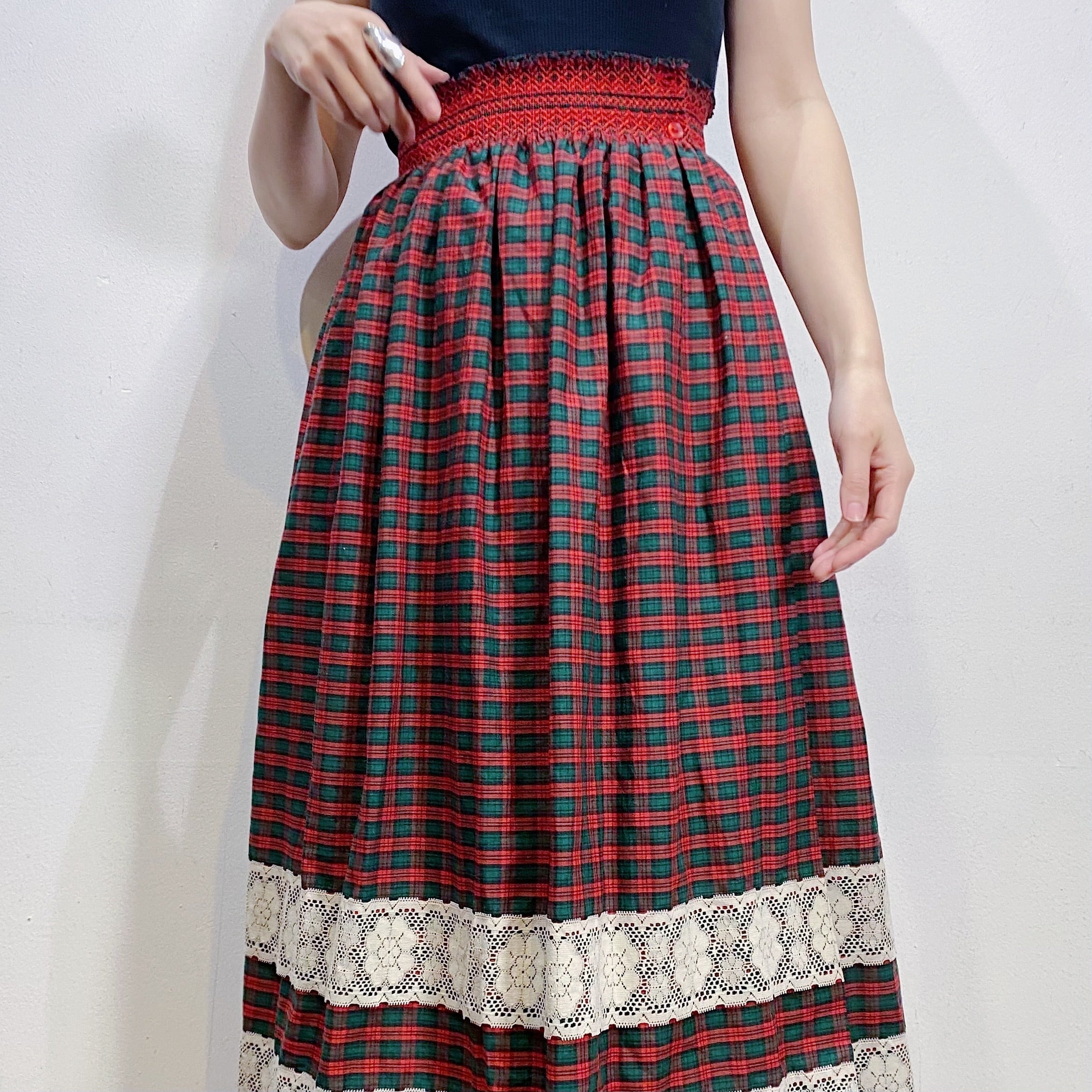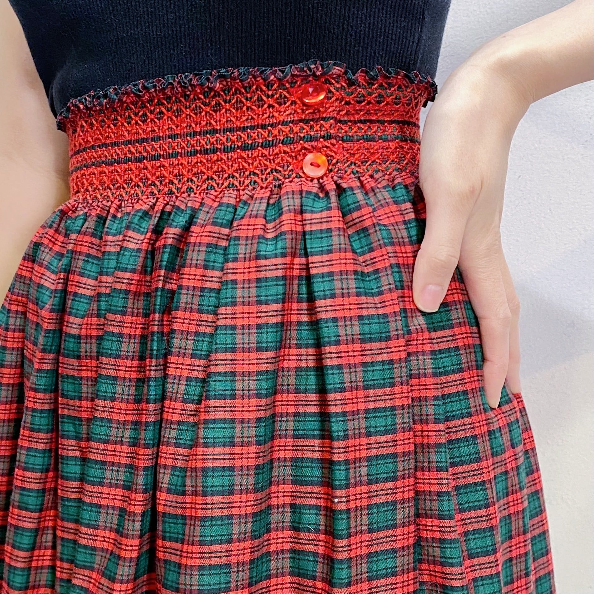 レッド×グリーンの色合わせが可愛い、70年代のチェックスカートです。