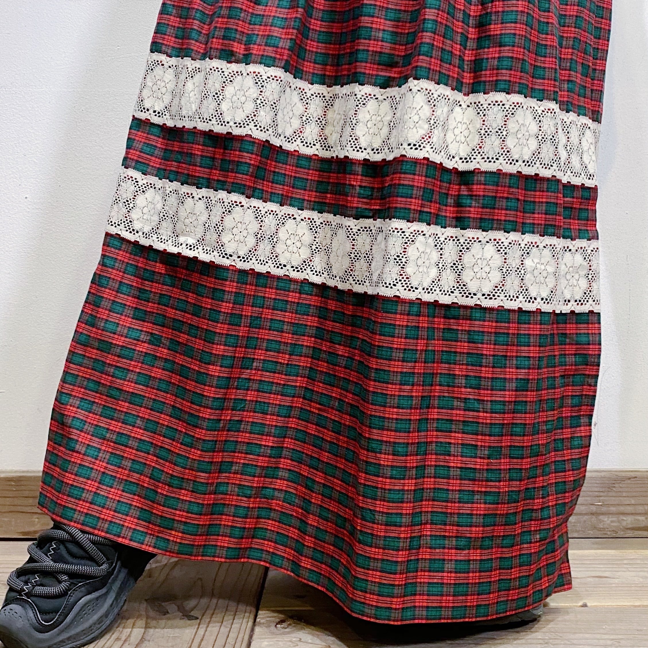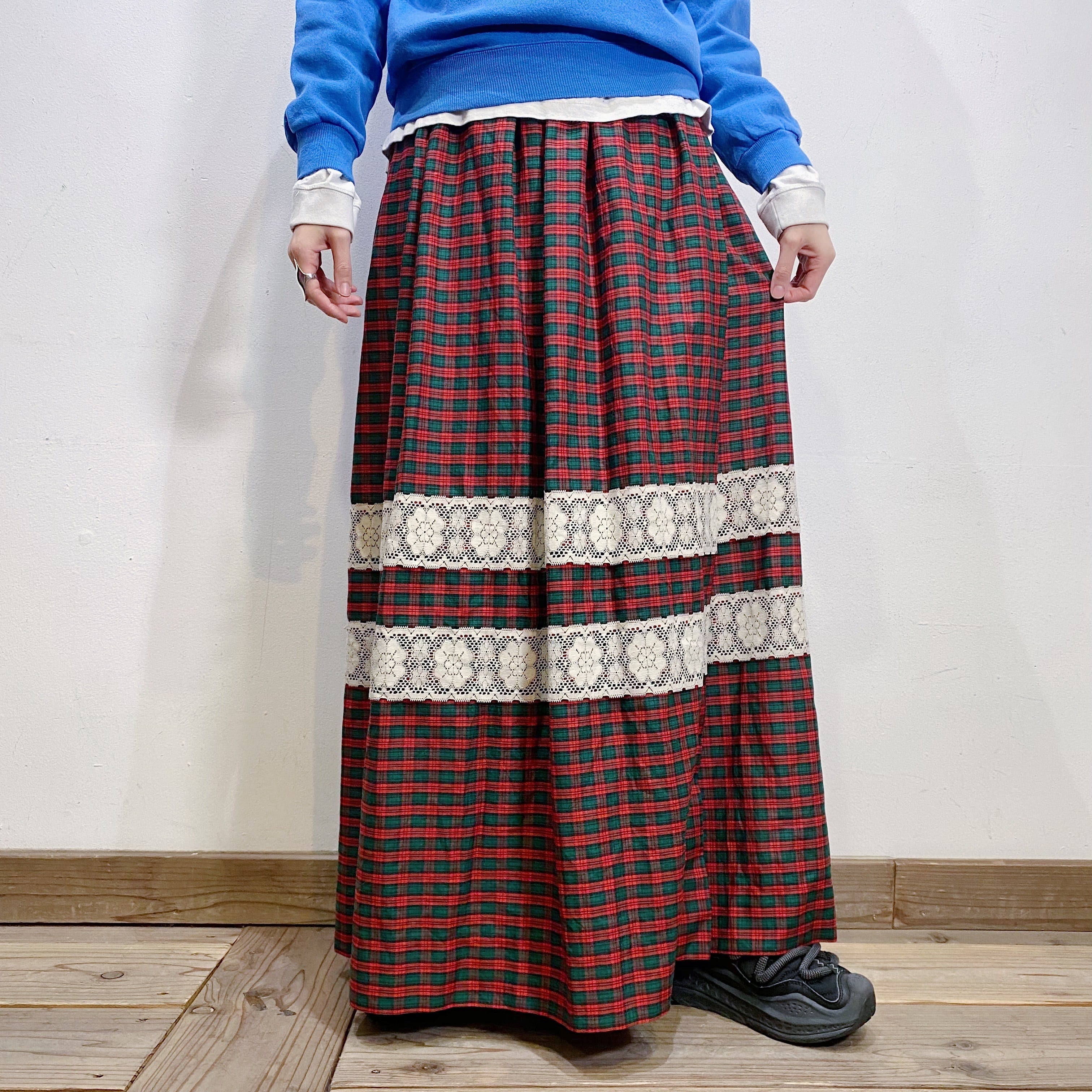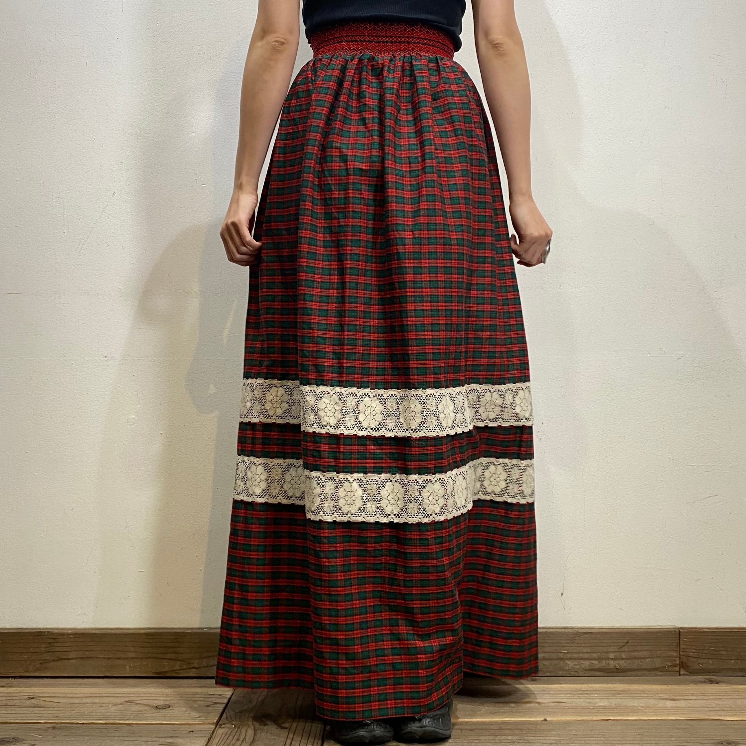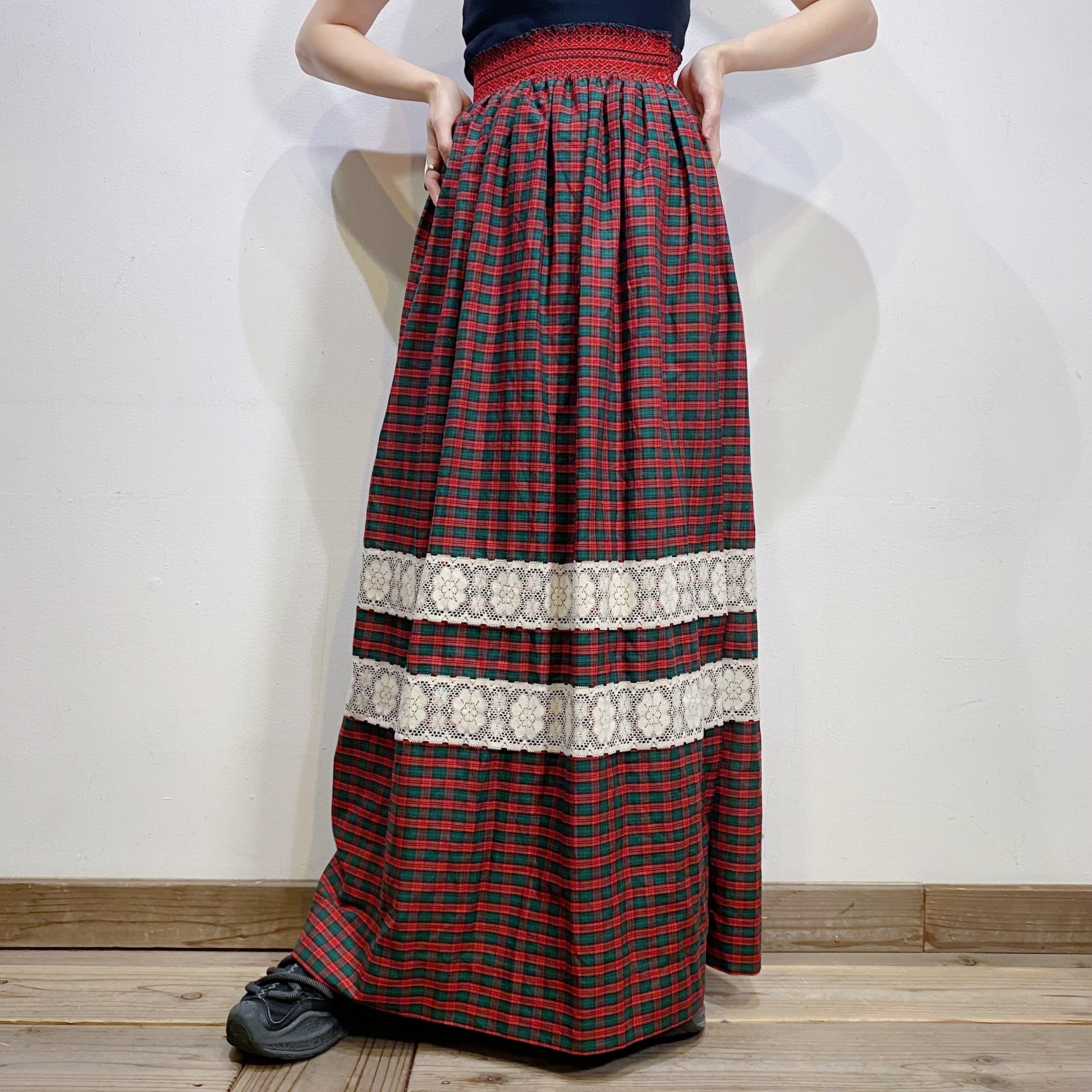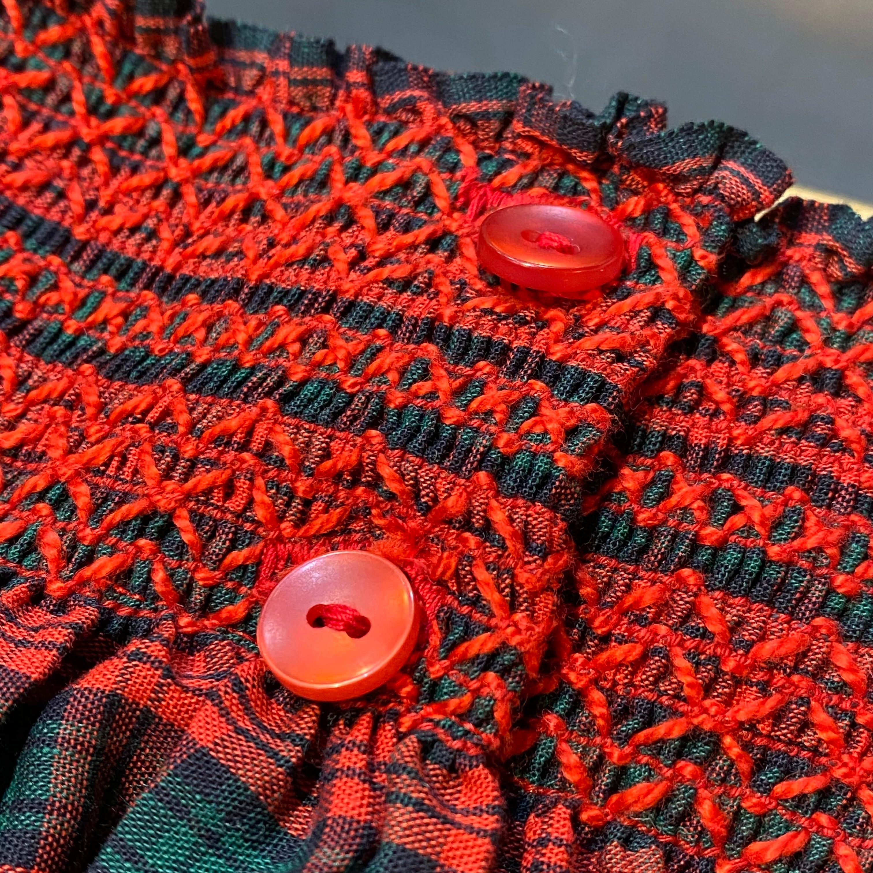レッド×グリーンの色合わせが可愛い、70年代のチェックスカートです。