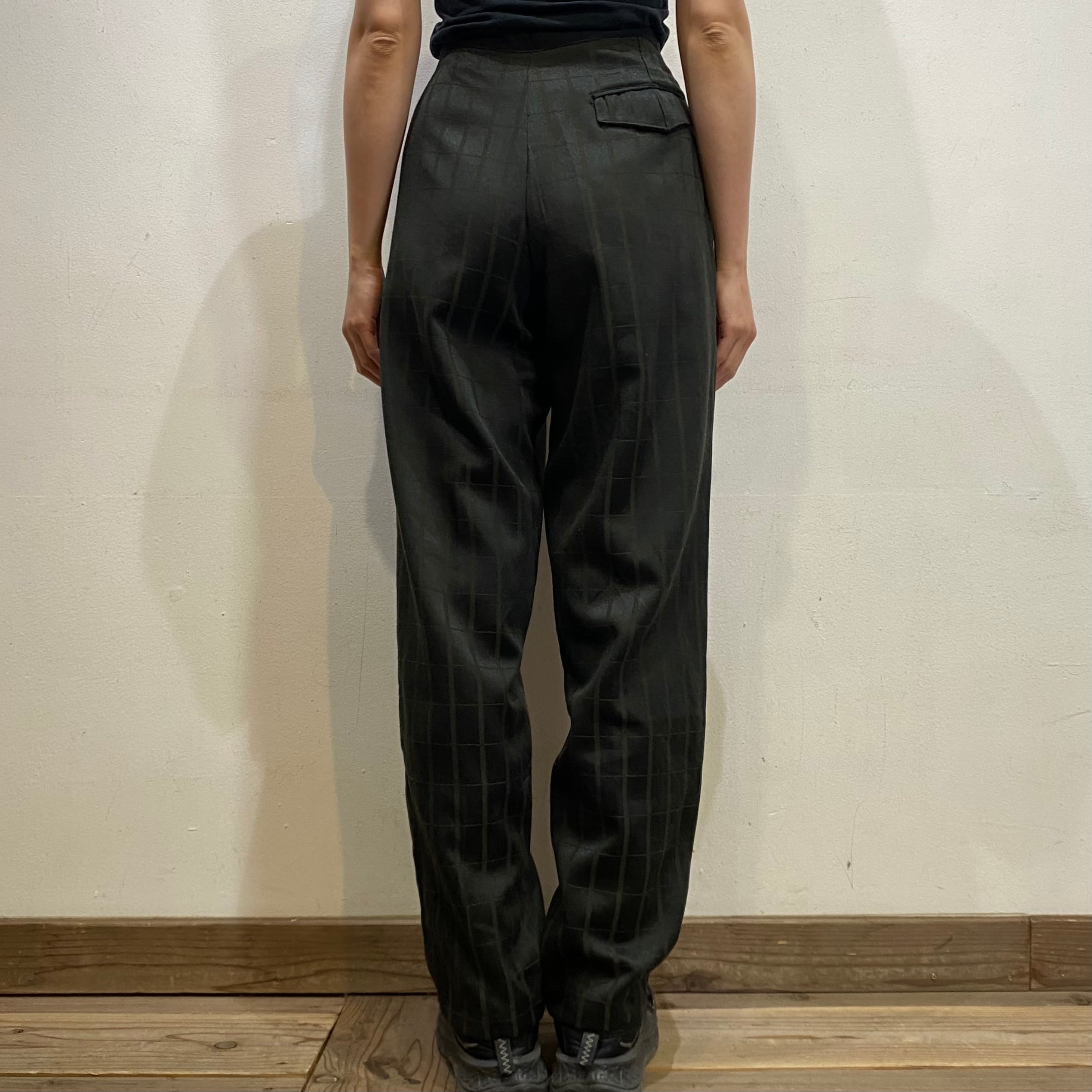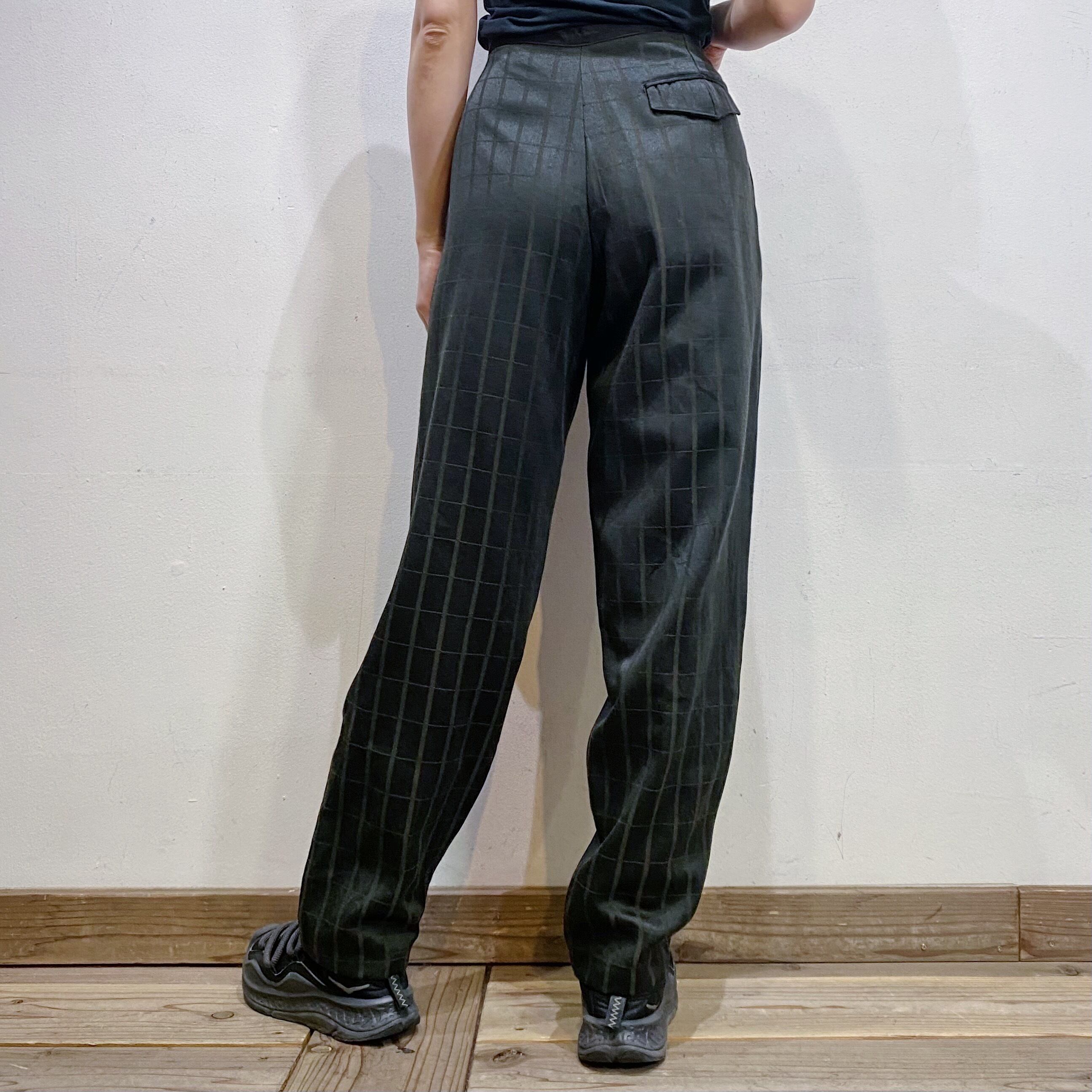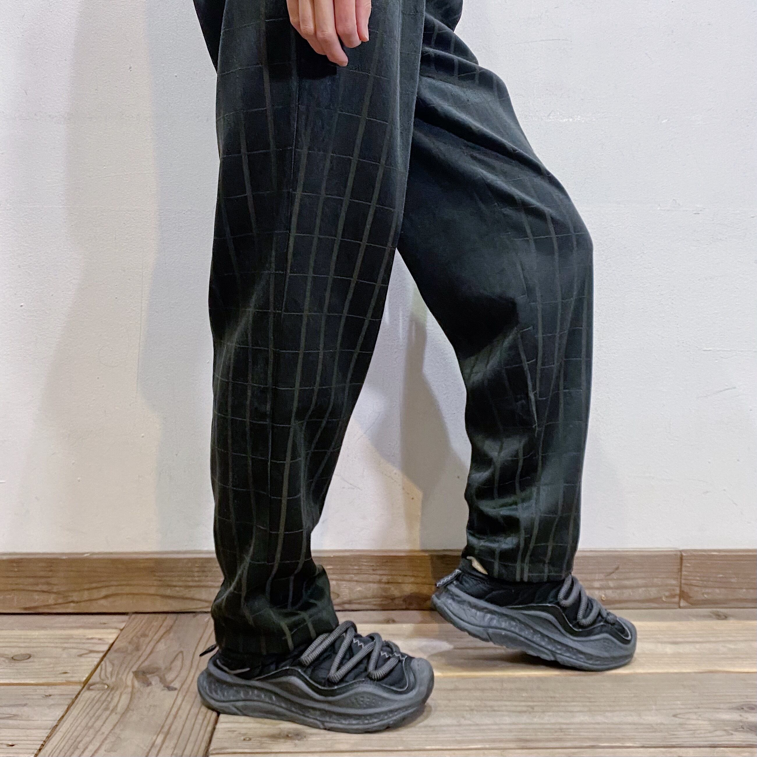 モノトーンカラーのチェックで着こなしやすい、スラックスパンツです。