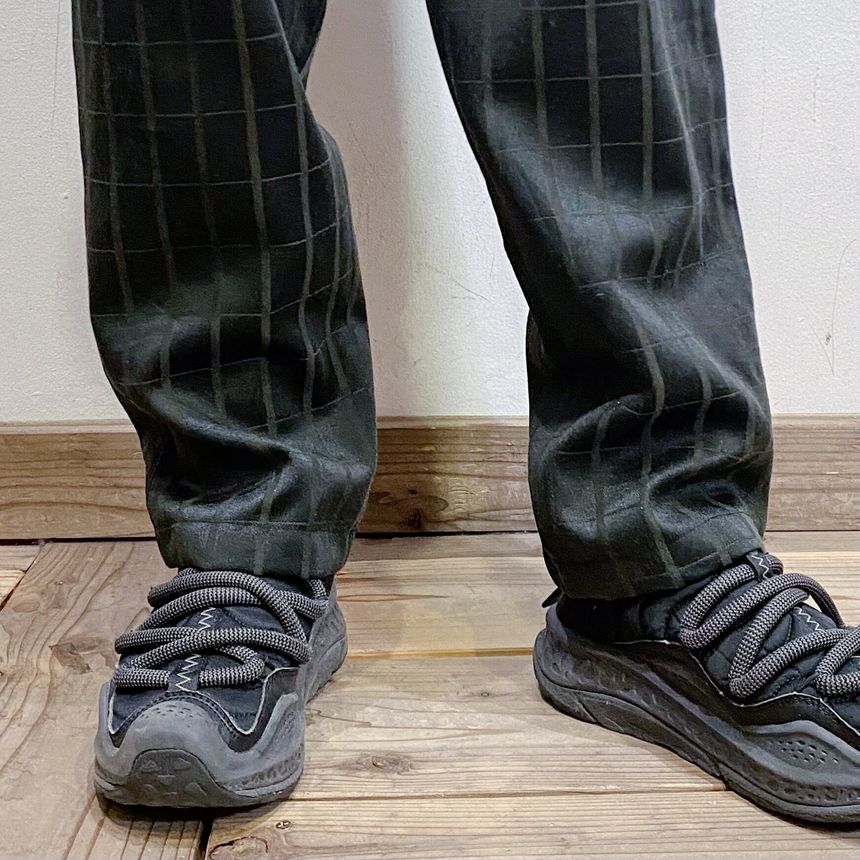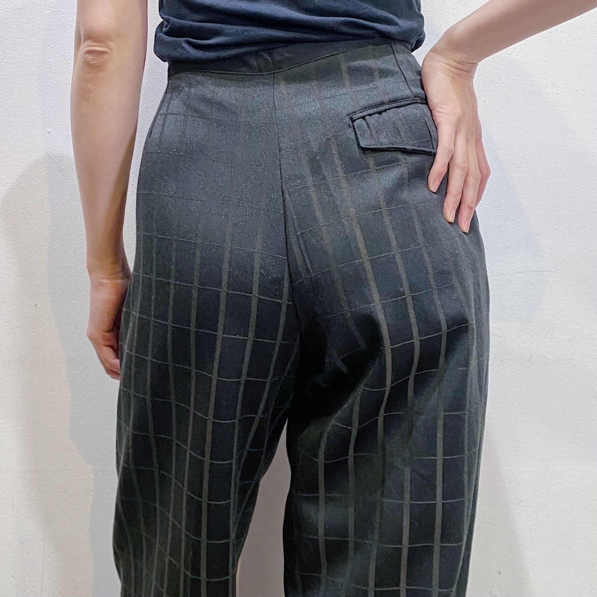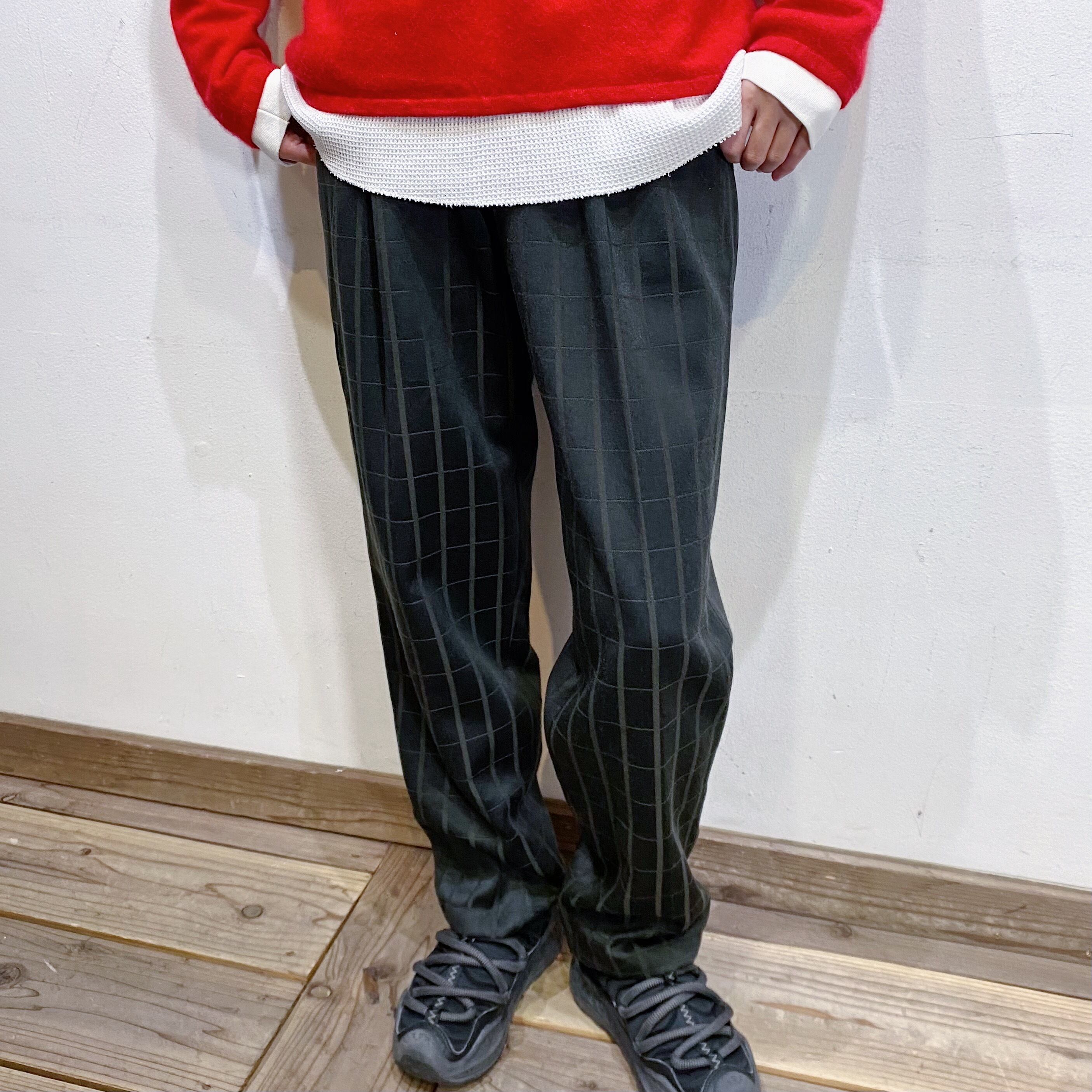 チャコールグレーがベースのチェックパターンが可愛いスラックスです。