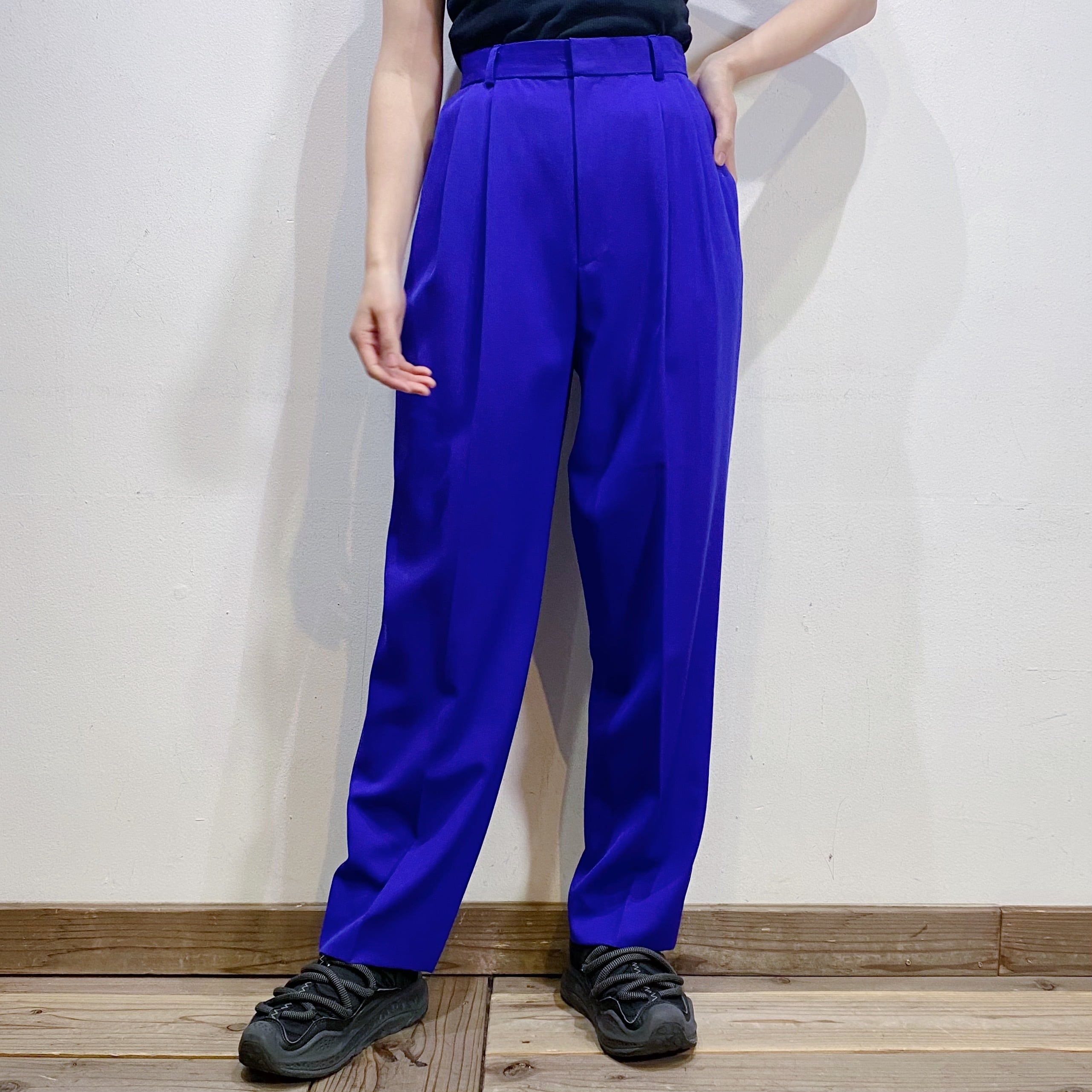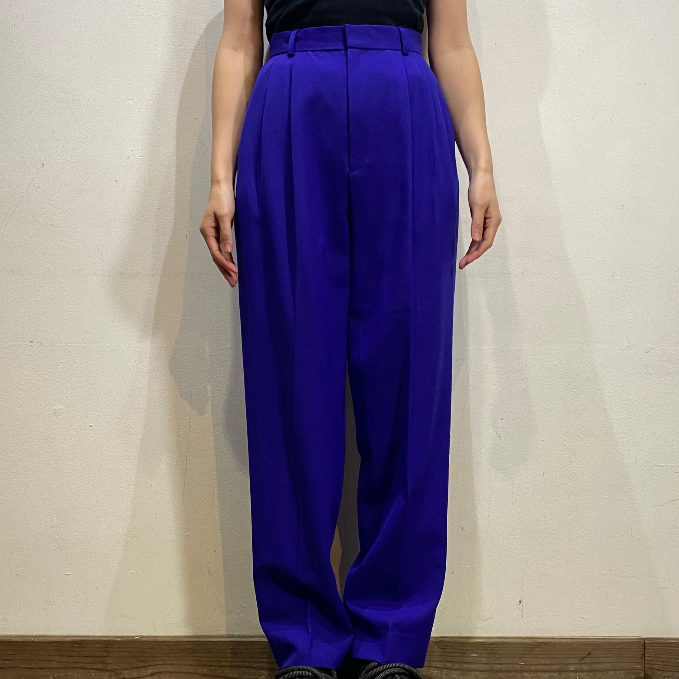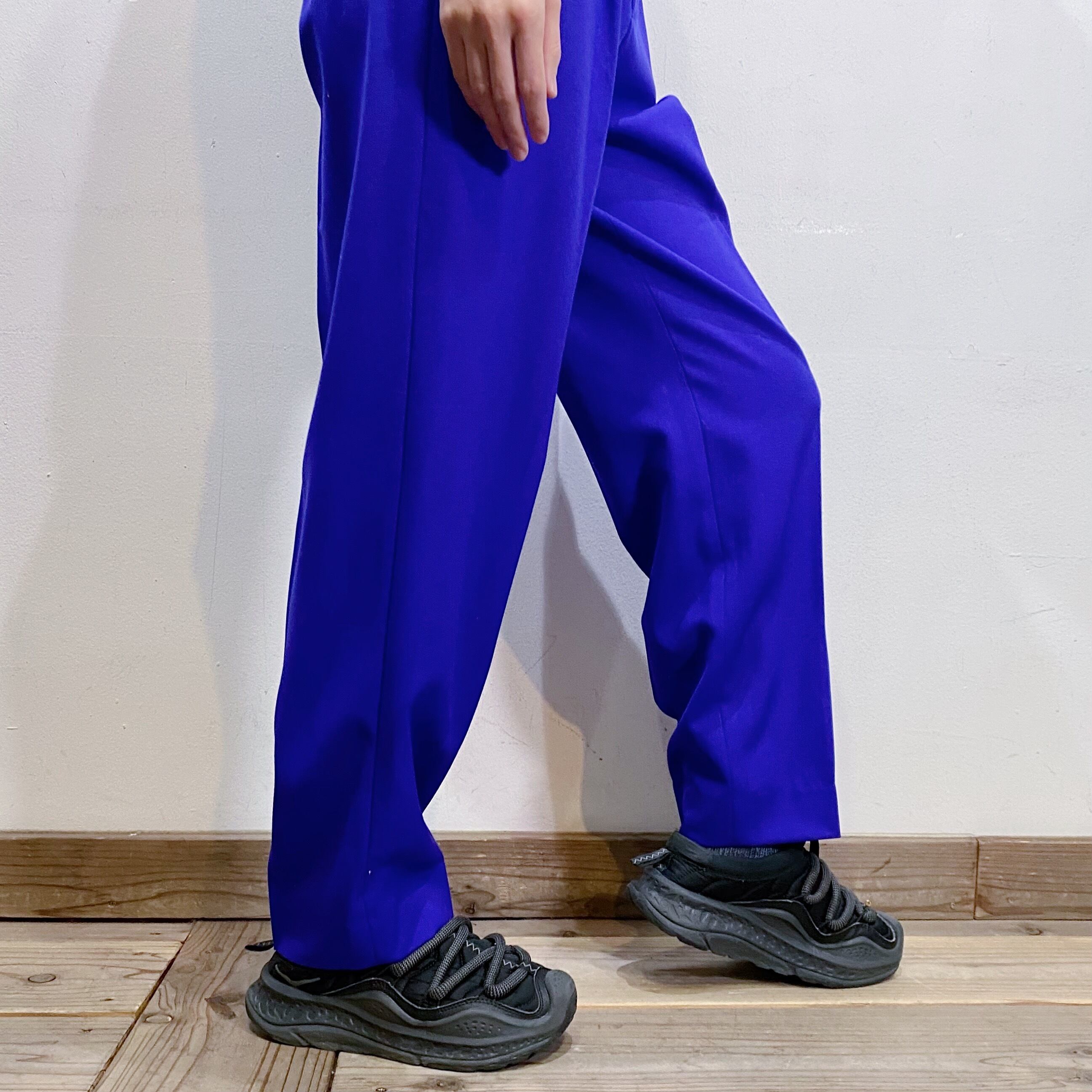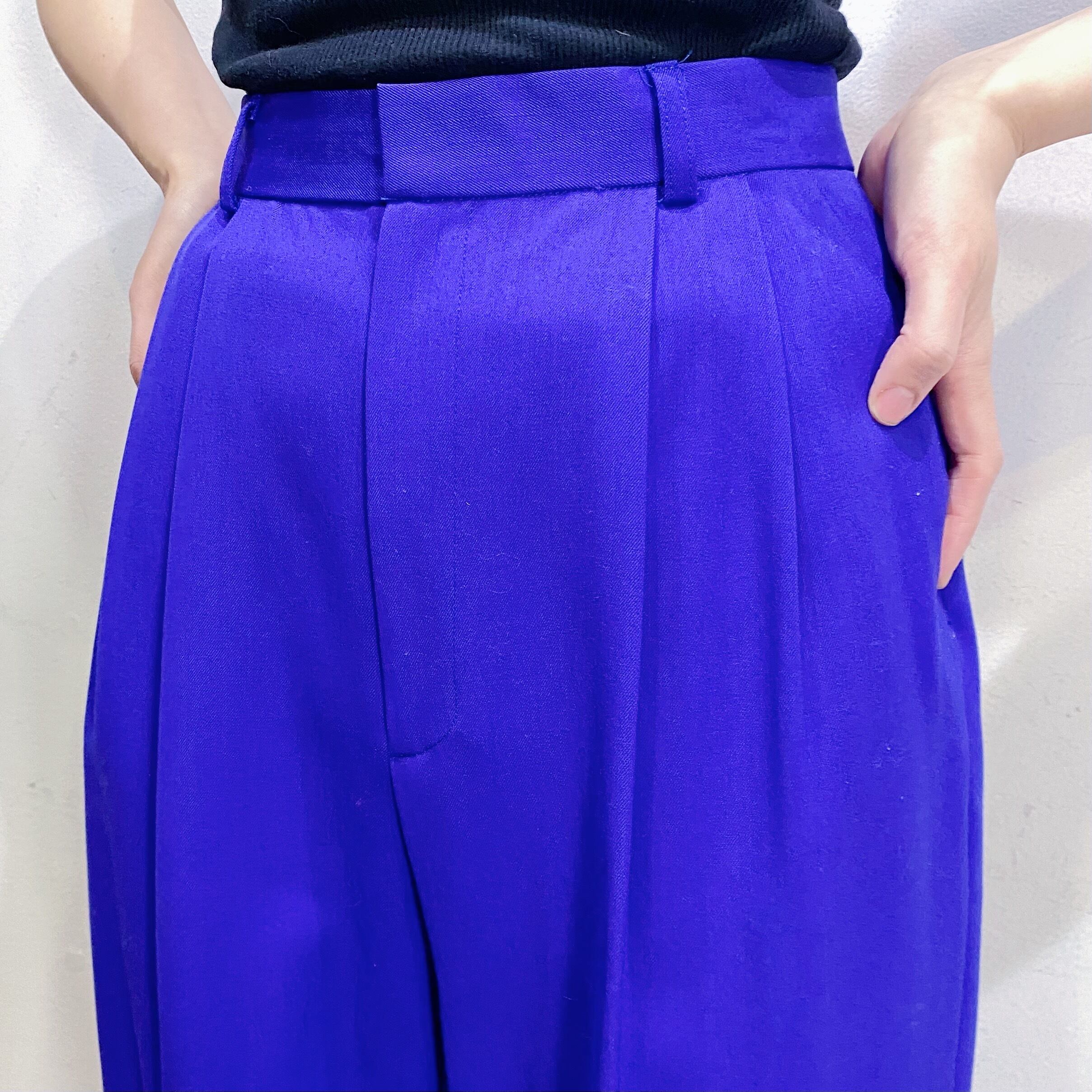 鮮やかなブルーがパッと目を惹く、スラックスです。
