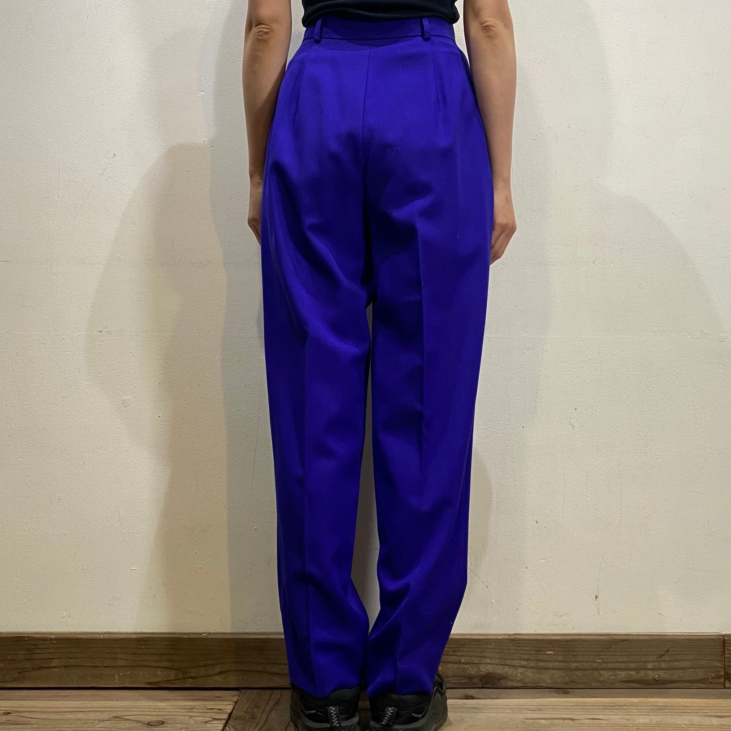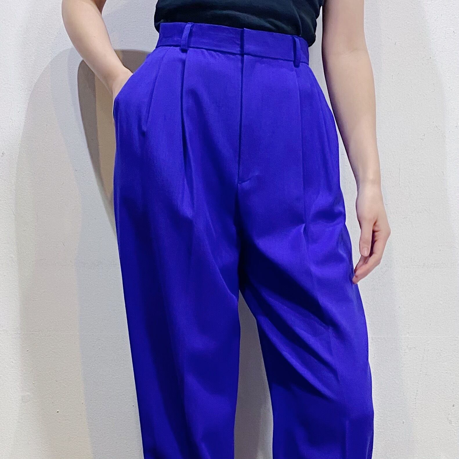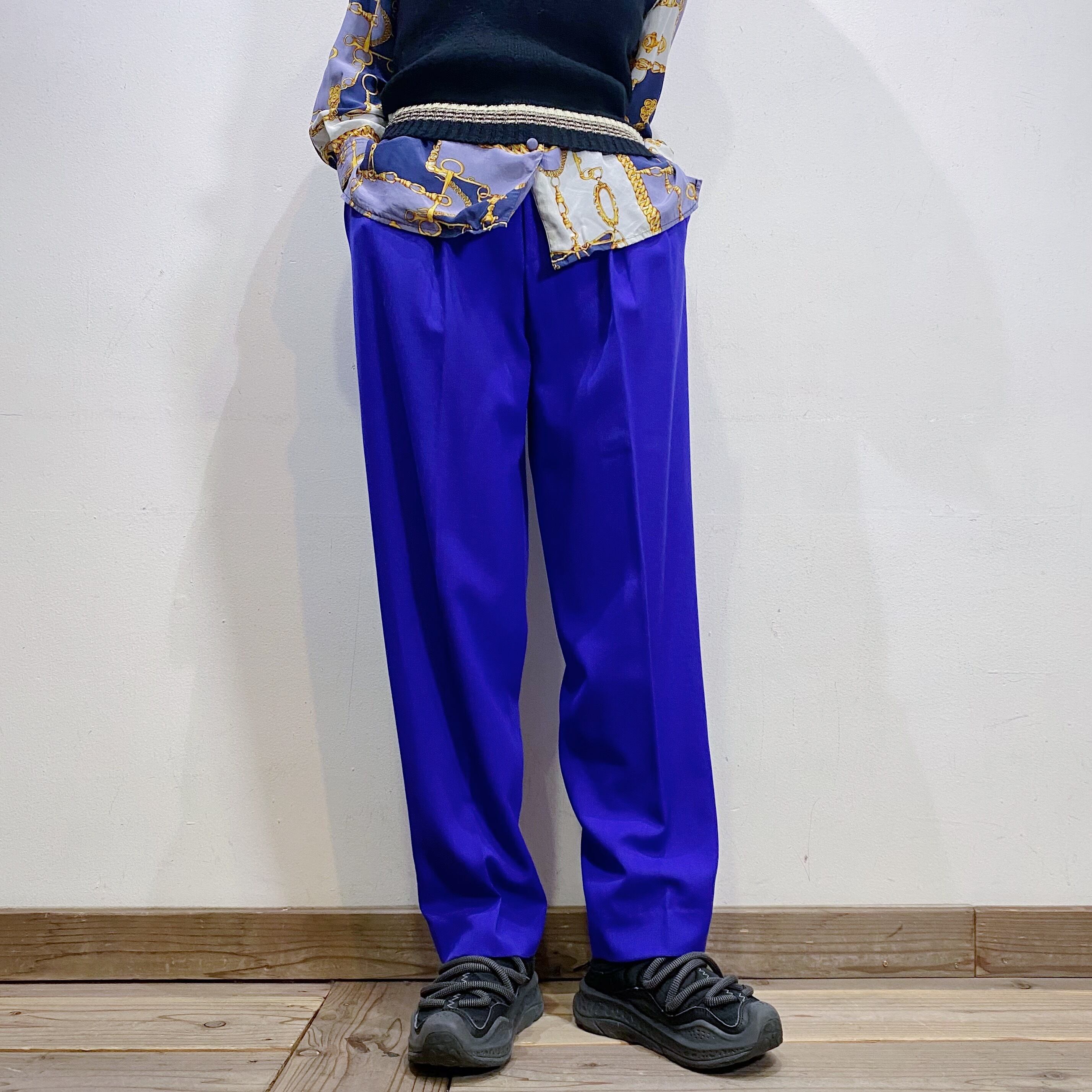 鮮やかなブルーがパッと目を惹く、スラックスです。