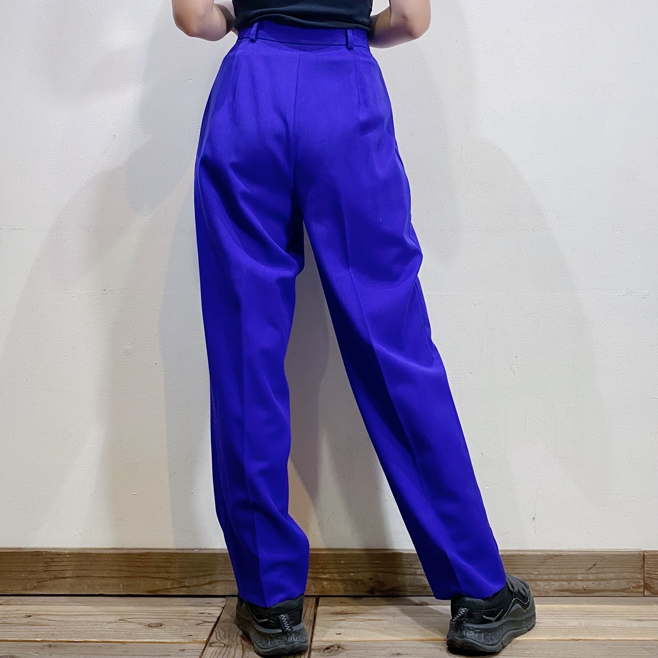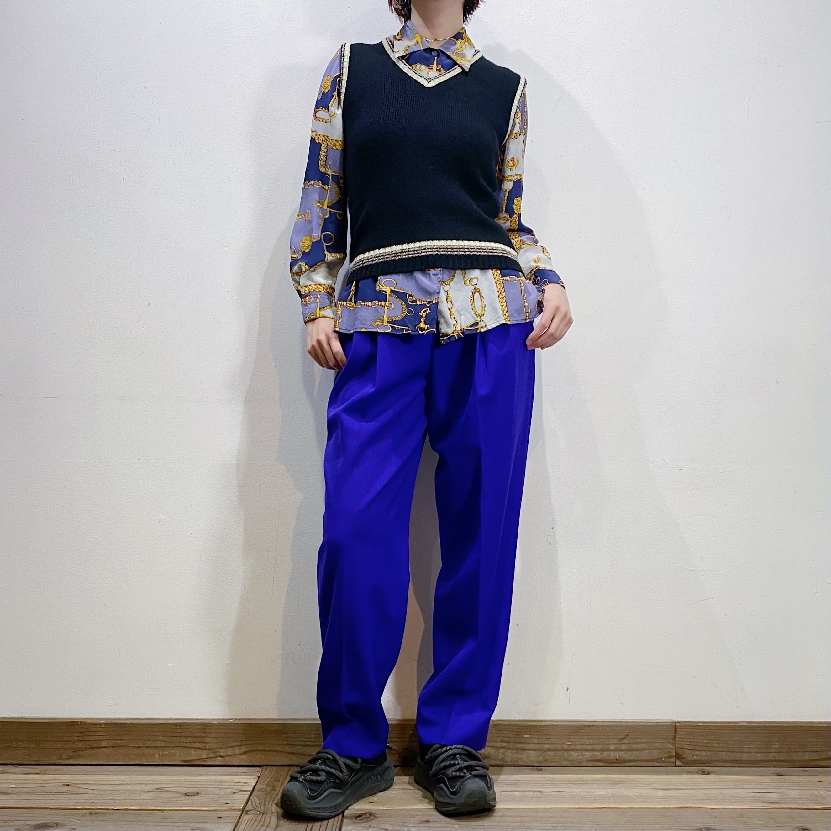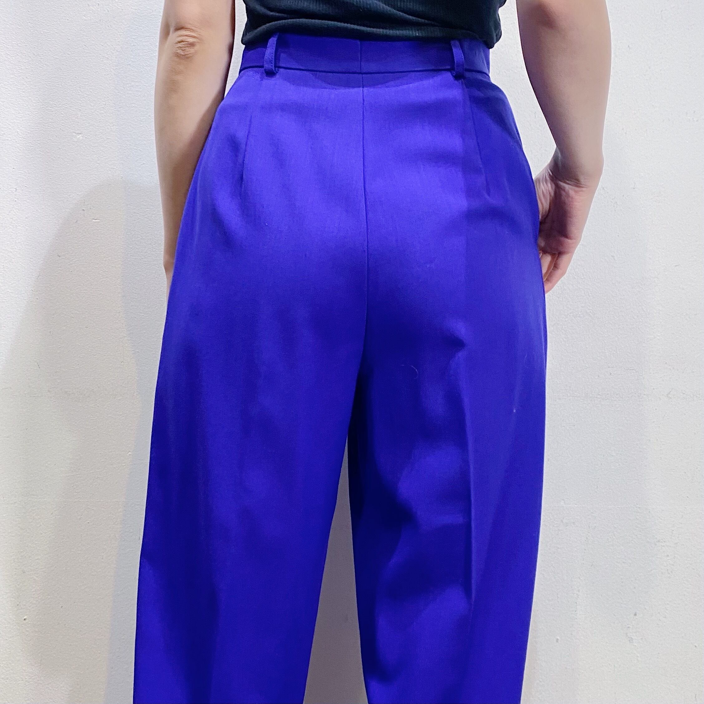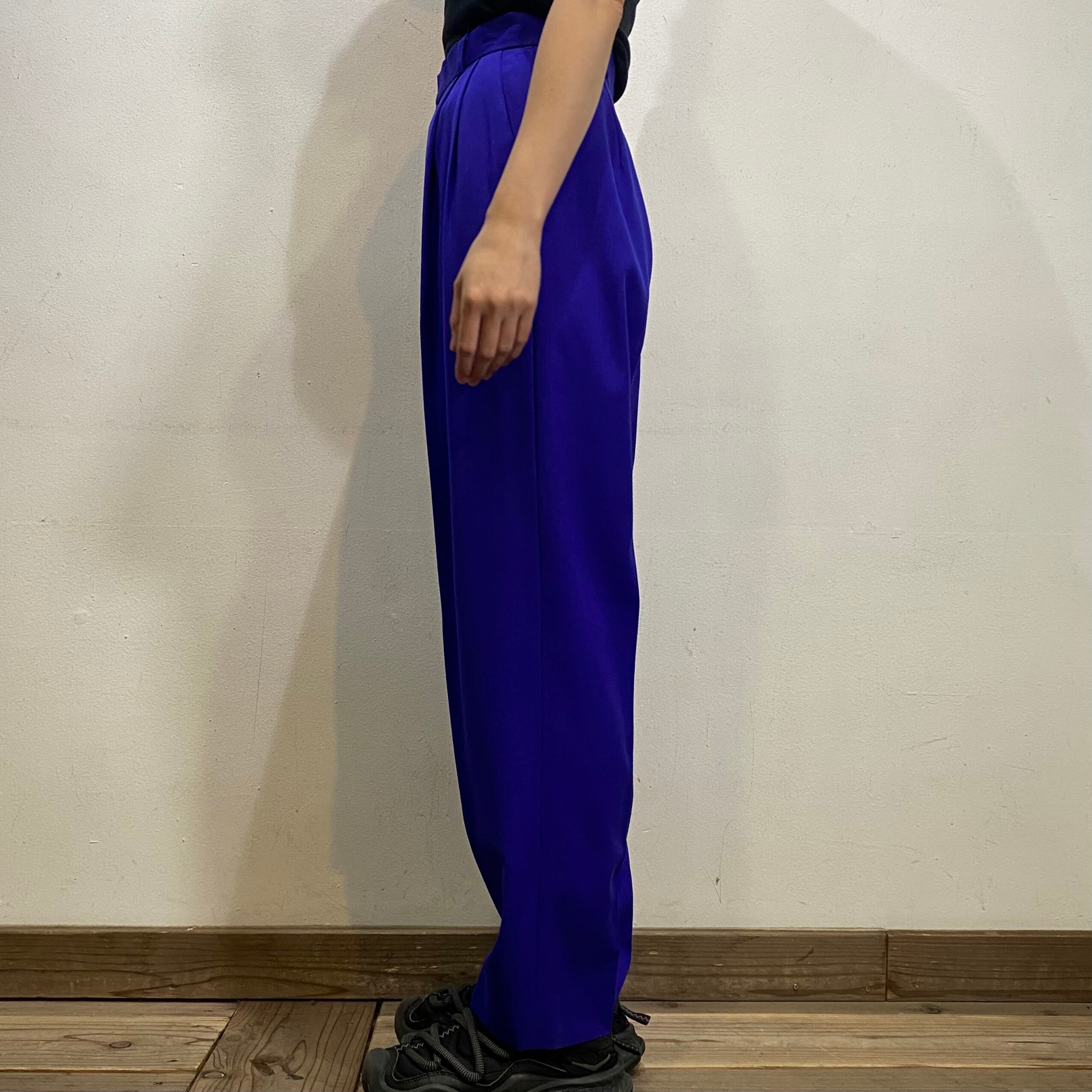 鮮やかなブルーがパッと目を惹く、スラックスです。