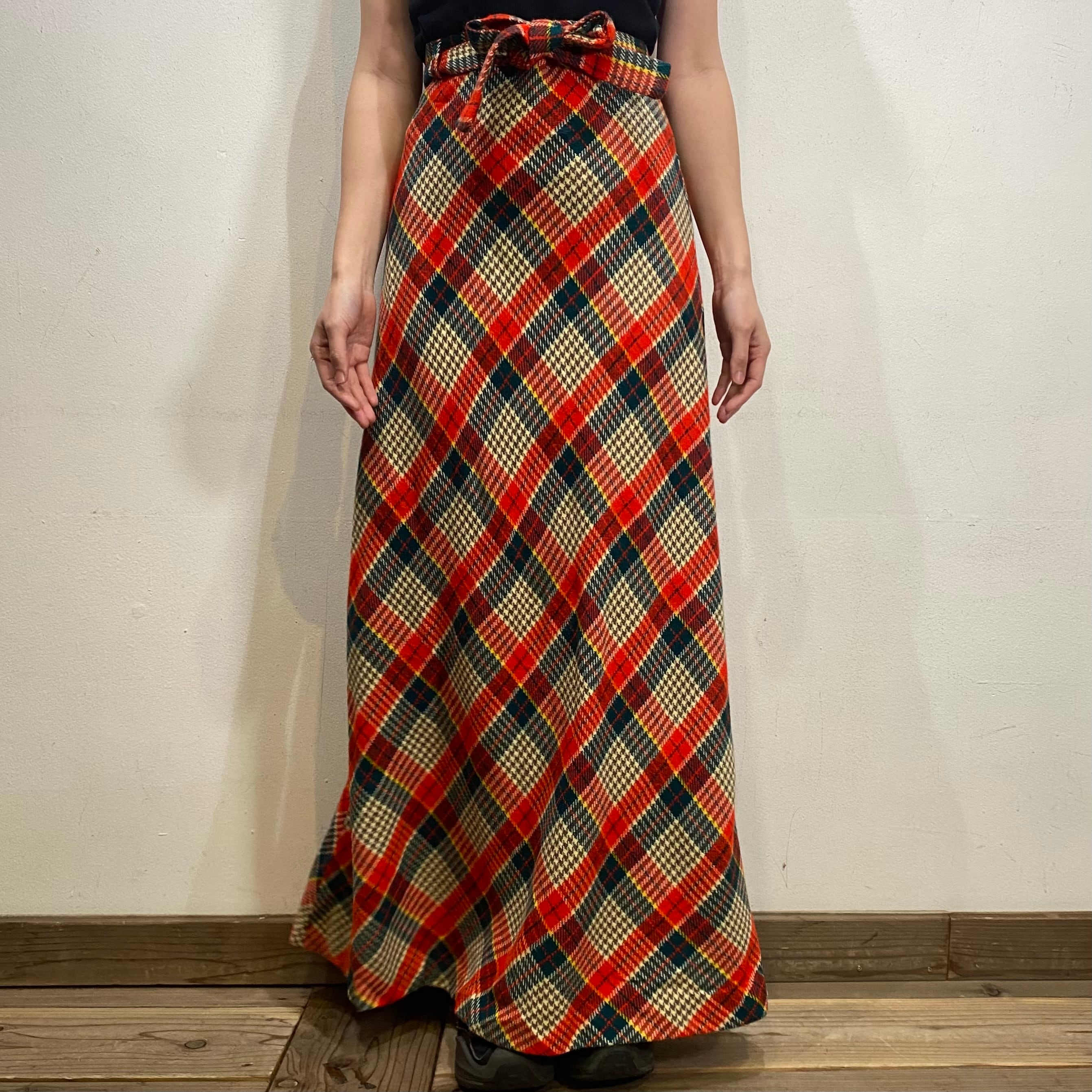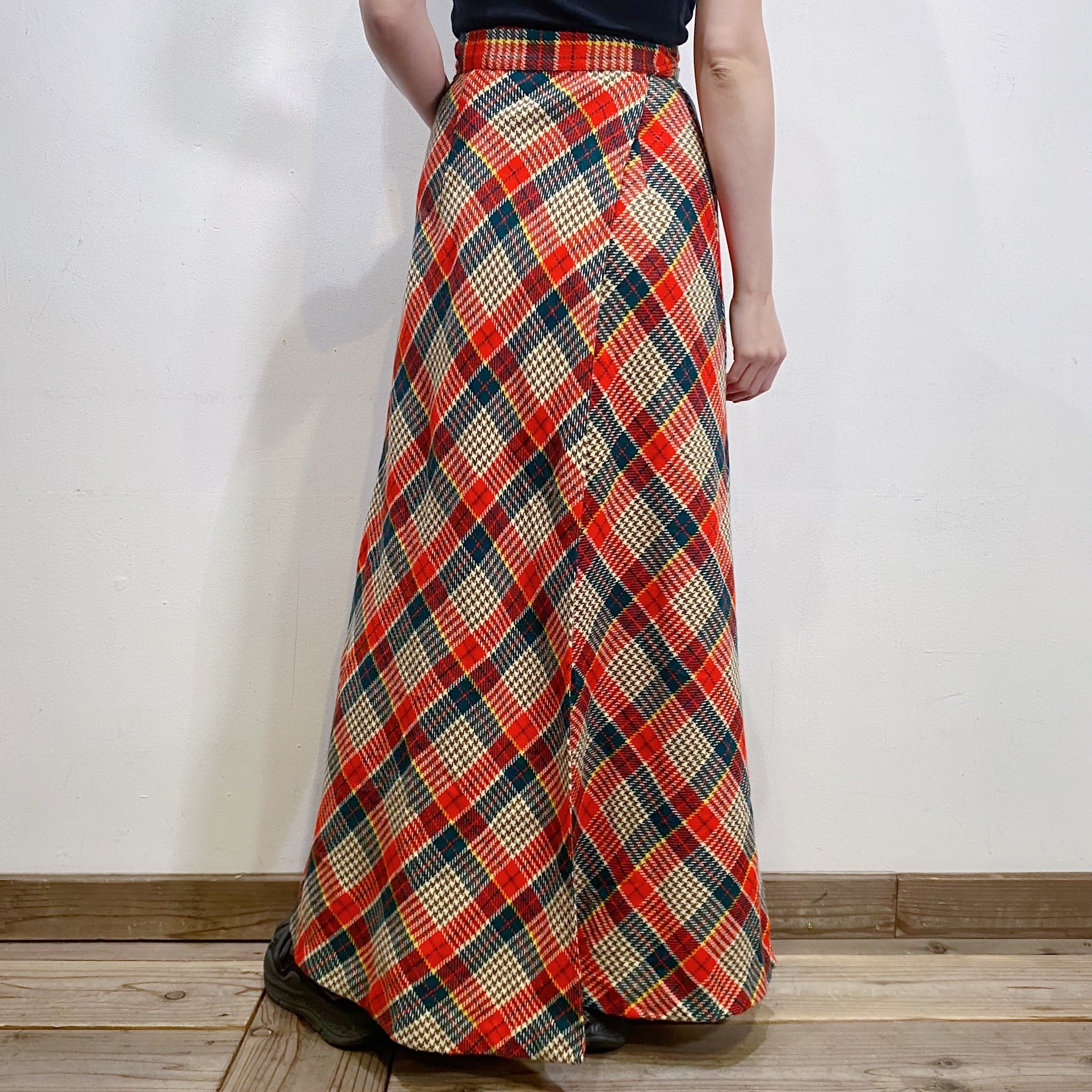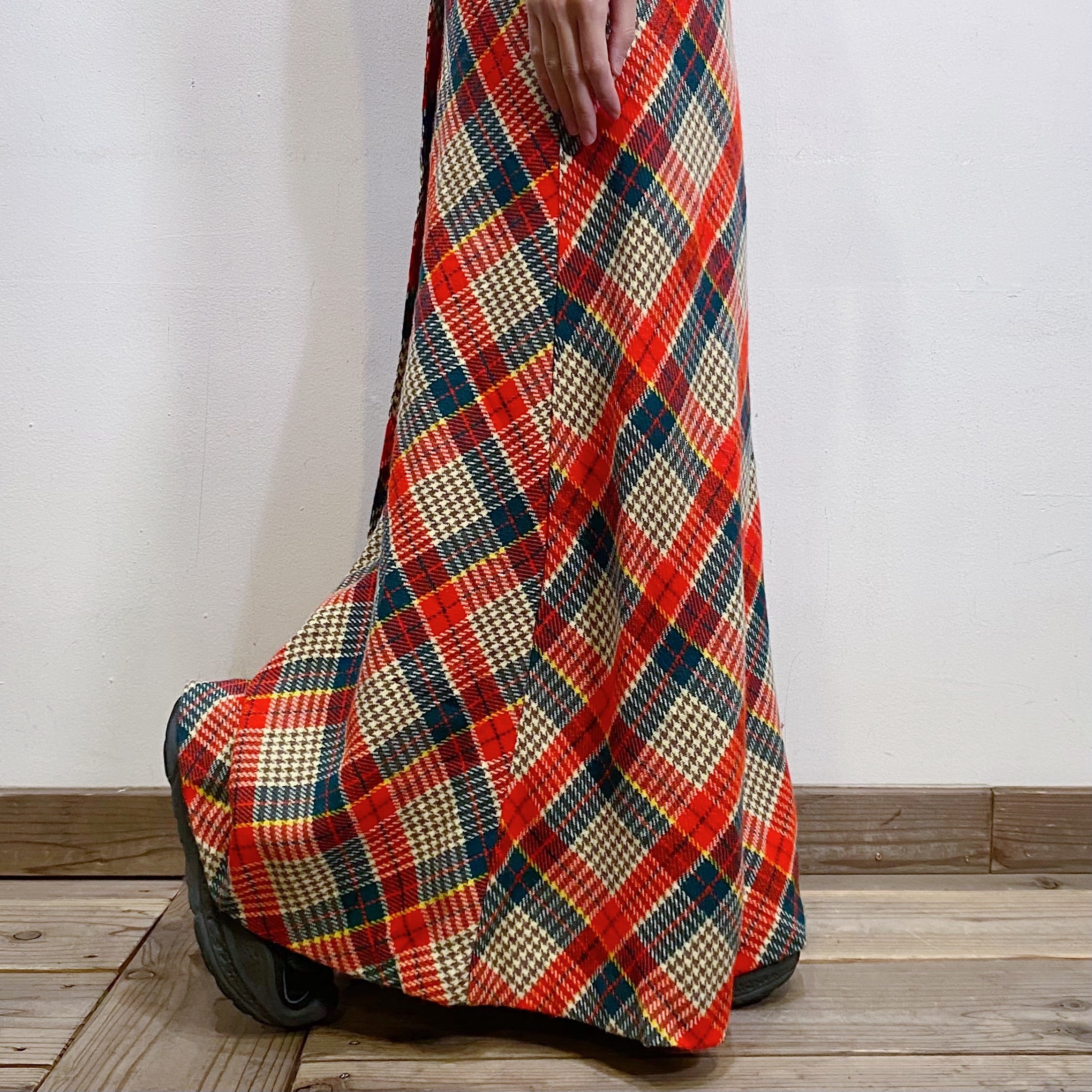 赤チェックが可愛い、70年代のロングスカートです。