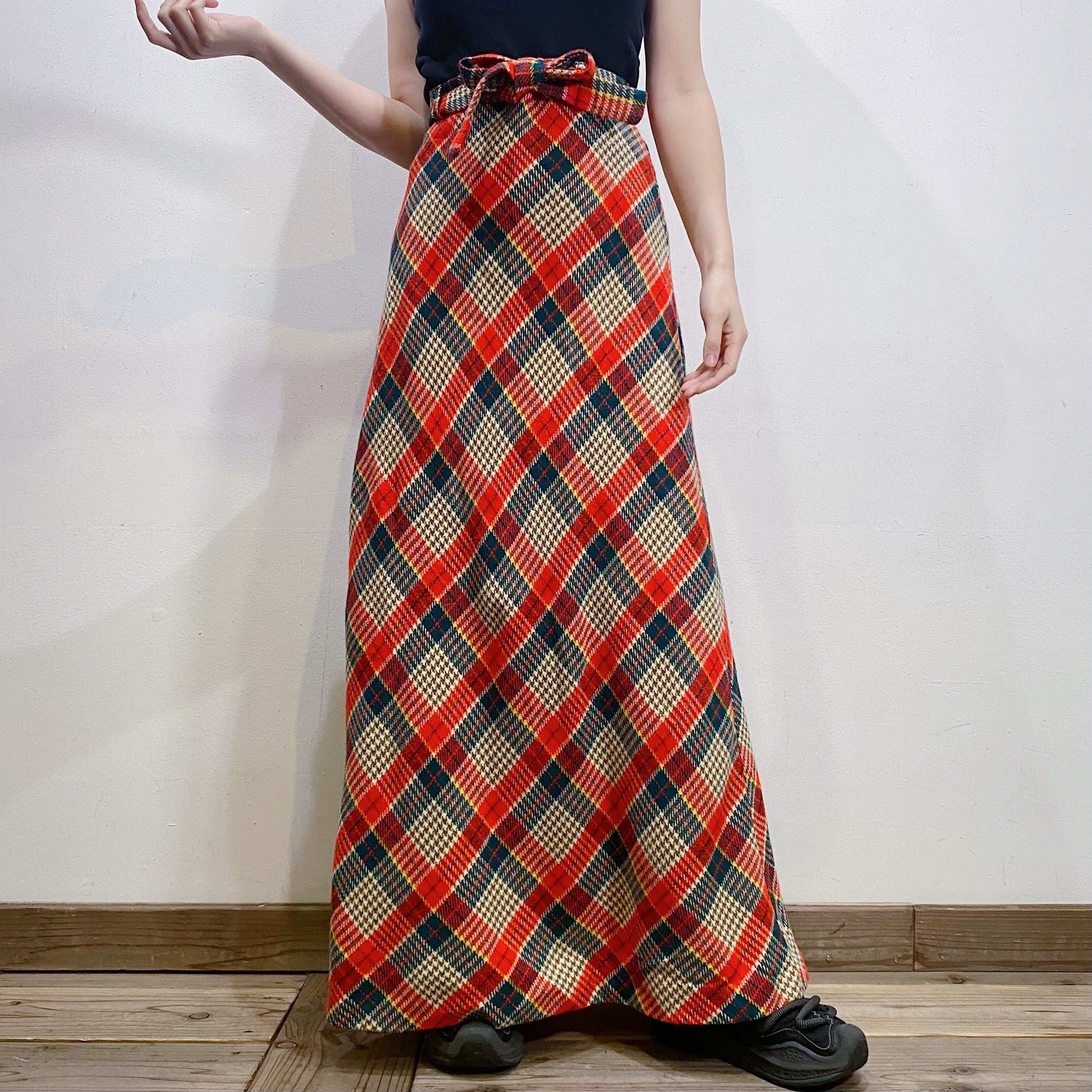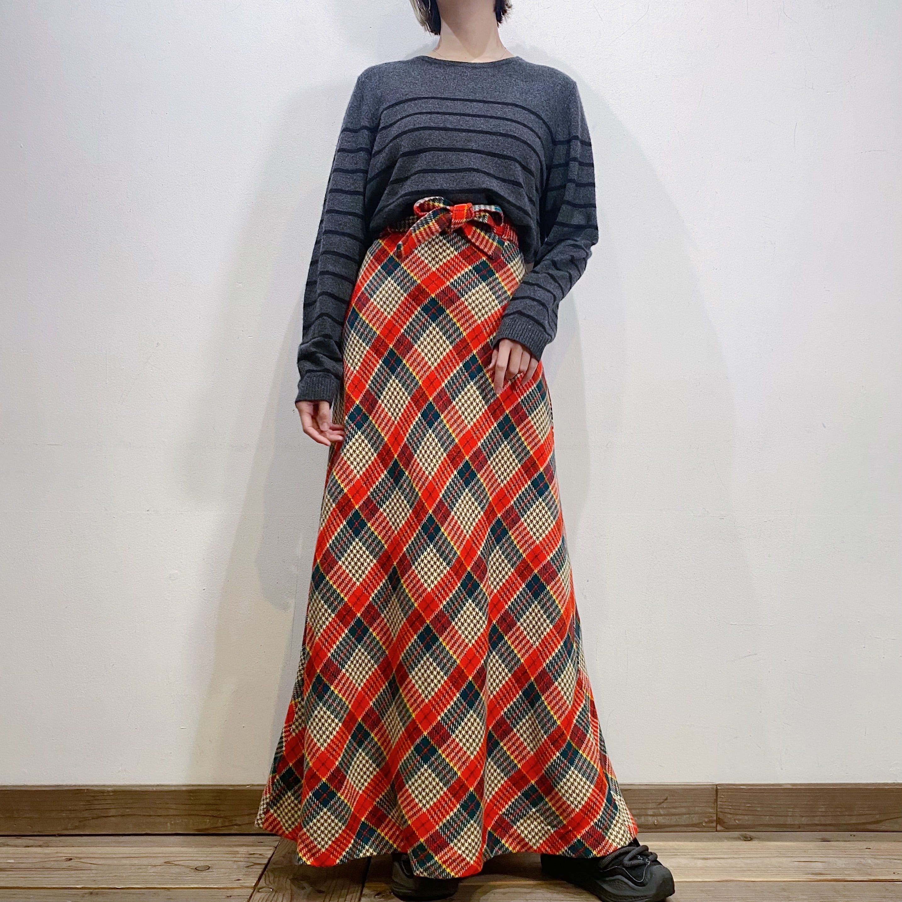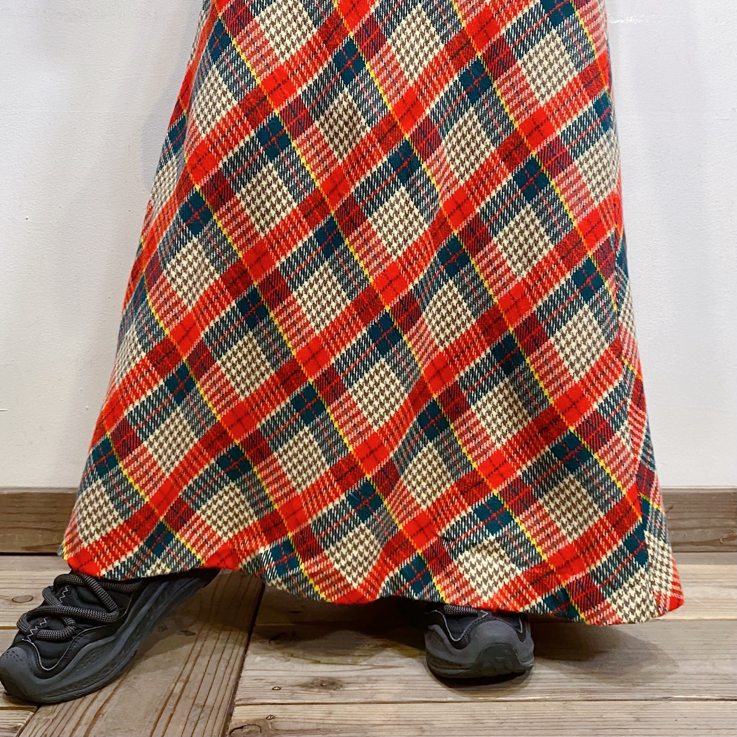 赤チェックが可愛い、70年代のロングスカートです。
