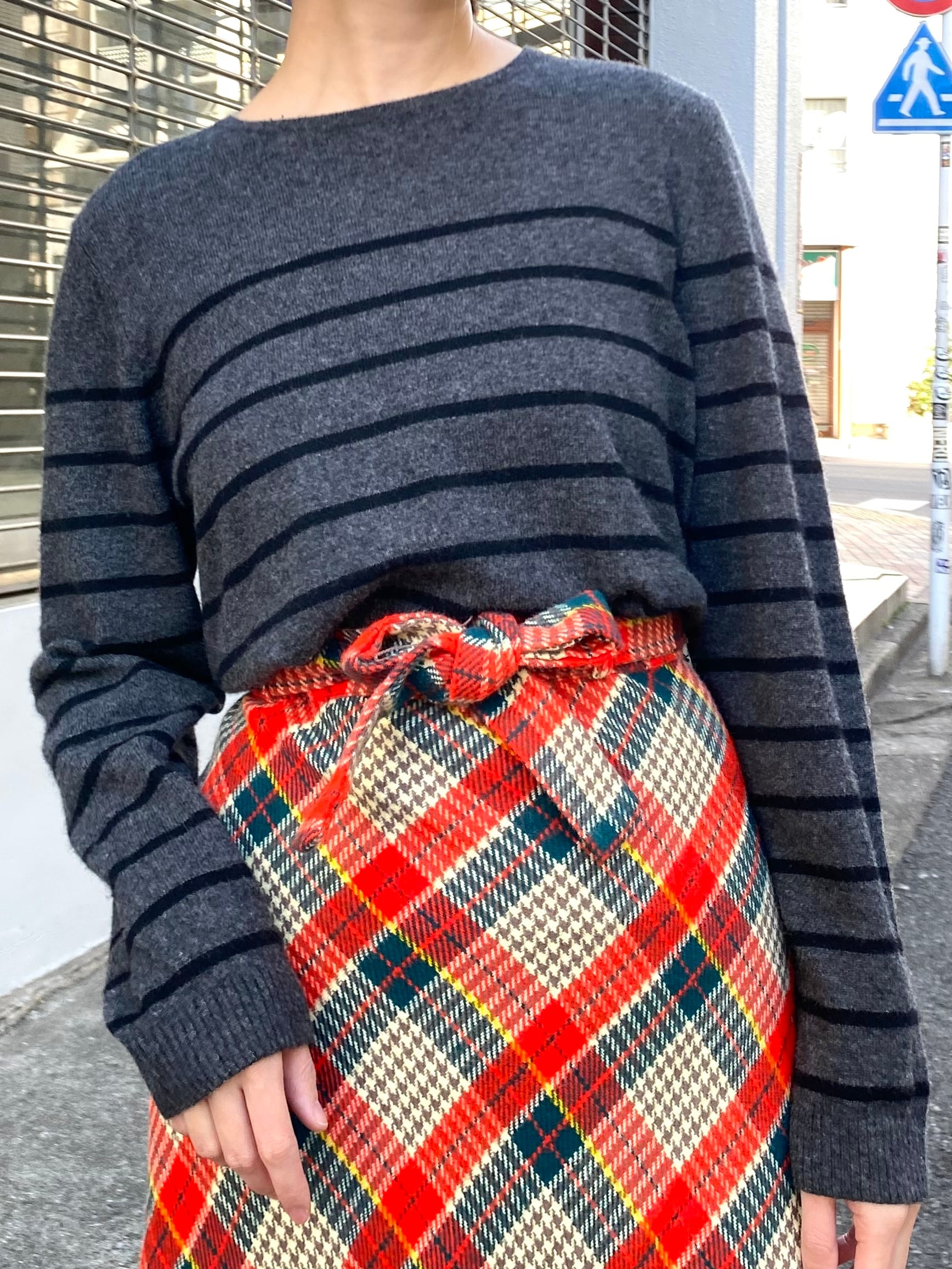 グレーとブラックのストライプが可愛い、L.L.Beanのカシミヤセーターです。