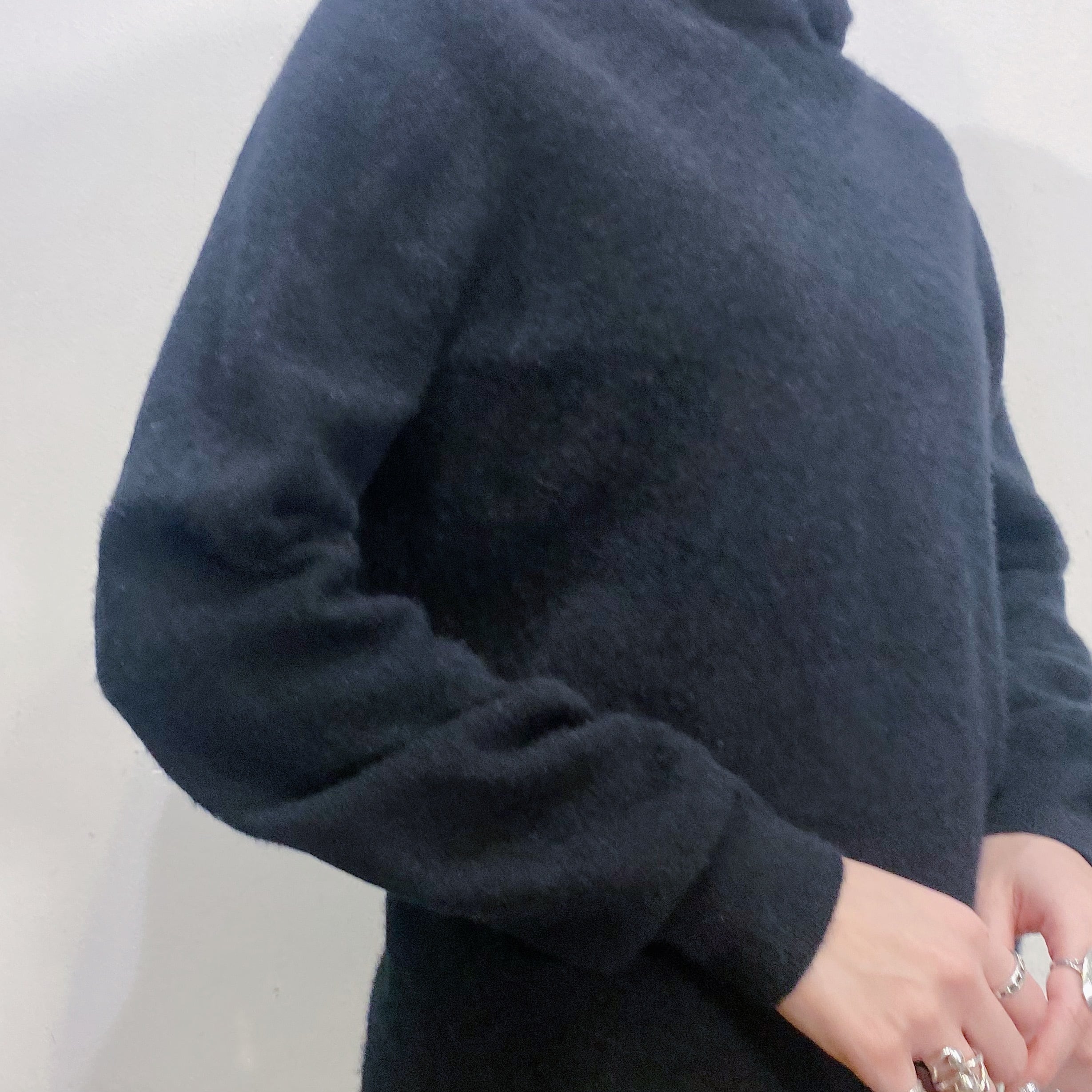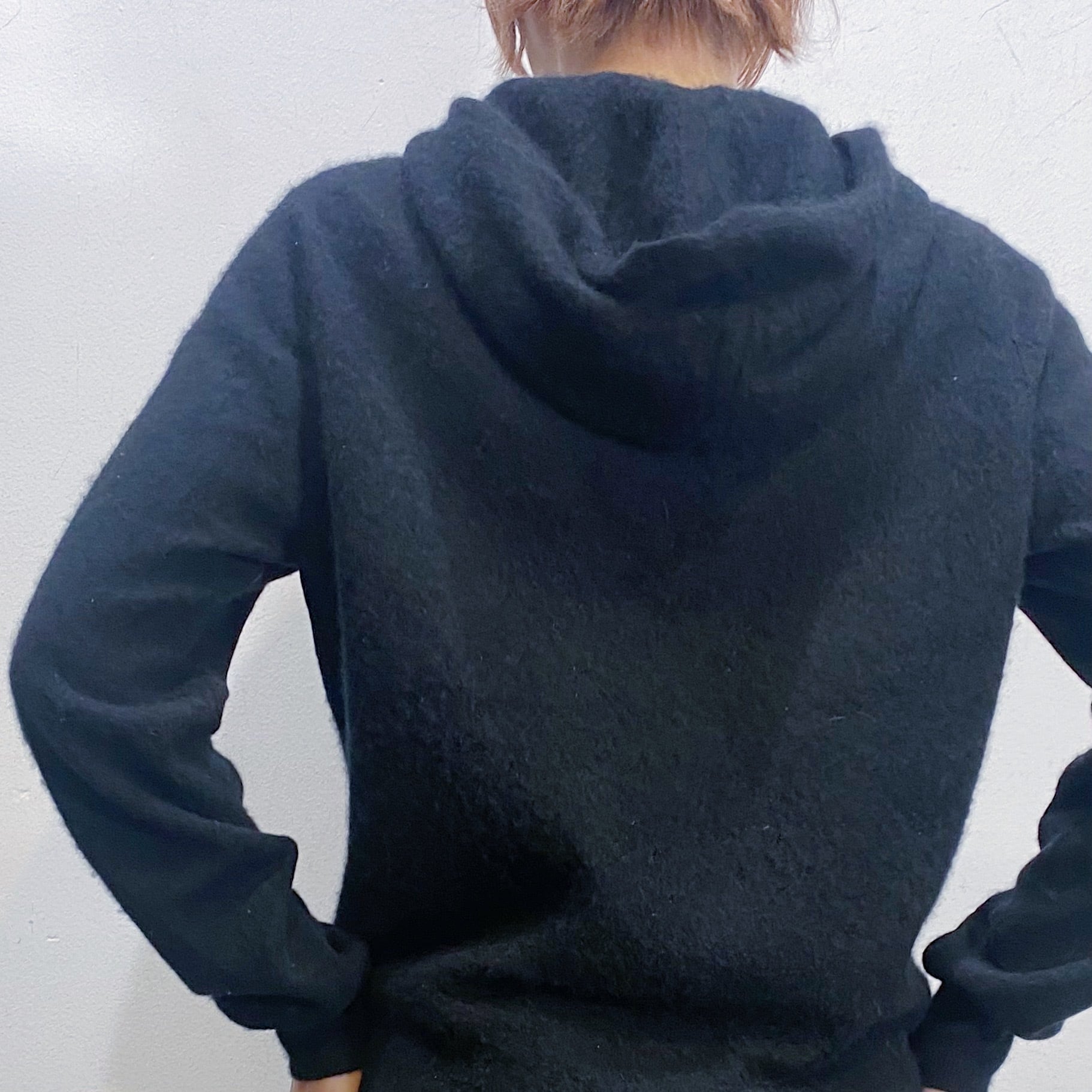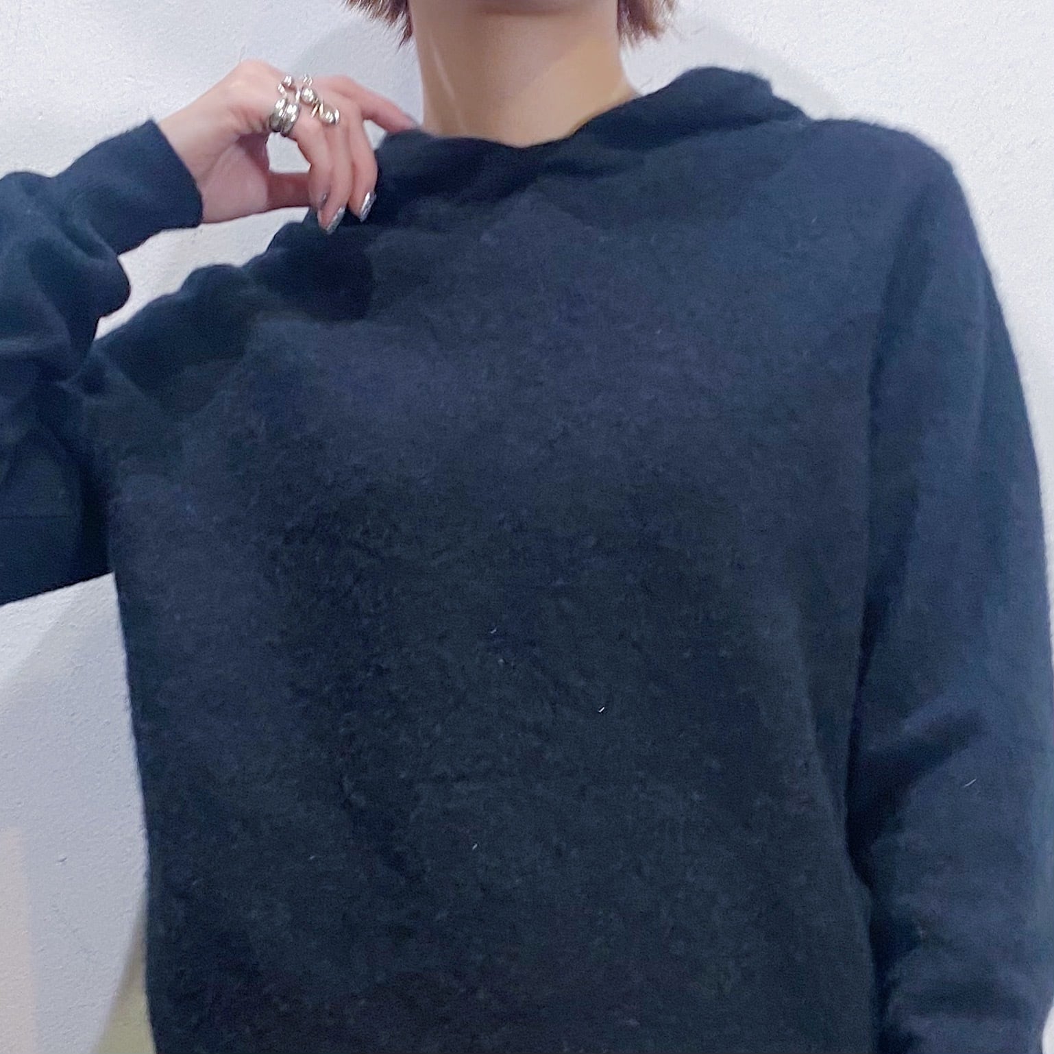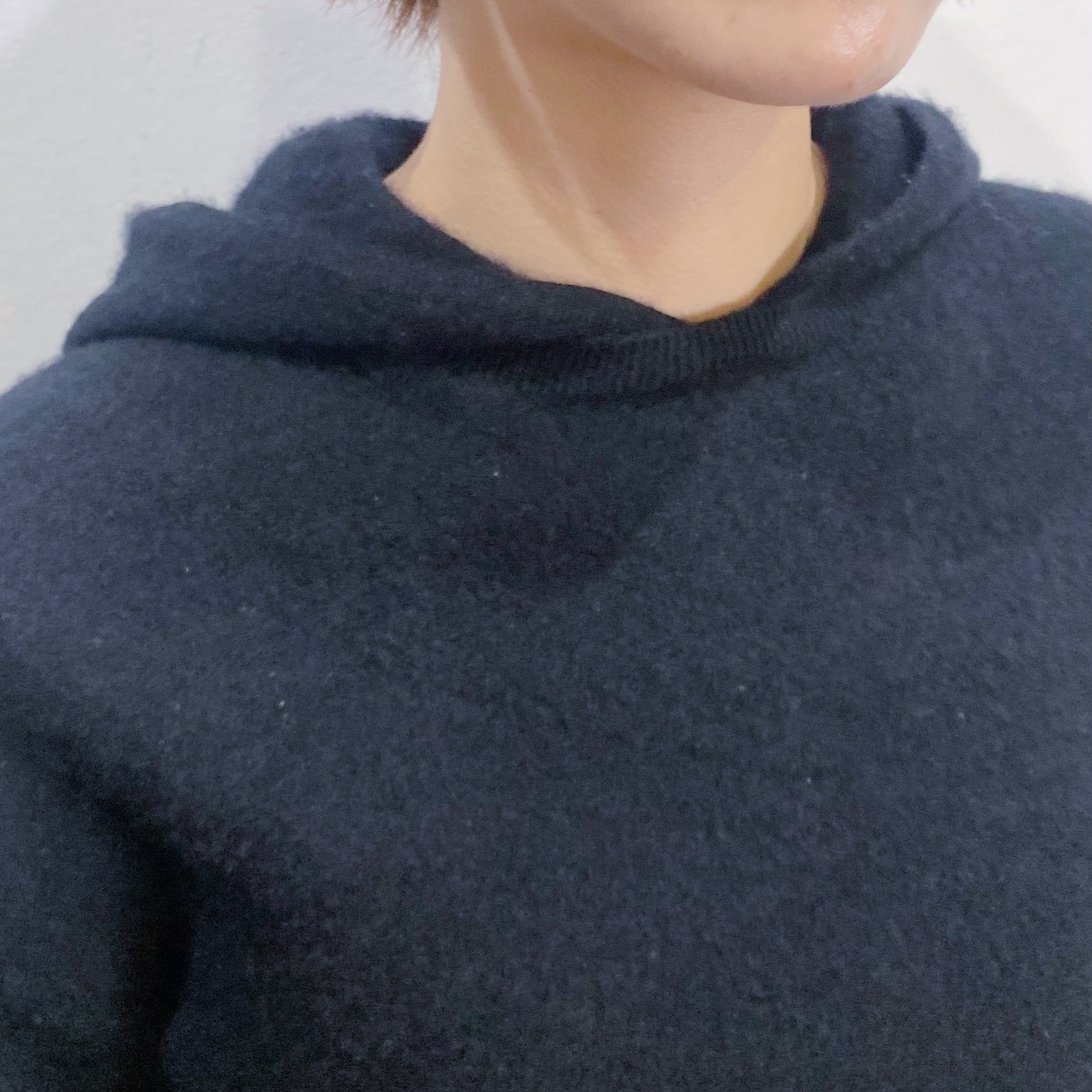 カシミアには少し珍しいフーディータイプのプルオーバーニットです。