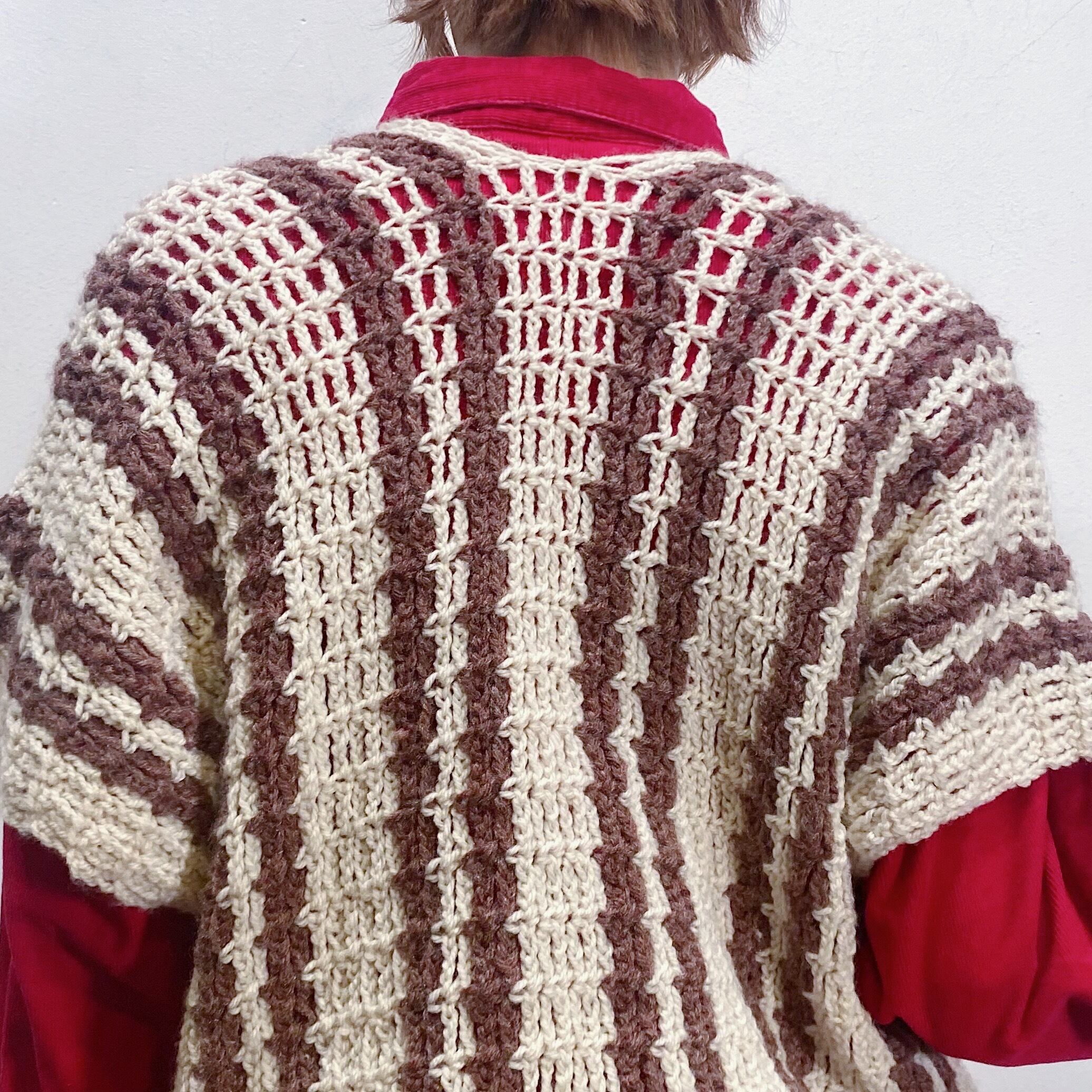 ざっくりとした編みにゆるっとしたサイズ感で着こなしやすい一枚です。