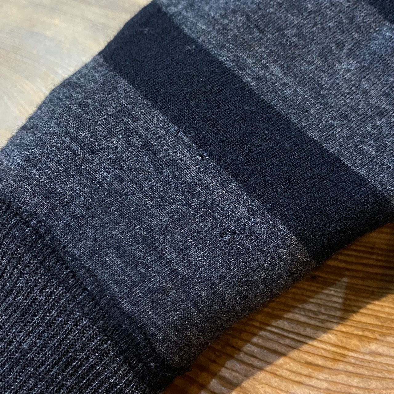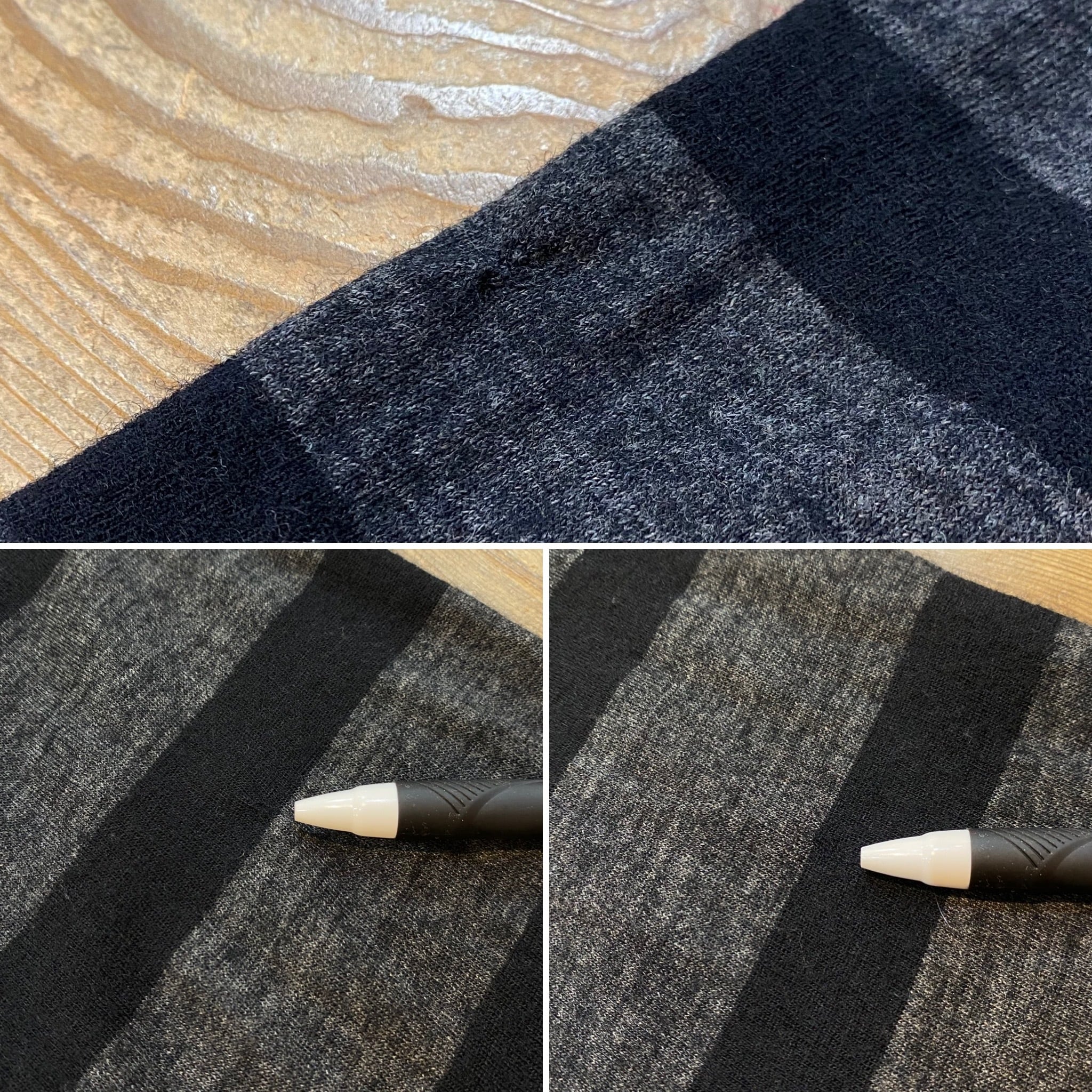 ヒップ付近には小さなダメージを裏から接着芯で塞いだ跡が見受けられます。