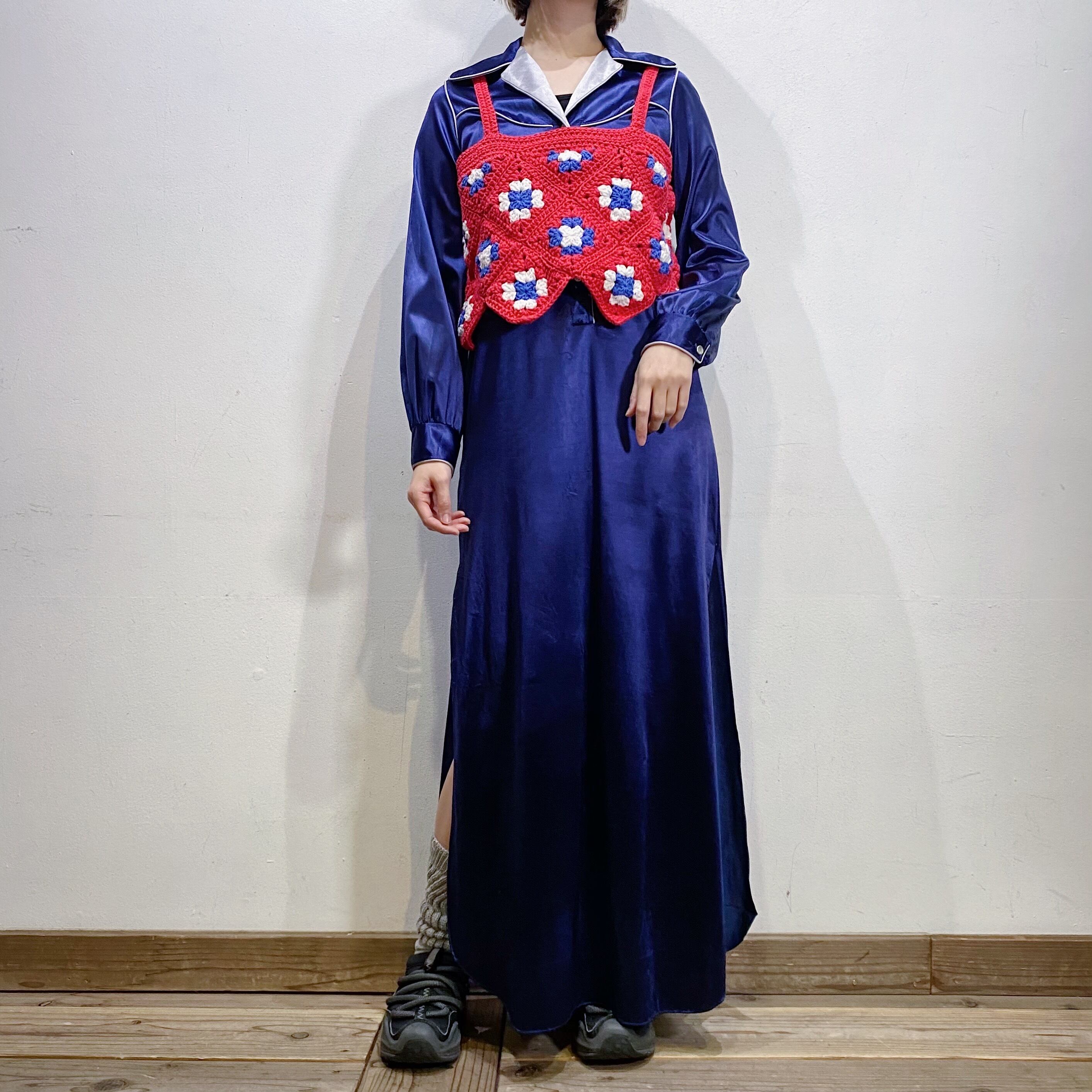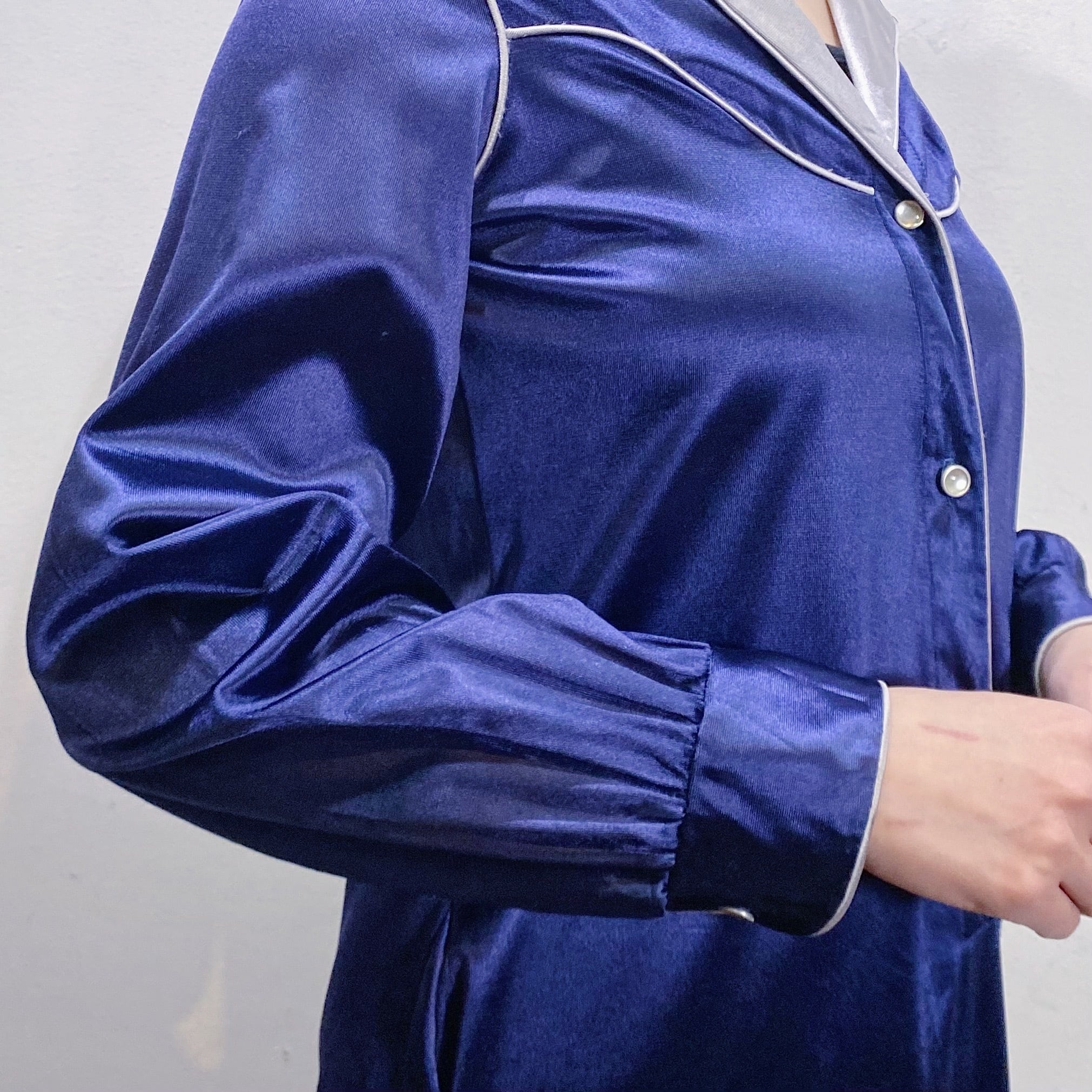 “JOSEPH MAGNIN” navy acetate long shirt dress【1103】