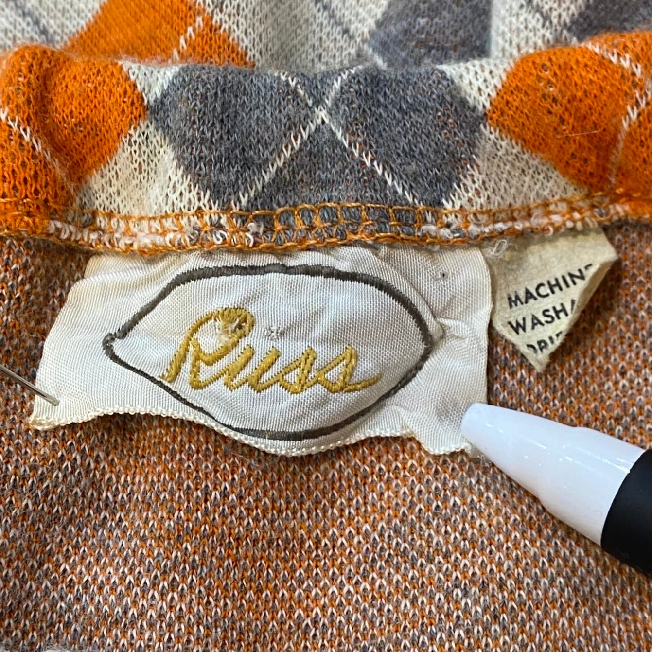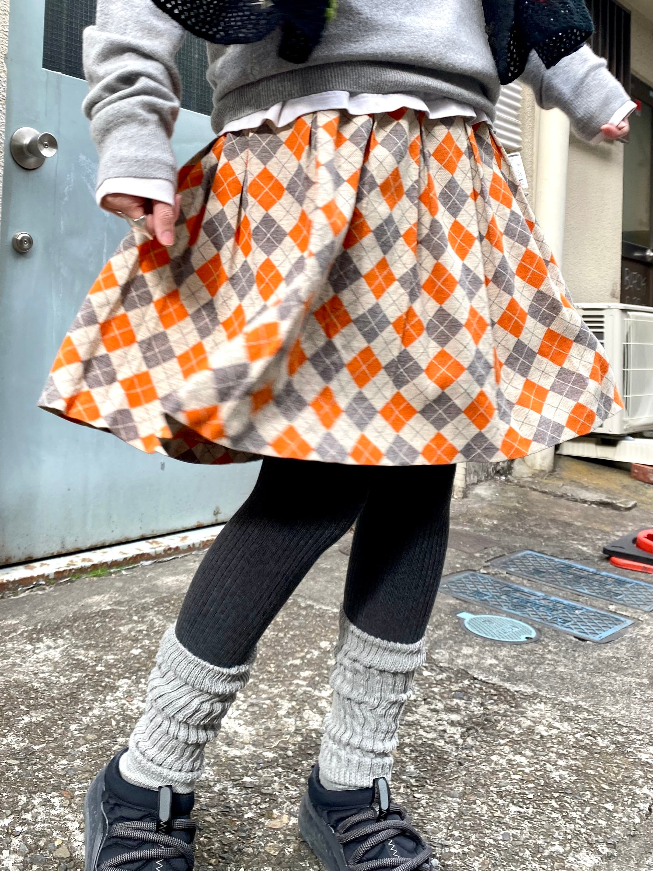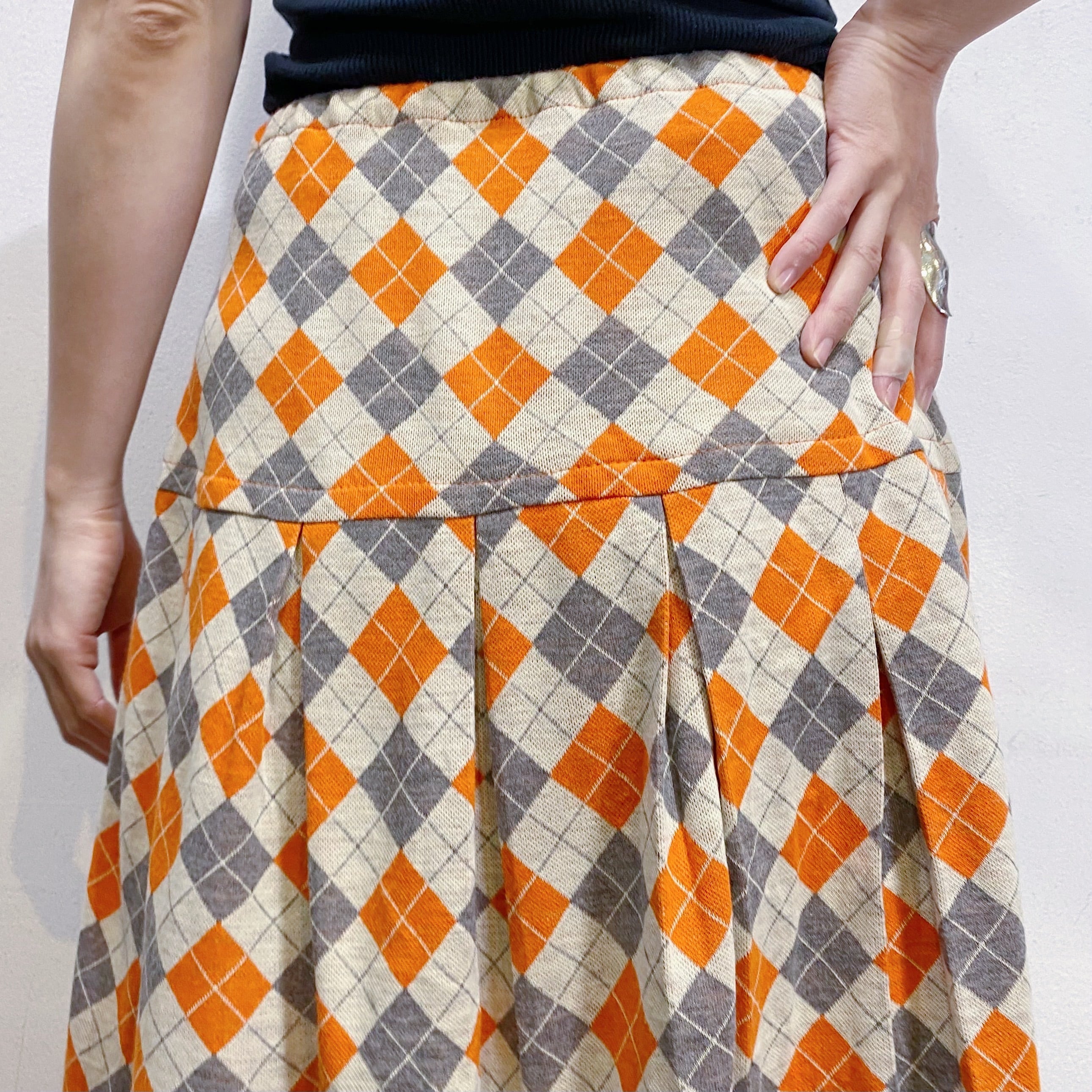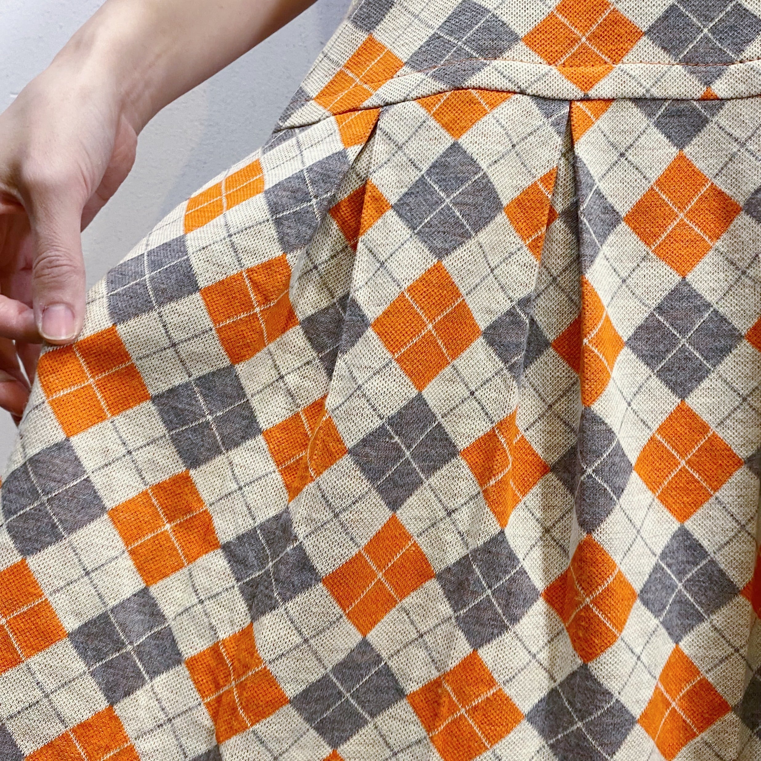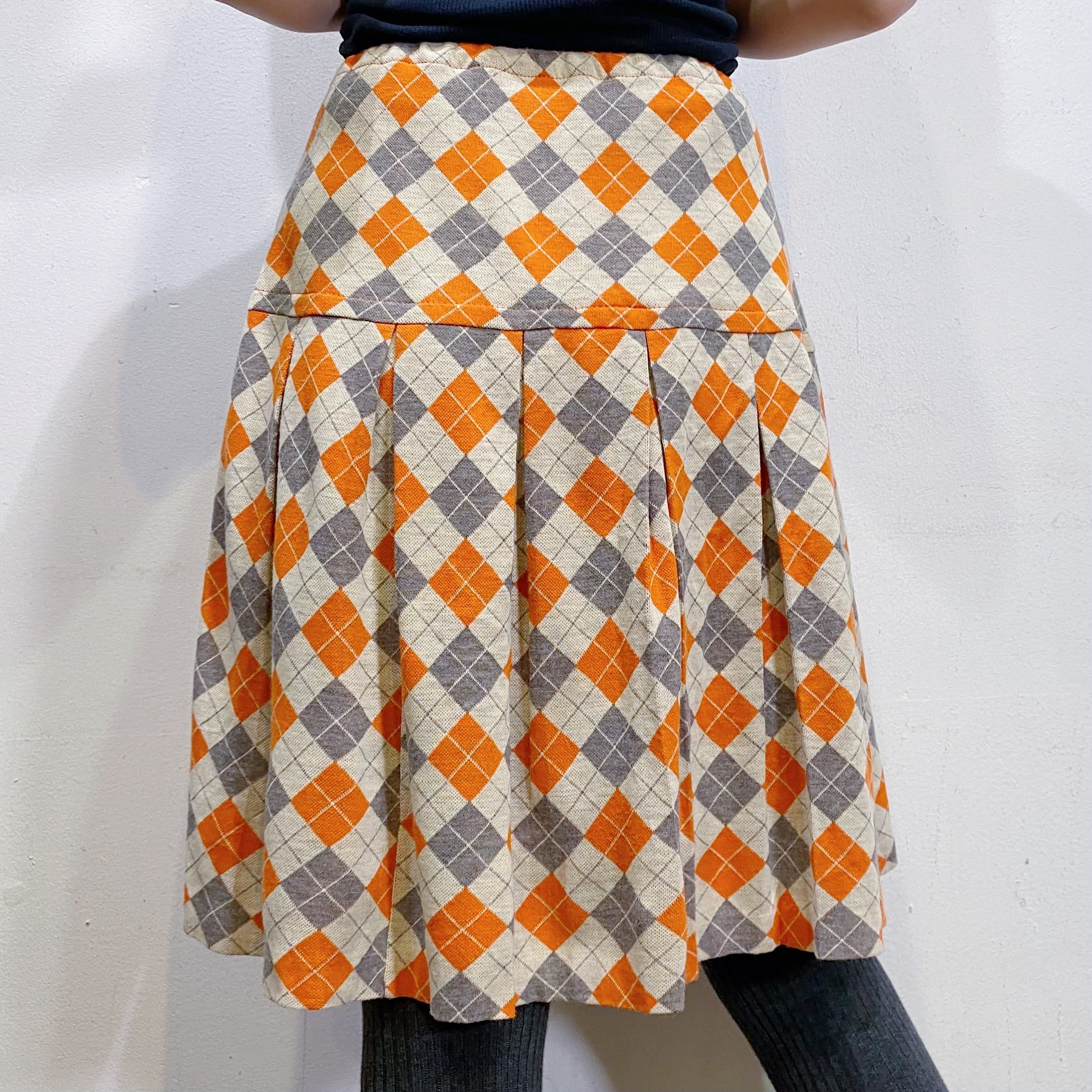 オレンジとグレーのアーガイルが可愛い、70年代のミニスカートです。