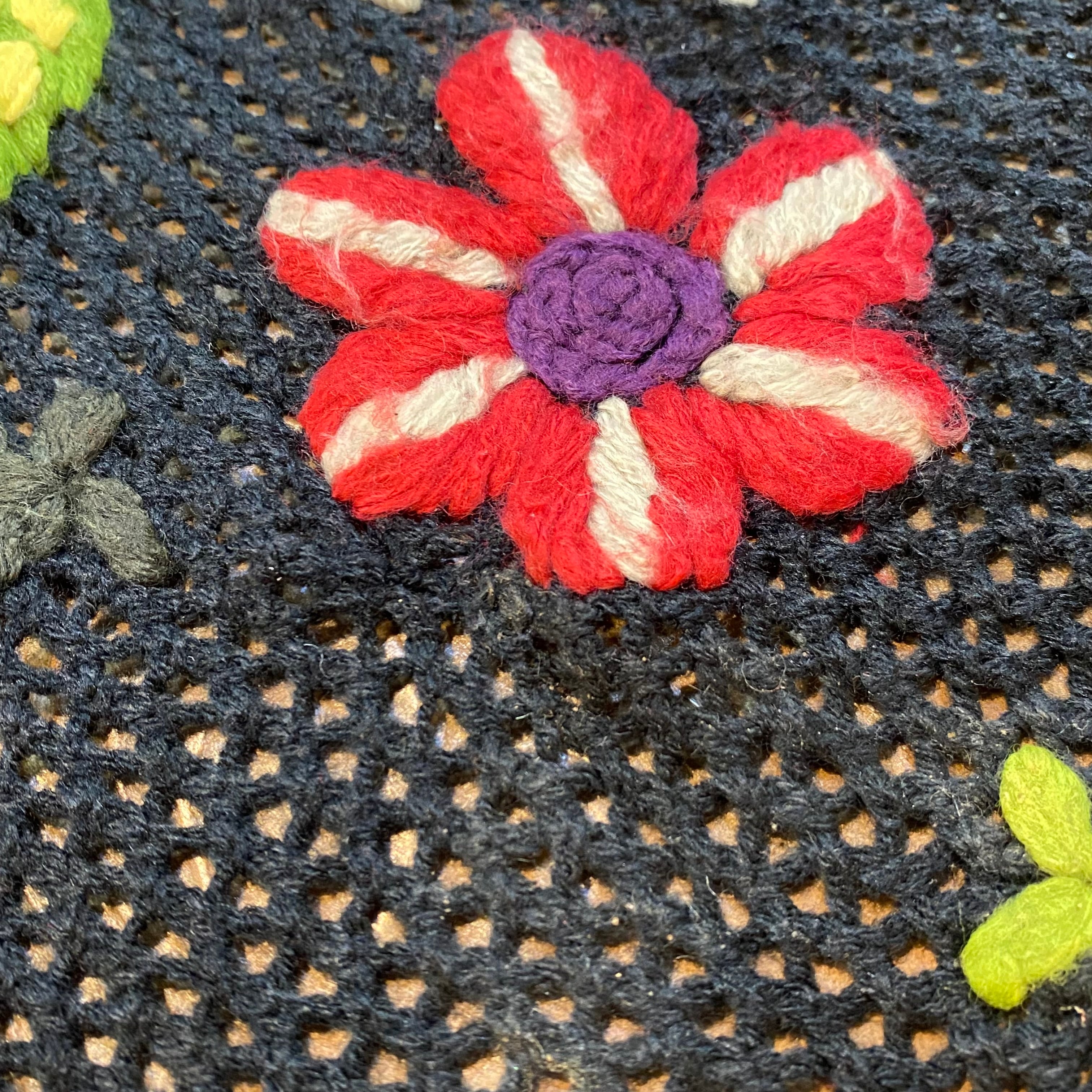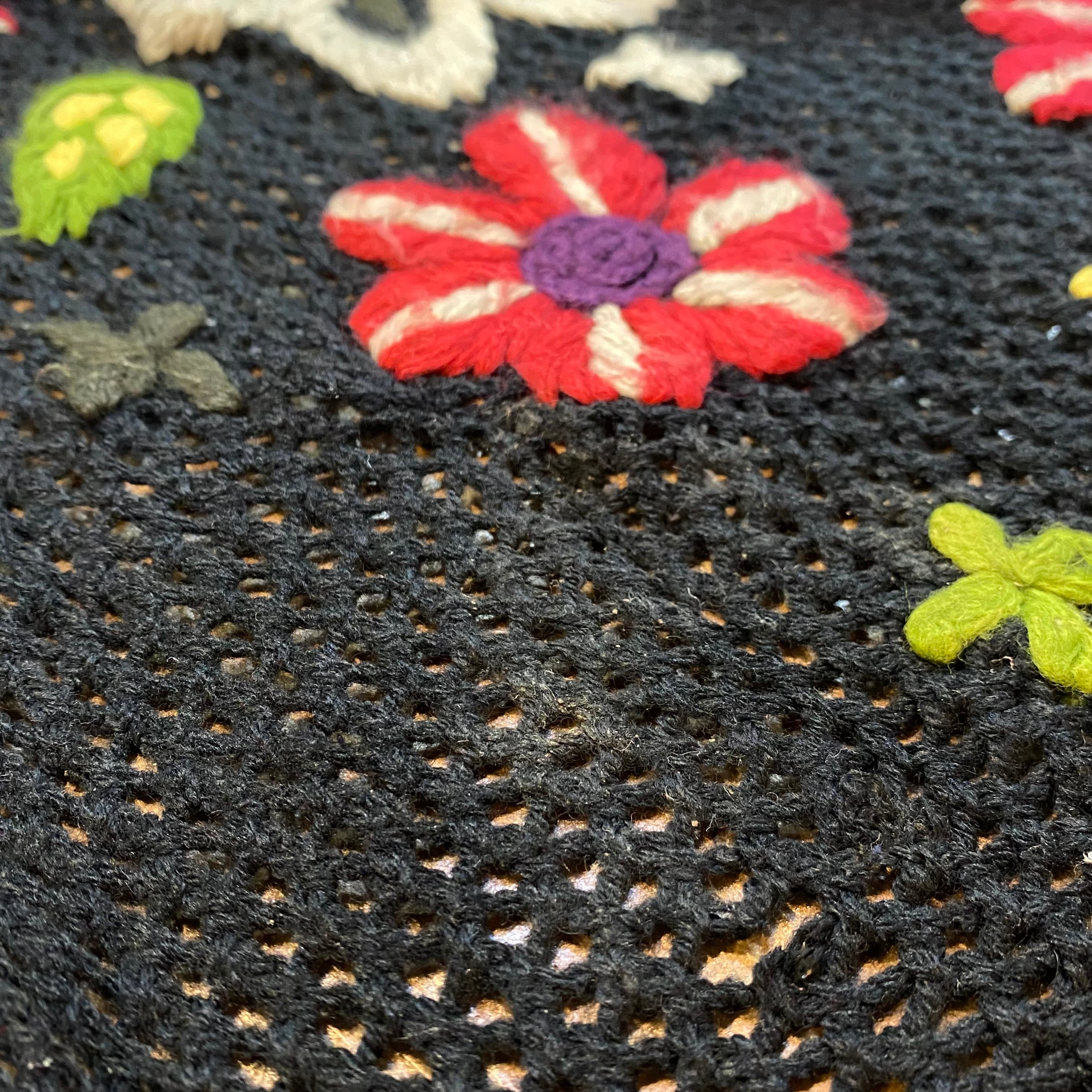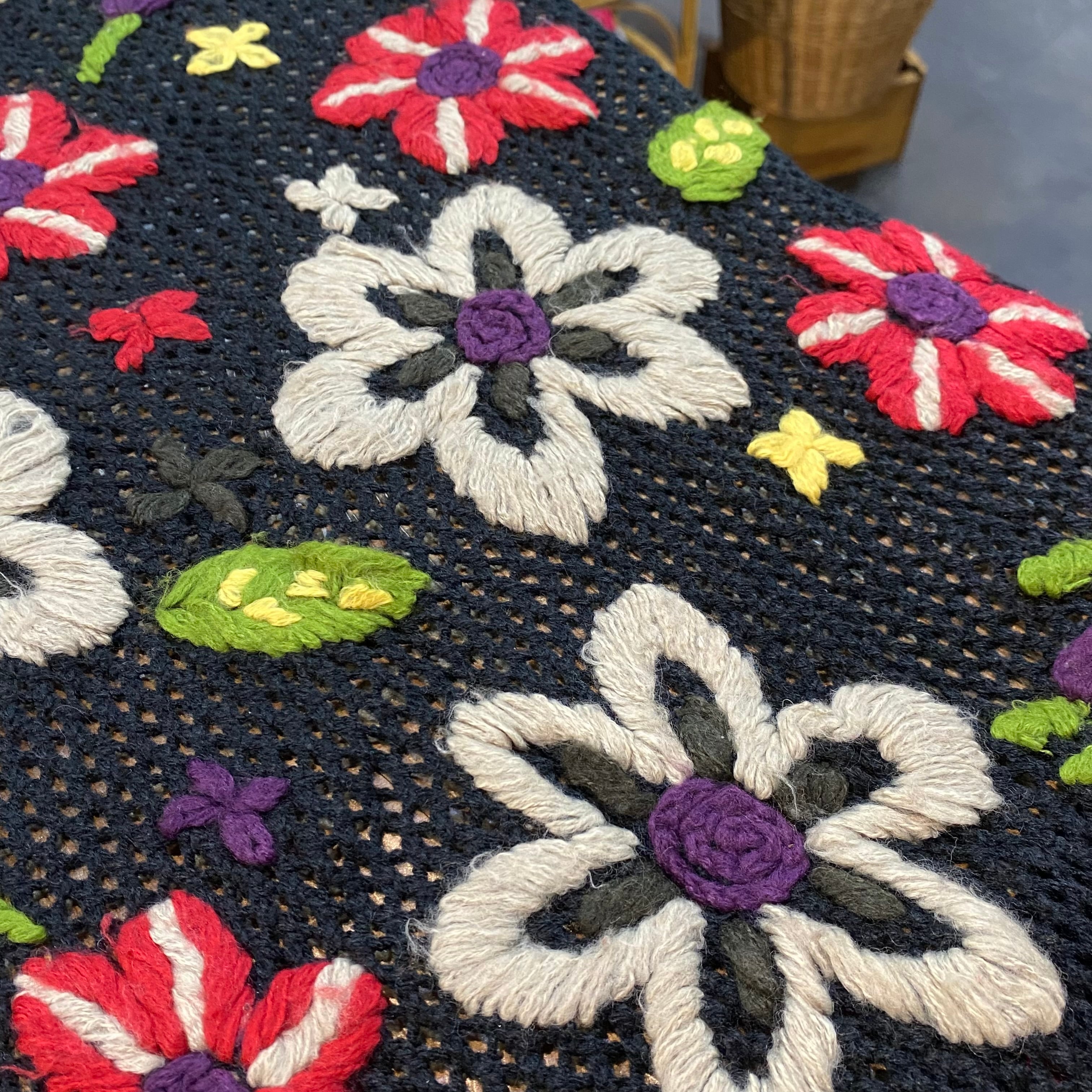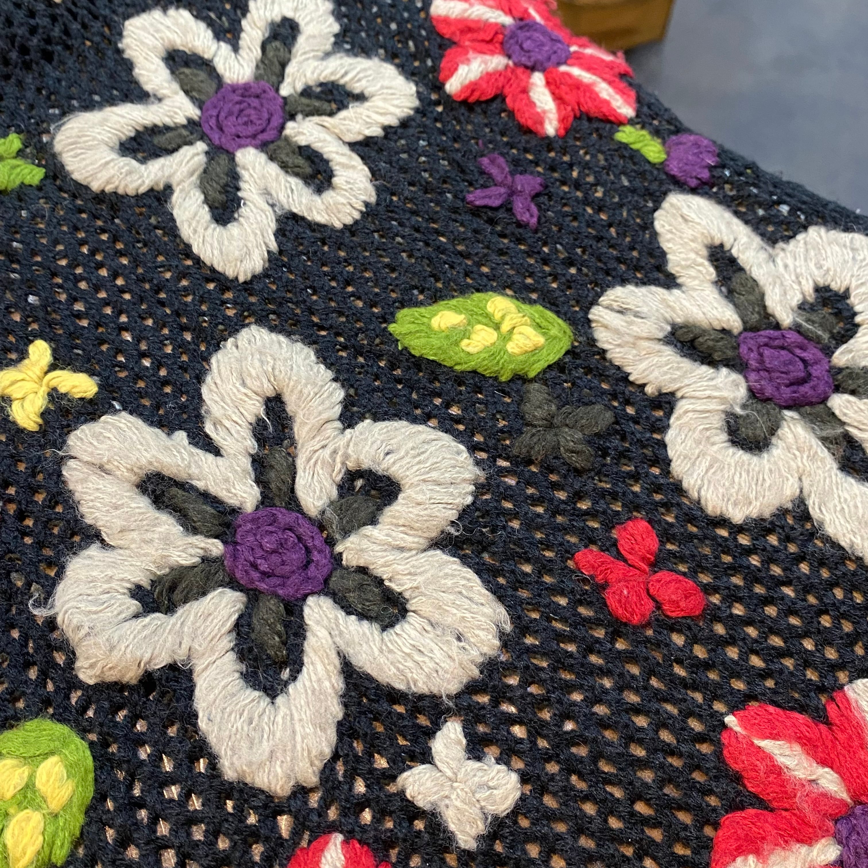 ざっくりとした編みと刺繍のゆるっとした雰囲気がとっても可愛いですよ。