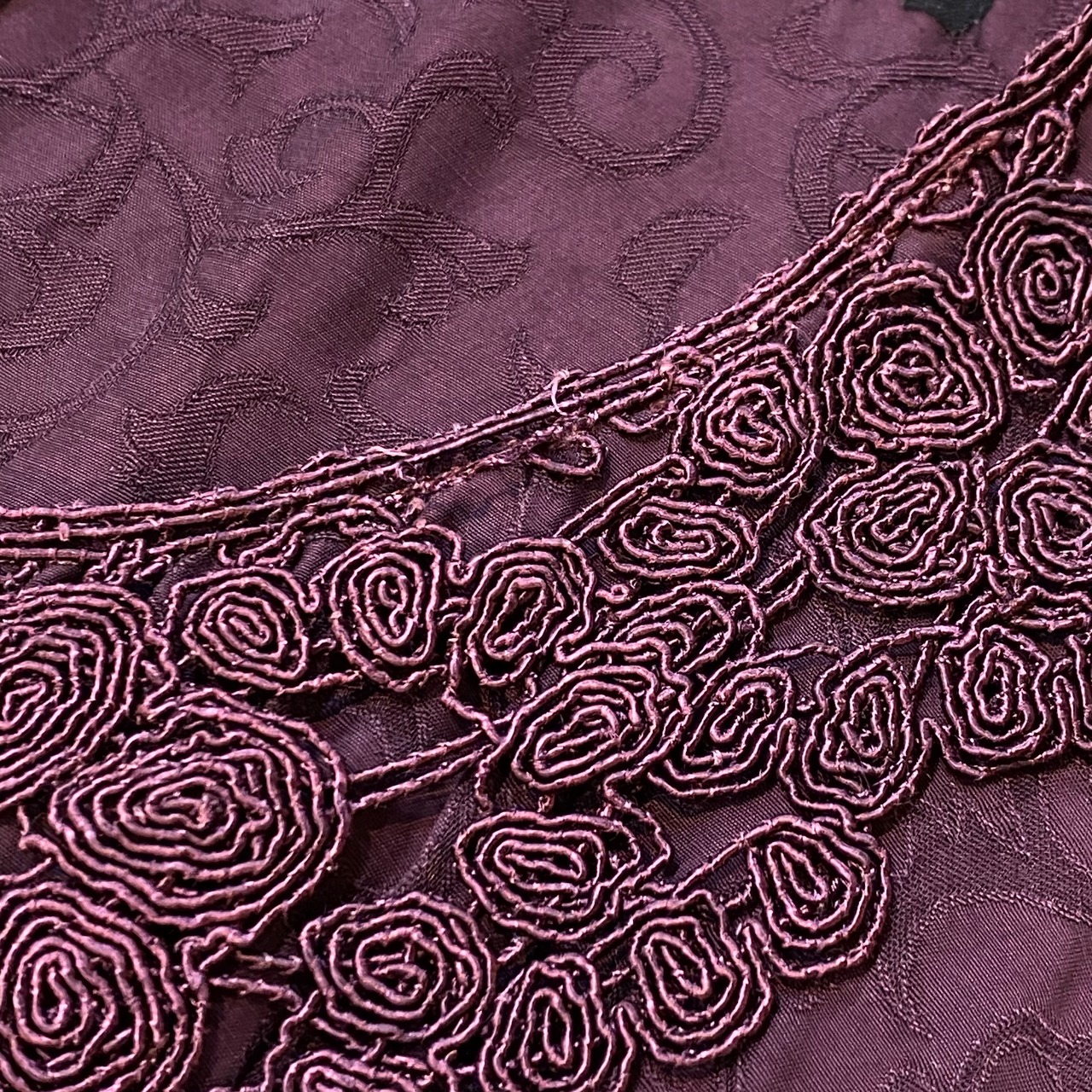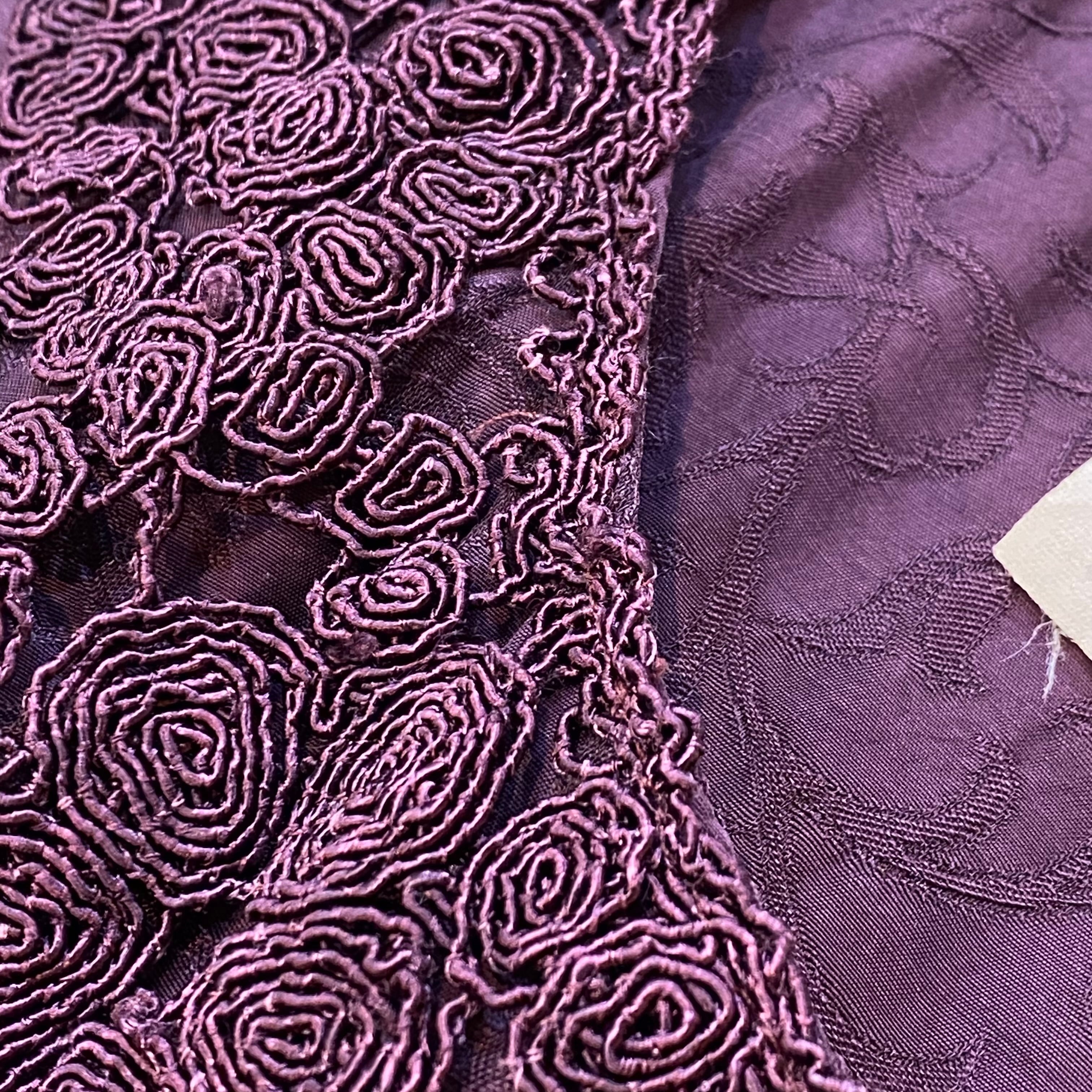 軽度のダメージを裏から接着芯で塞いだ跡が見受けられます。
