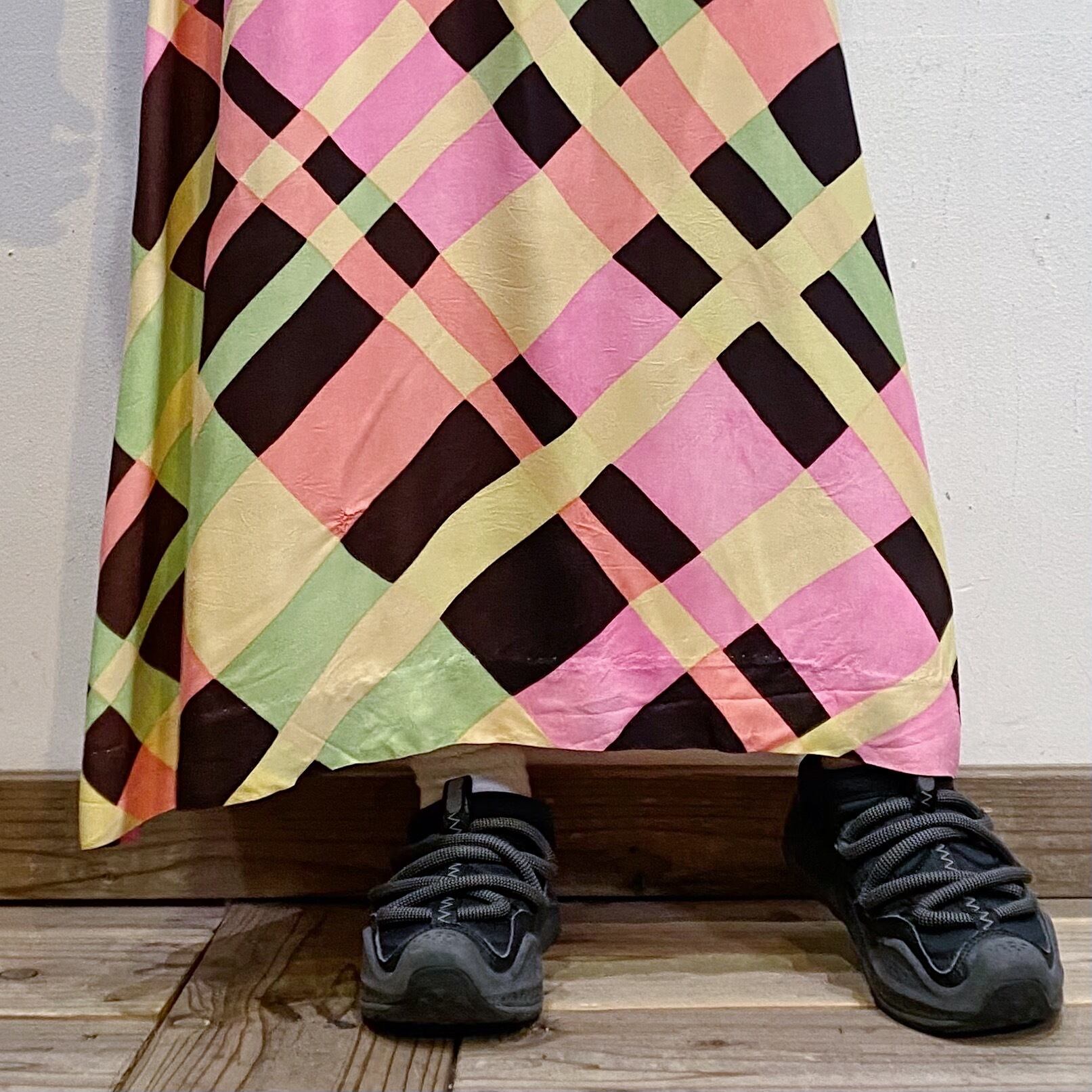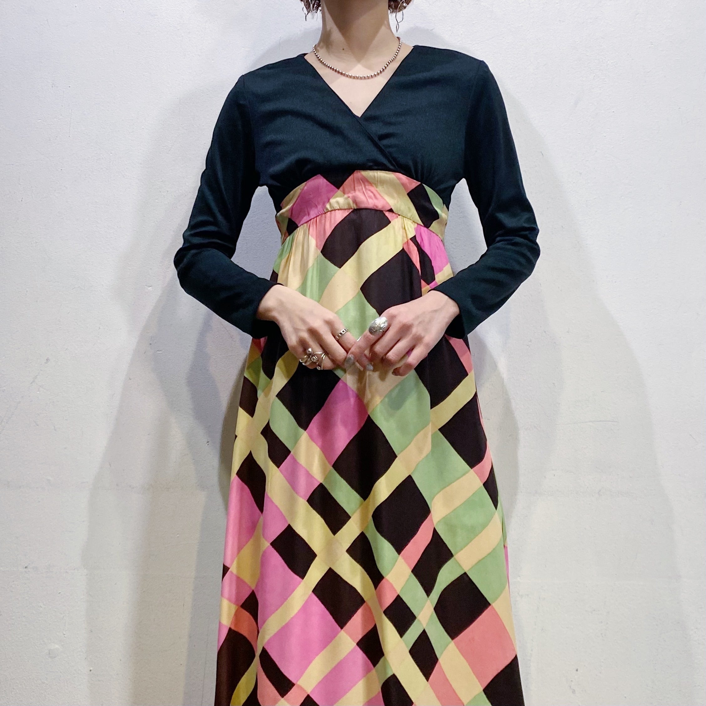 ピンクやグリーン、イエローなどのチェックの色合わせが可愛い、70年代のワンピースです。