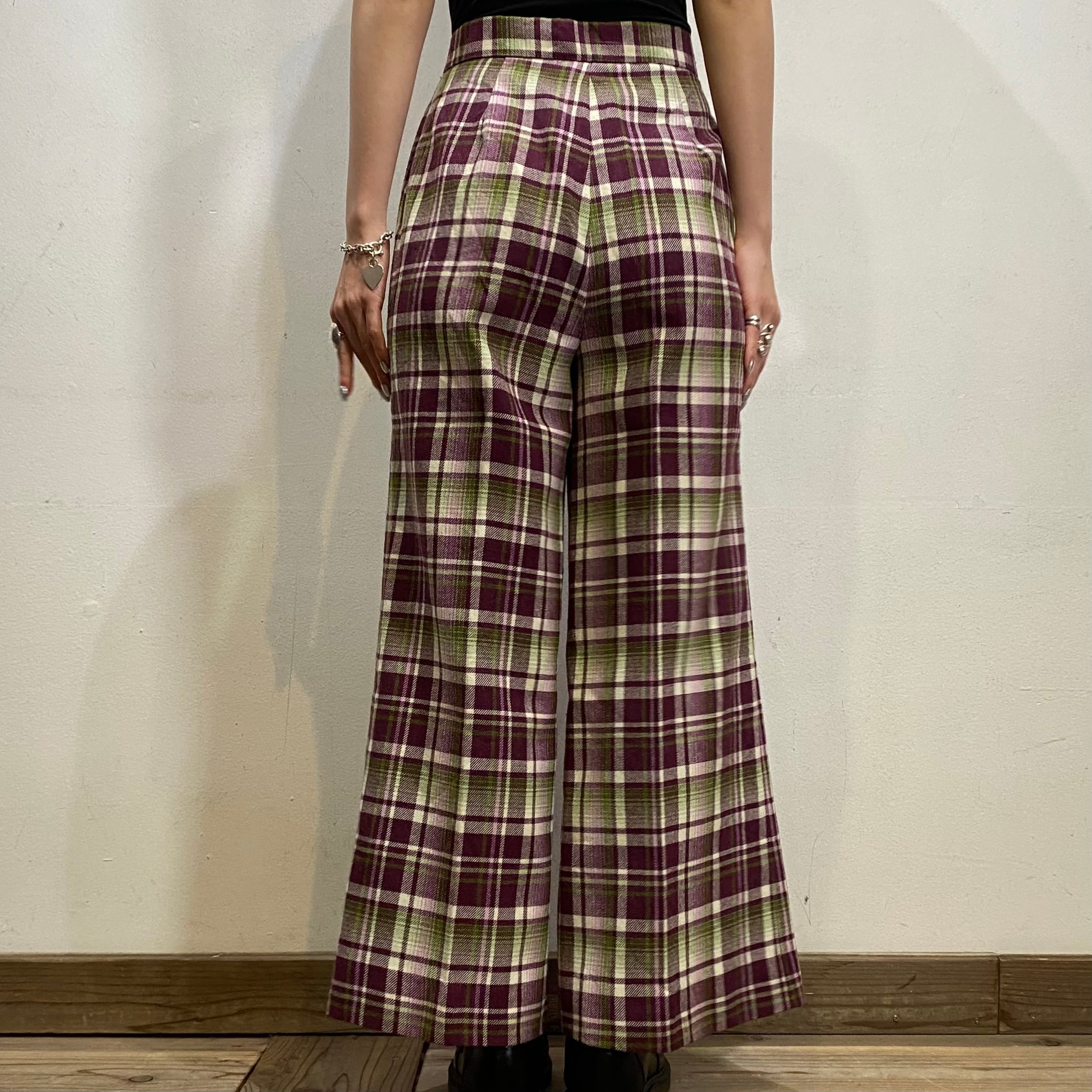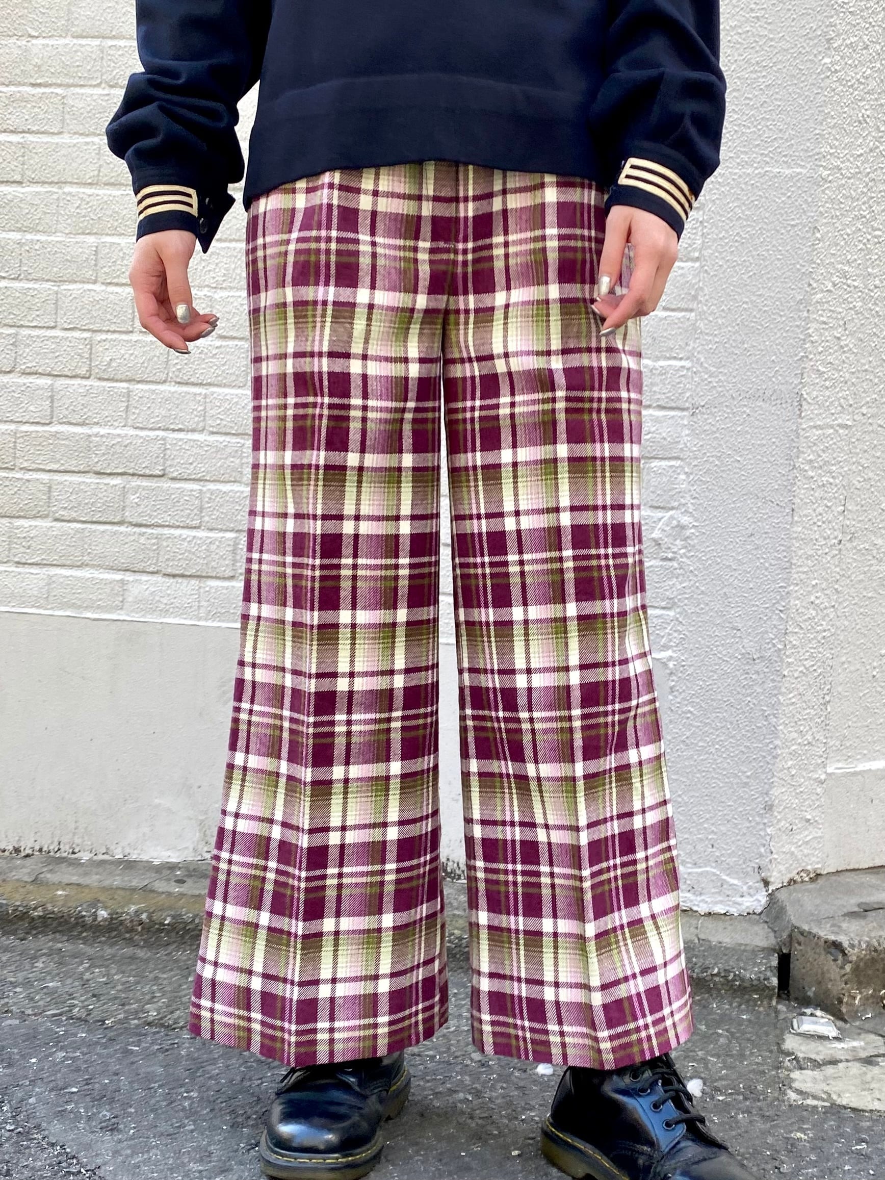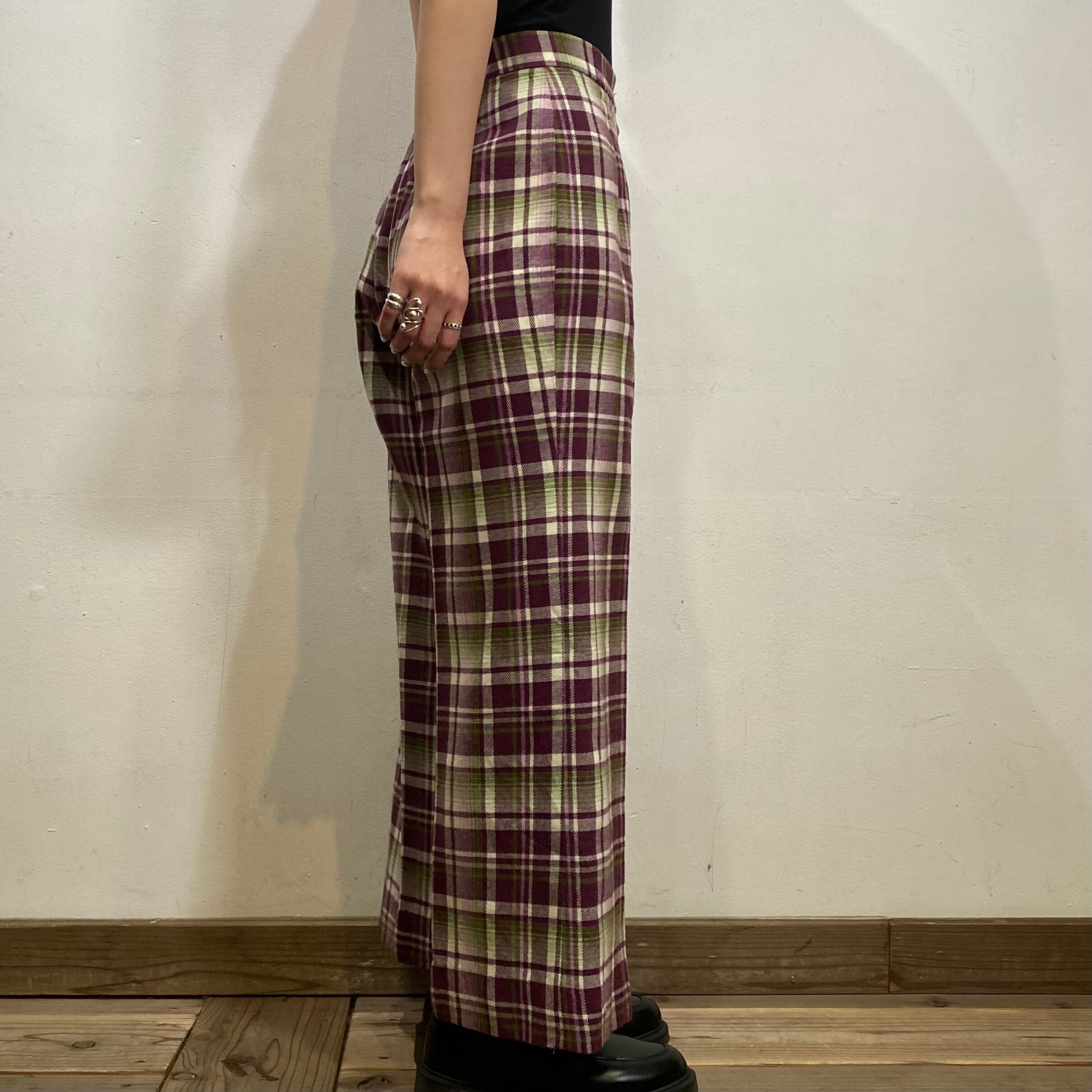 パープルとグリーンの色合わせが可愛い、70年代のチェックパンツです。