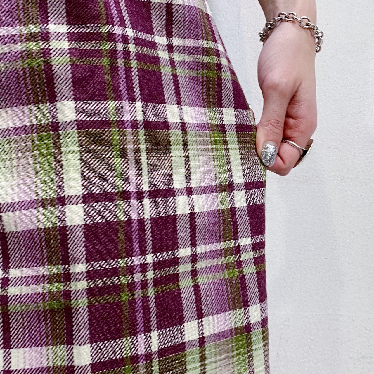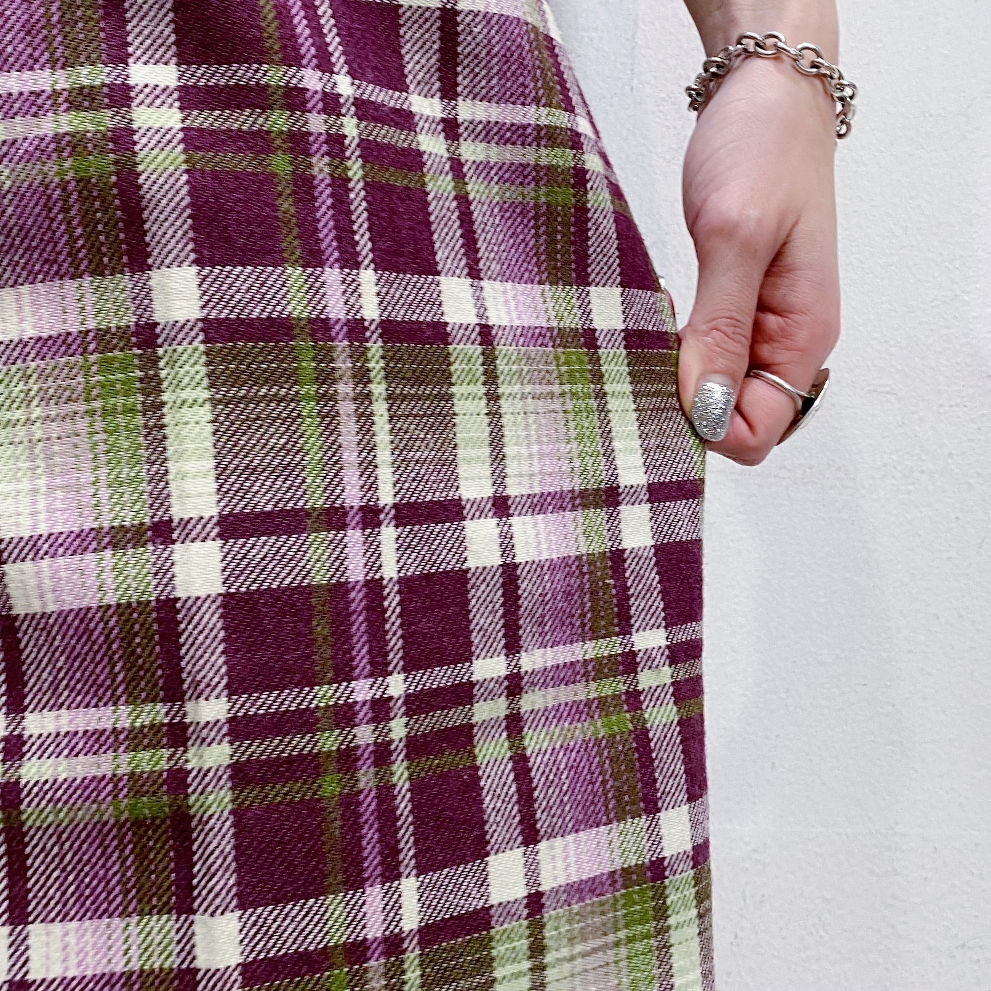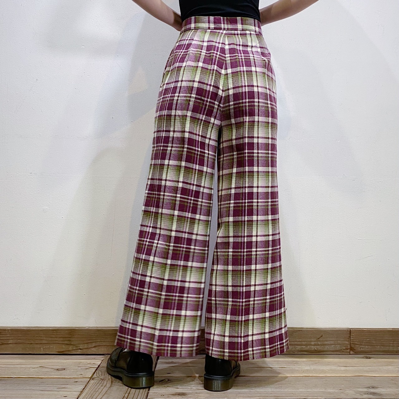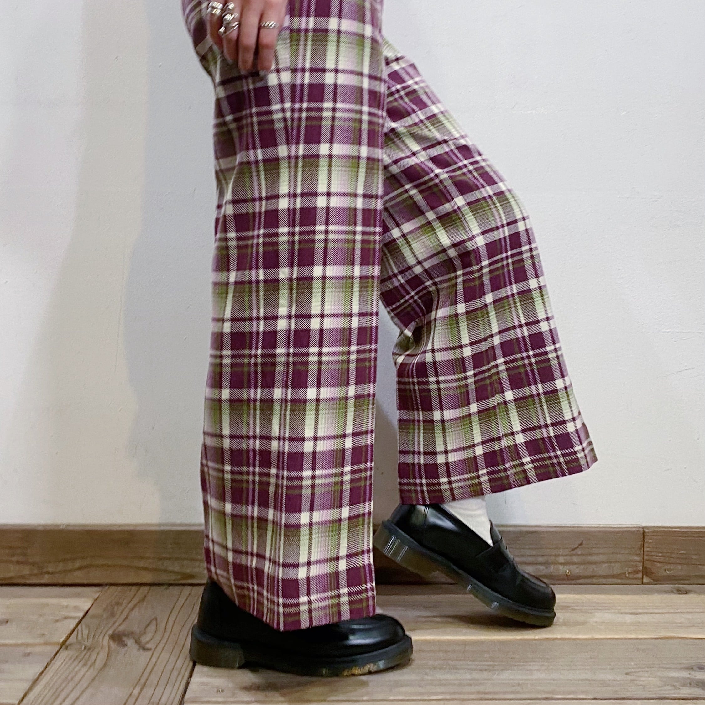 パープルとグリーンの色合わせが可愛い、70年代のチェックパンツです。