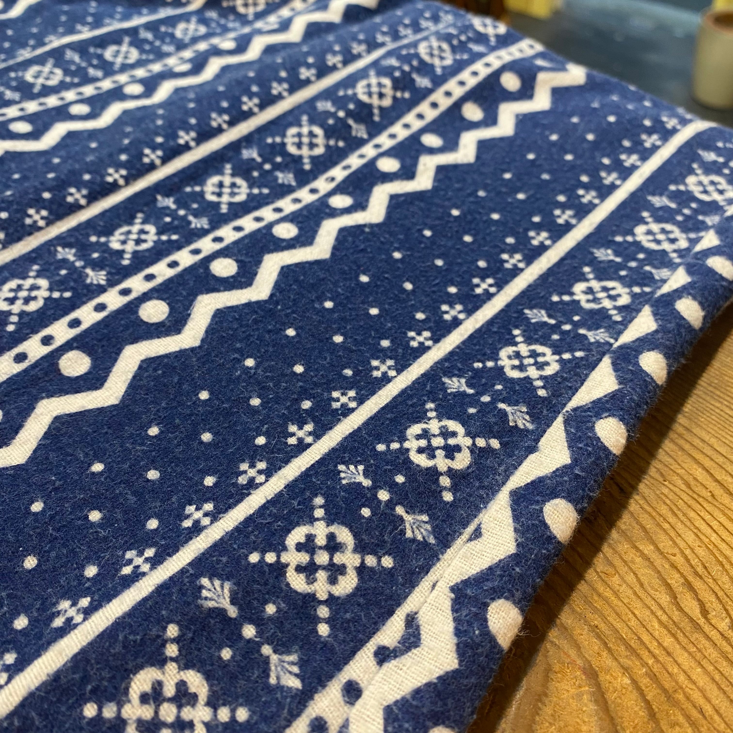 ネルっぽい素材感で若干の毛羽立ちが見受けられますが、元からの仕様です。