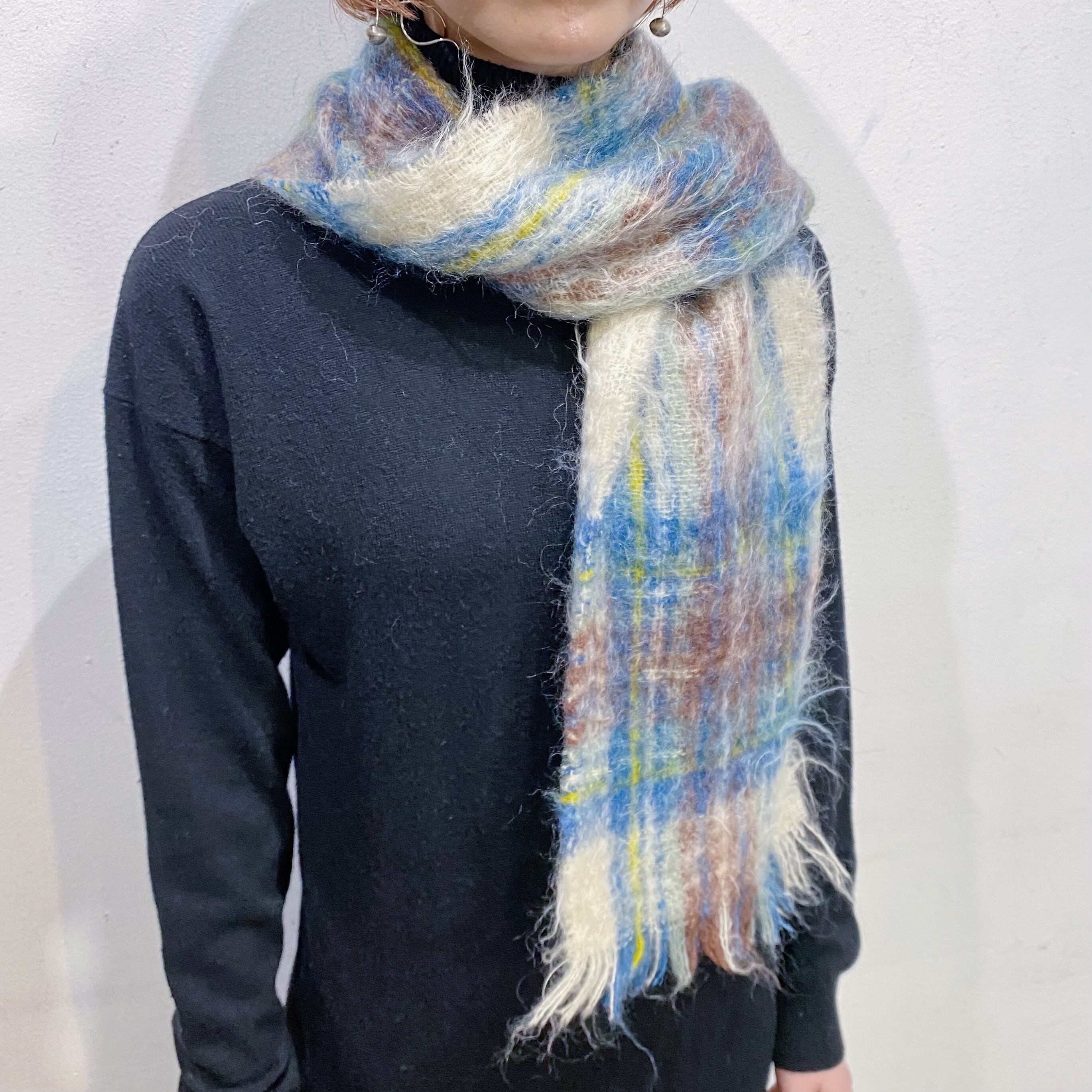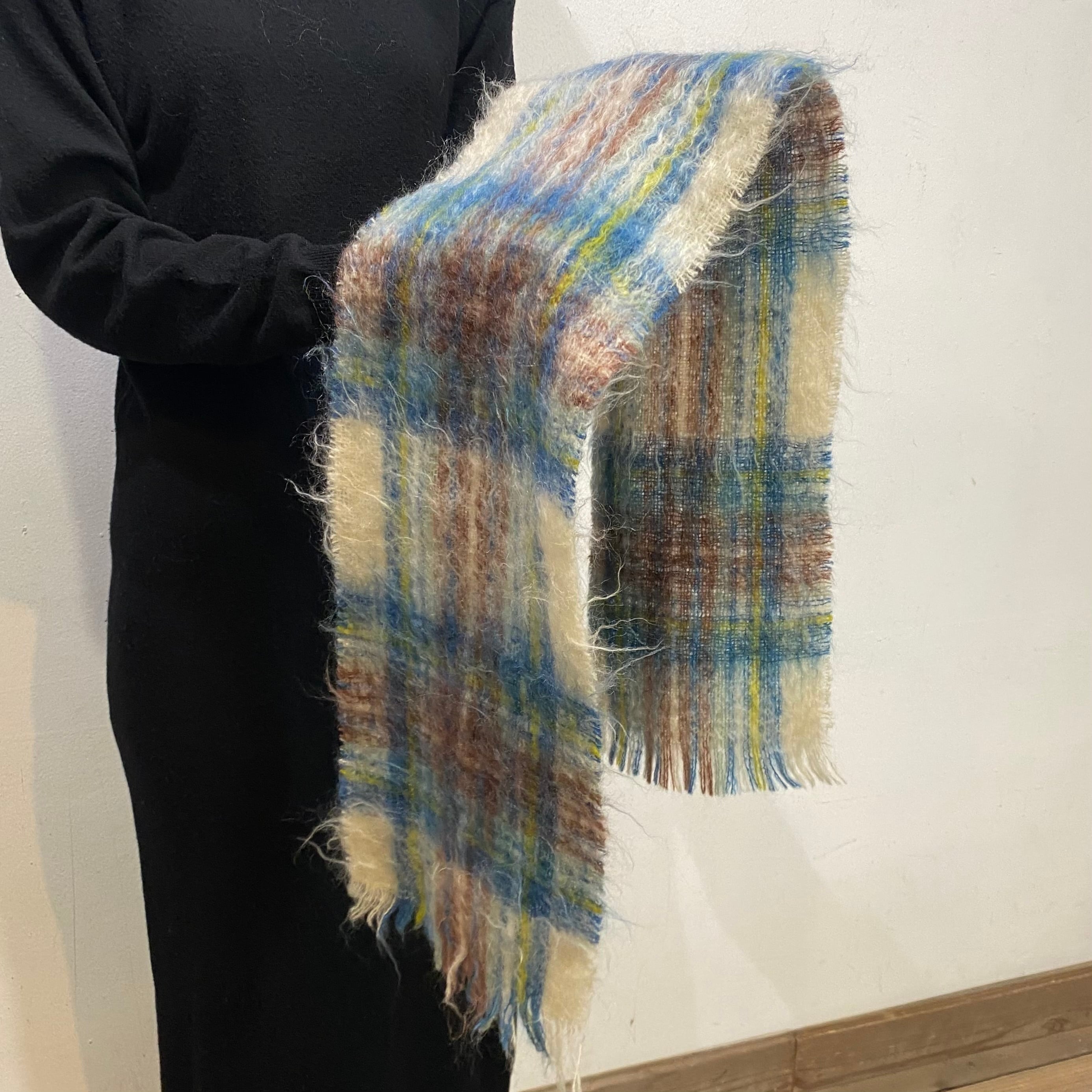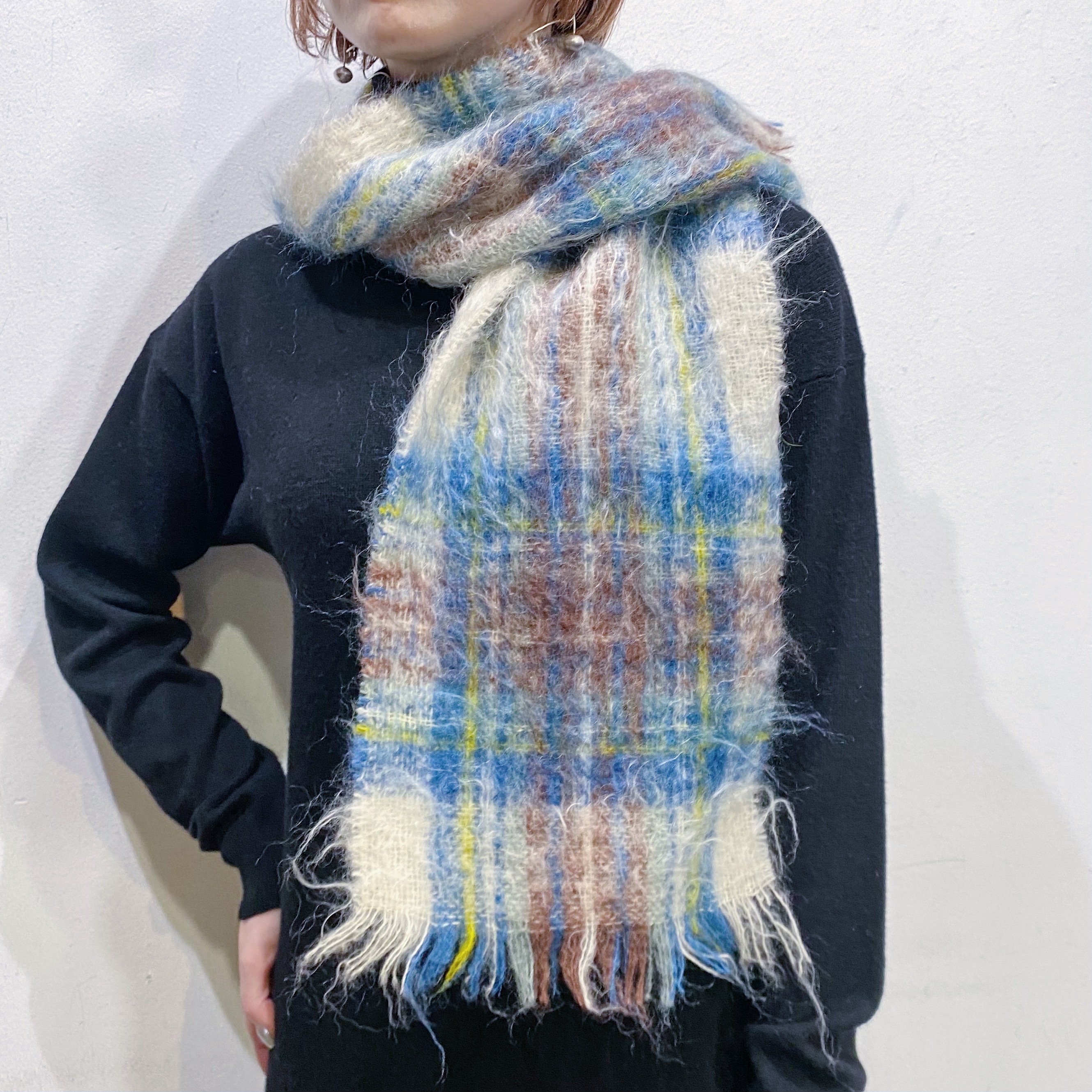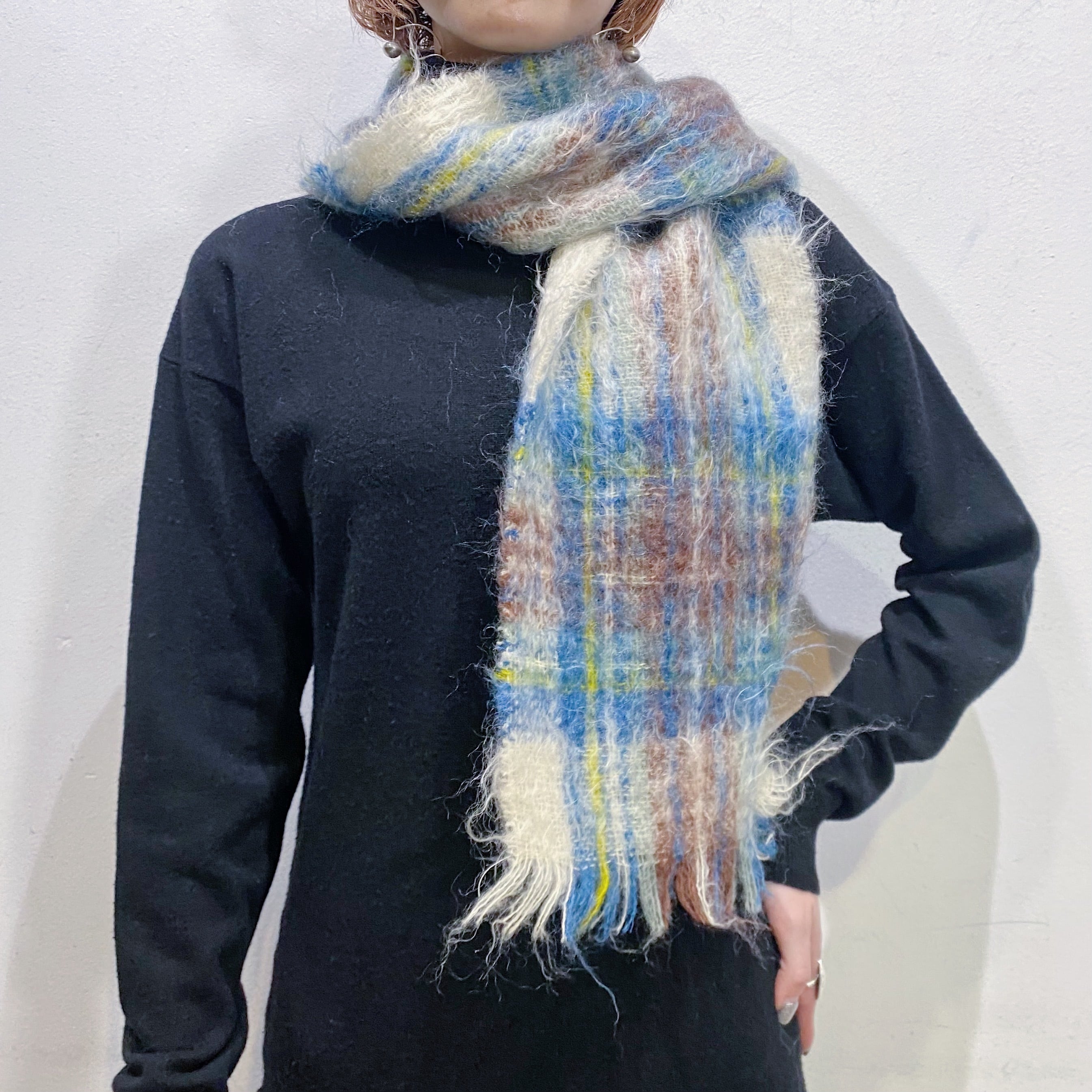 60s Scotland mohair plaid muffler