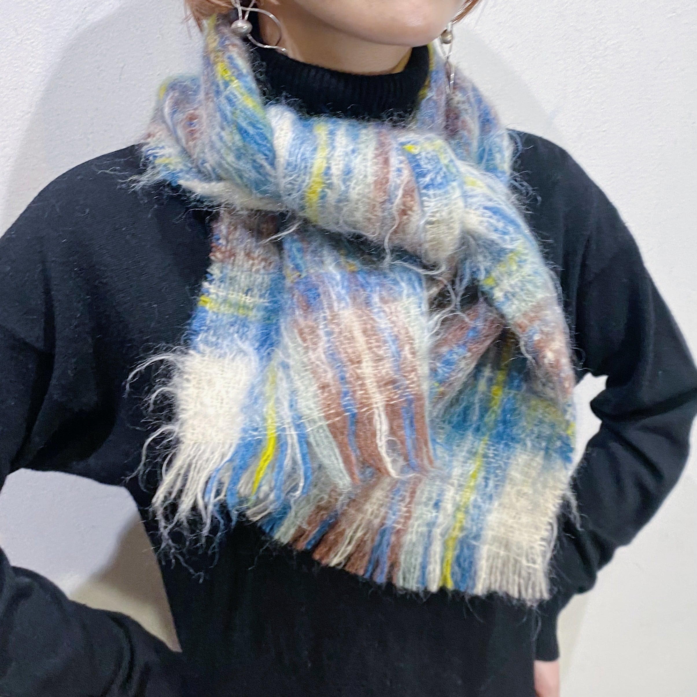 モヘアとウール混でとても軽くあたたかで、毛足の長いふわふわとした質感が魅力的。