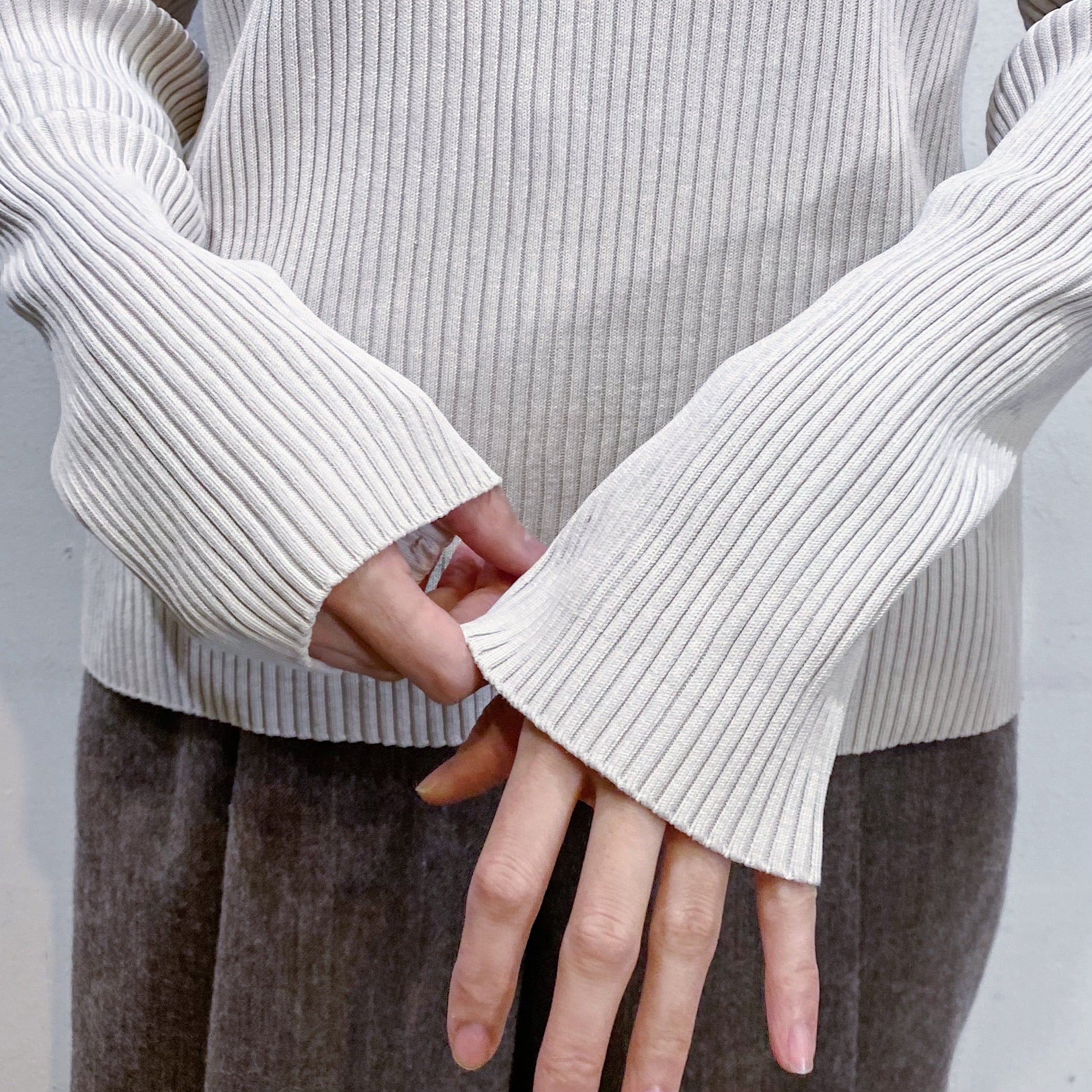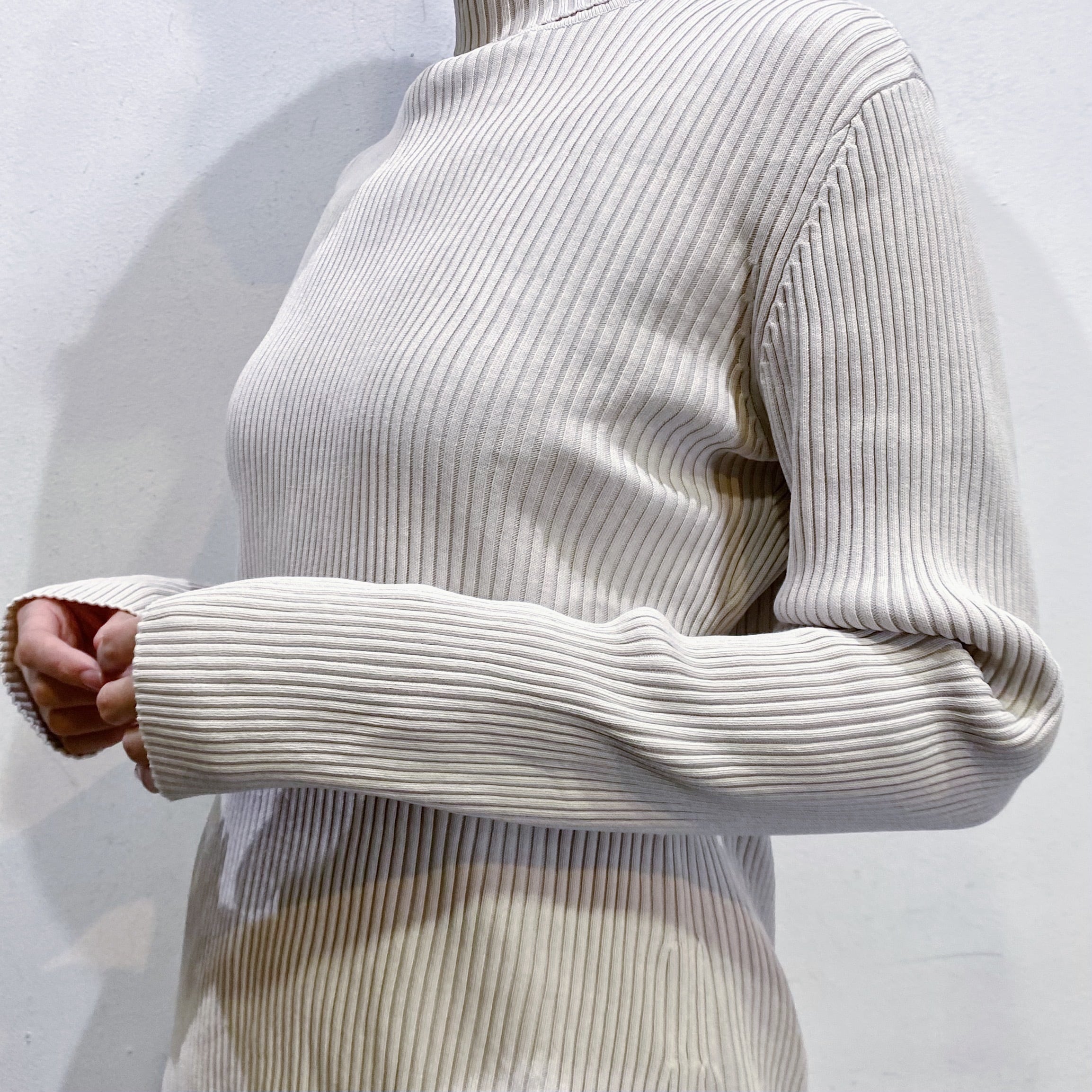 ハイネックでもチクチクしない素材で、お肌の敏感な方も安心して着ていただけます。