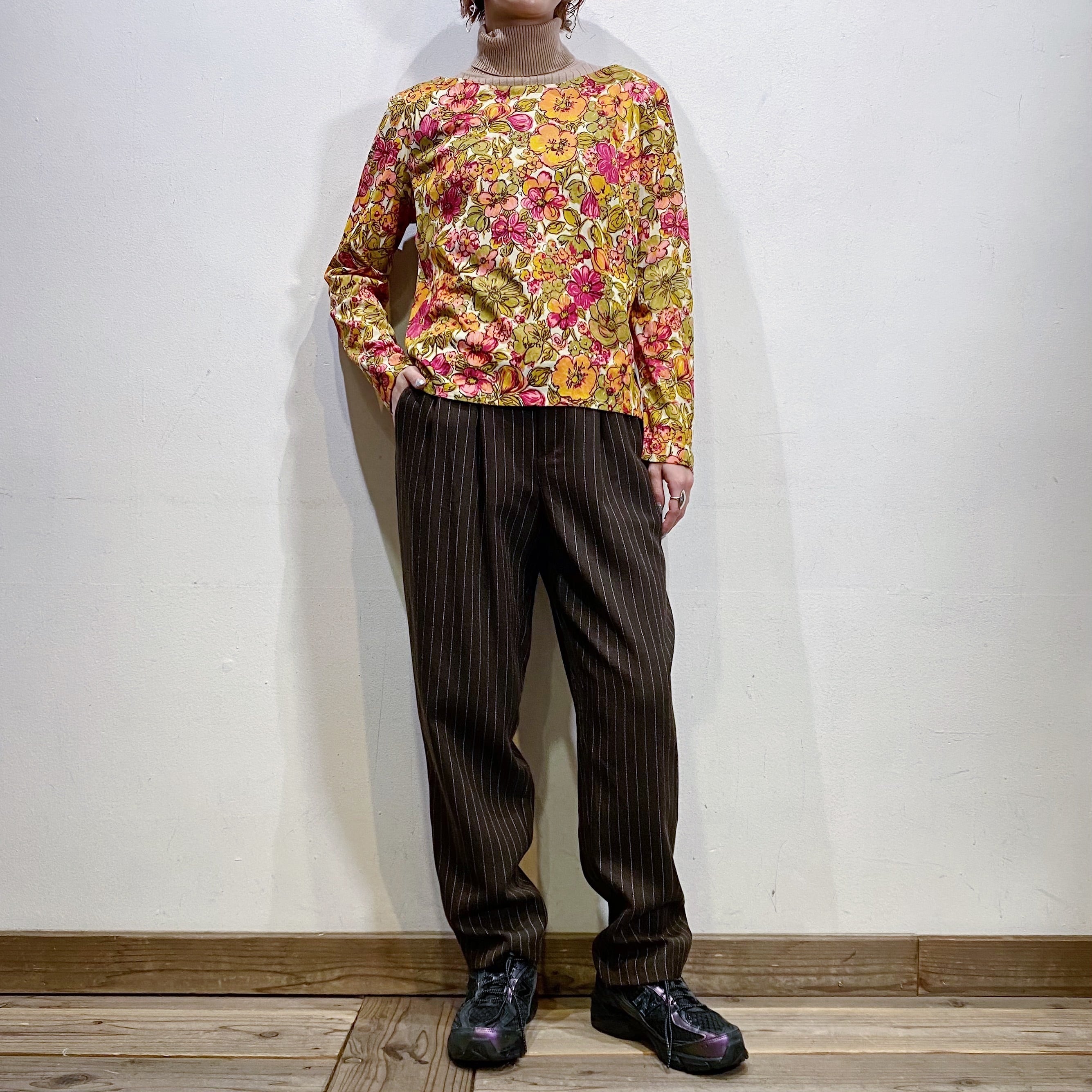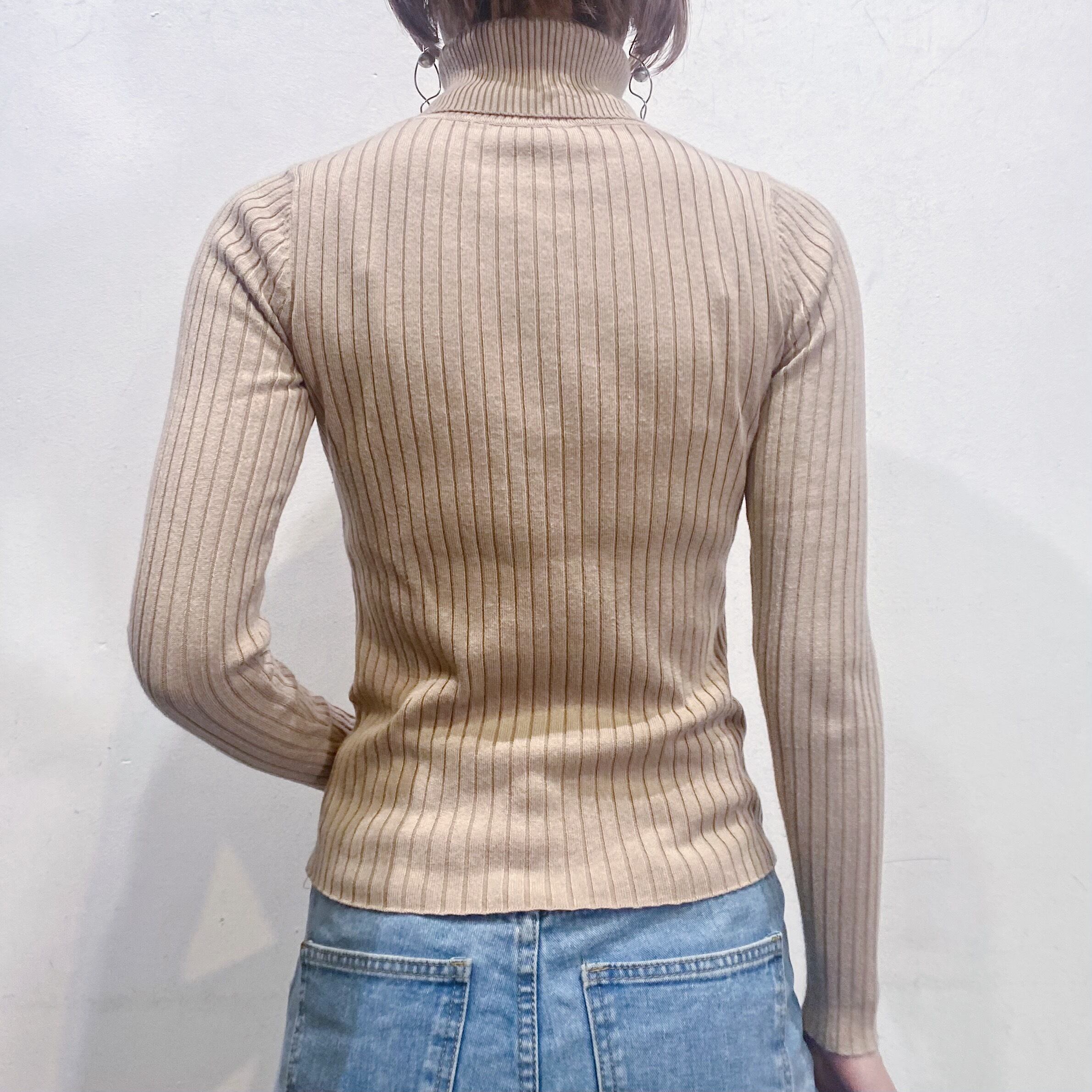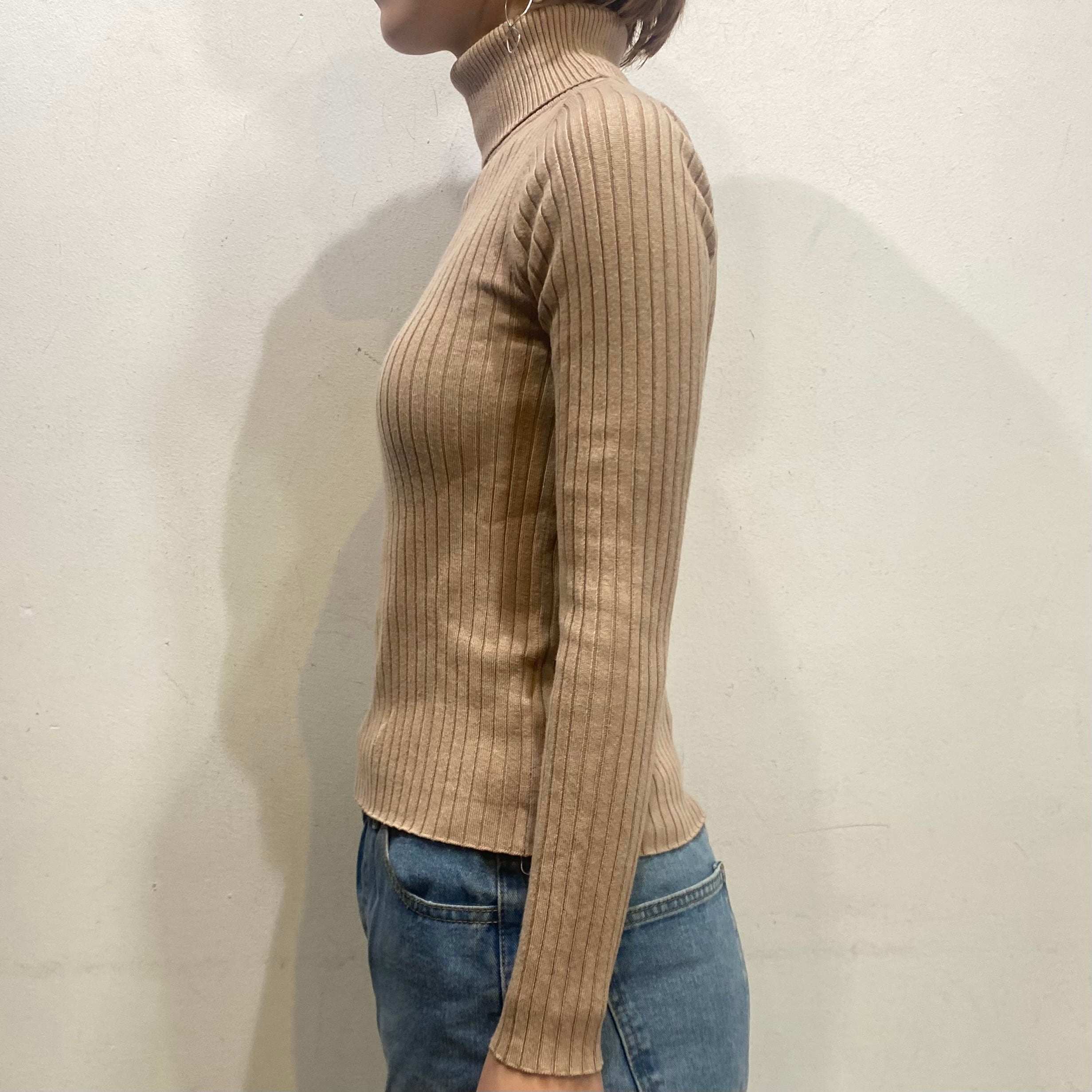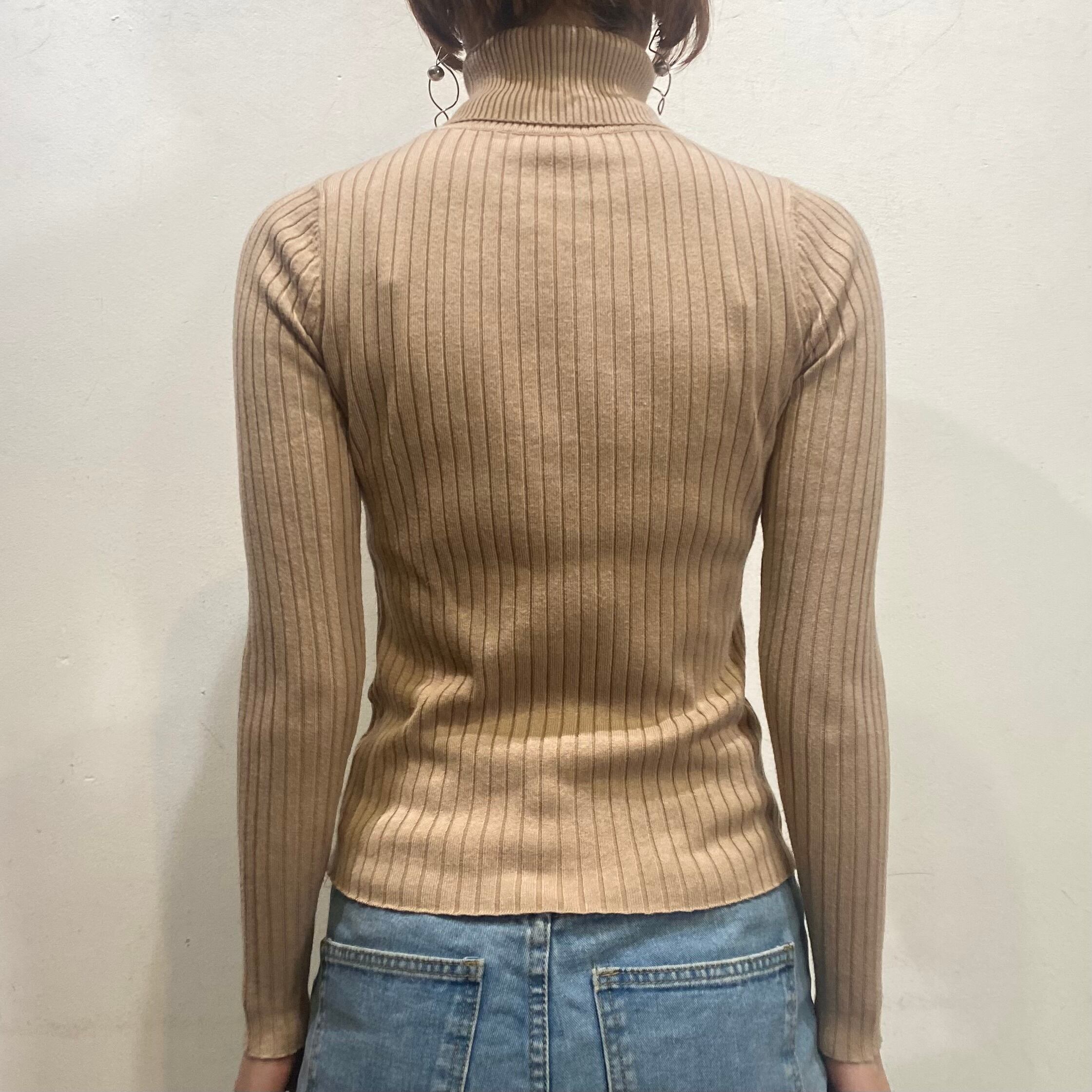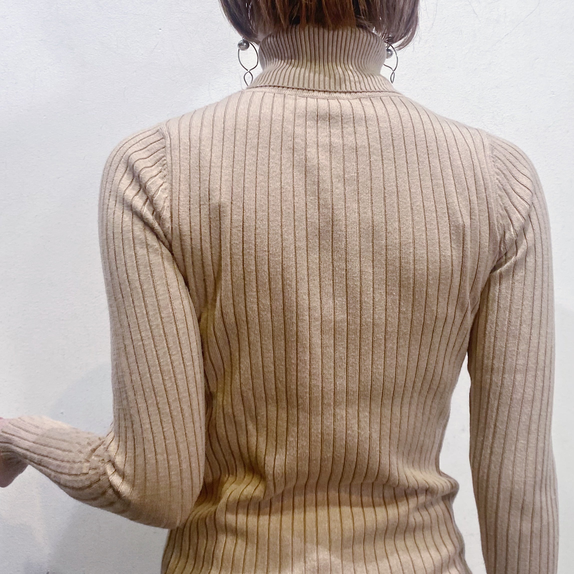 ベージュでコーディネートに取り入れやすい、ハイネックトップスです。