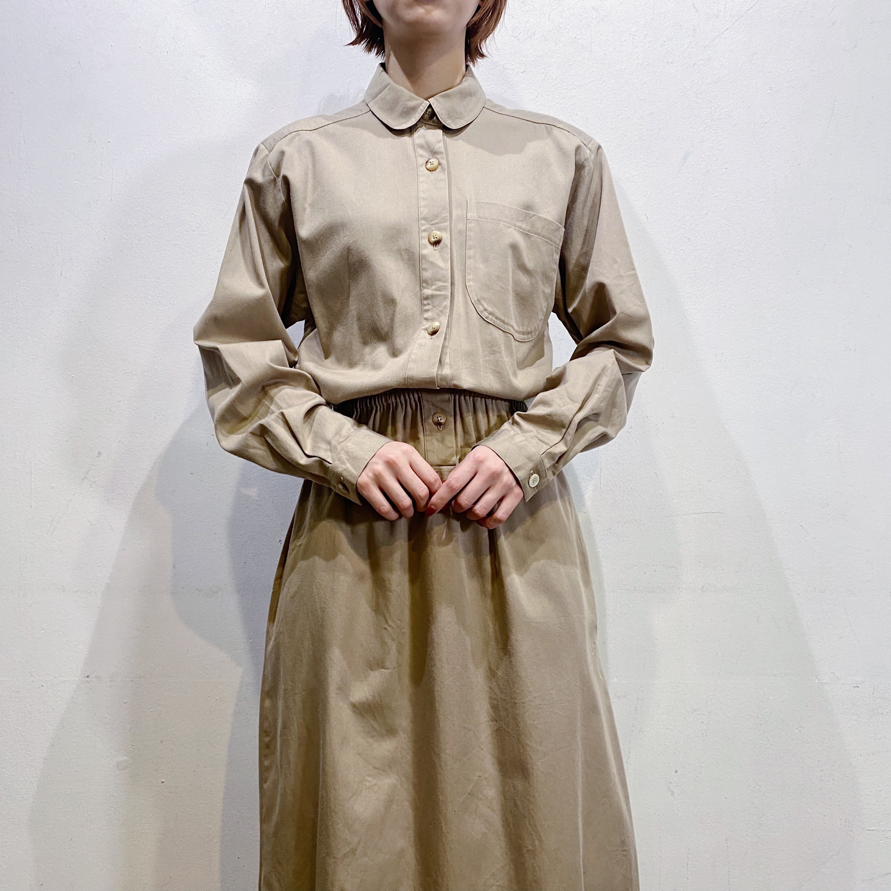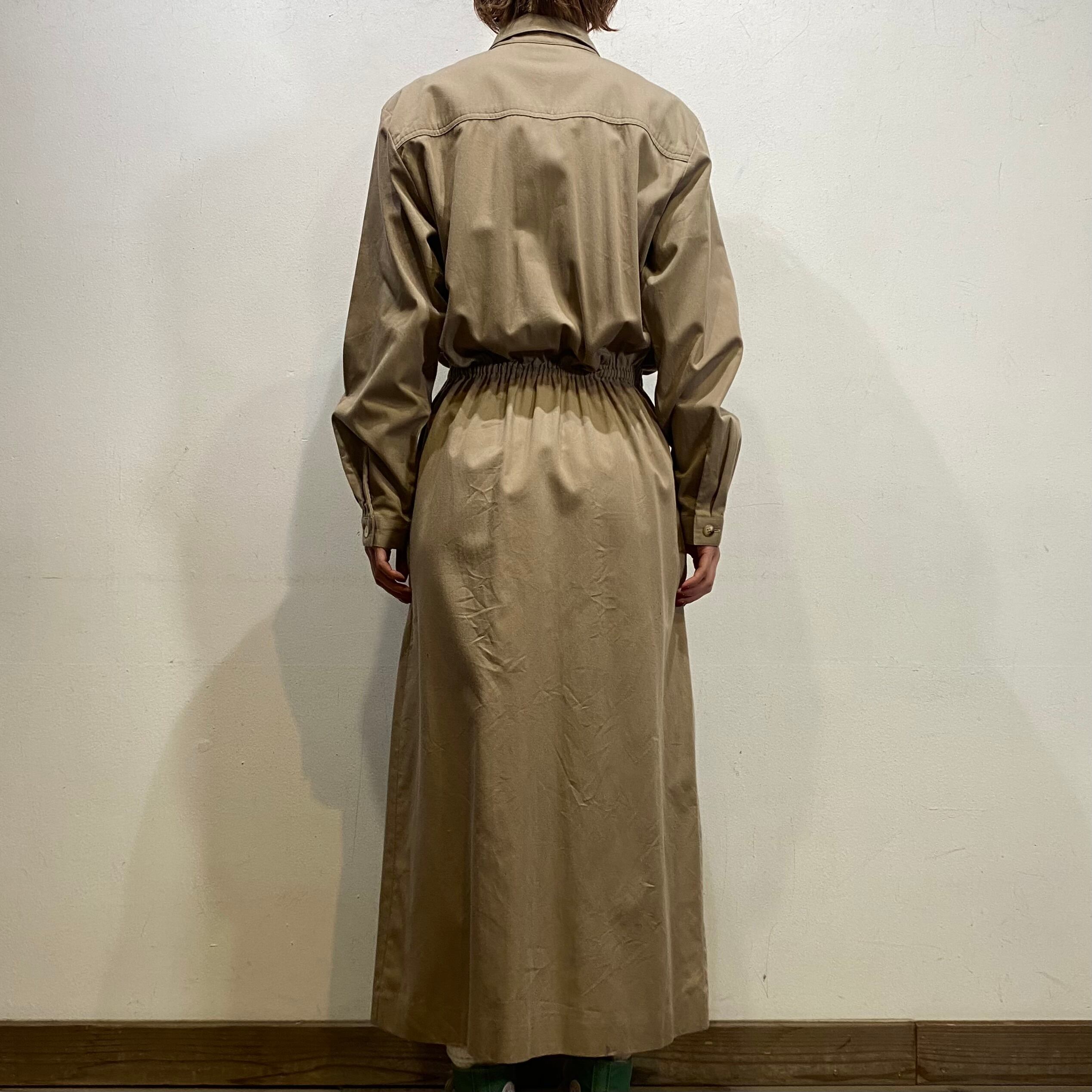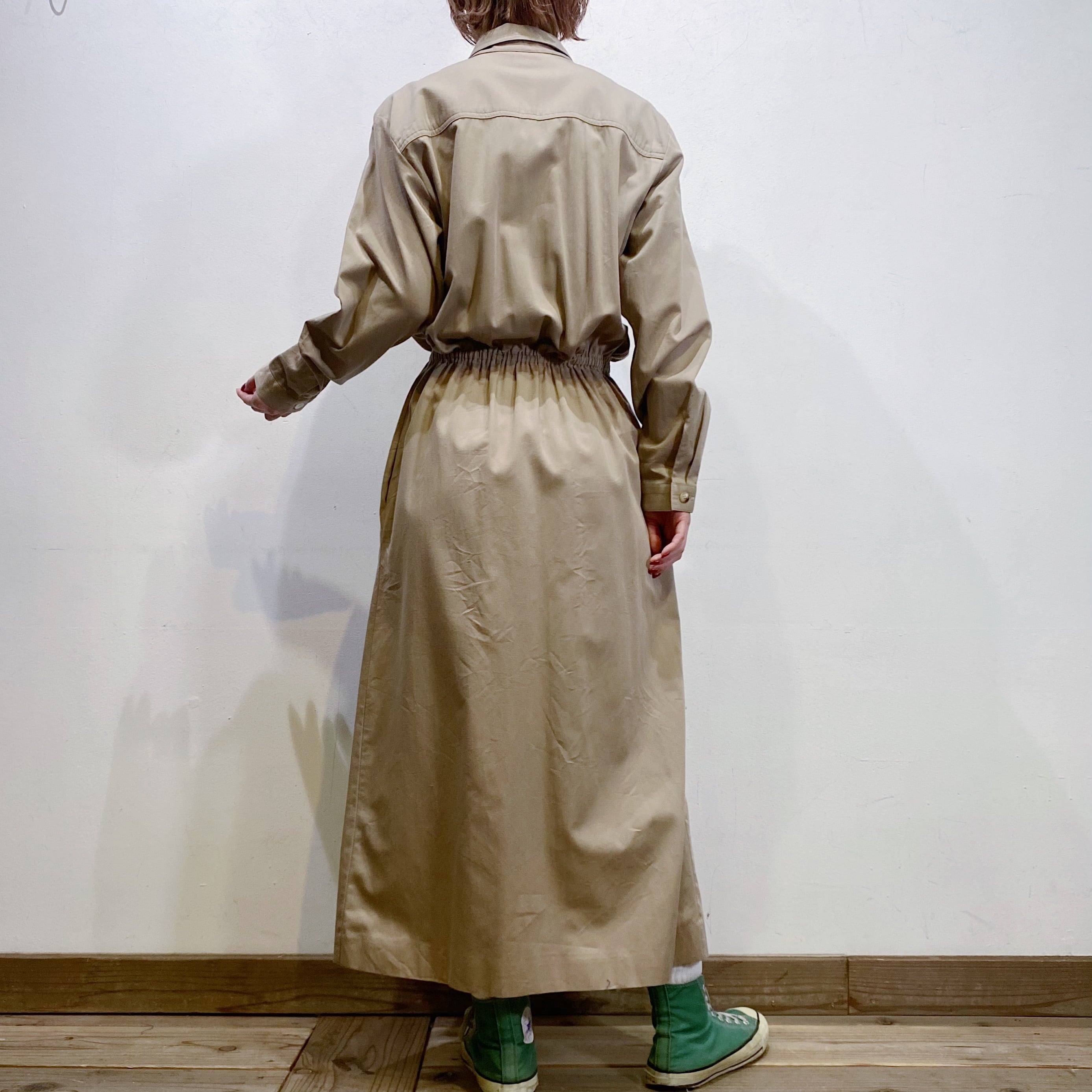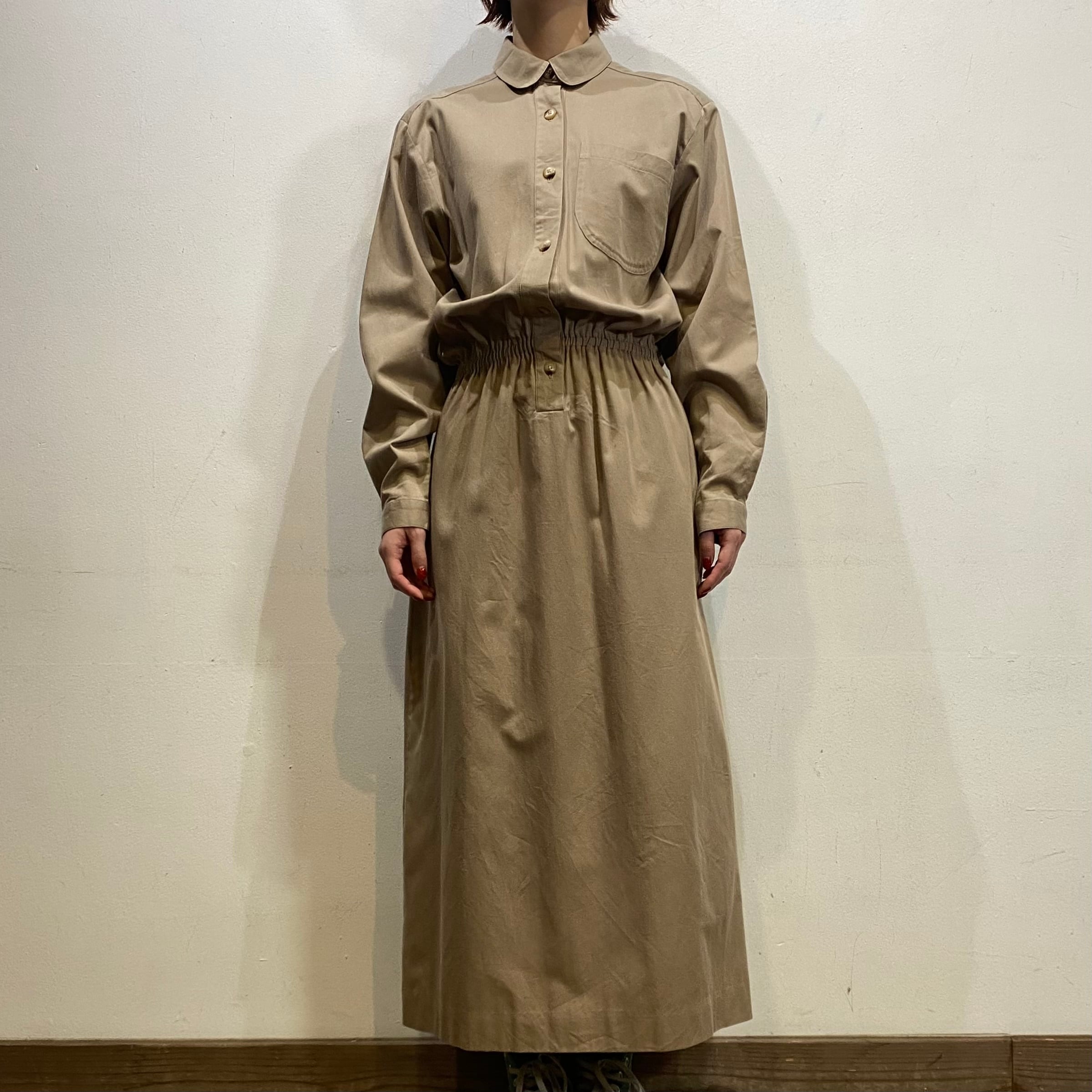 ベージュカラーで大変着こなしやすい、シャツワンピースです。