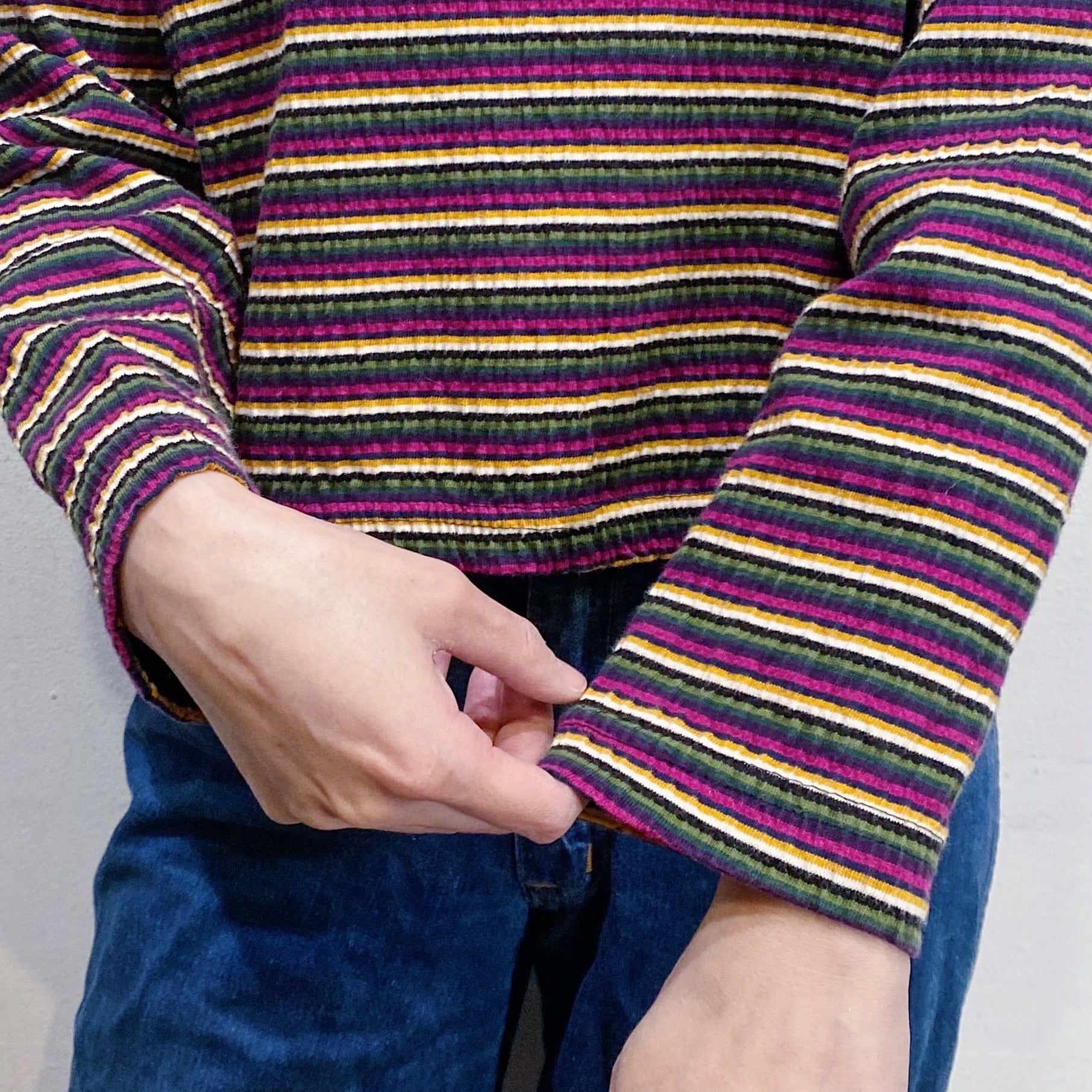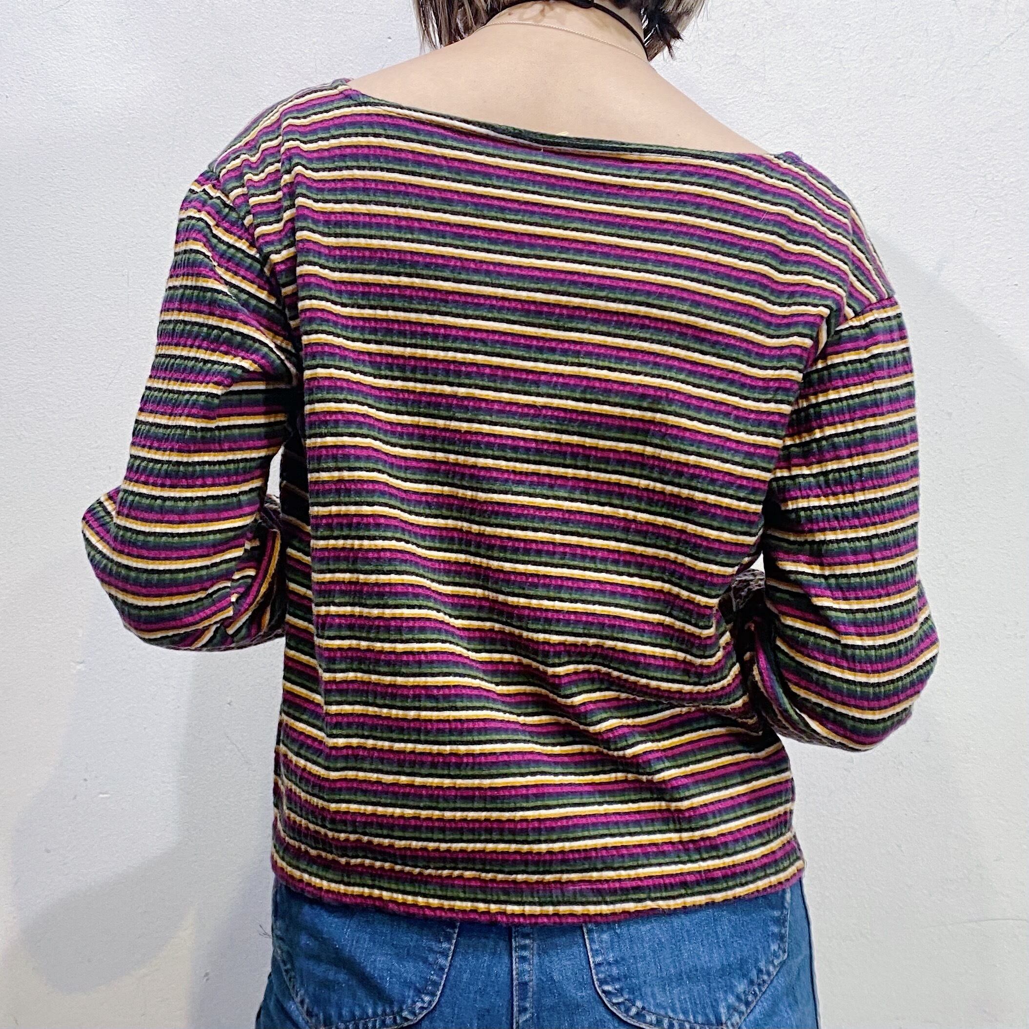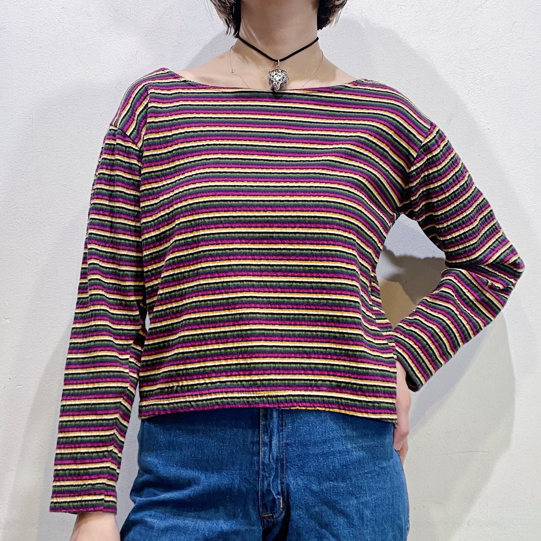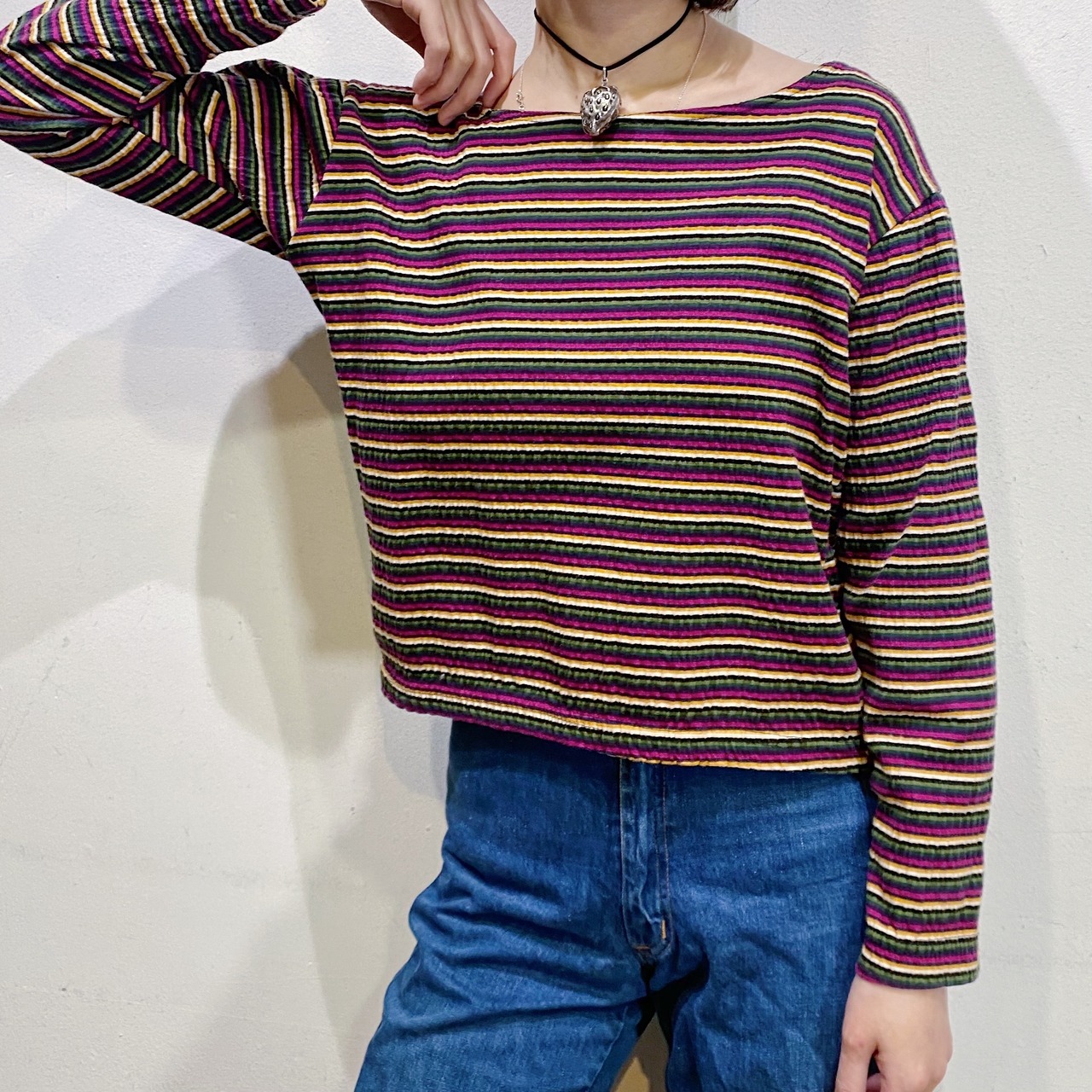 90sらしいマルチカラーの配色が可愛い、ボーダーのロンTです。