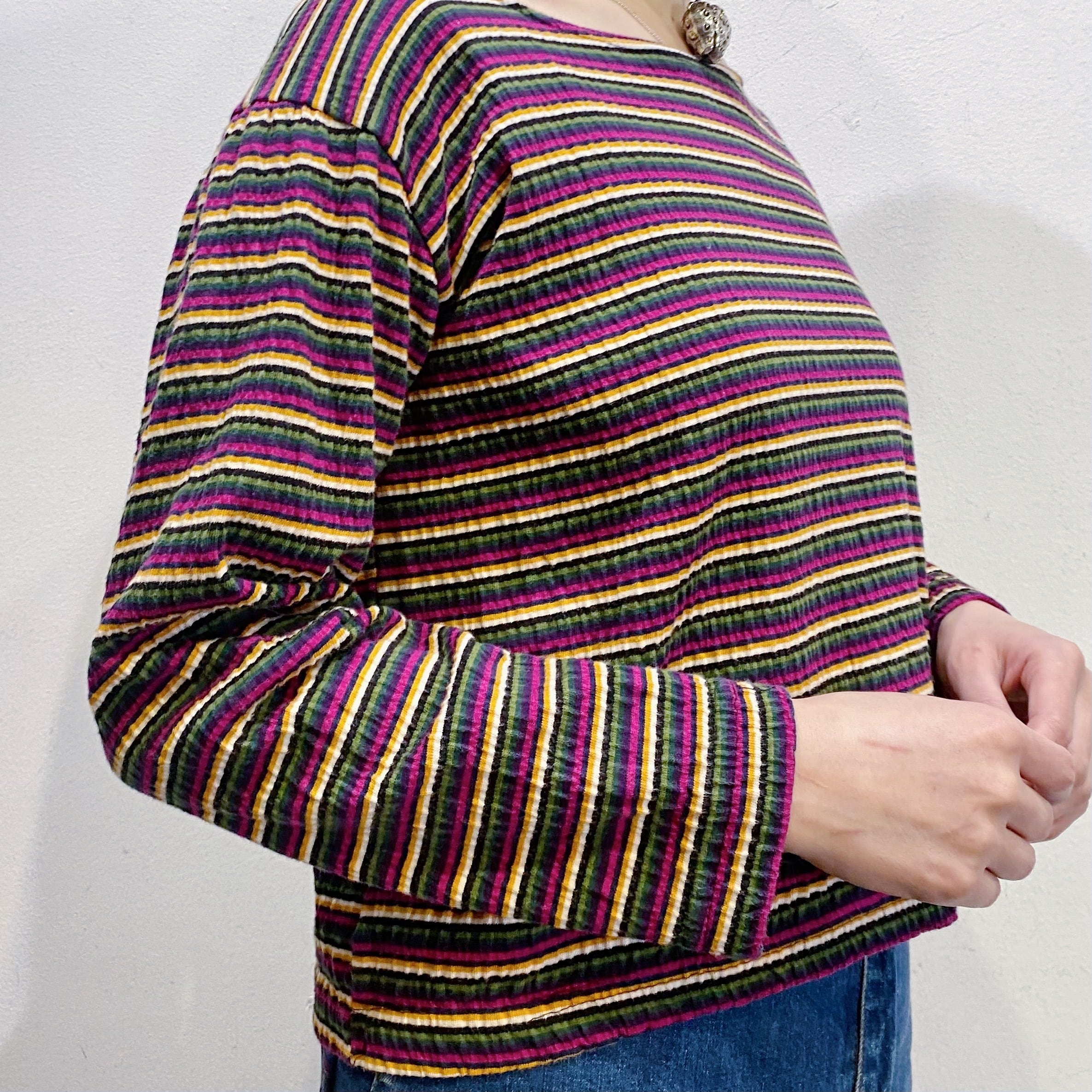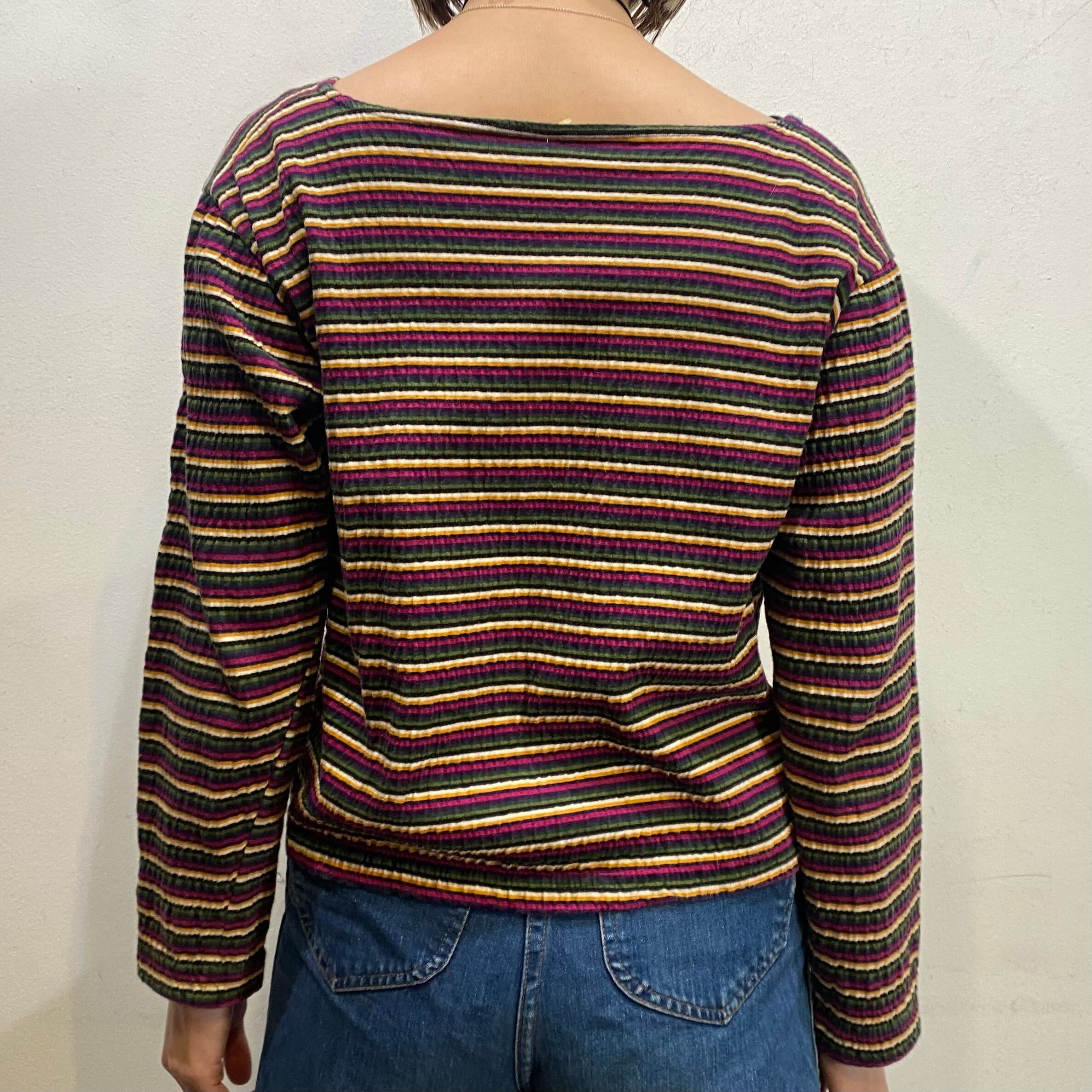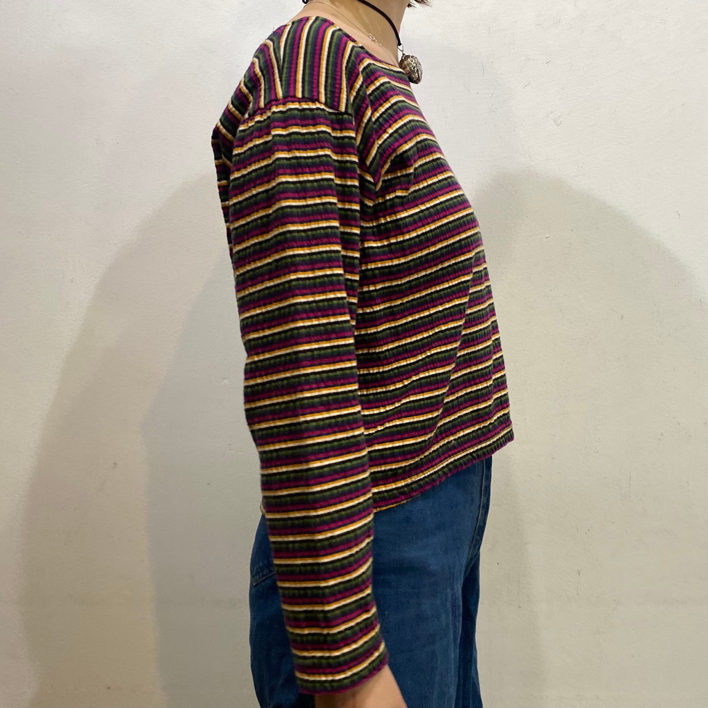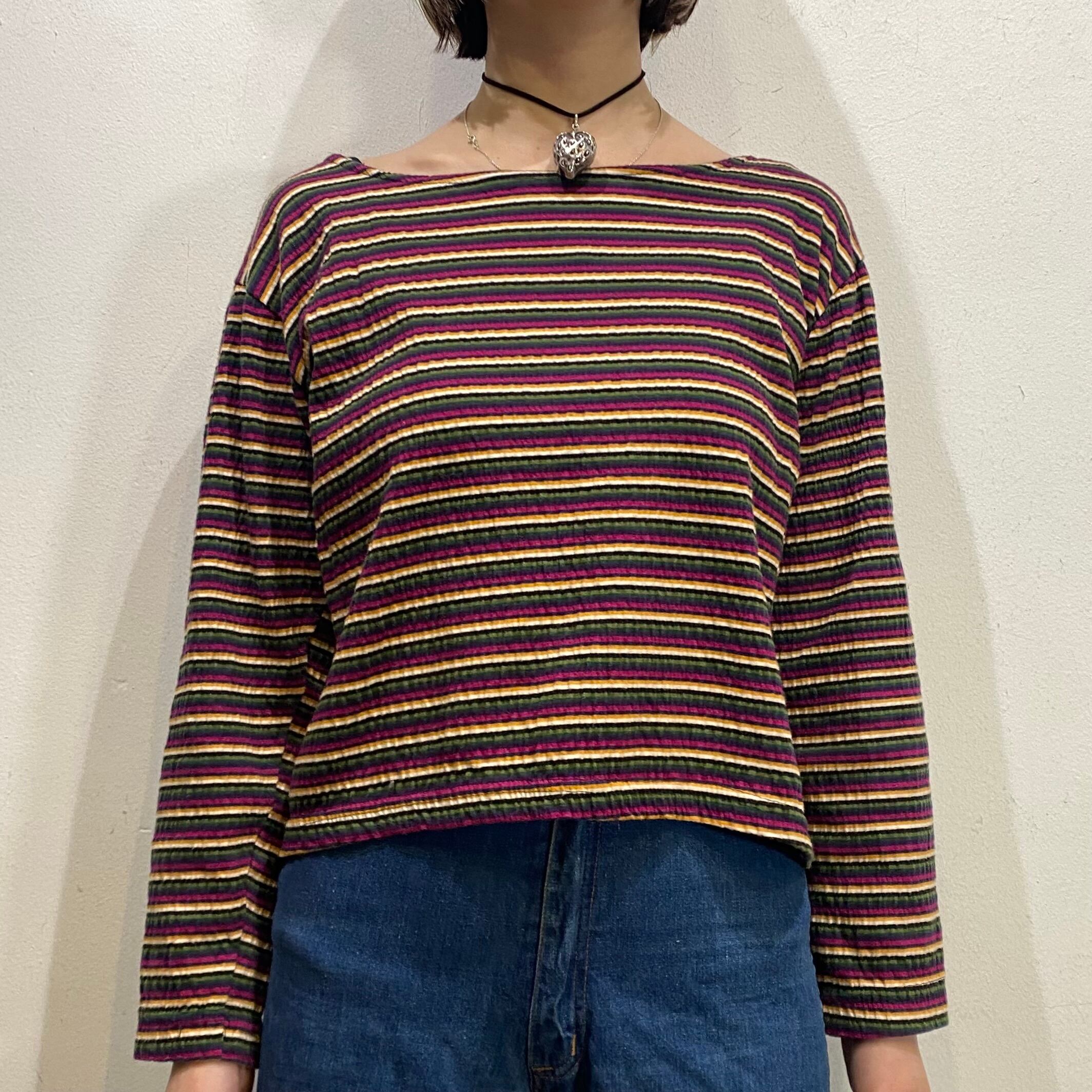 90sらしいマルチカラーの配色が可愛い、ボーダーのロンTです。