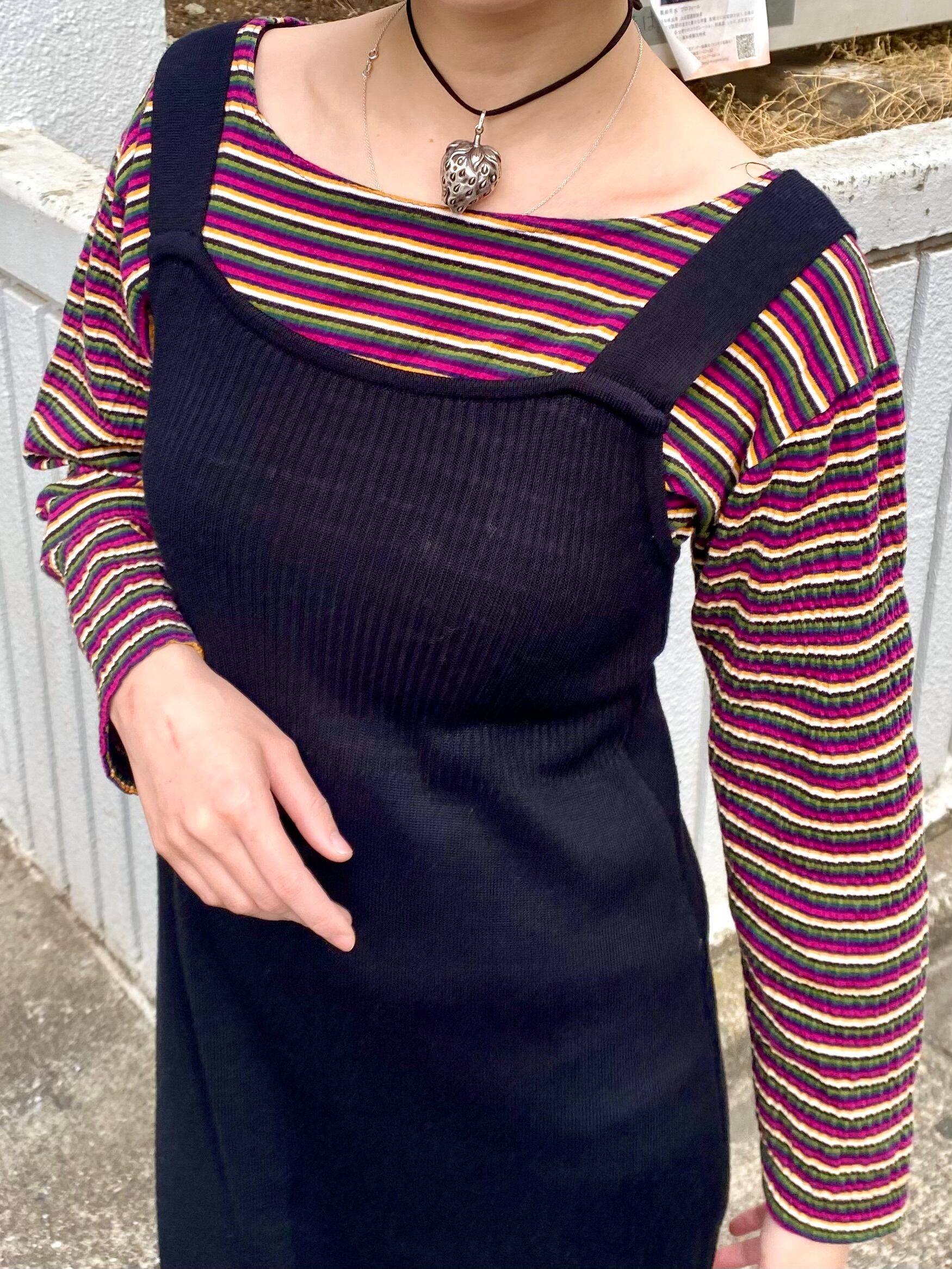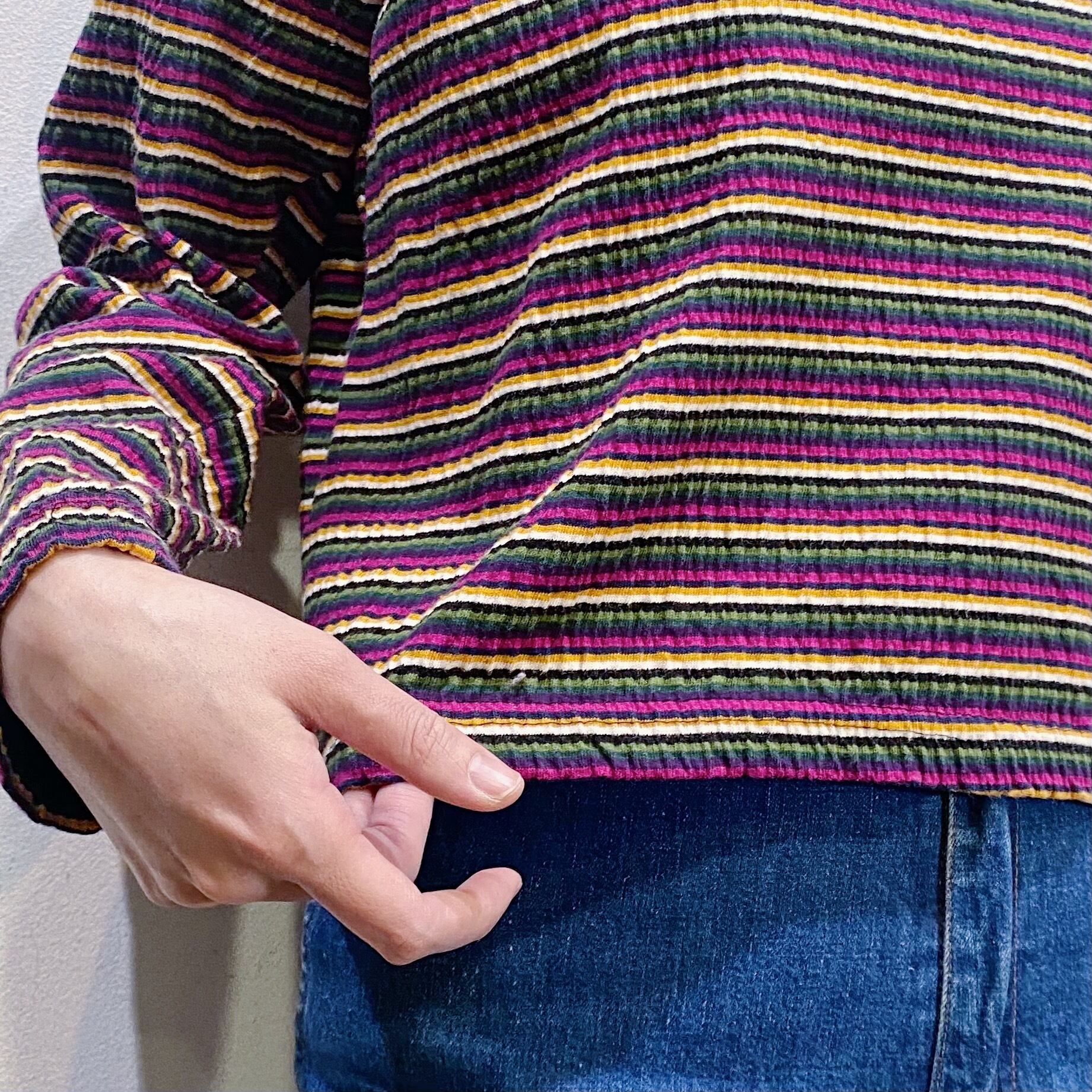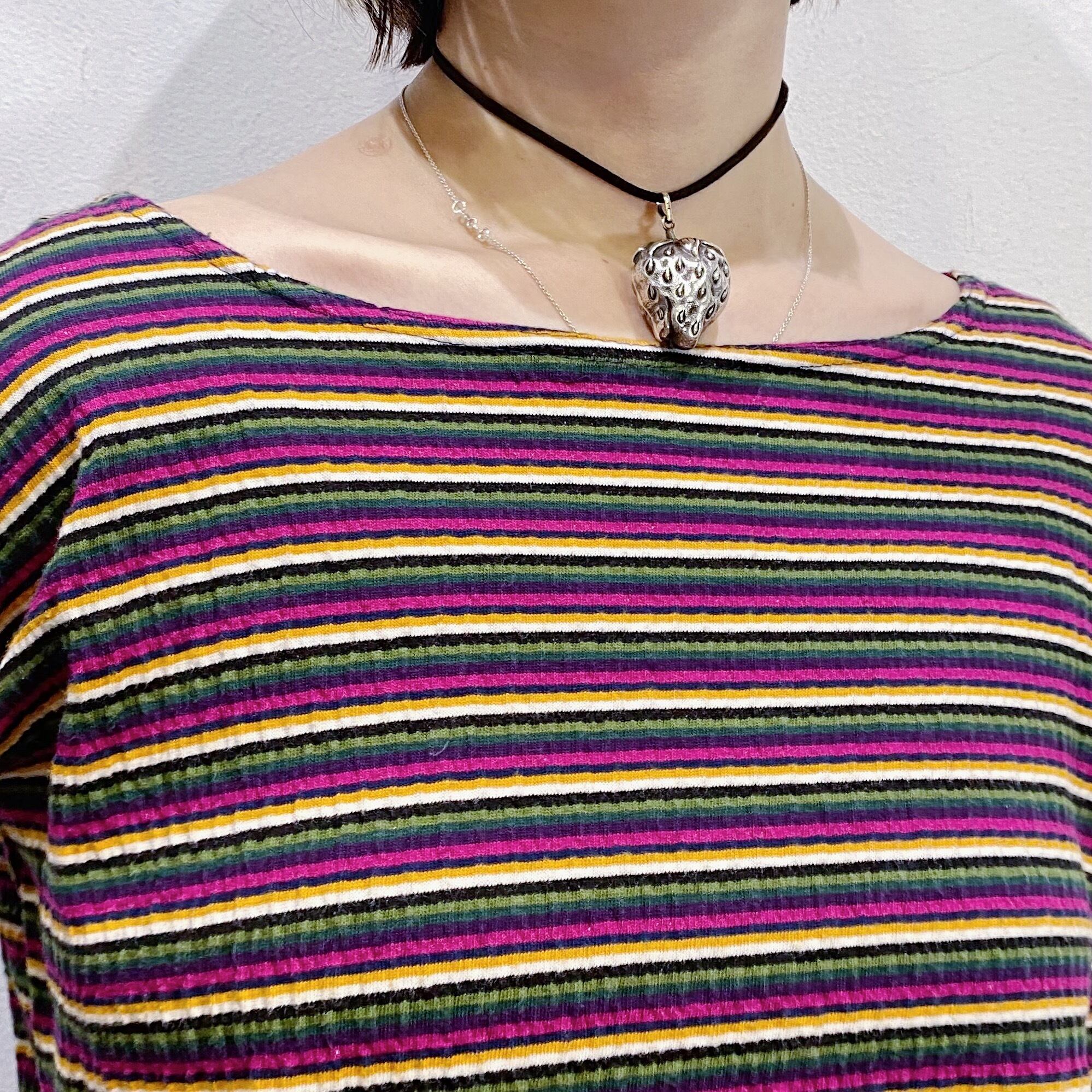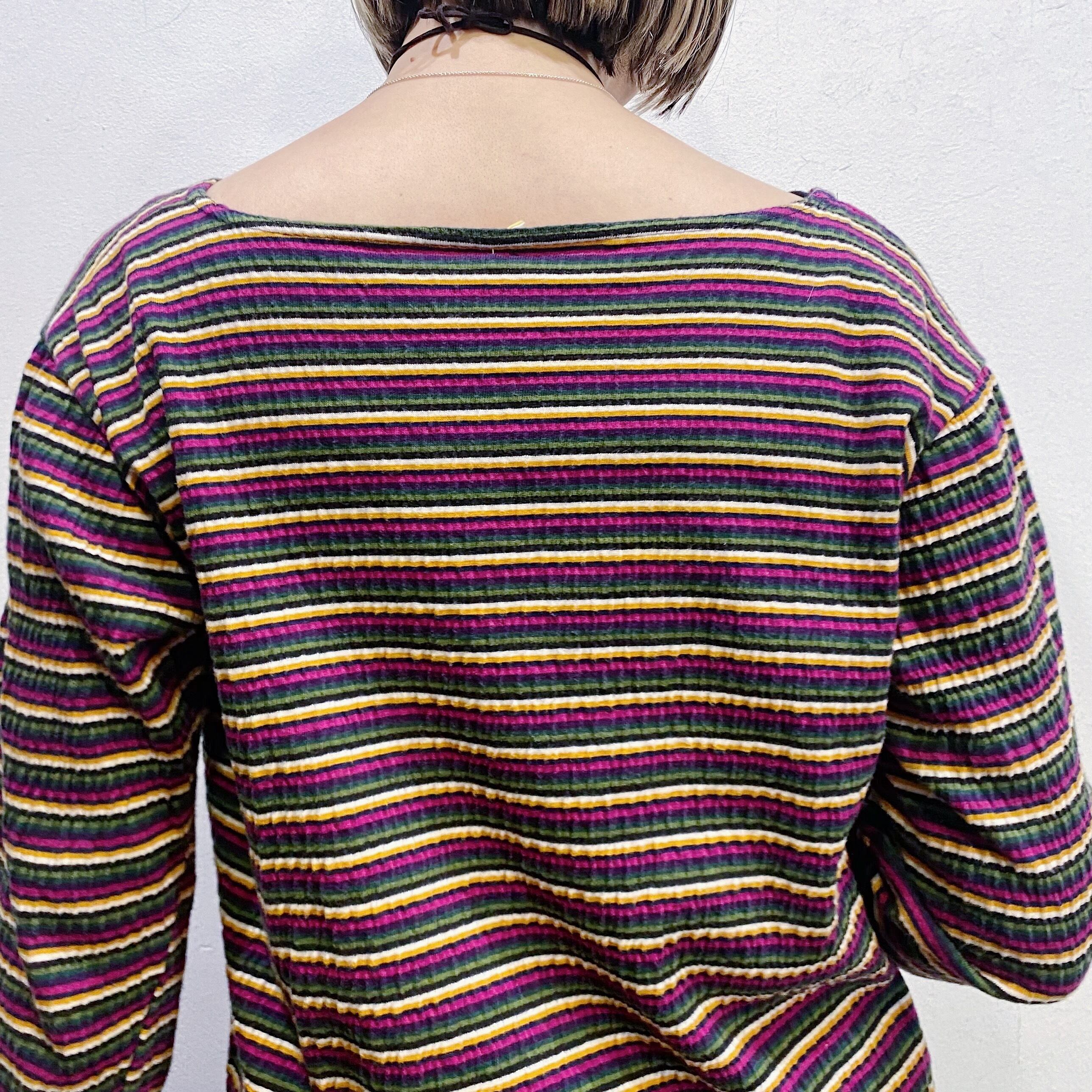 90sらしいマルチカラーの配色が可愛い、ボーダーのロンTです。