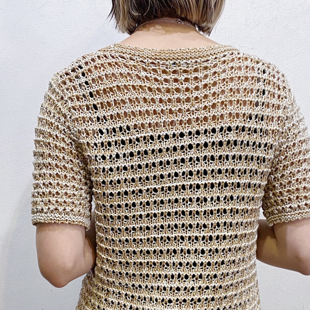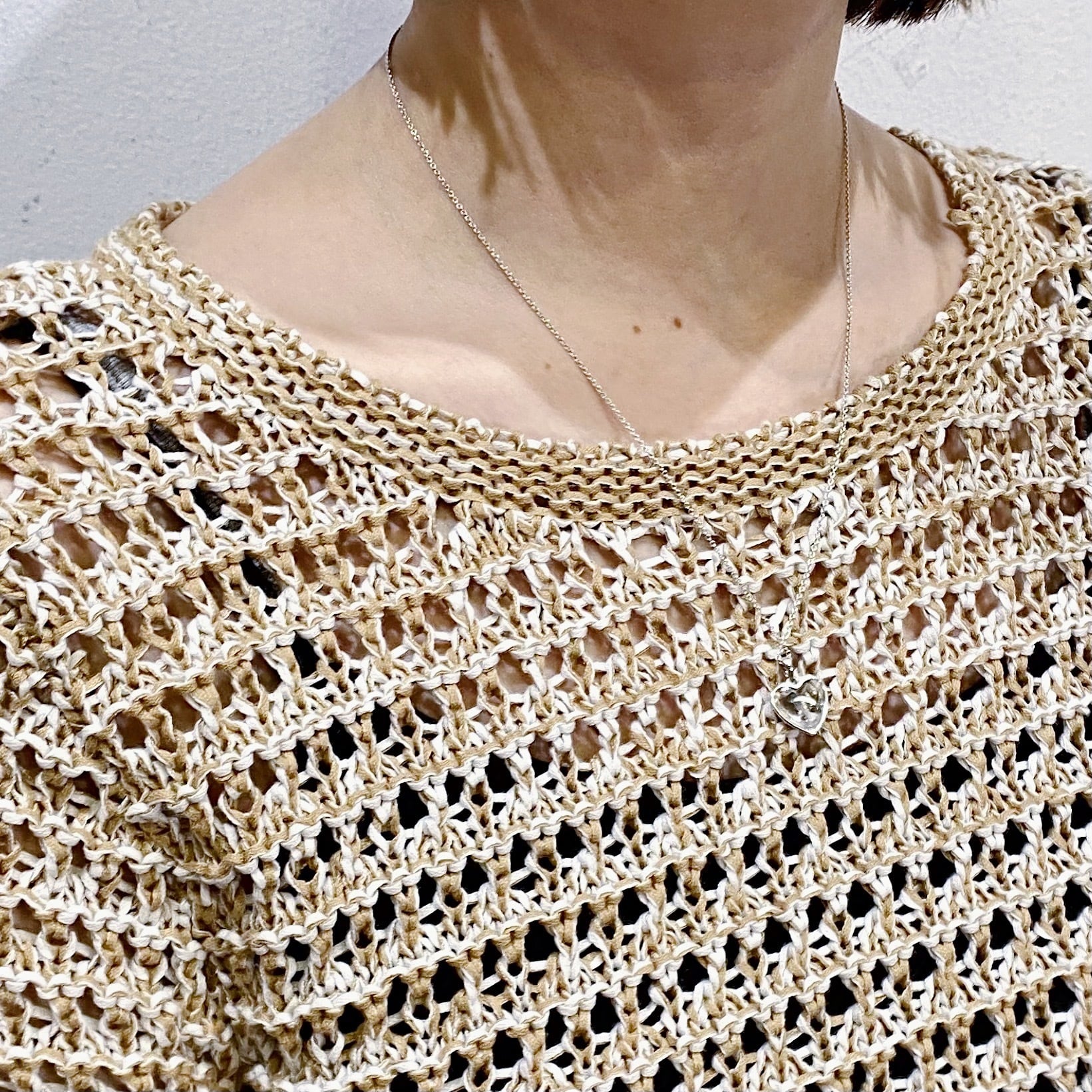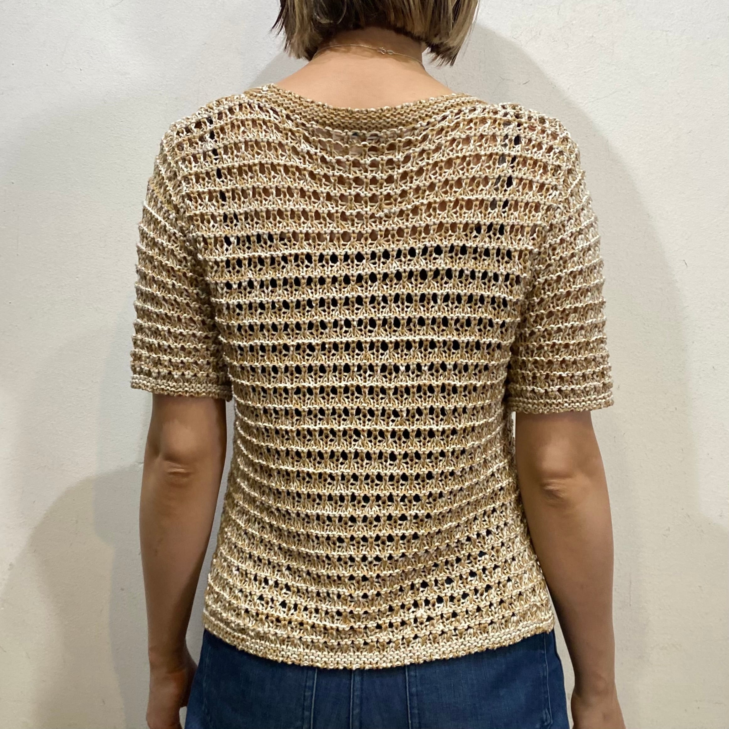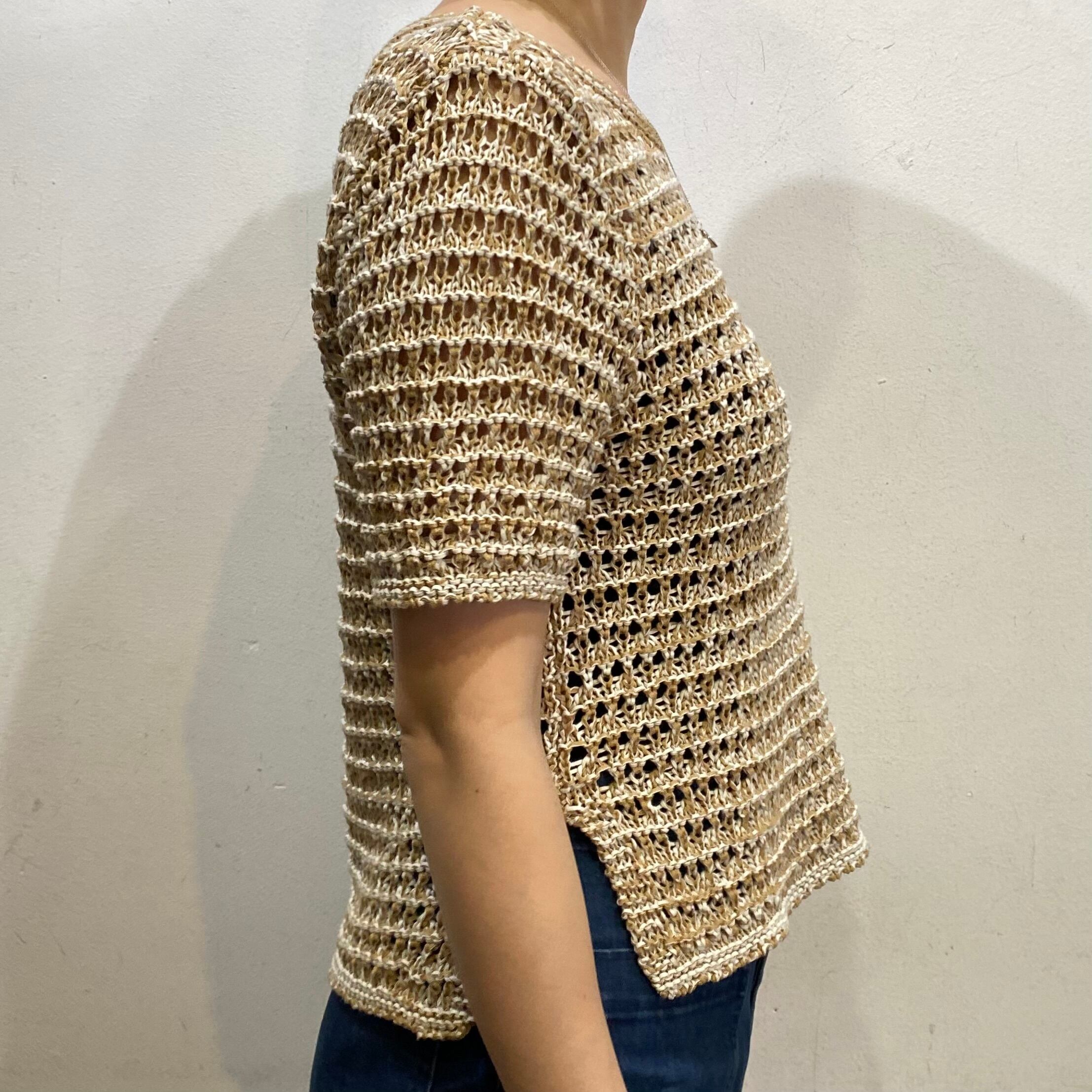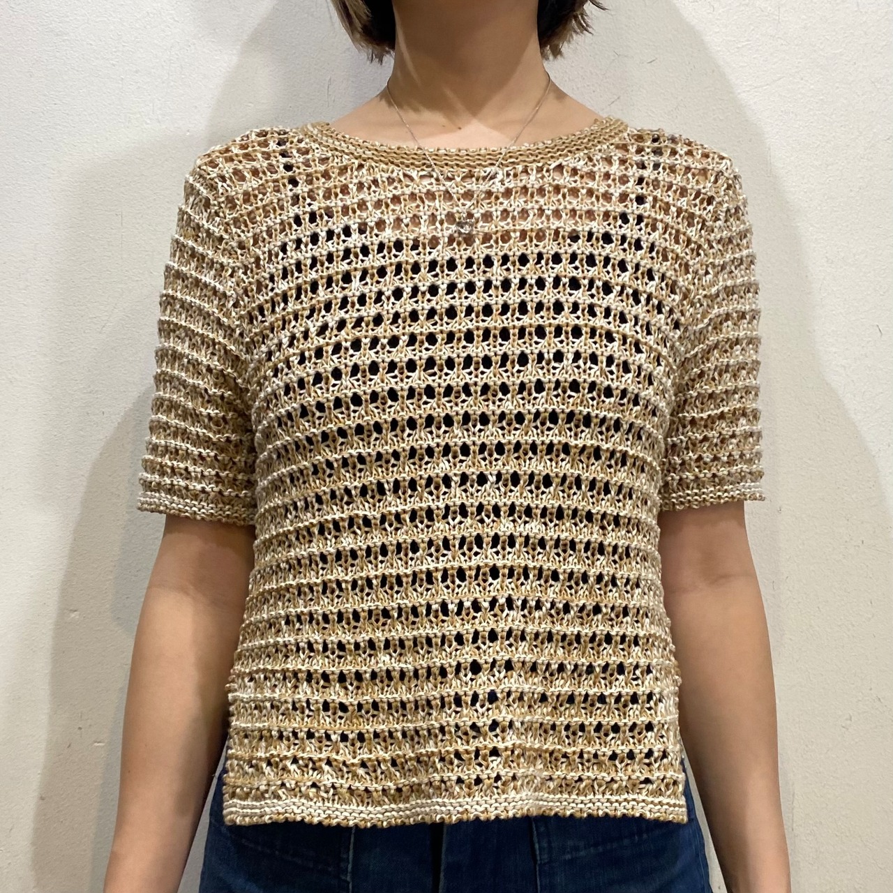 ベージュカラーで大変使い勝手の良い、クロシェトップスです。