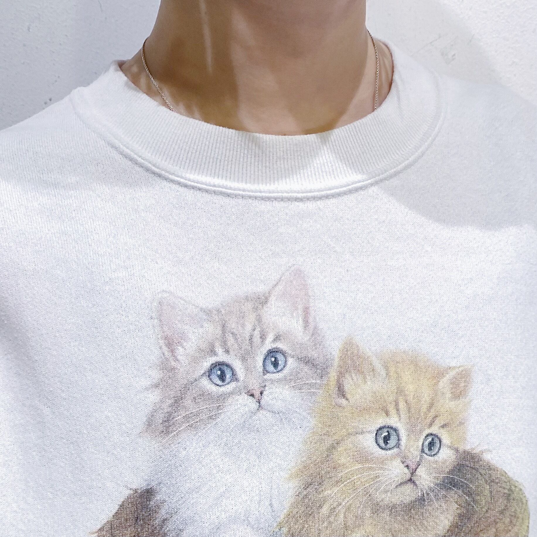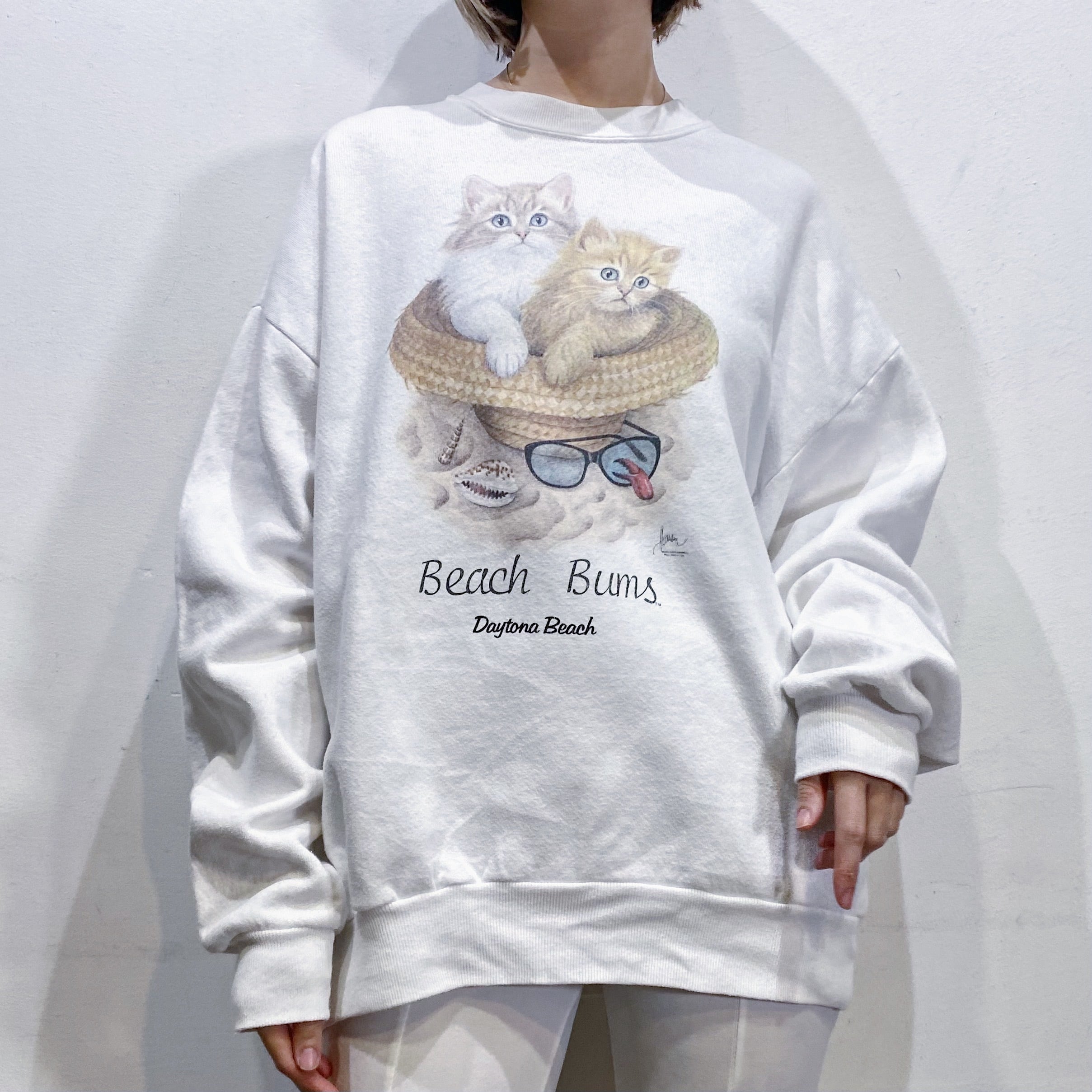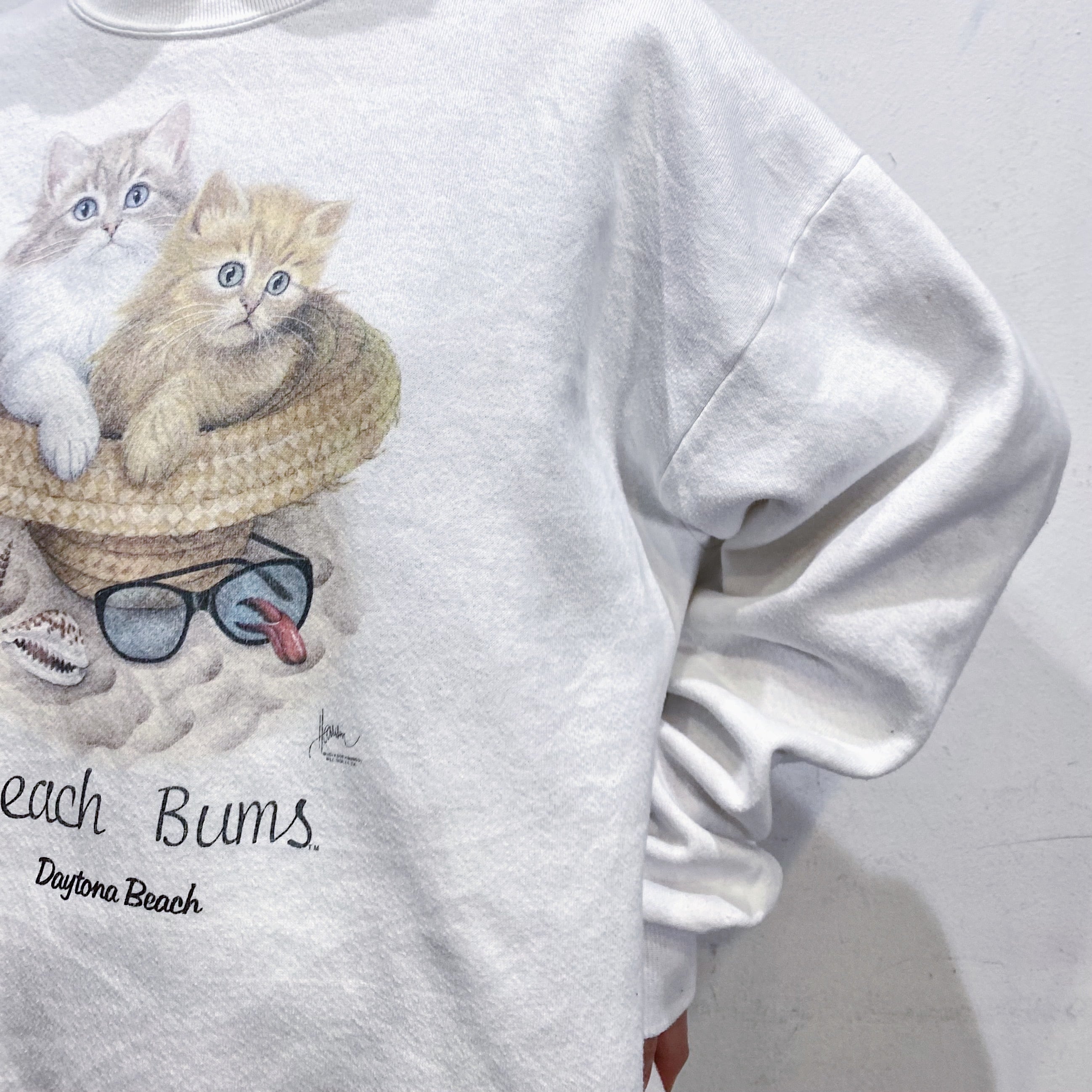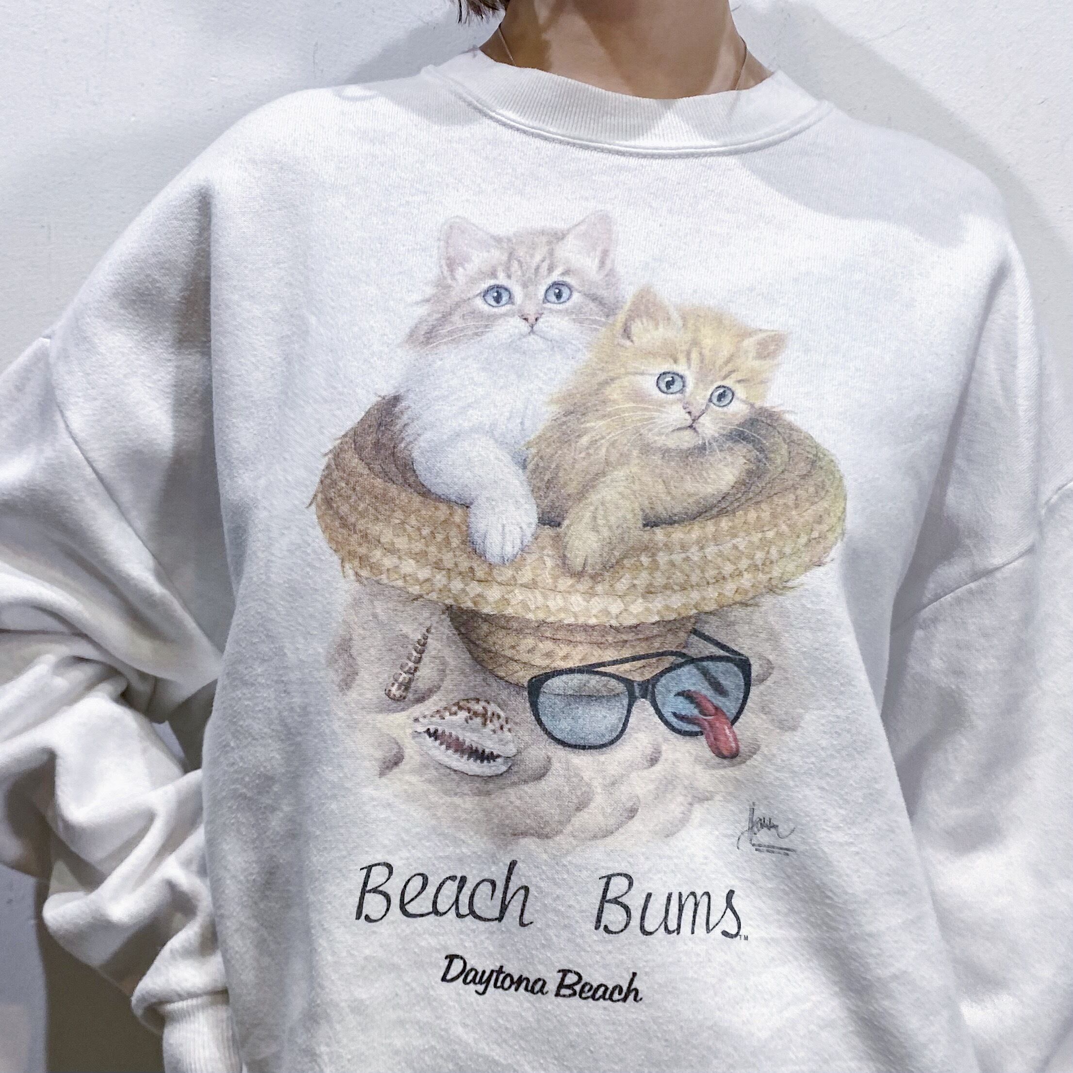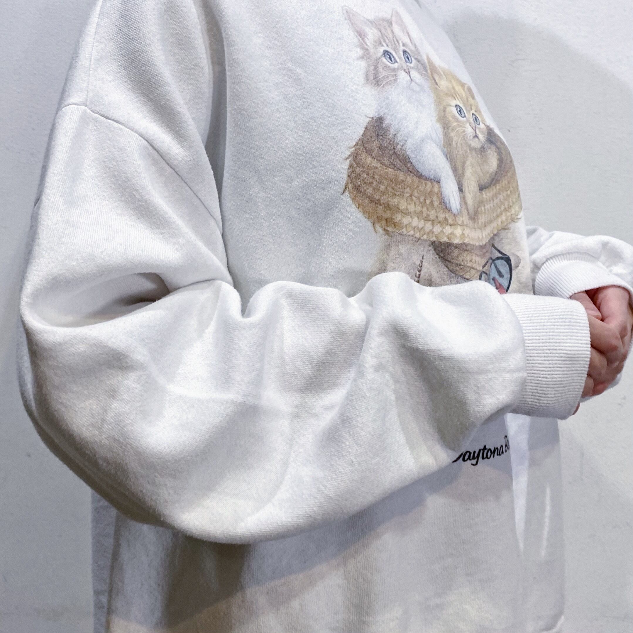 キュートな猫ちゃんたちのプリントが可愛い、90年代のスウェットです。