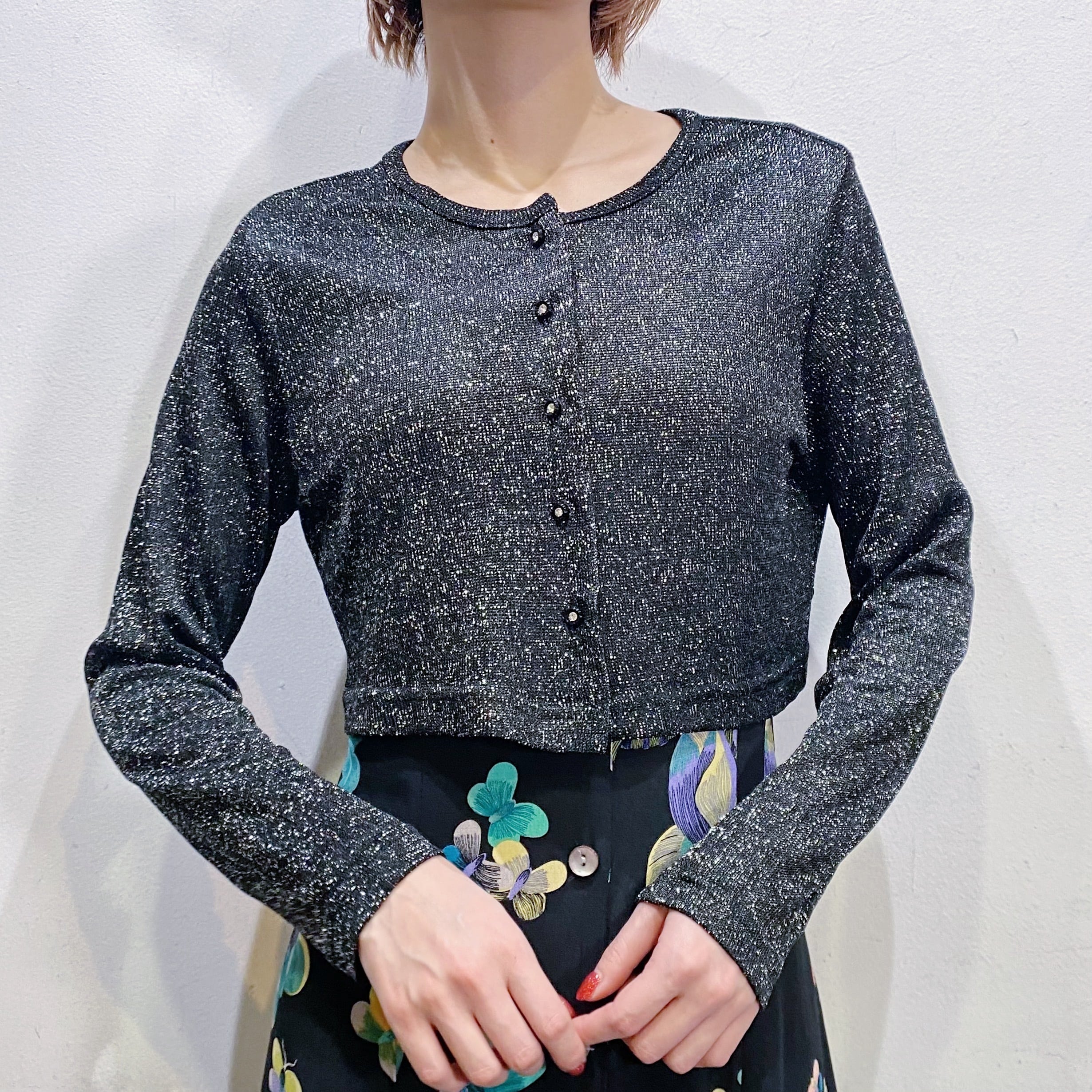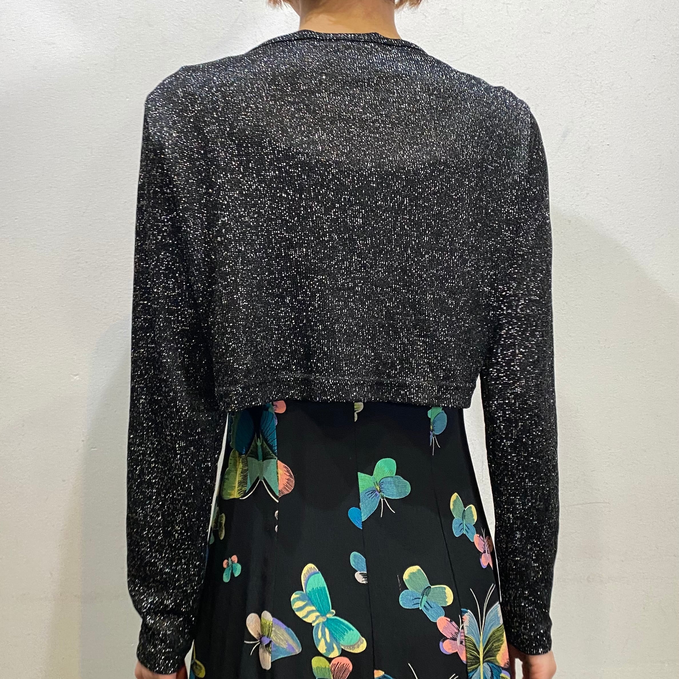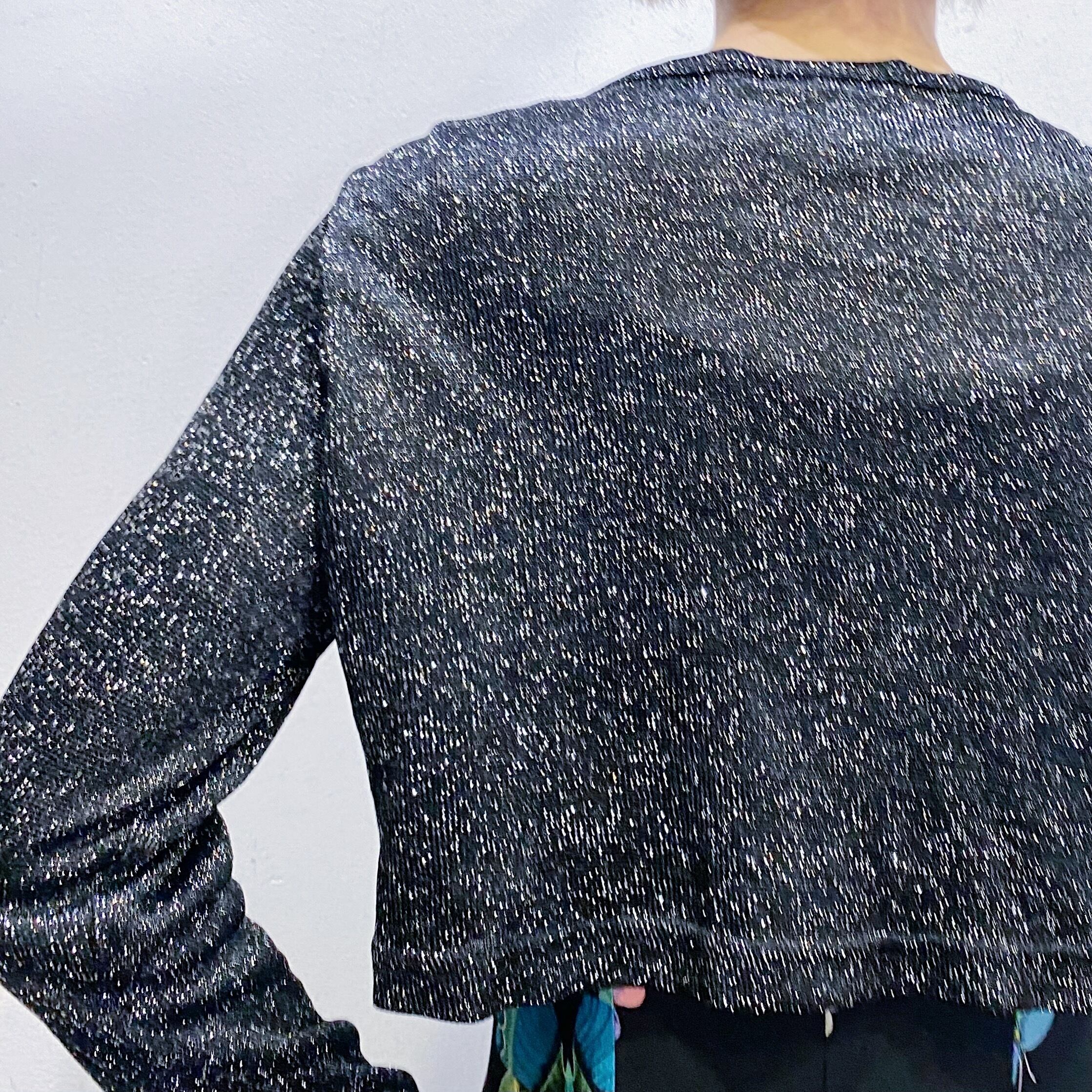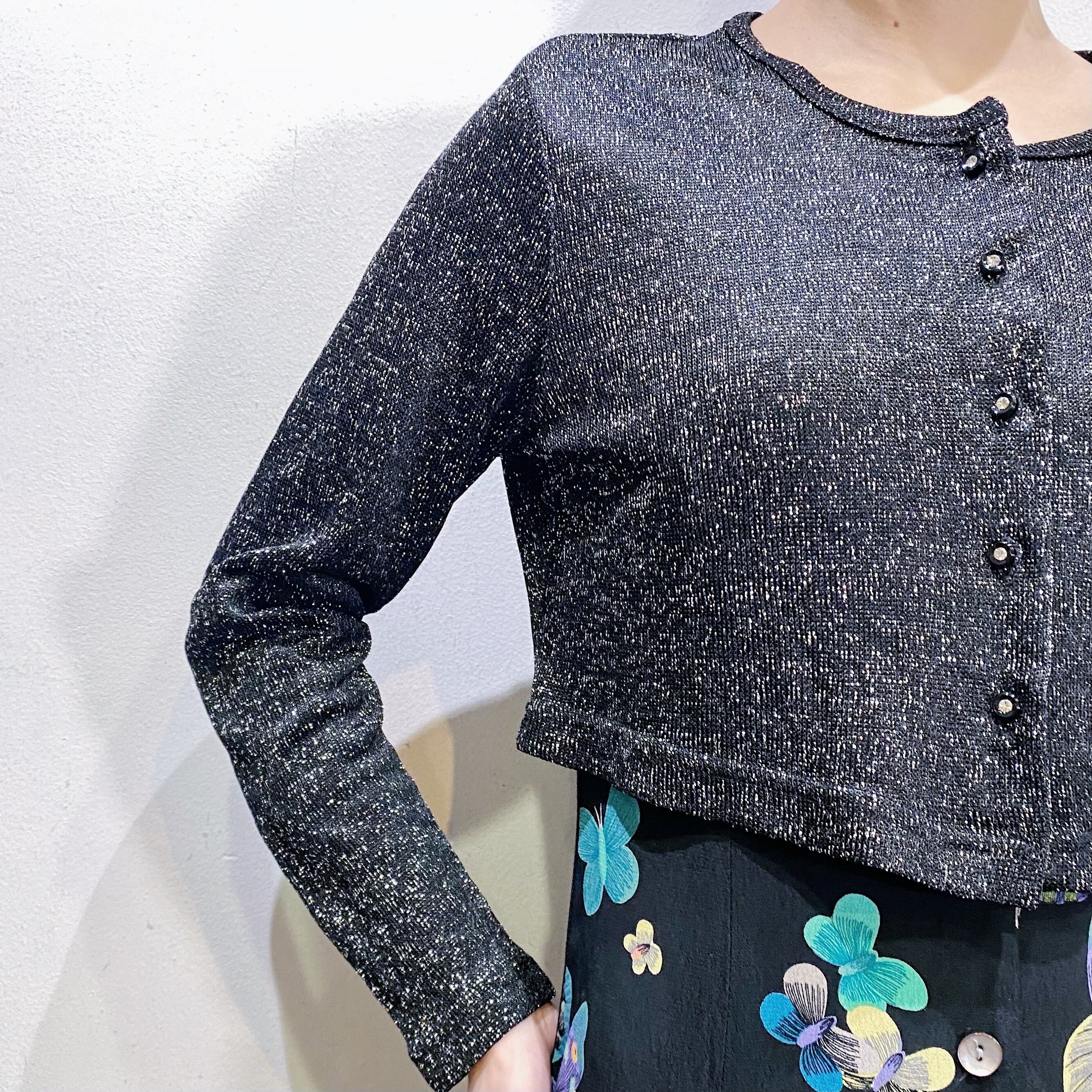 ブラックベースにシルバーのラメ糸が可愛い、80年代のカーディガンです。