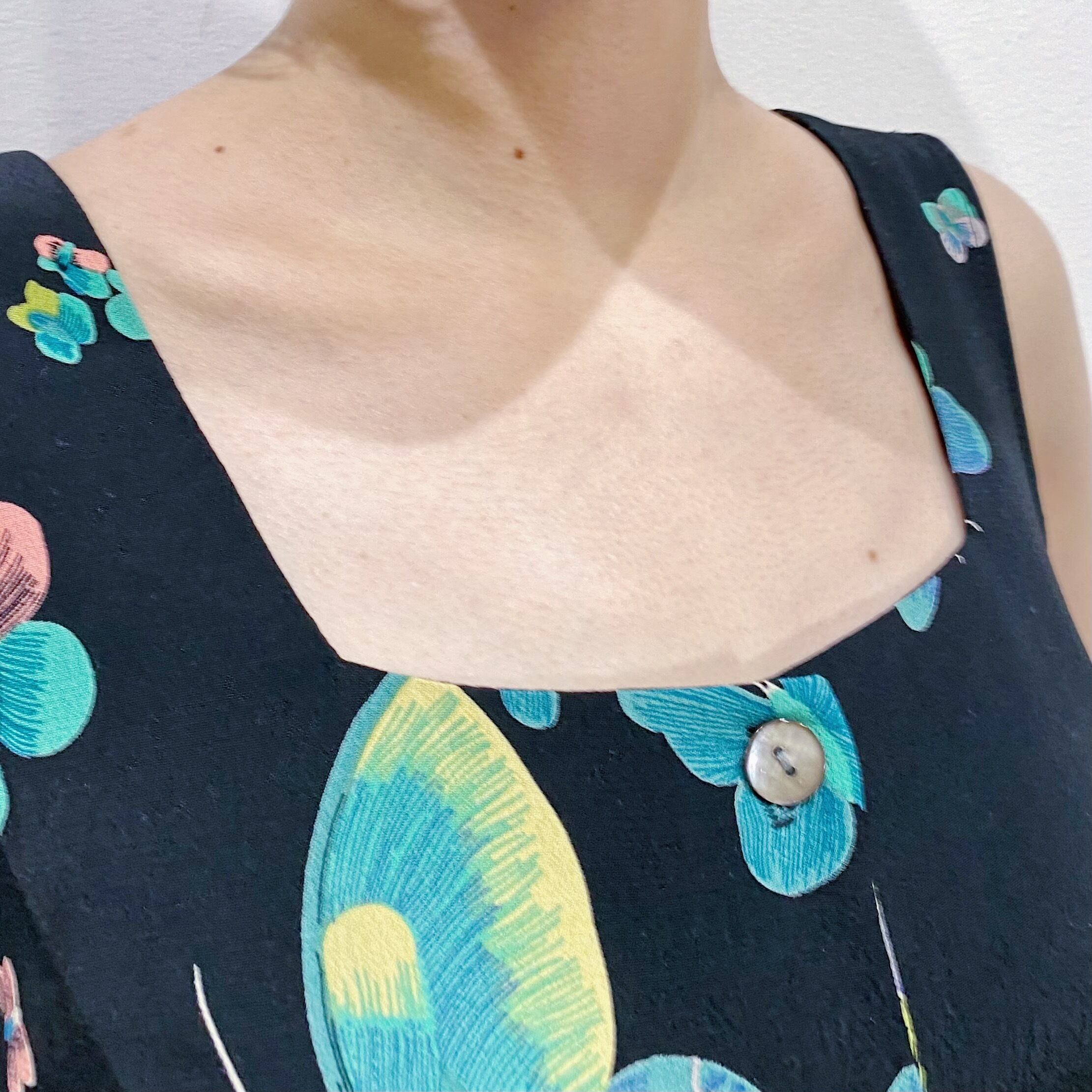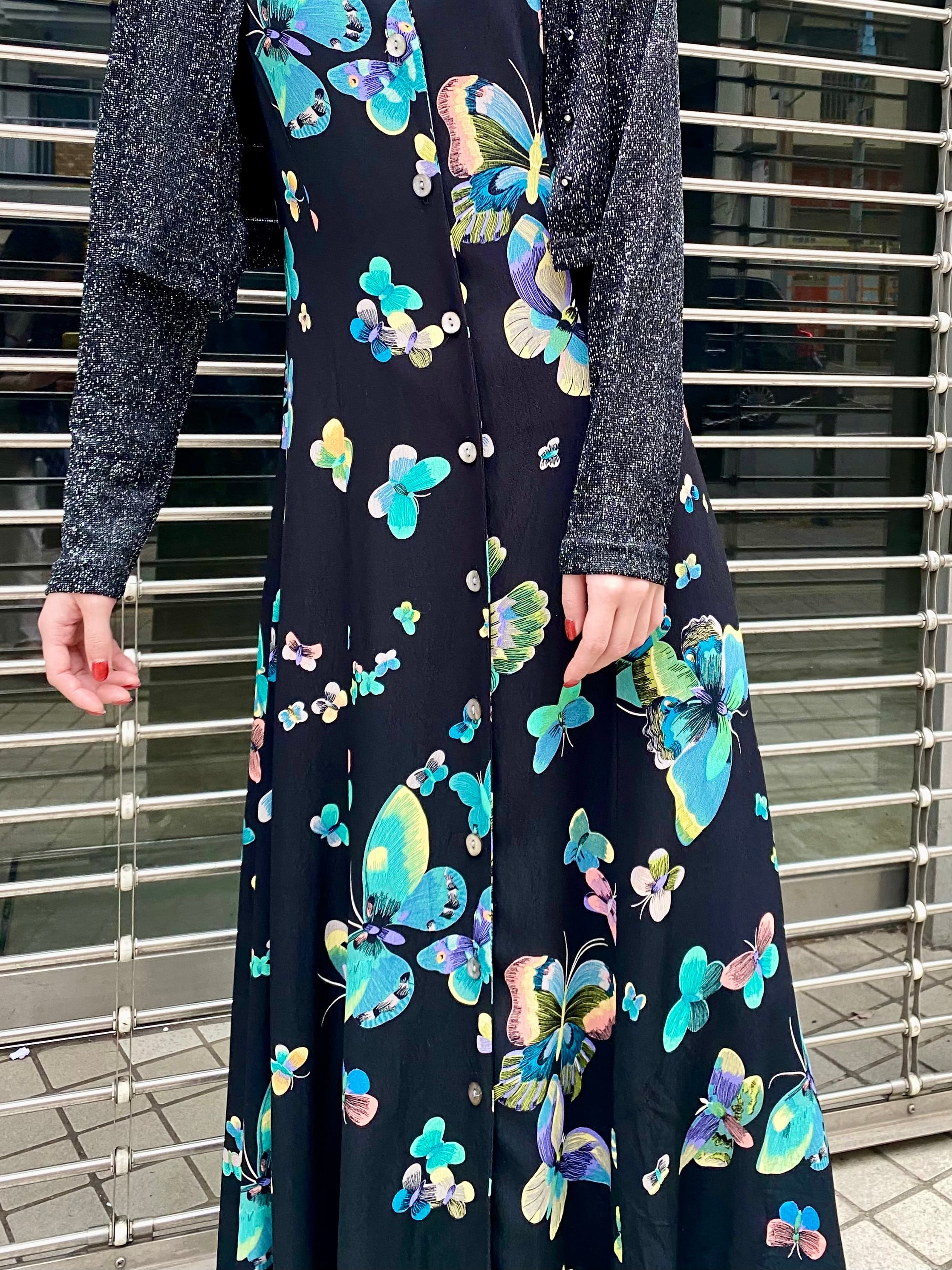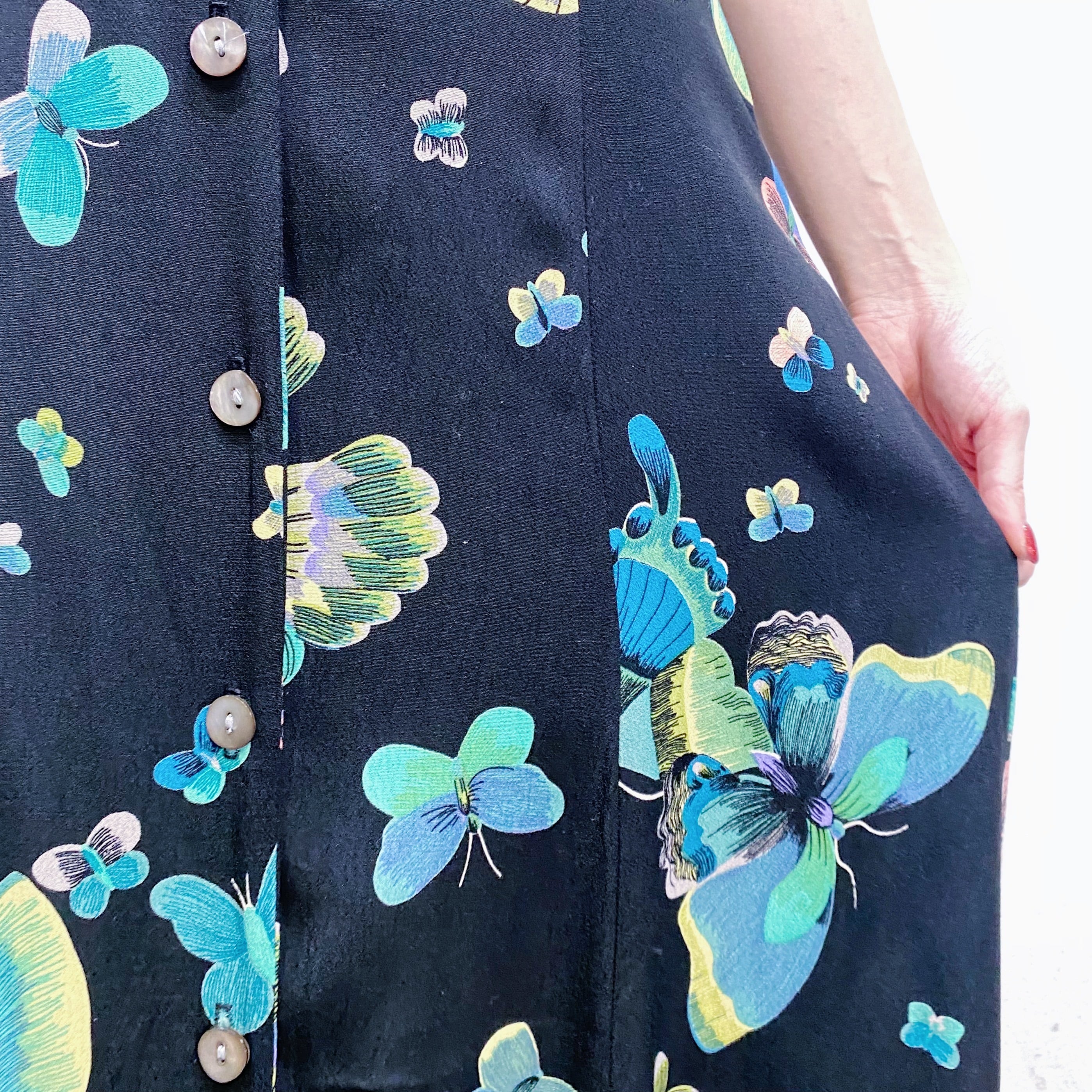 蝶々のプリントがとっておきに可愛い、レーヨンワンピースです。
