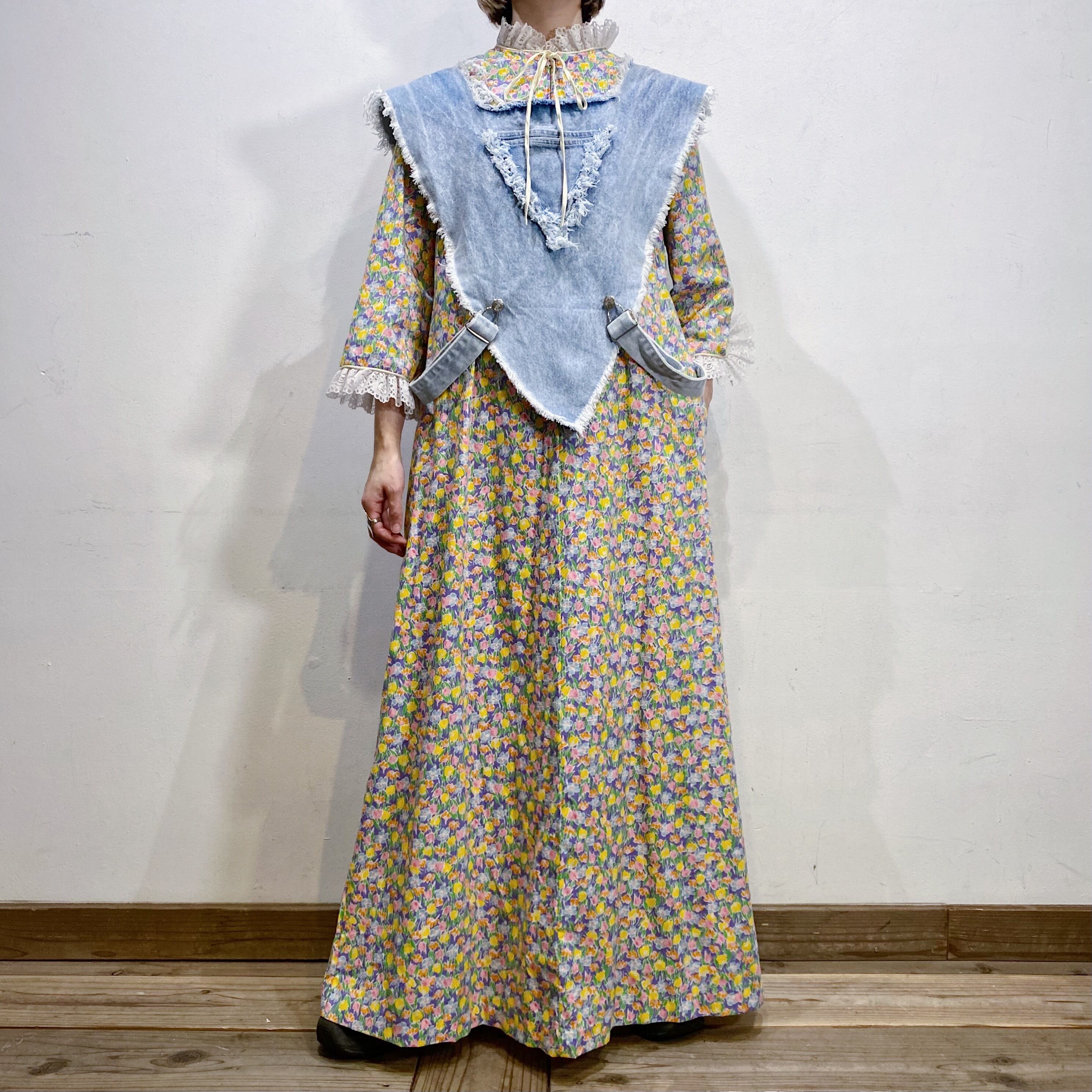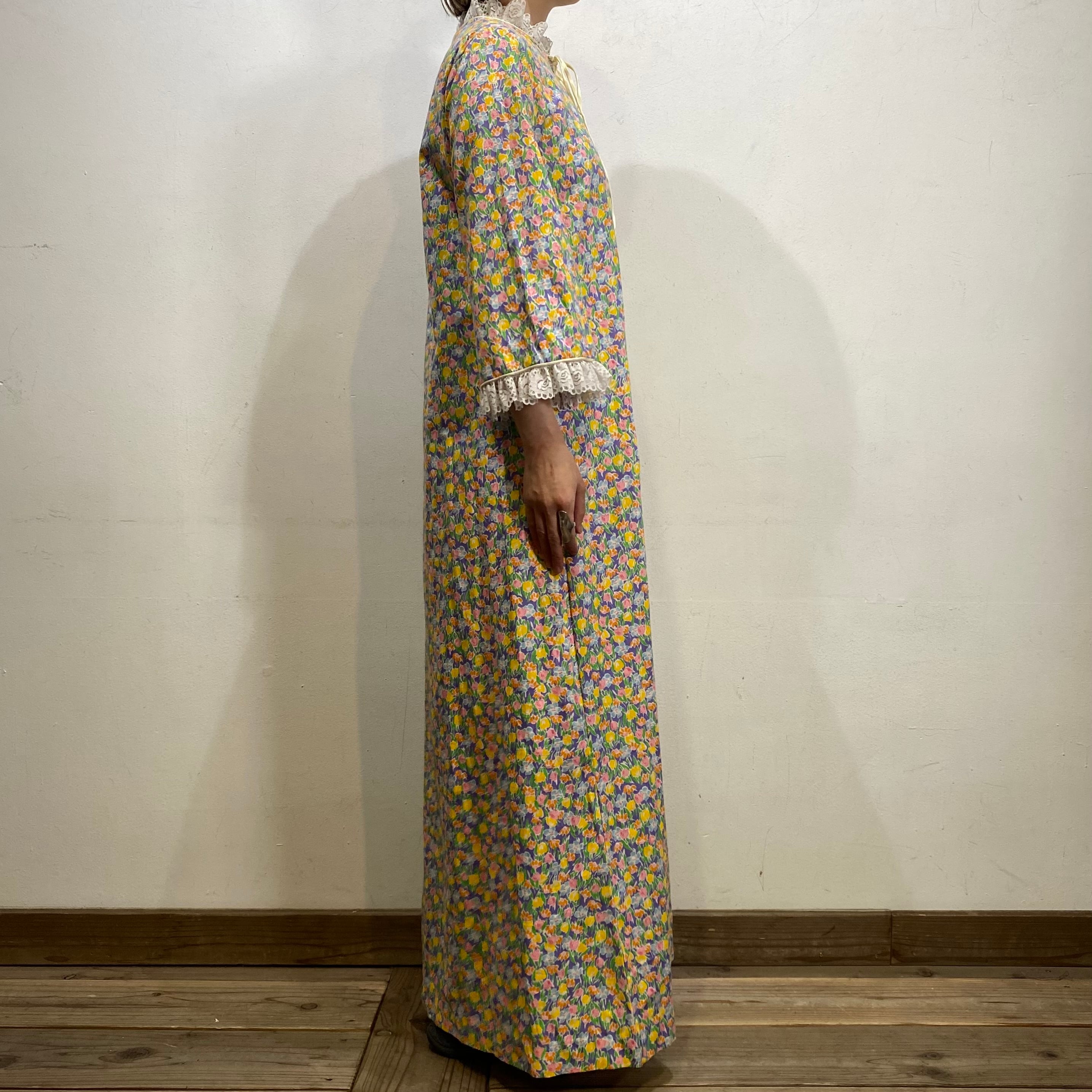 70s flower printed long smock dress