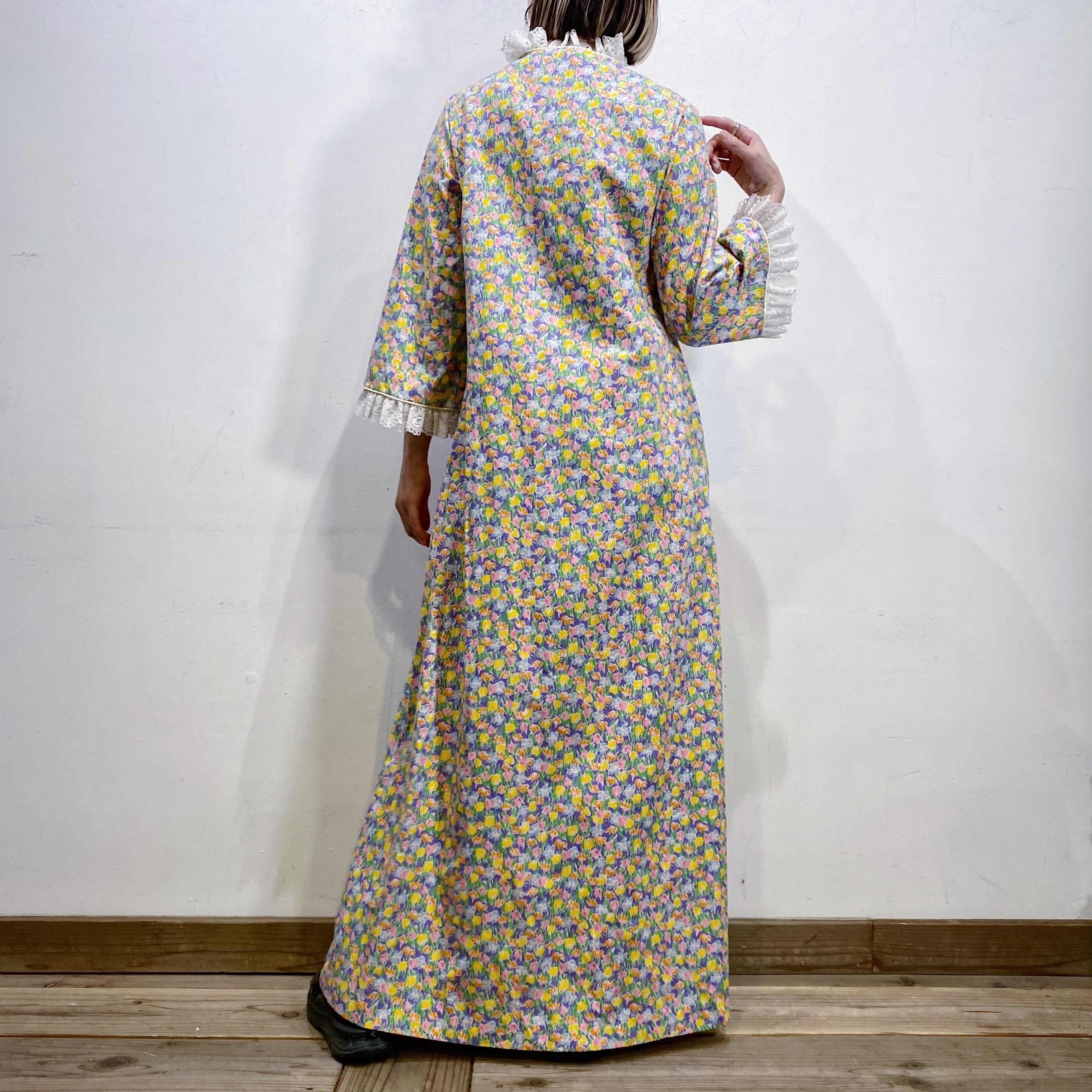 袖がフレアになっているのも可愛く、美シルエットな70sワンピースです。