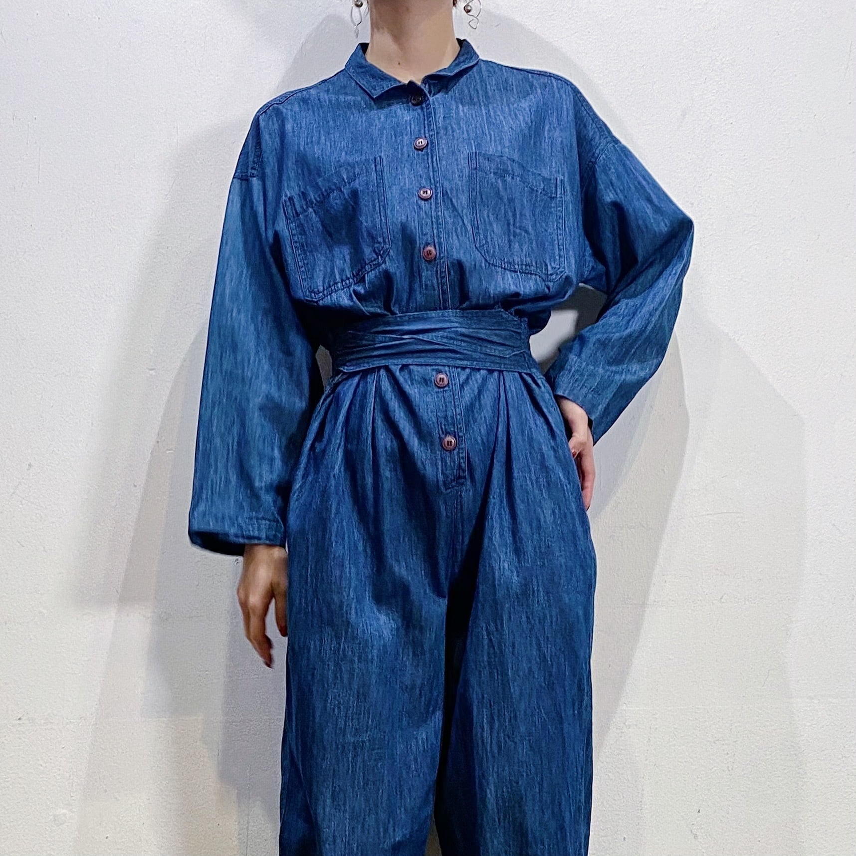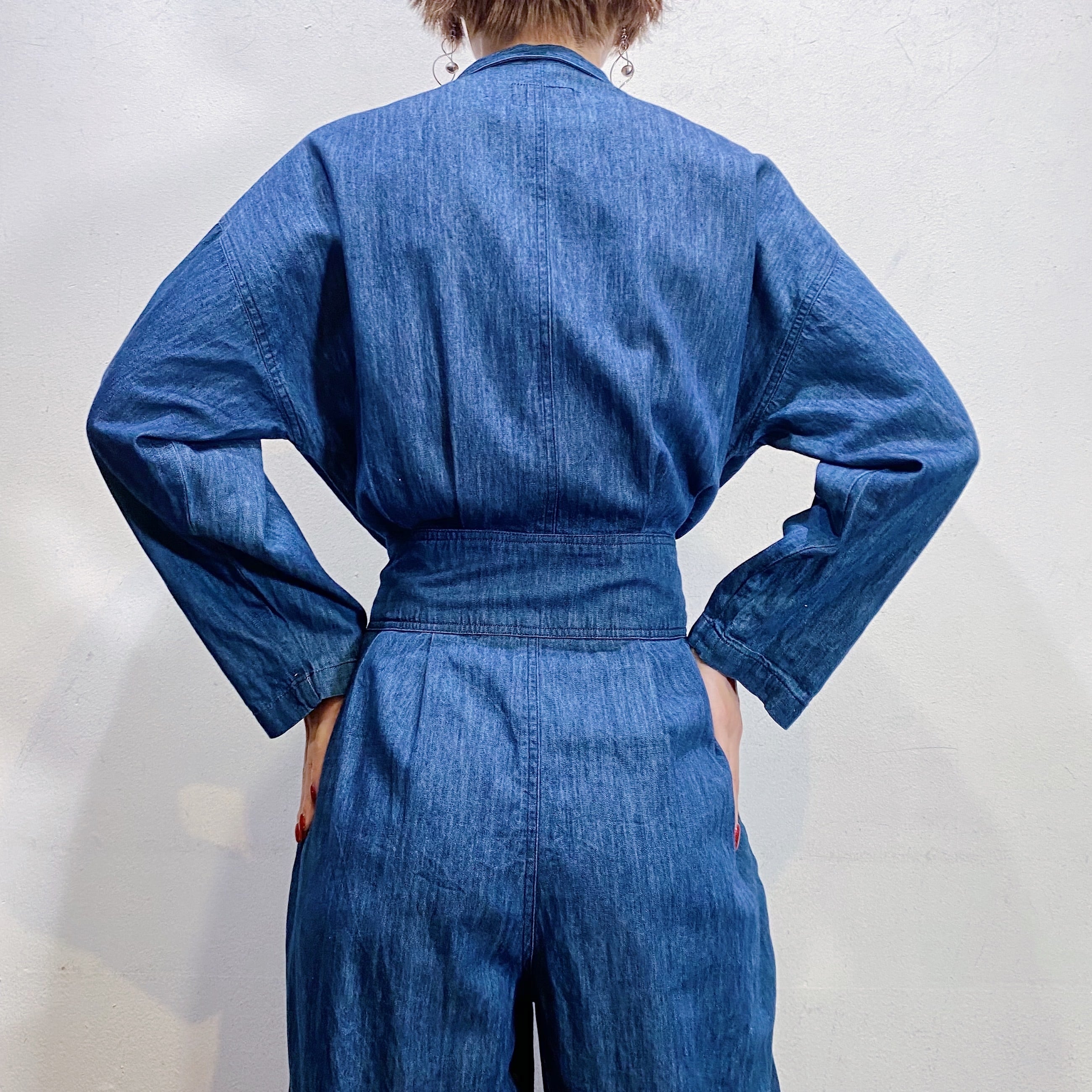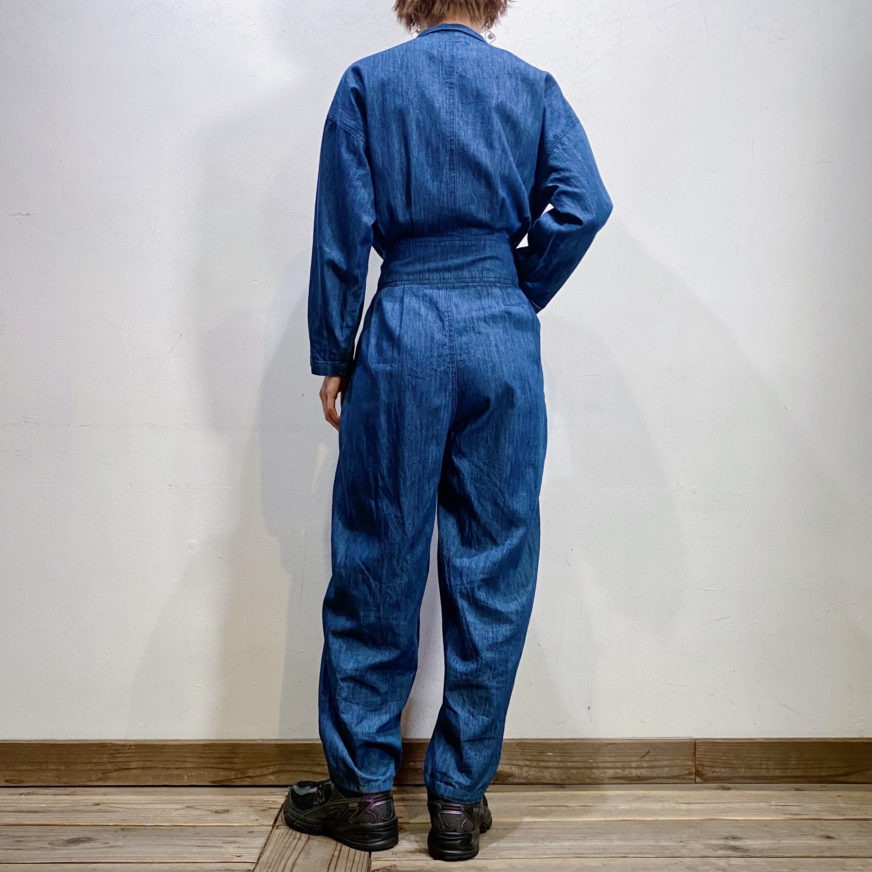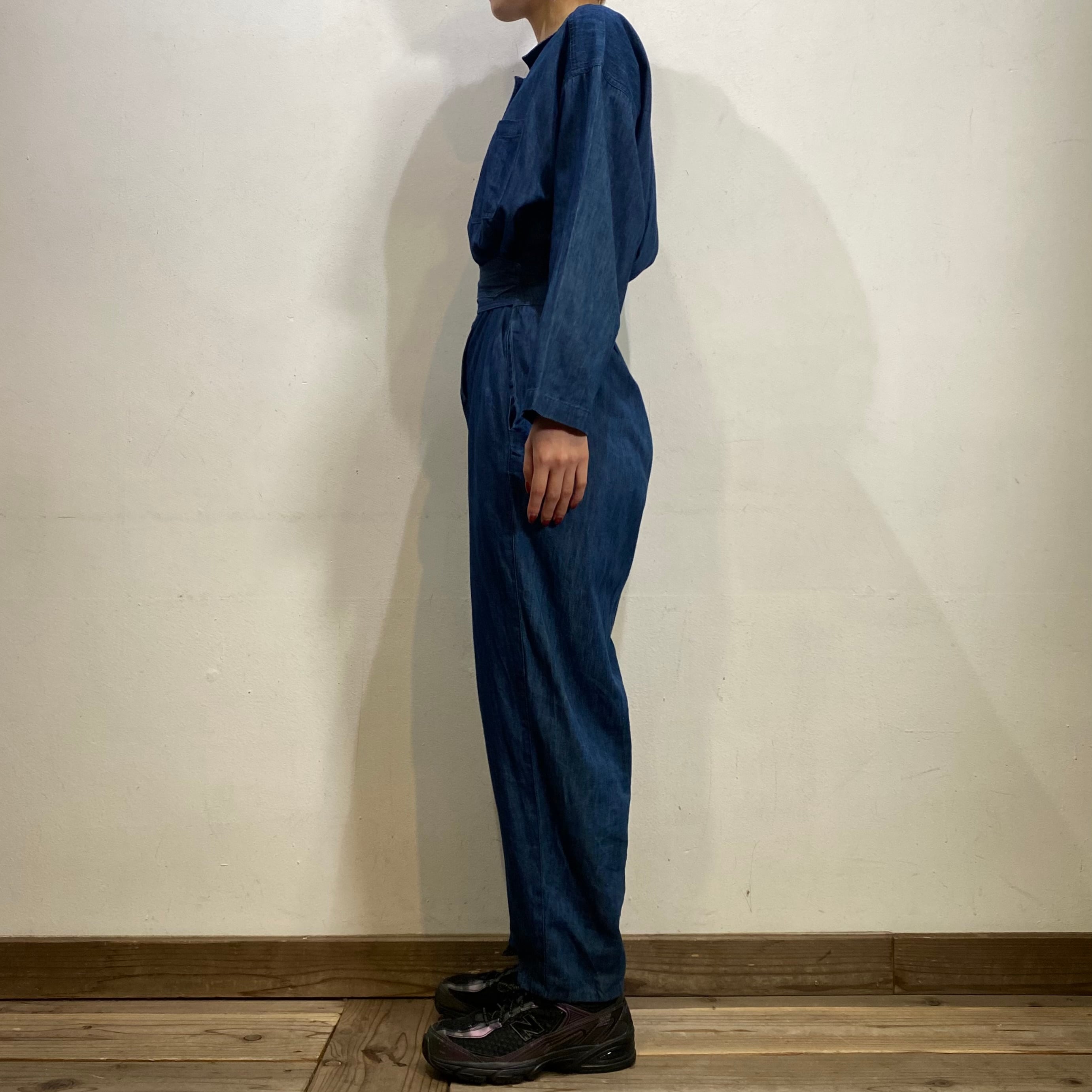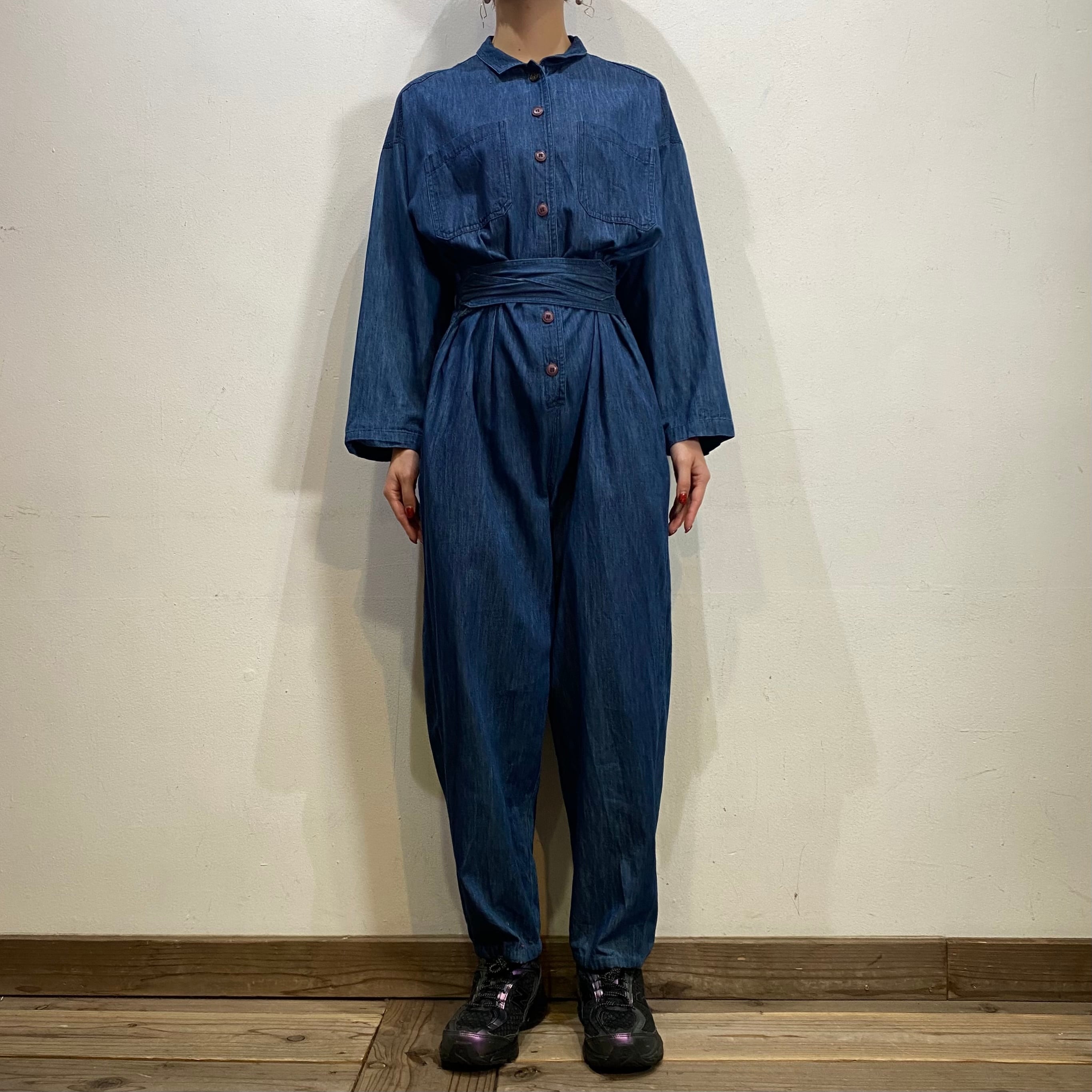 濃い目の色味のデニム生地がかわいい、90年代のジャンプスーツです。