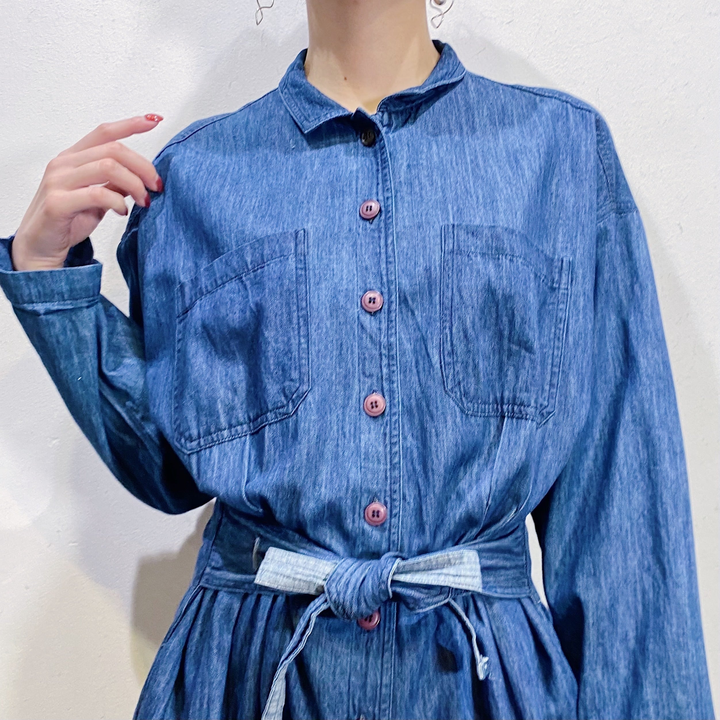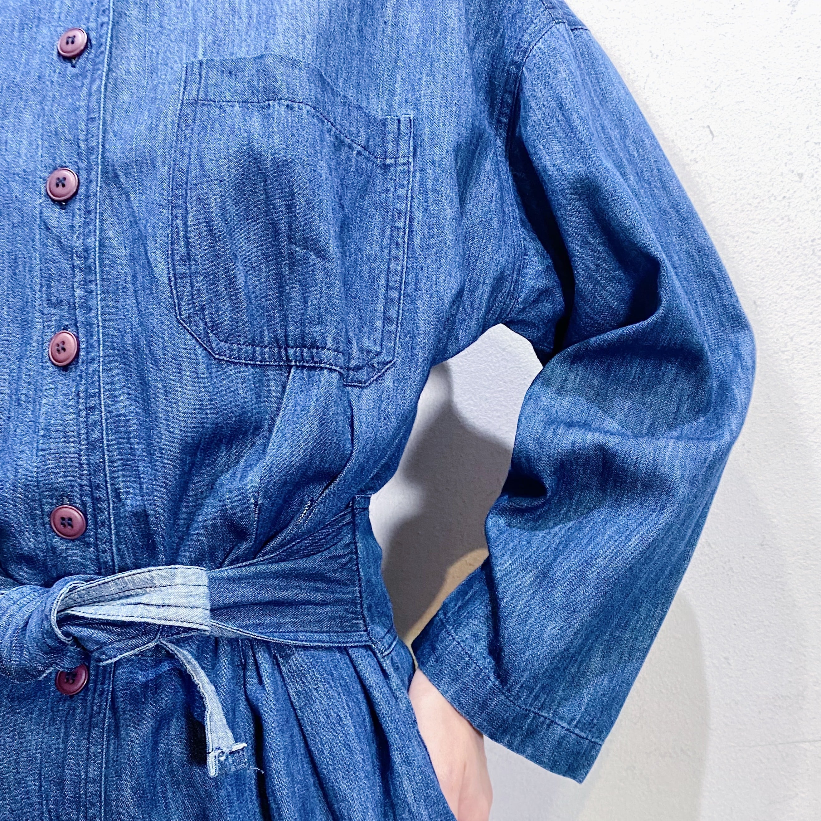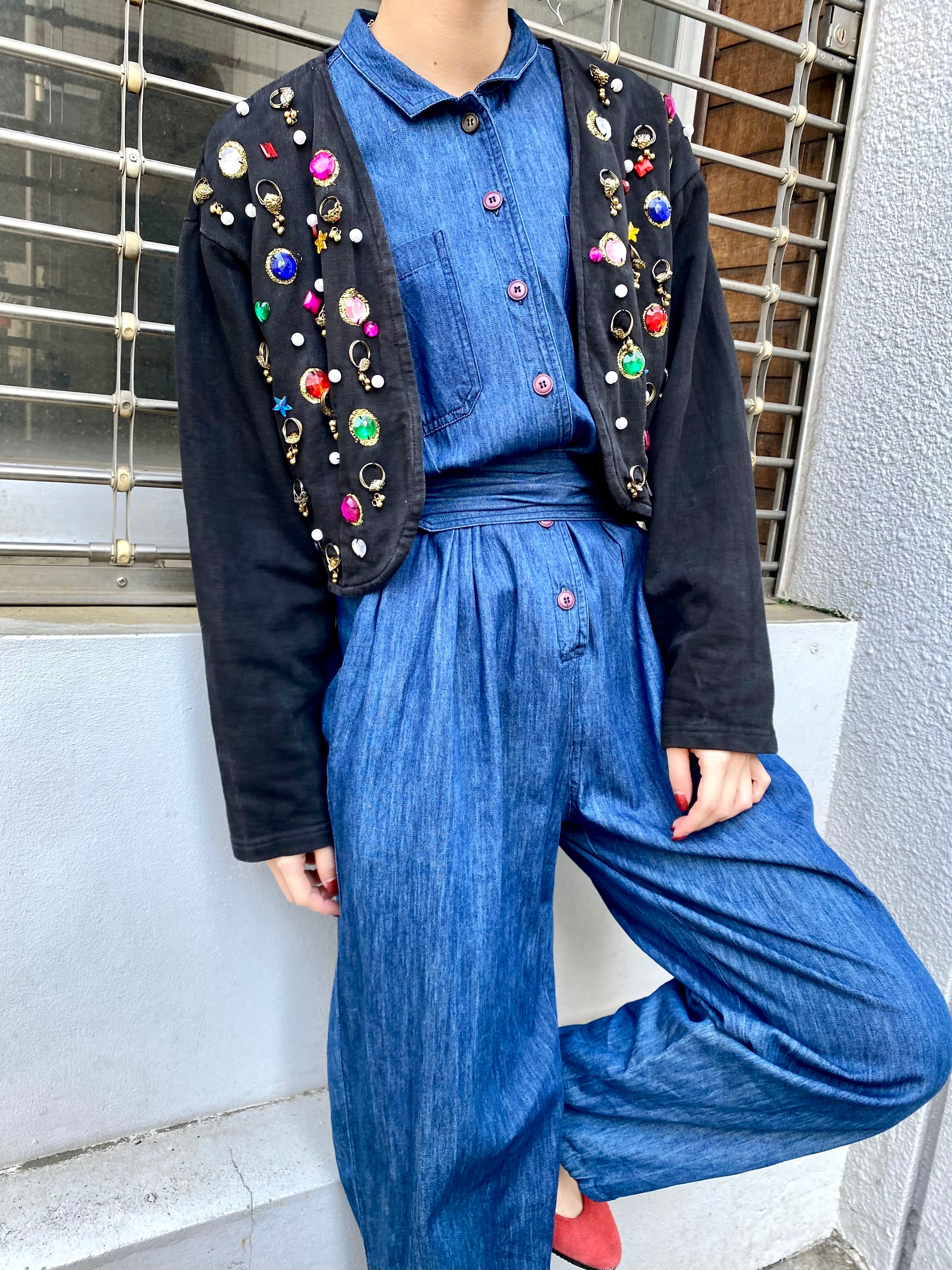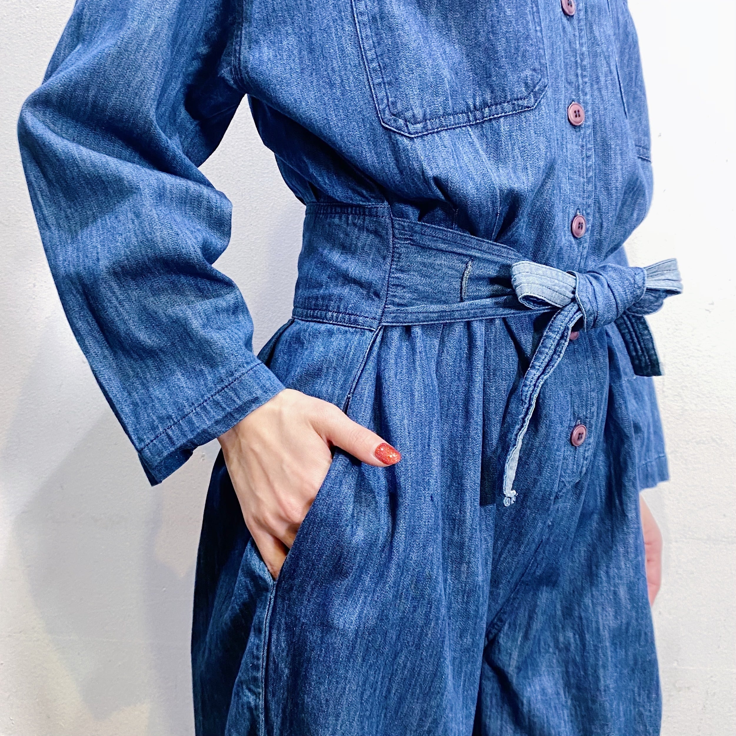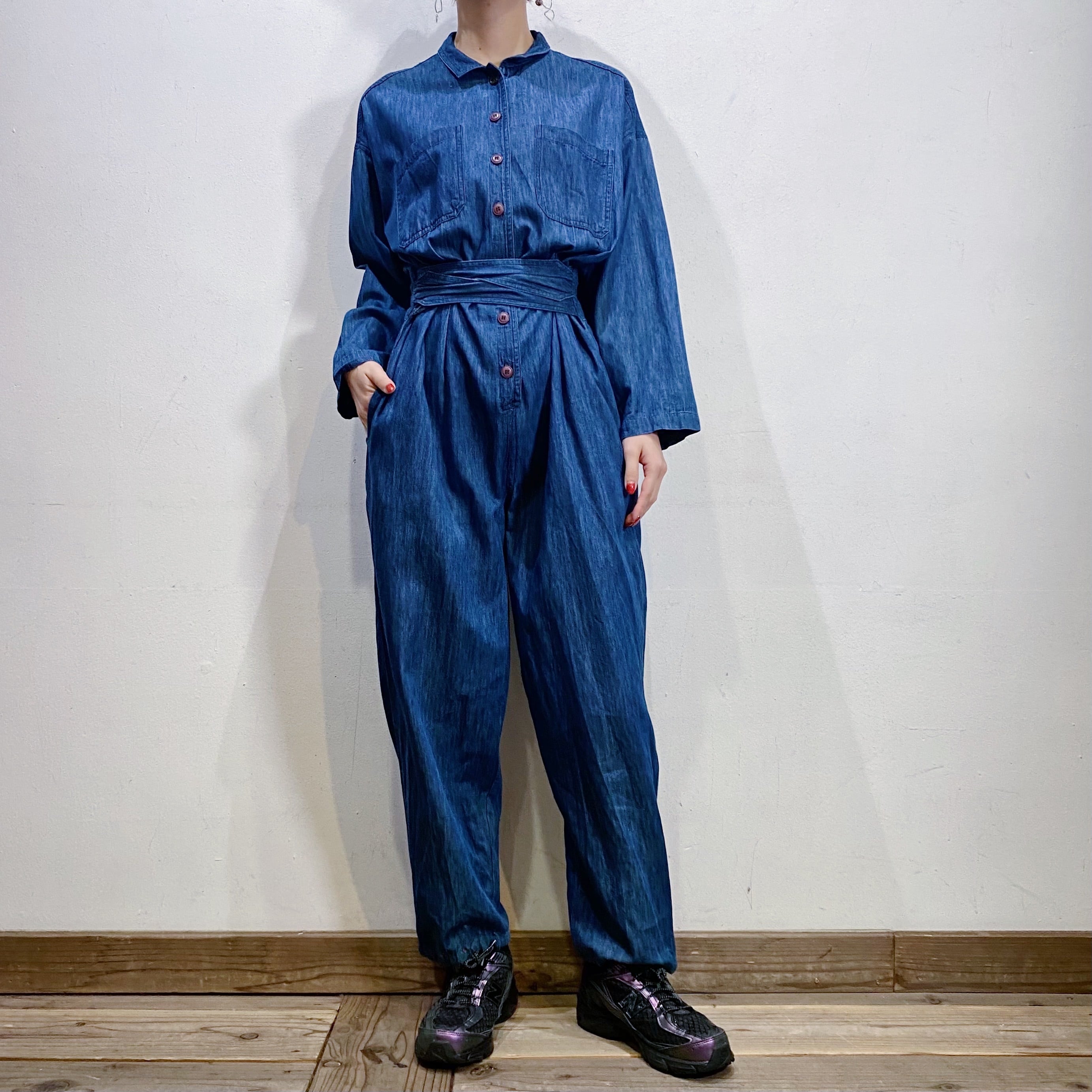 濃い目の色味のデニム生地がかわいい、90年代のジャンプスーツです。