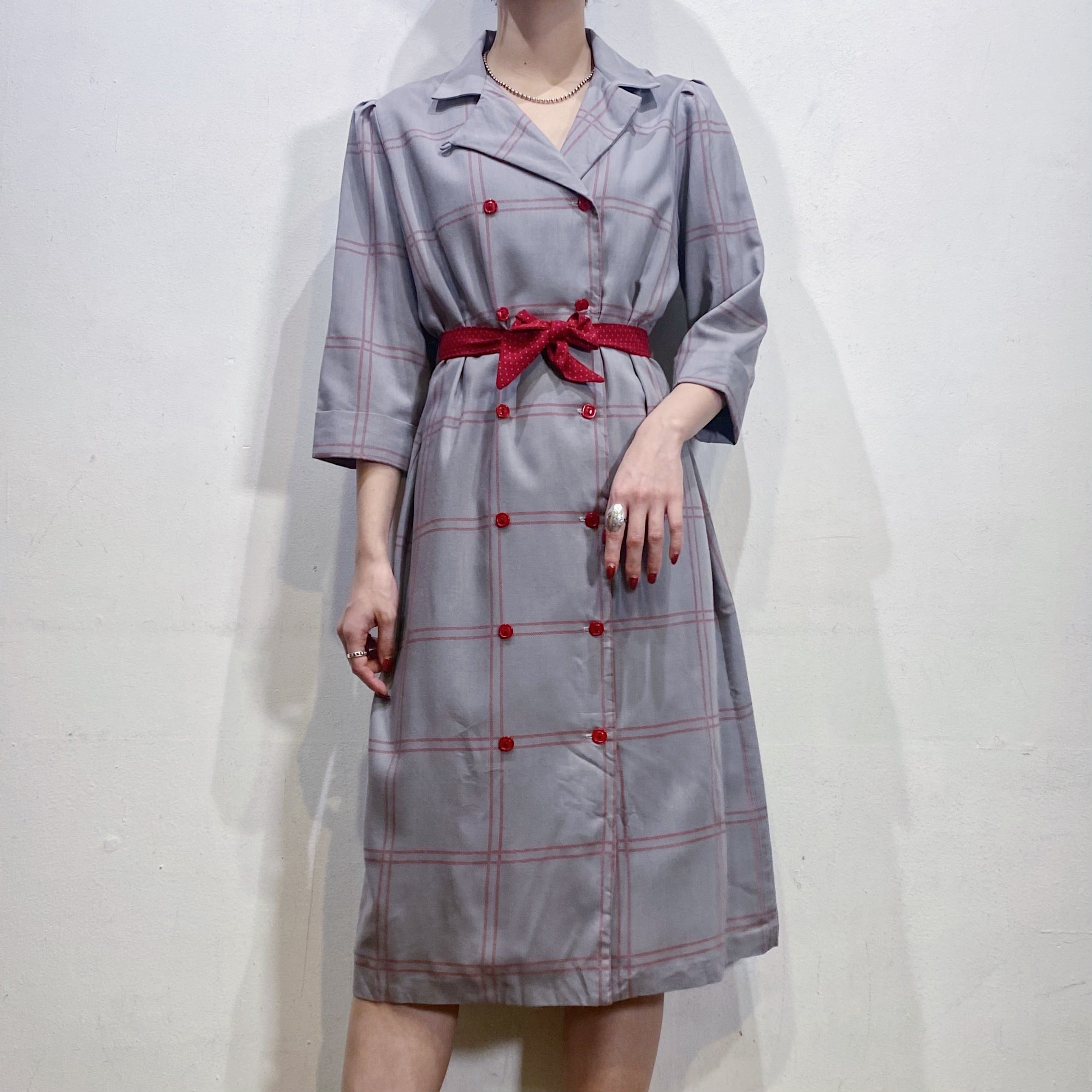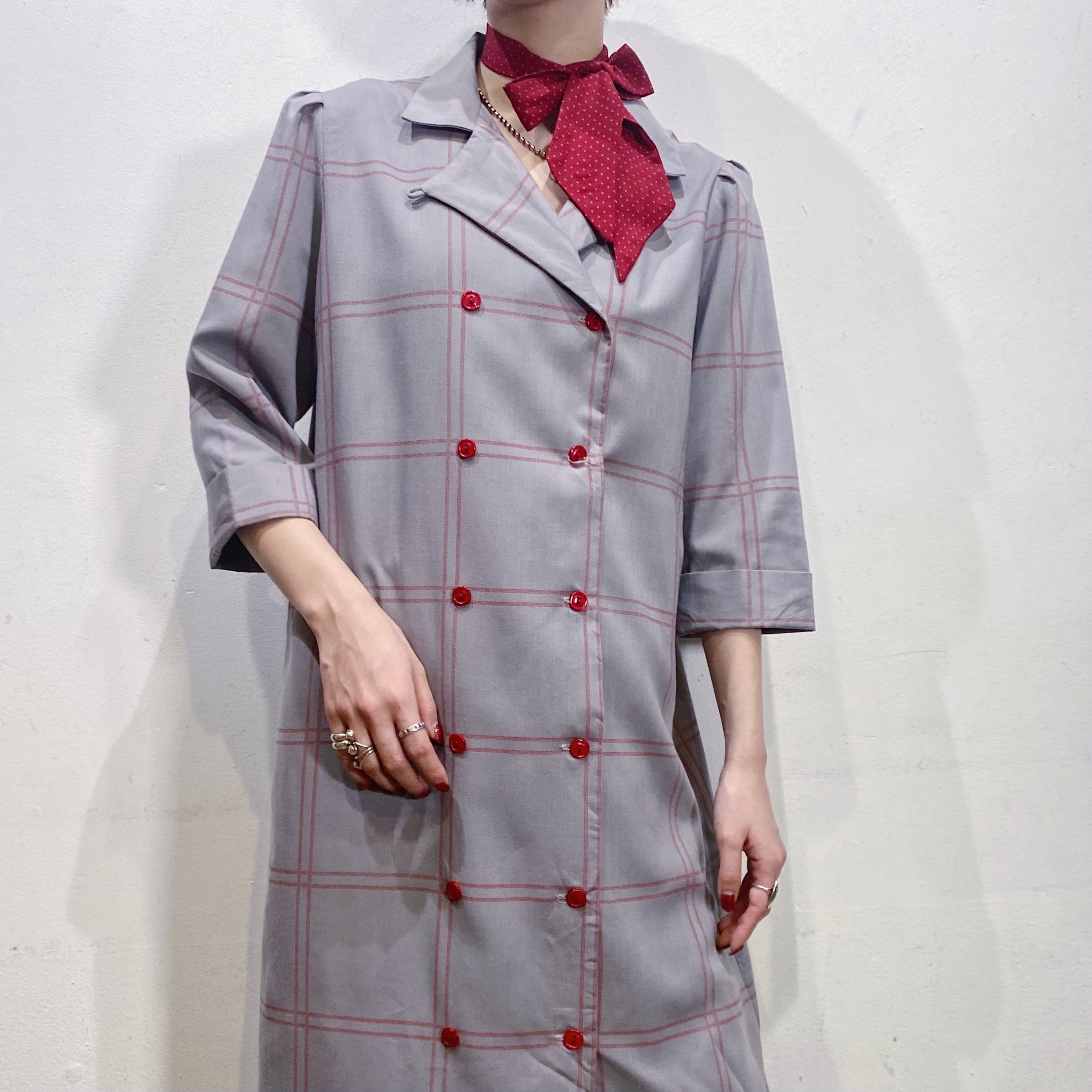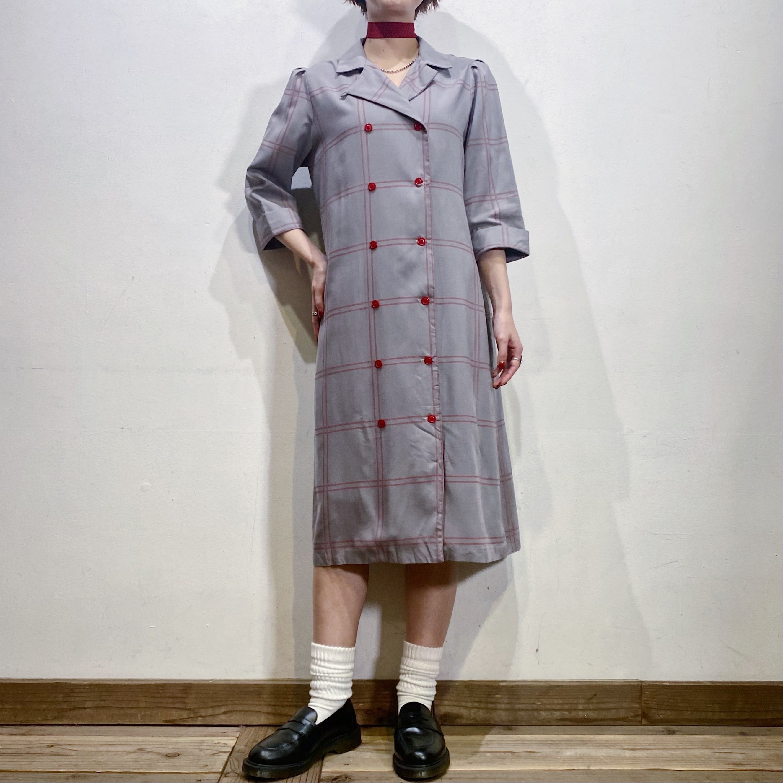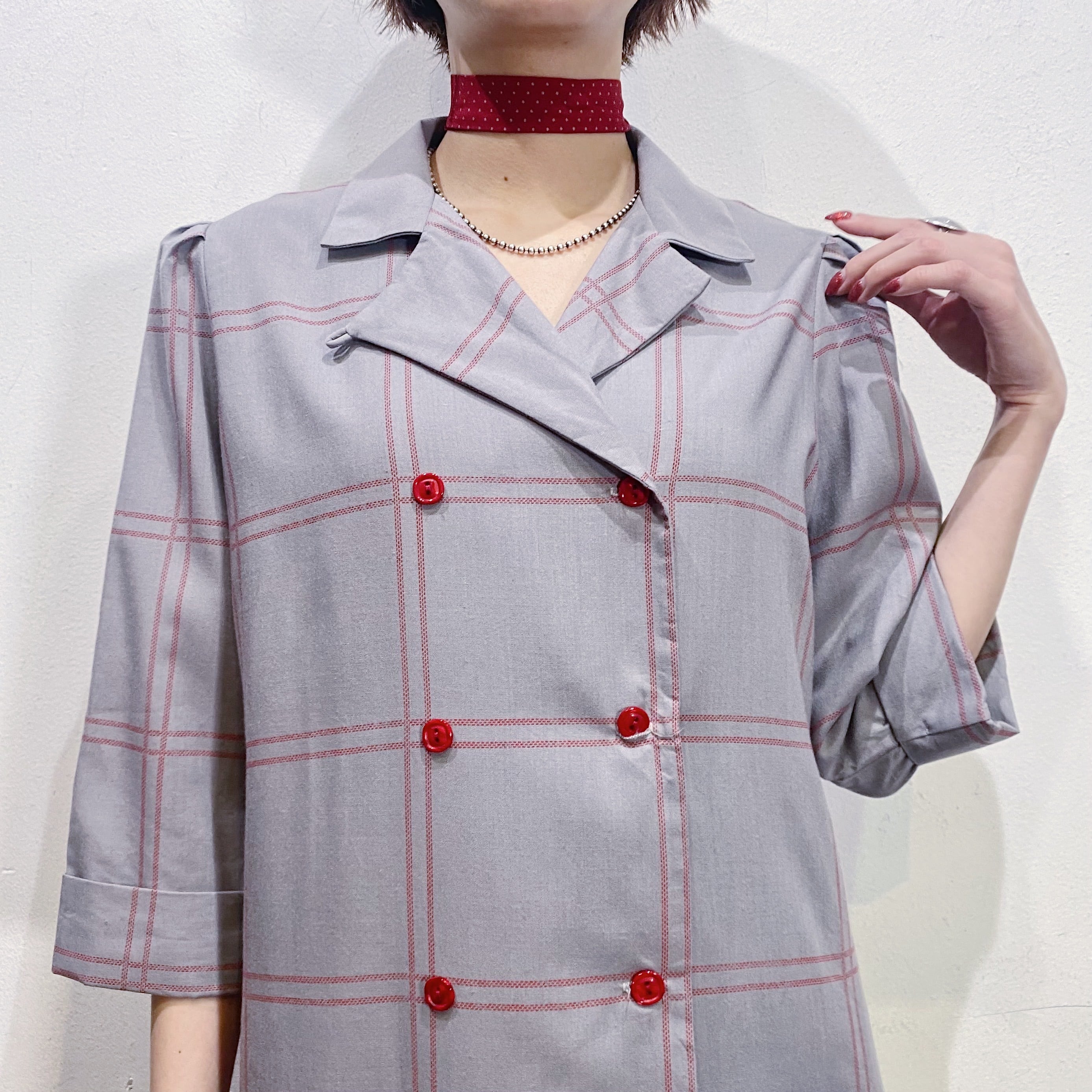 グレー×レッドのチェックの色合わせが可愛い、80年代のシャツワンピースです。