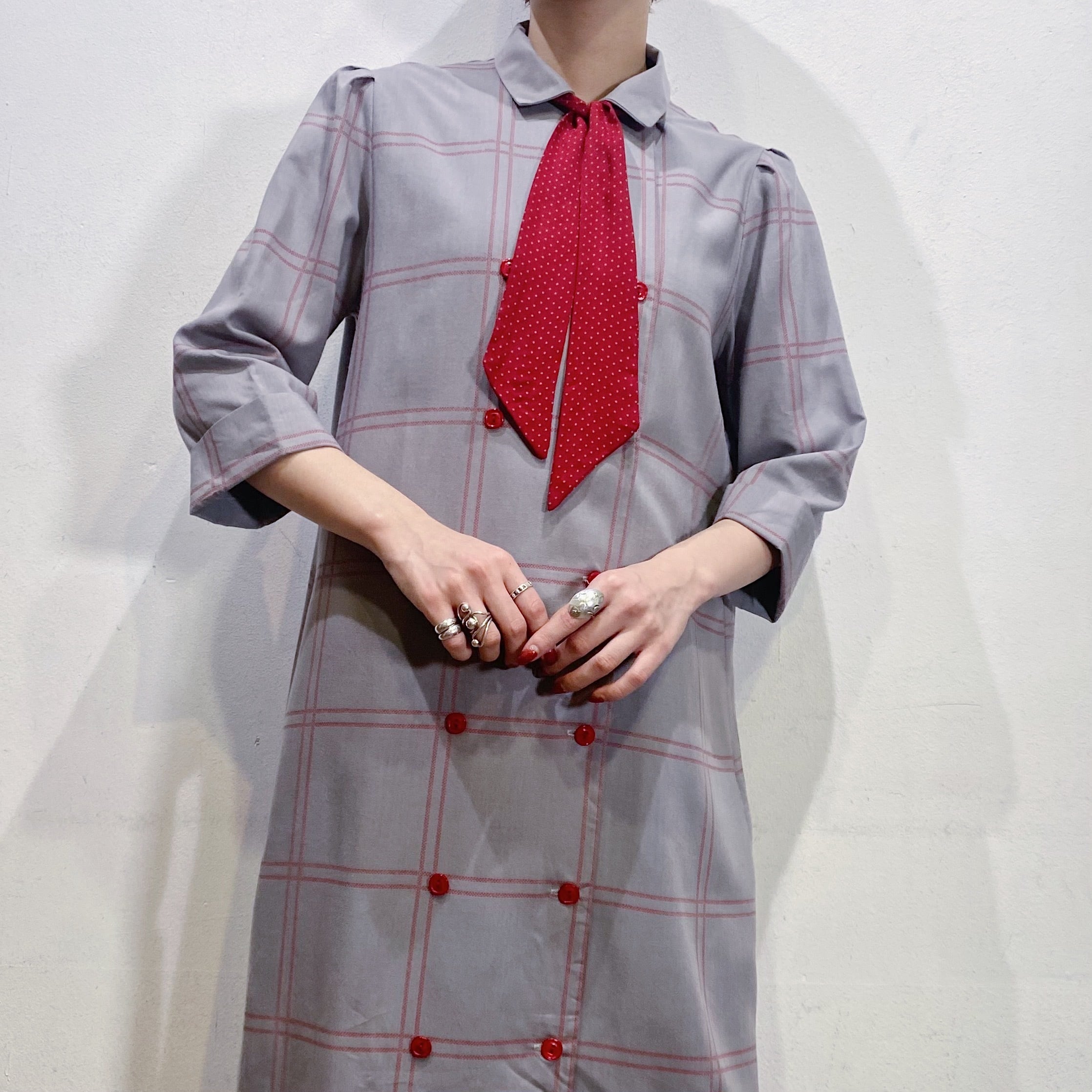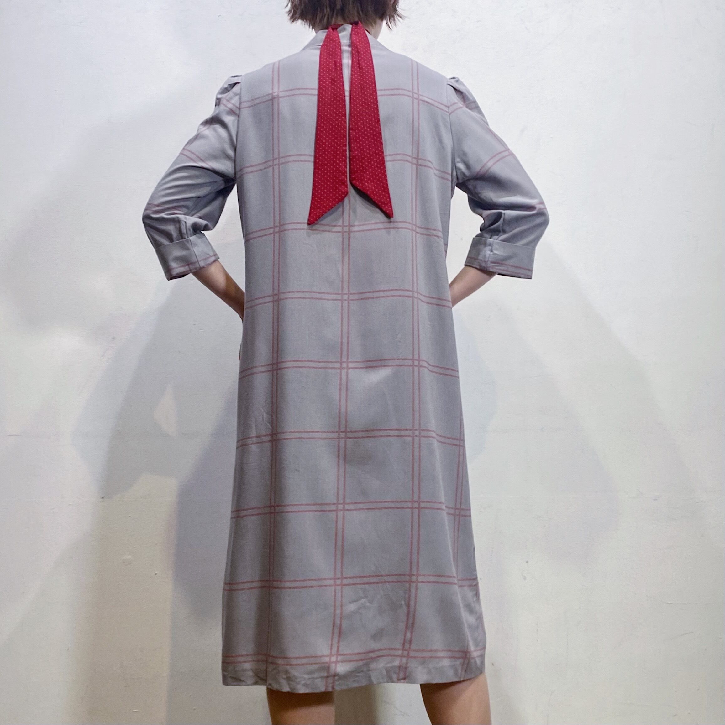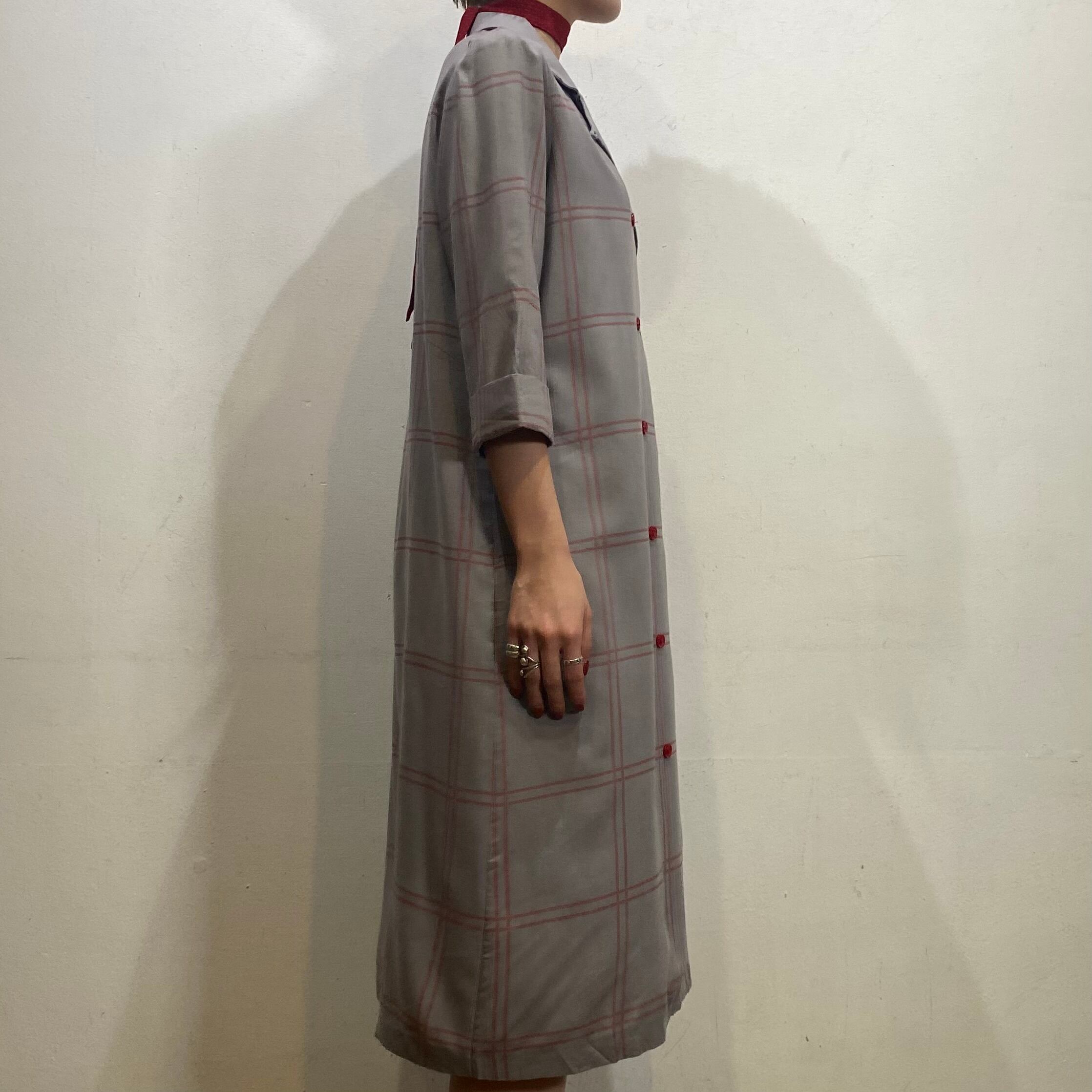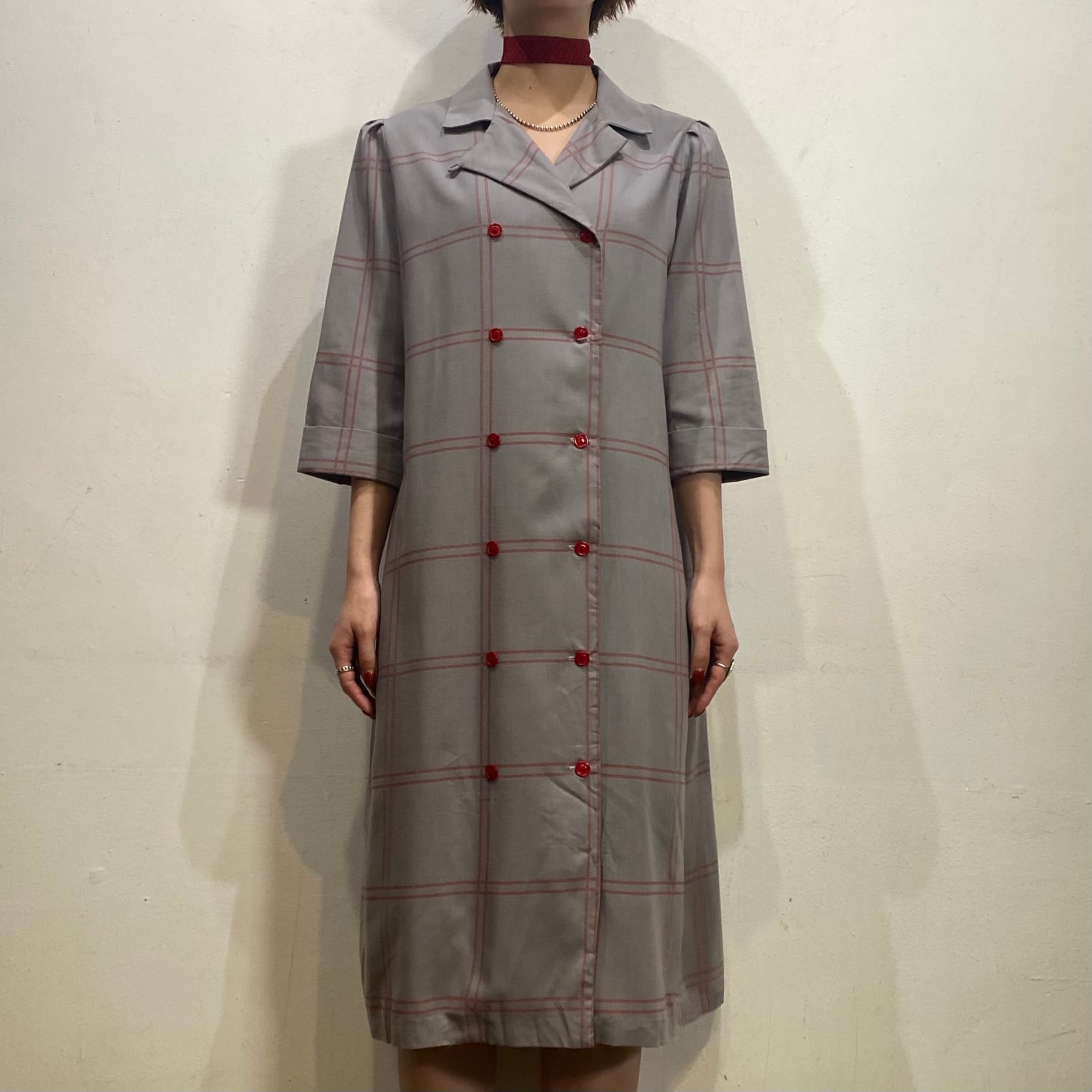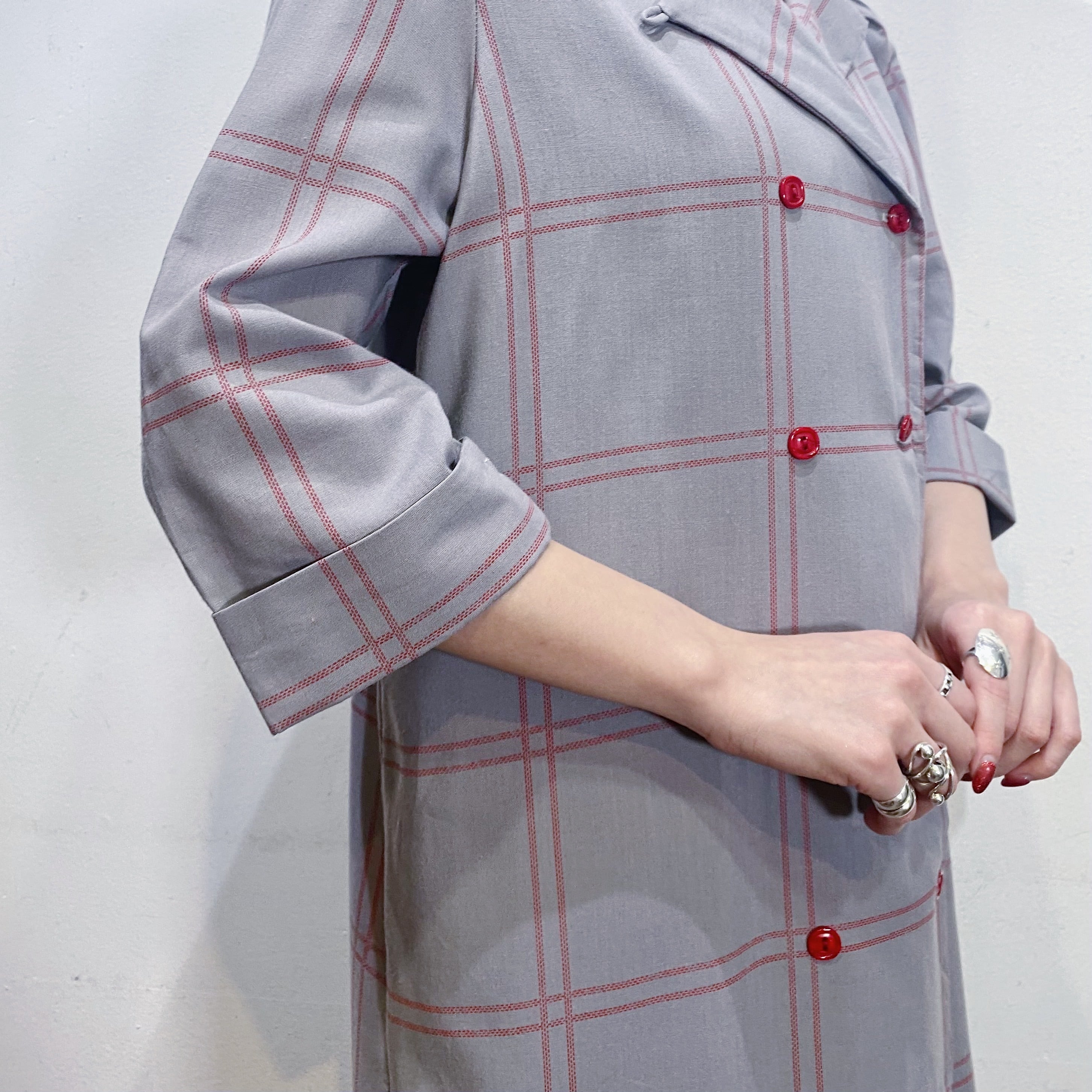 グレー×レッドのチェックの色合わせが可愛い、80年代のシャツワンピースです。