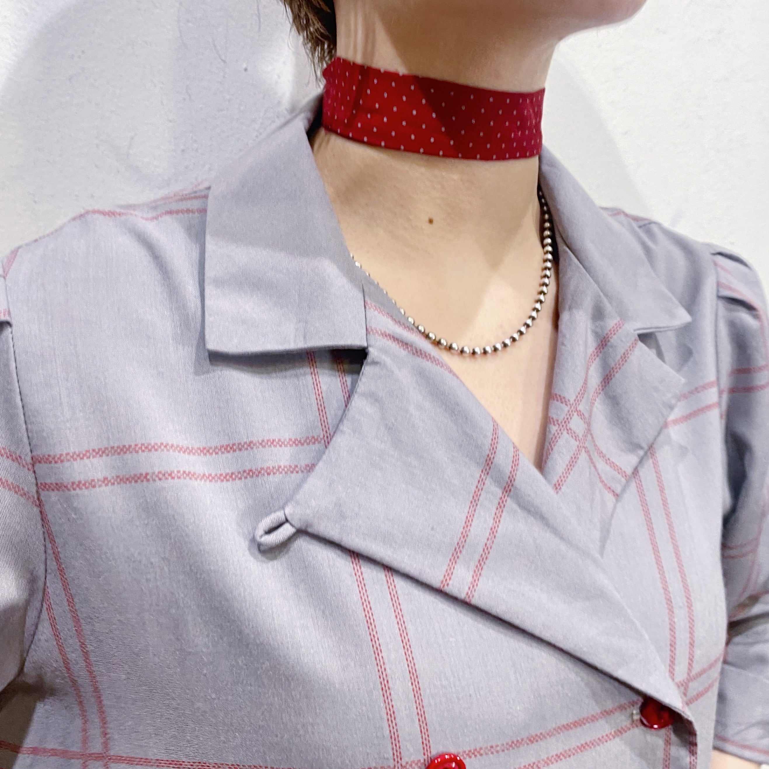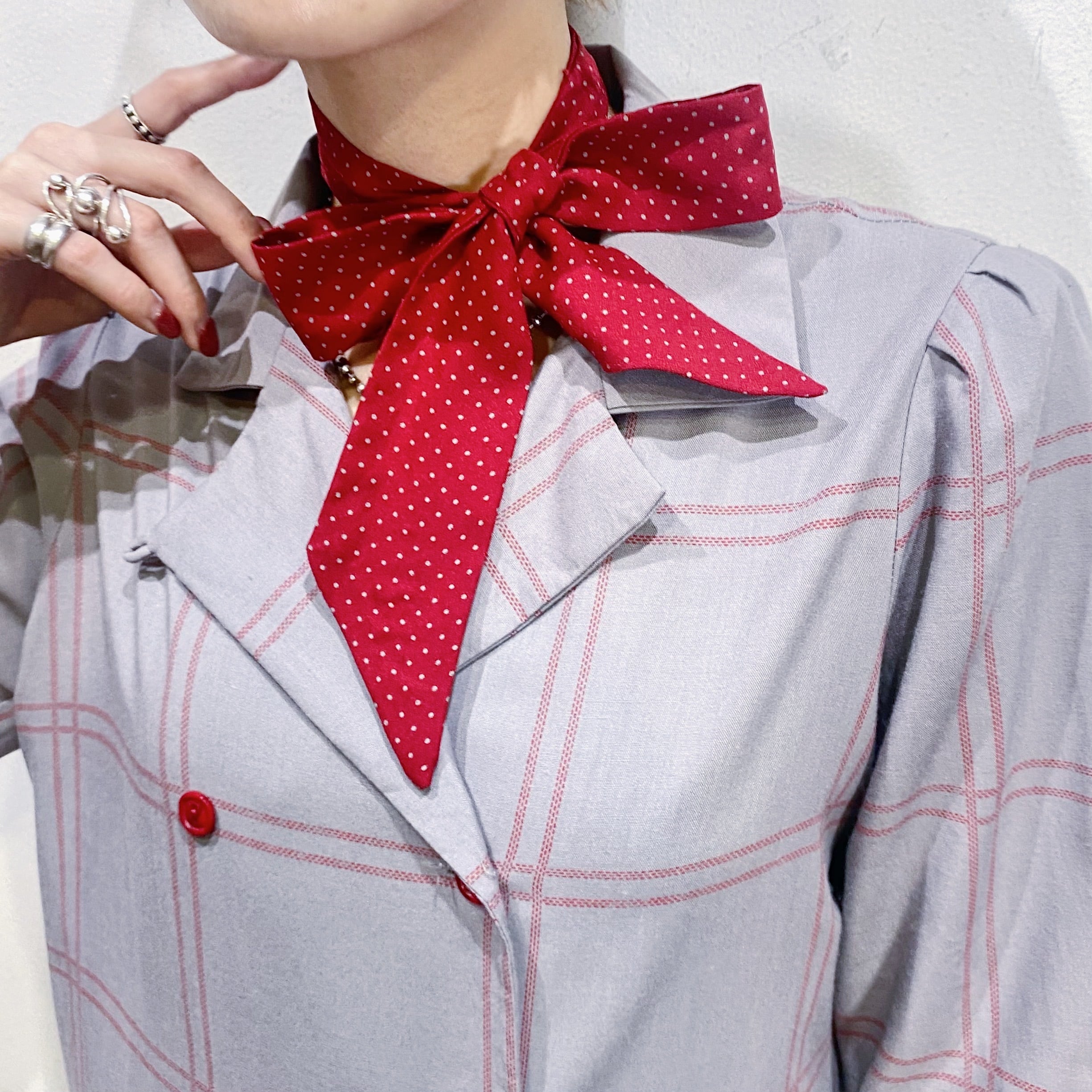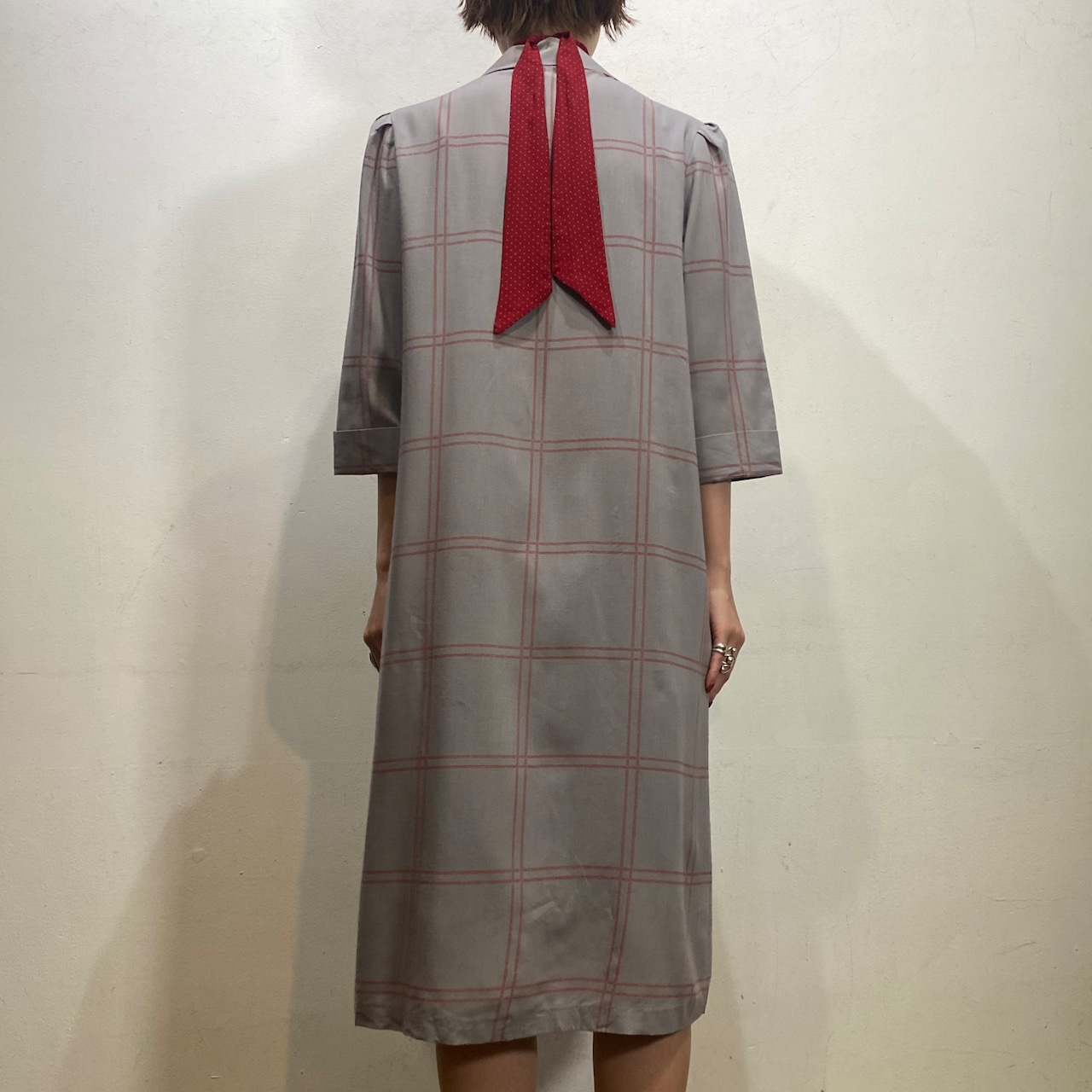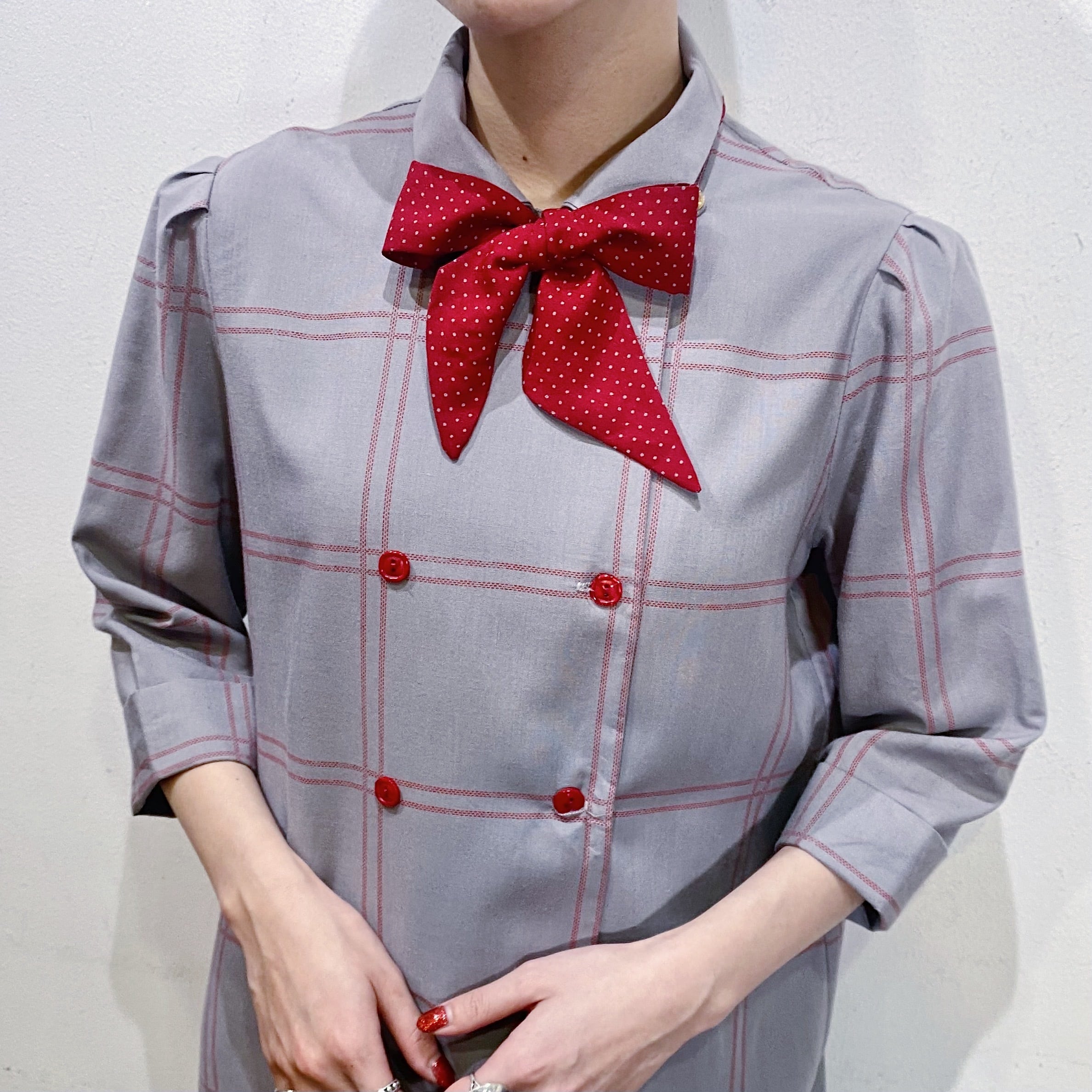 グレー×レッドのチェックの色合わせが可愛い、80年代のシャツワンピースです。