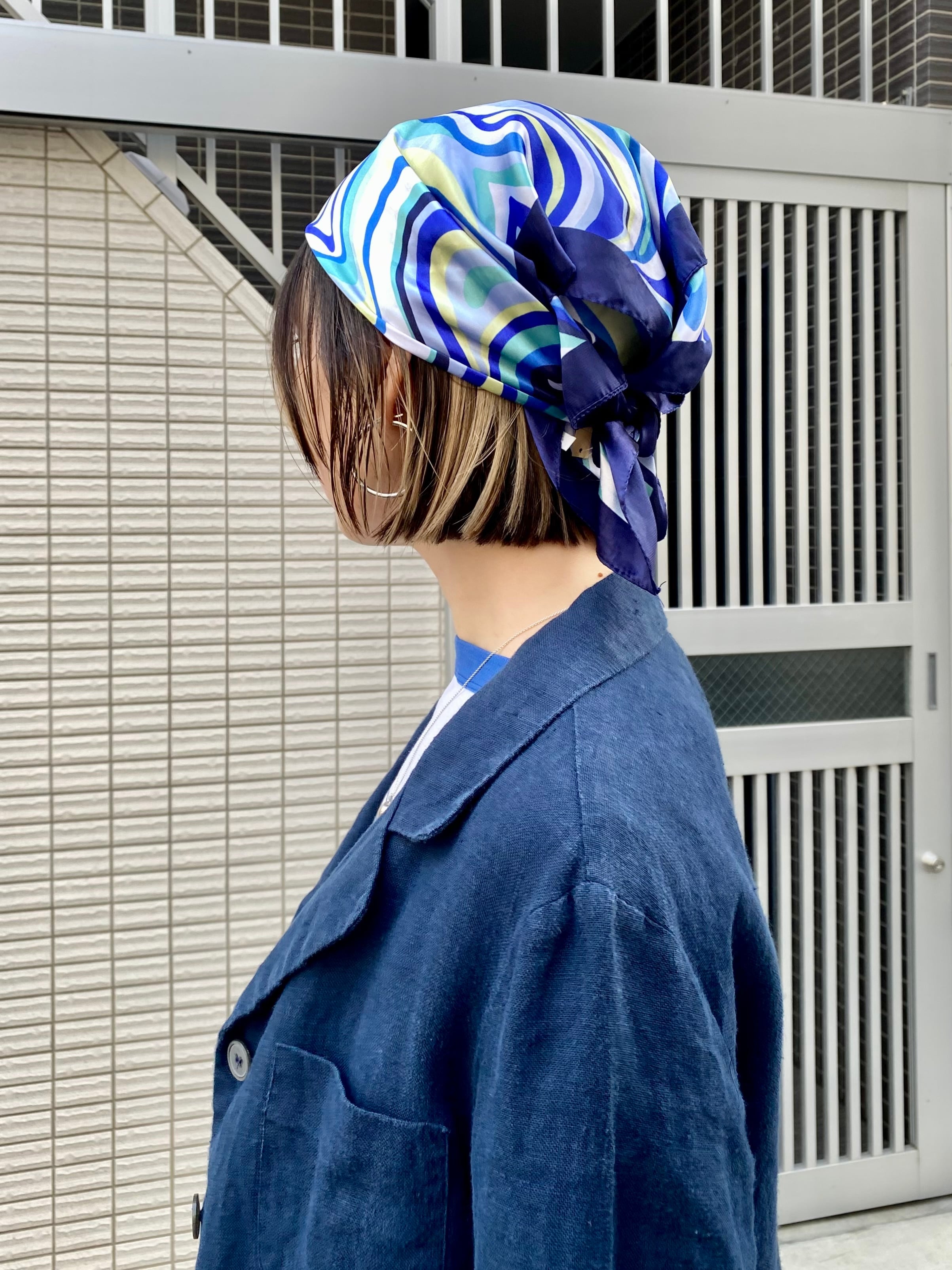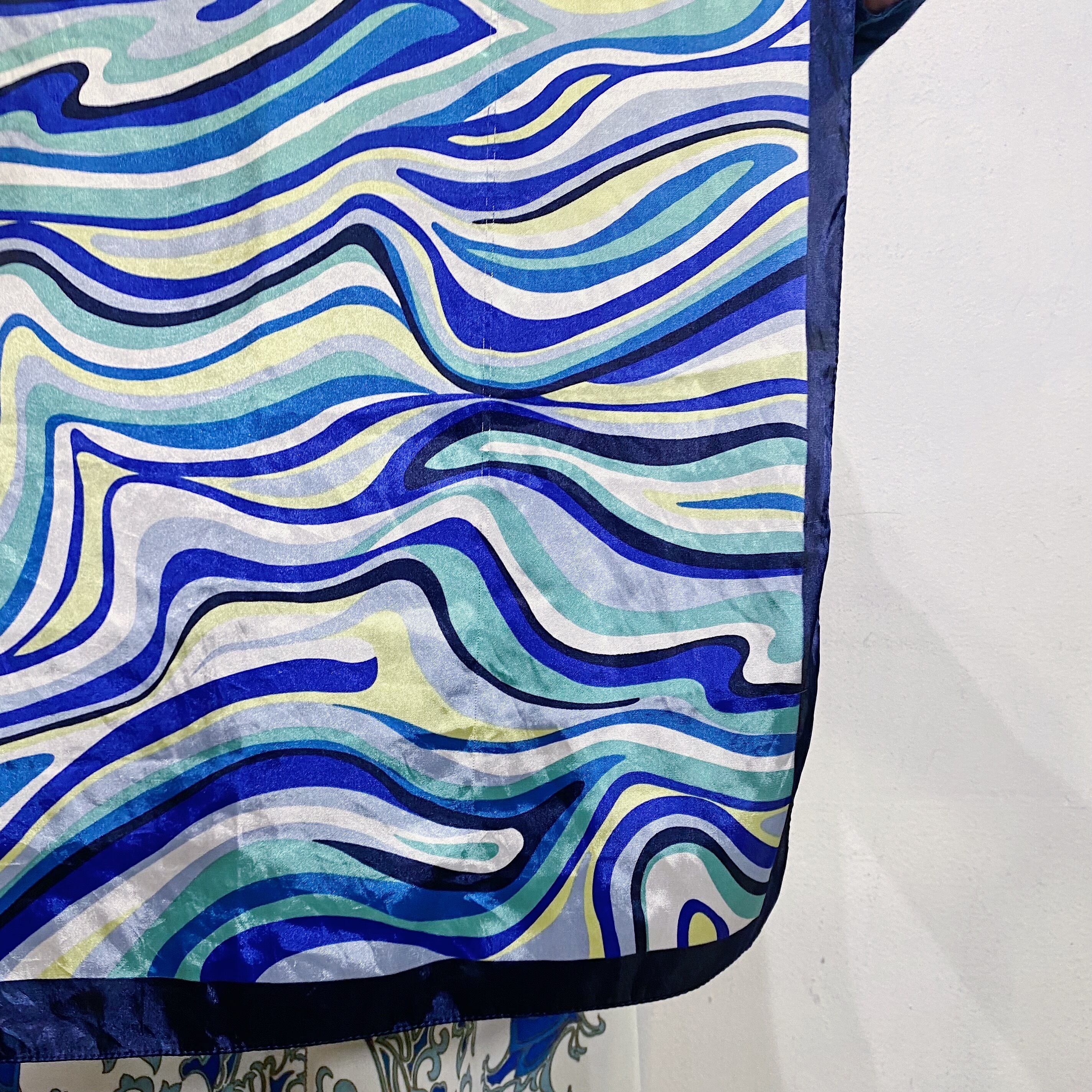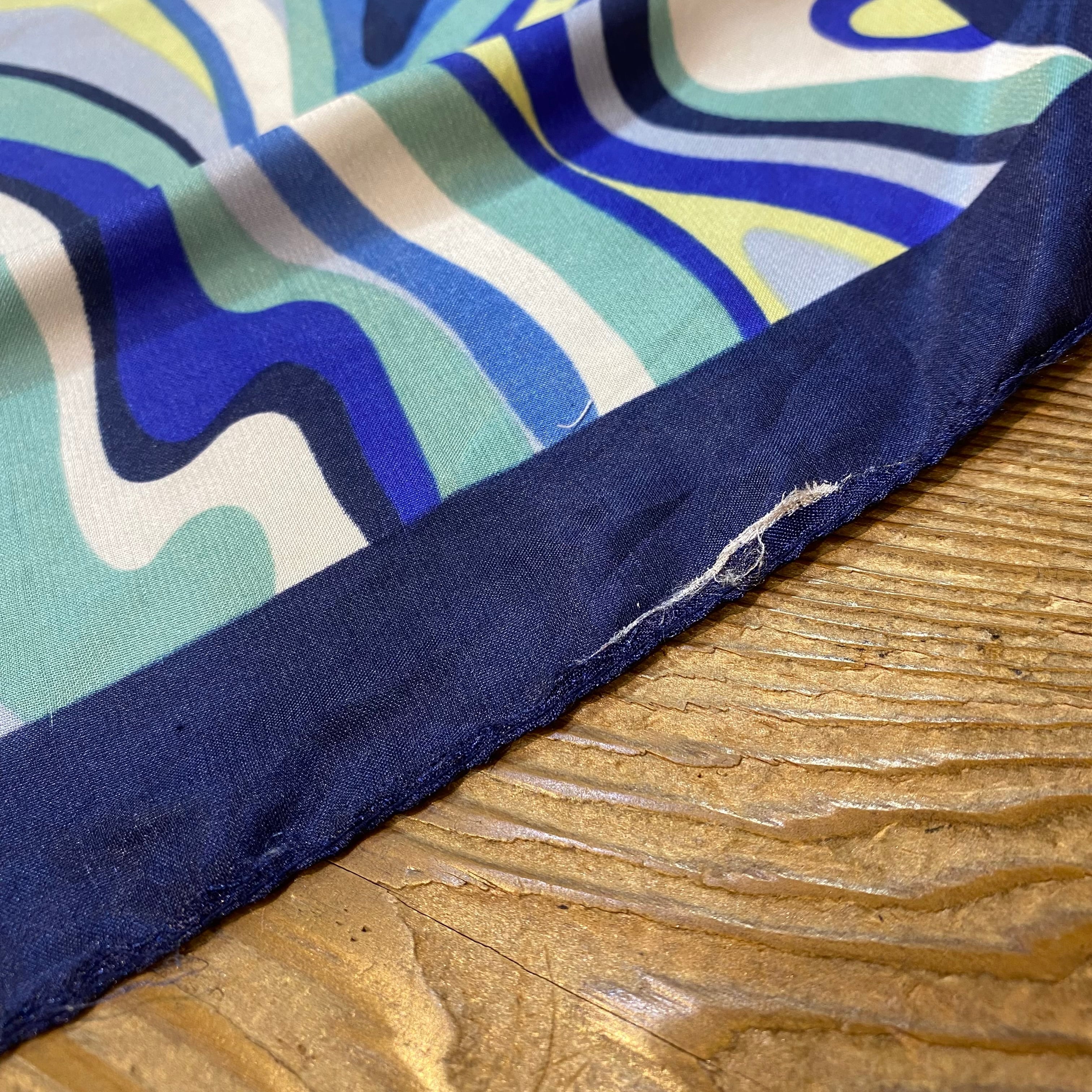 ブルーの色味が可愛い、サイケなプッチ風の柄が可愛い、スカーフです。