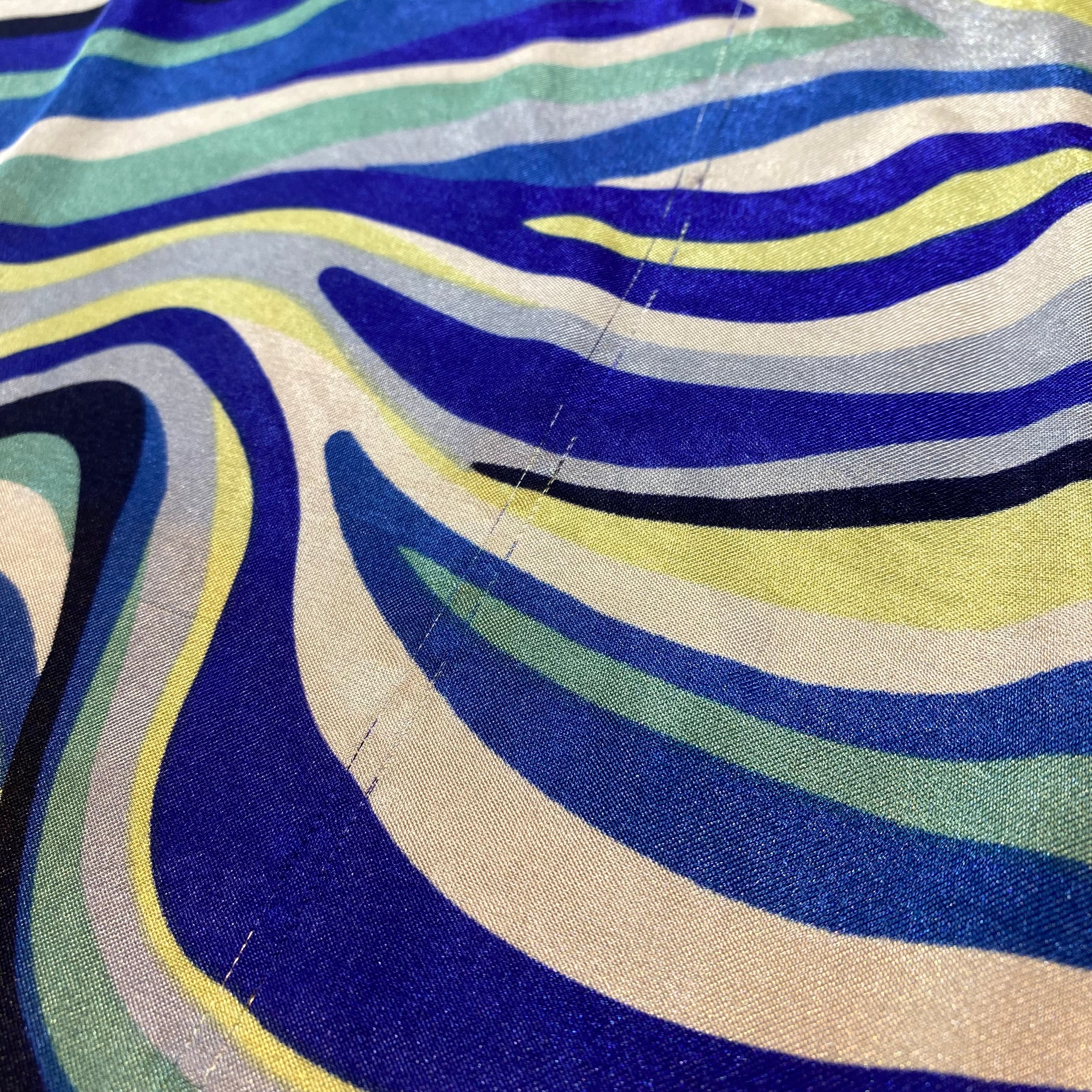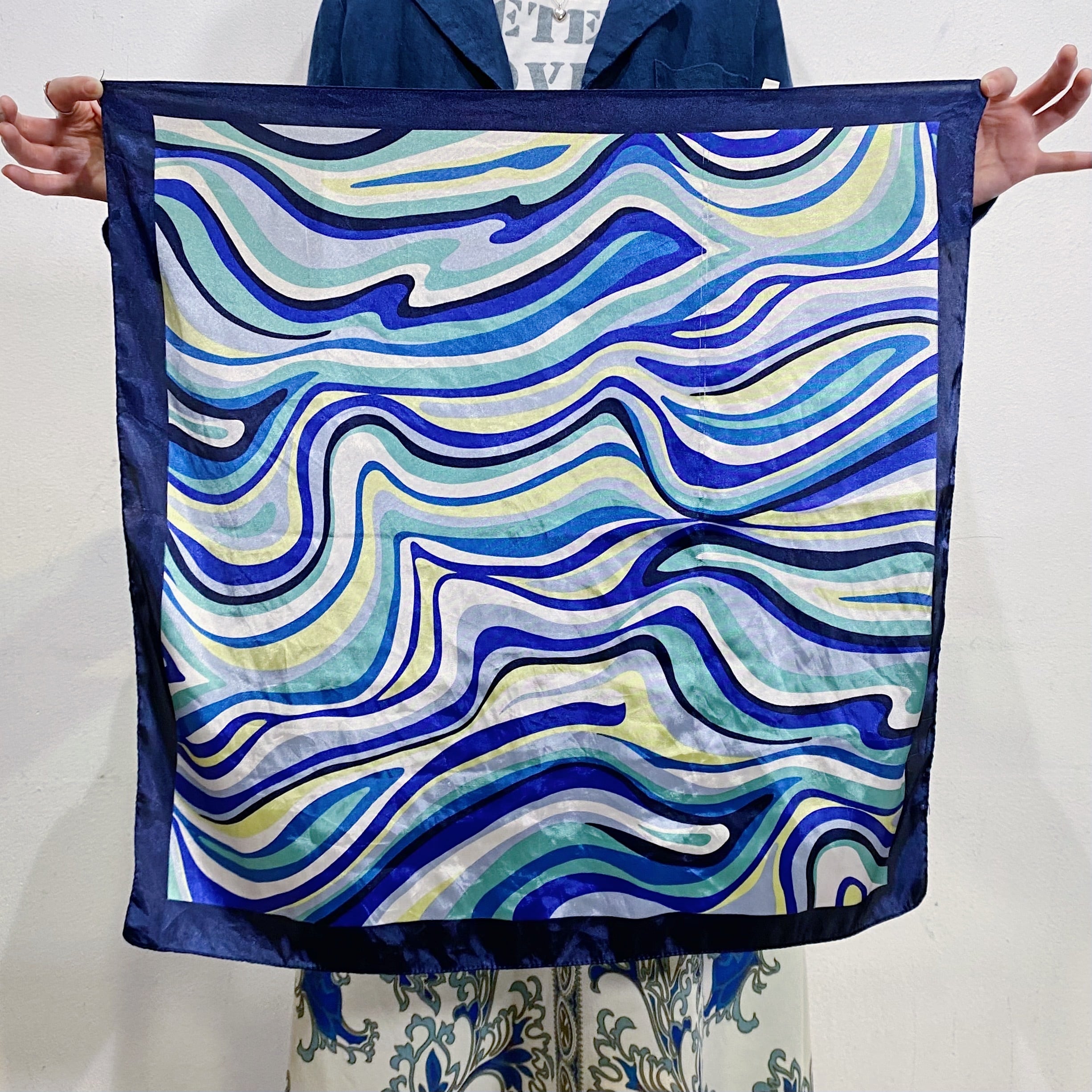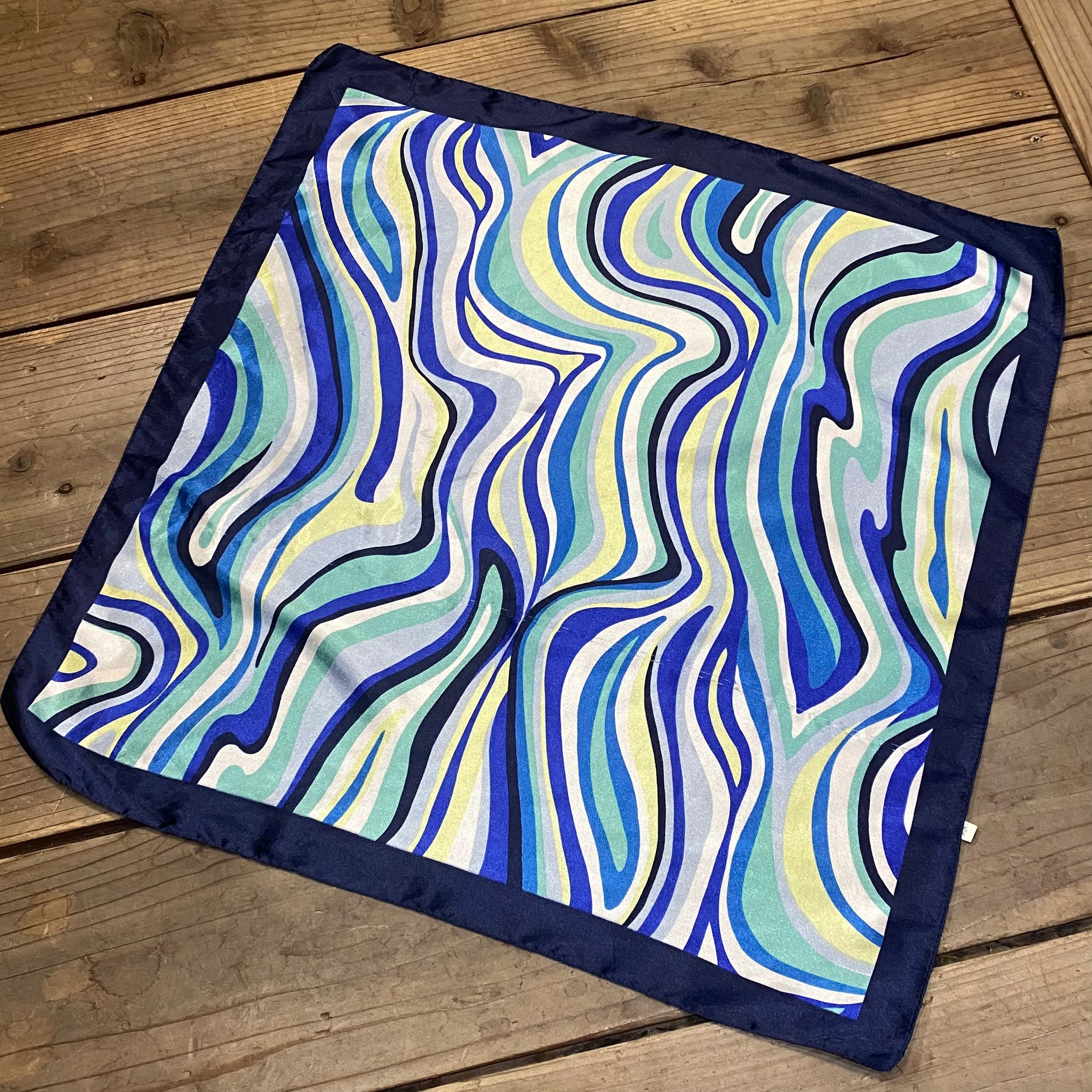 ブルーの色味が可愛い、サイケなプッチ風の柄が可愛い、スカーフです。
