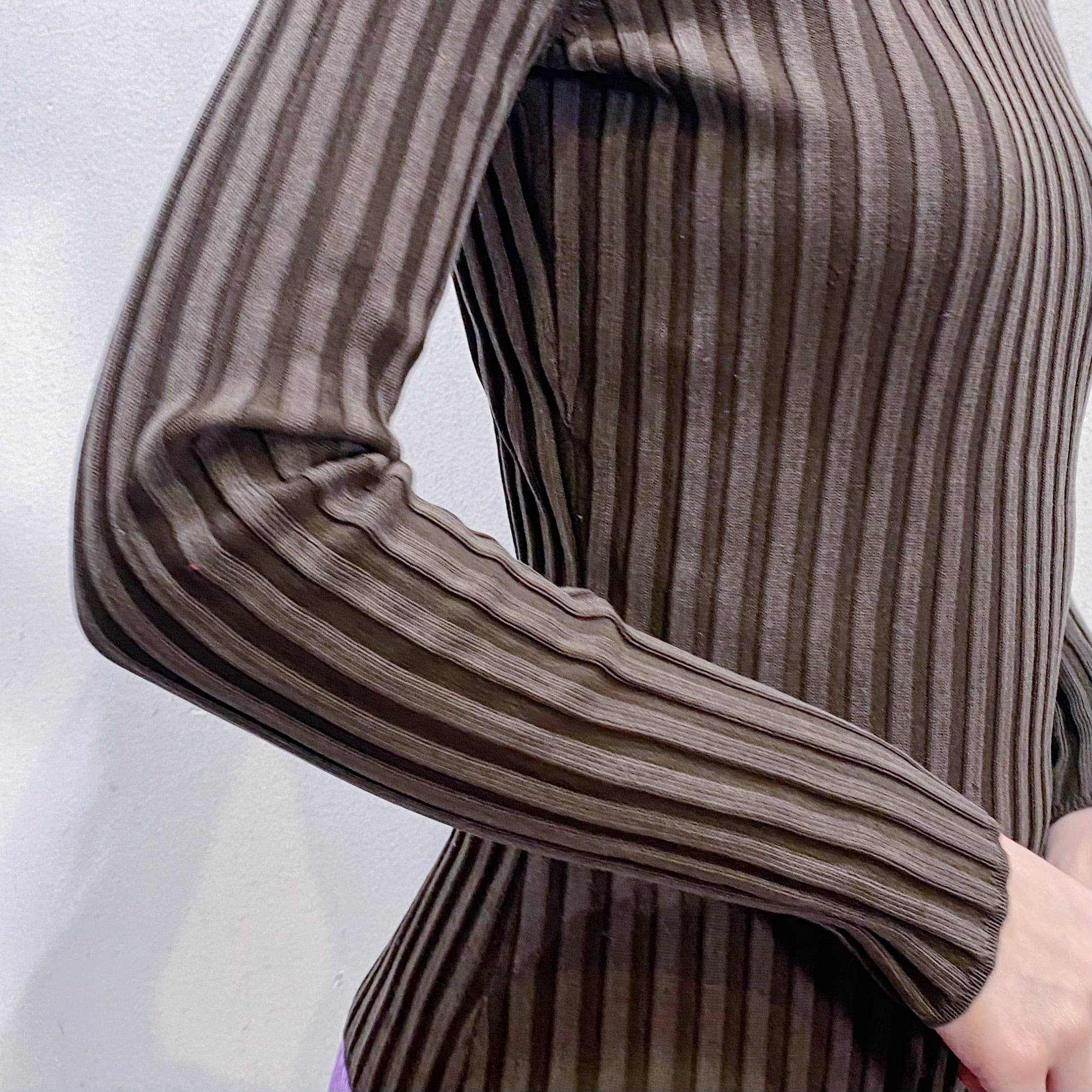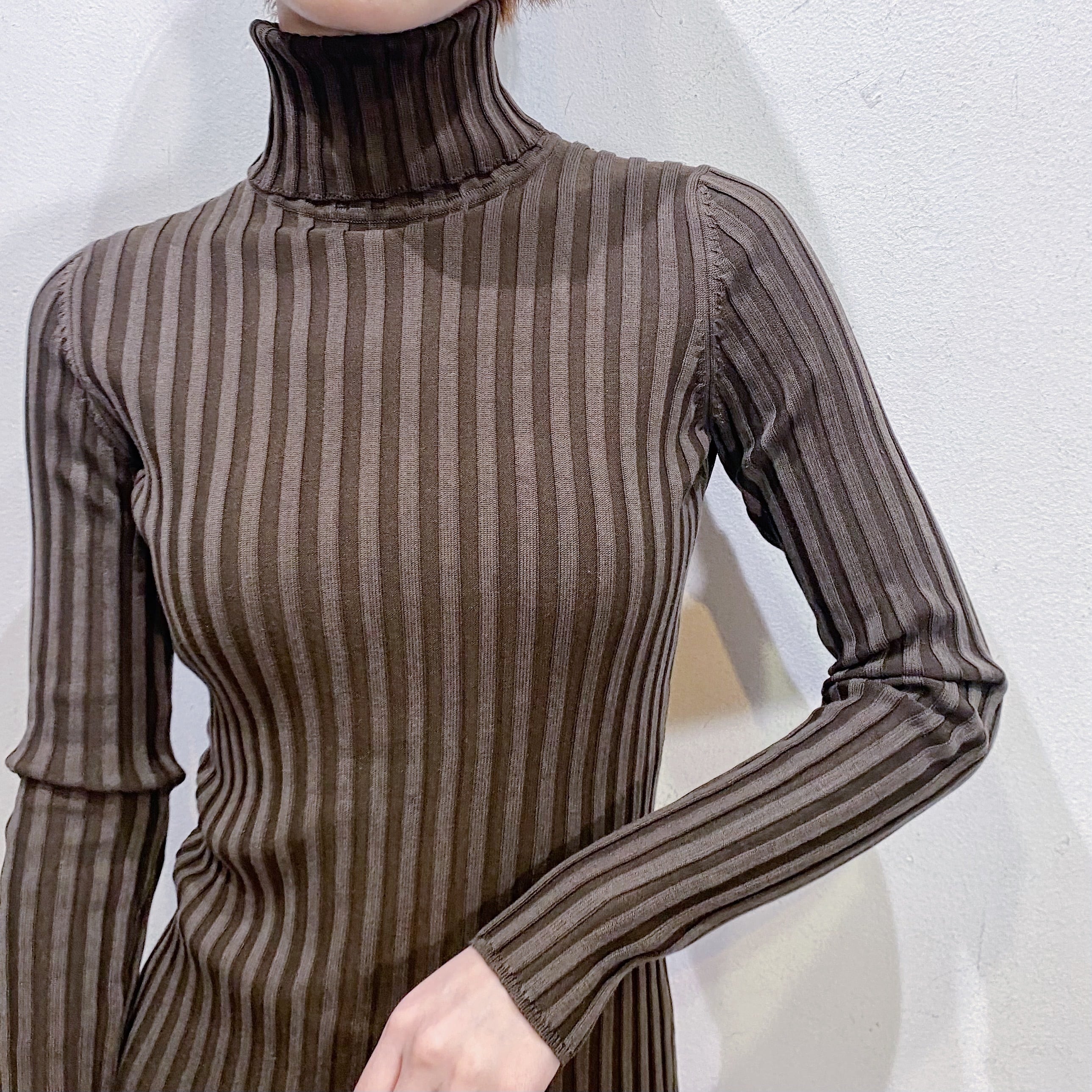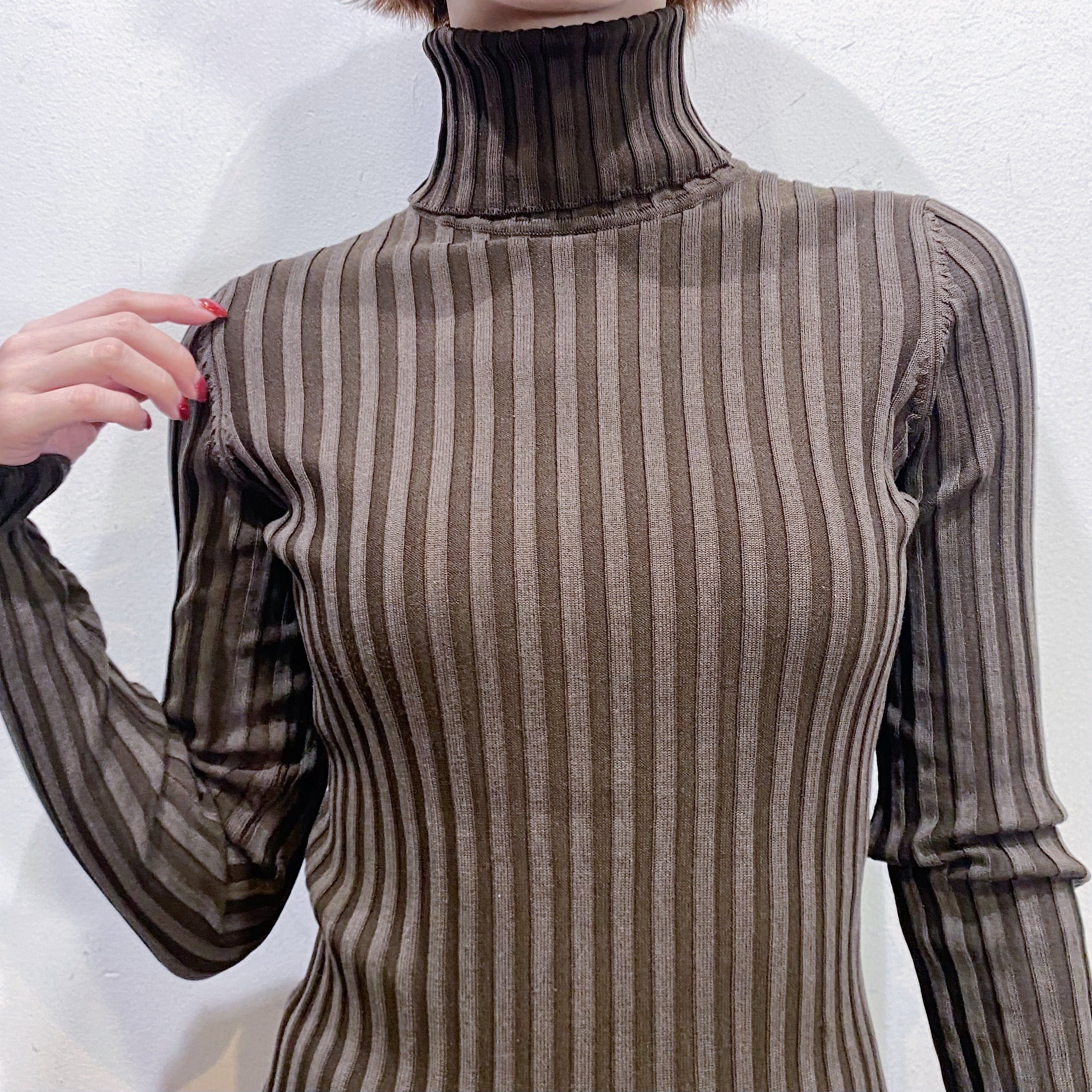 着回しにも使えますし、素材的にも幅広いシーズン着られるハイネックです。