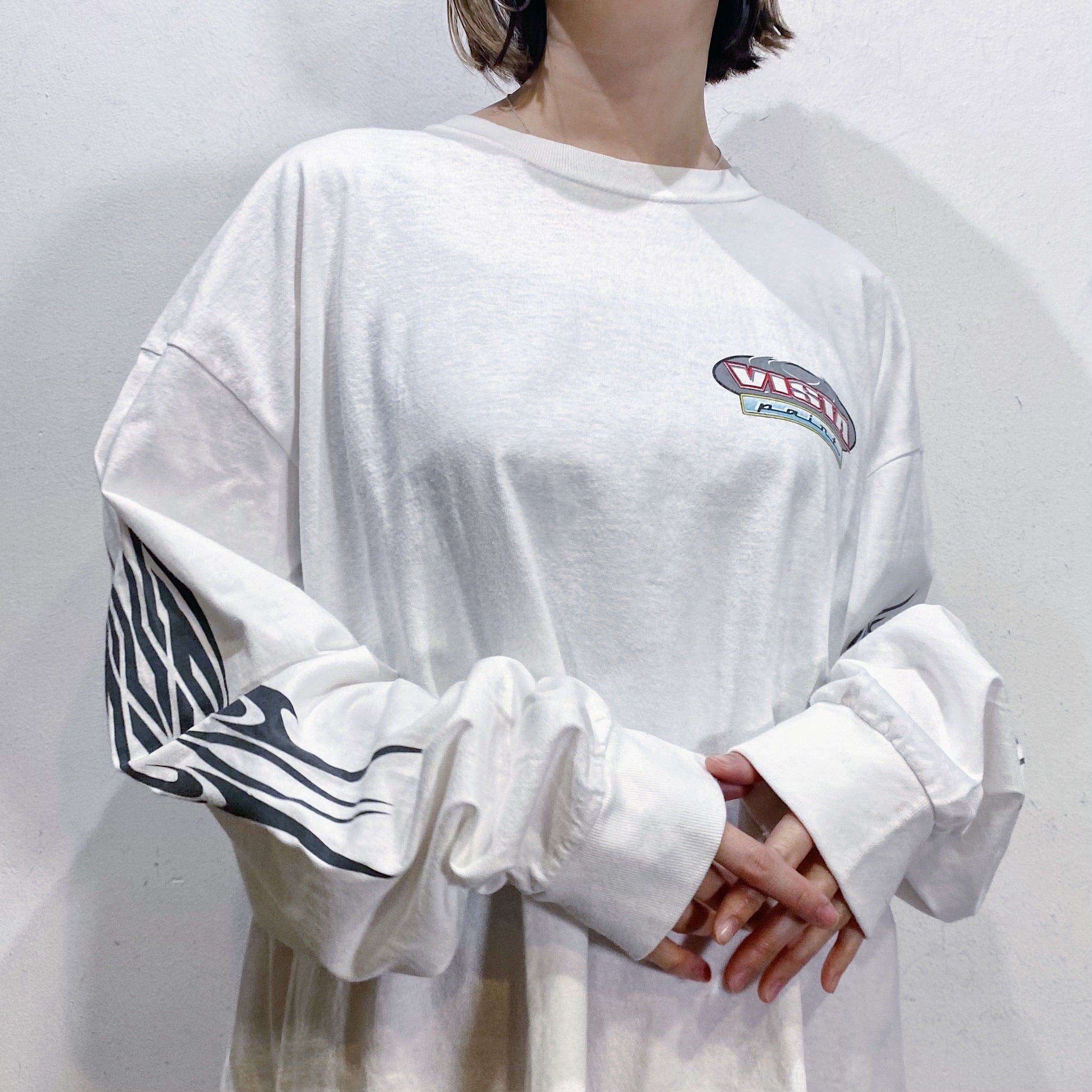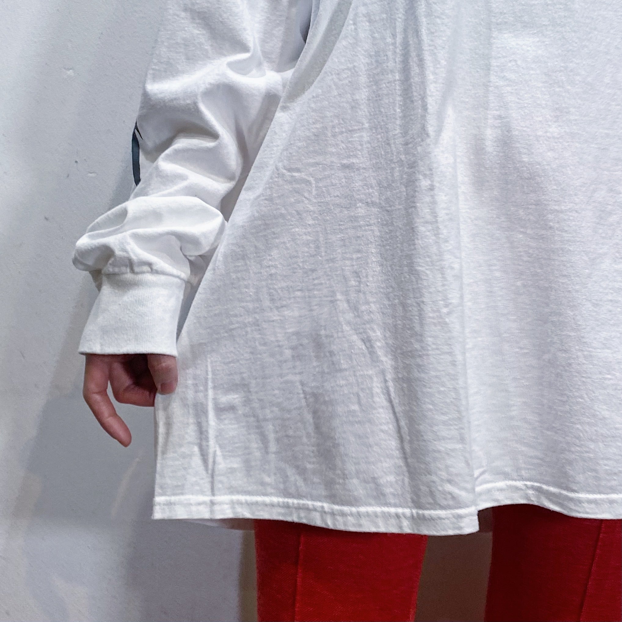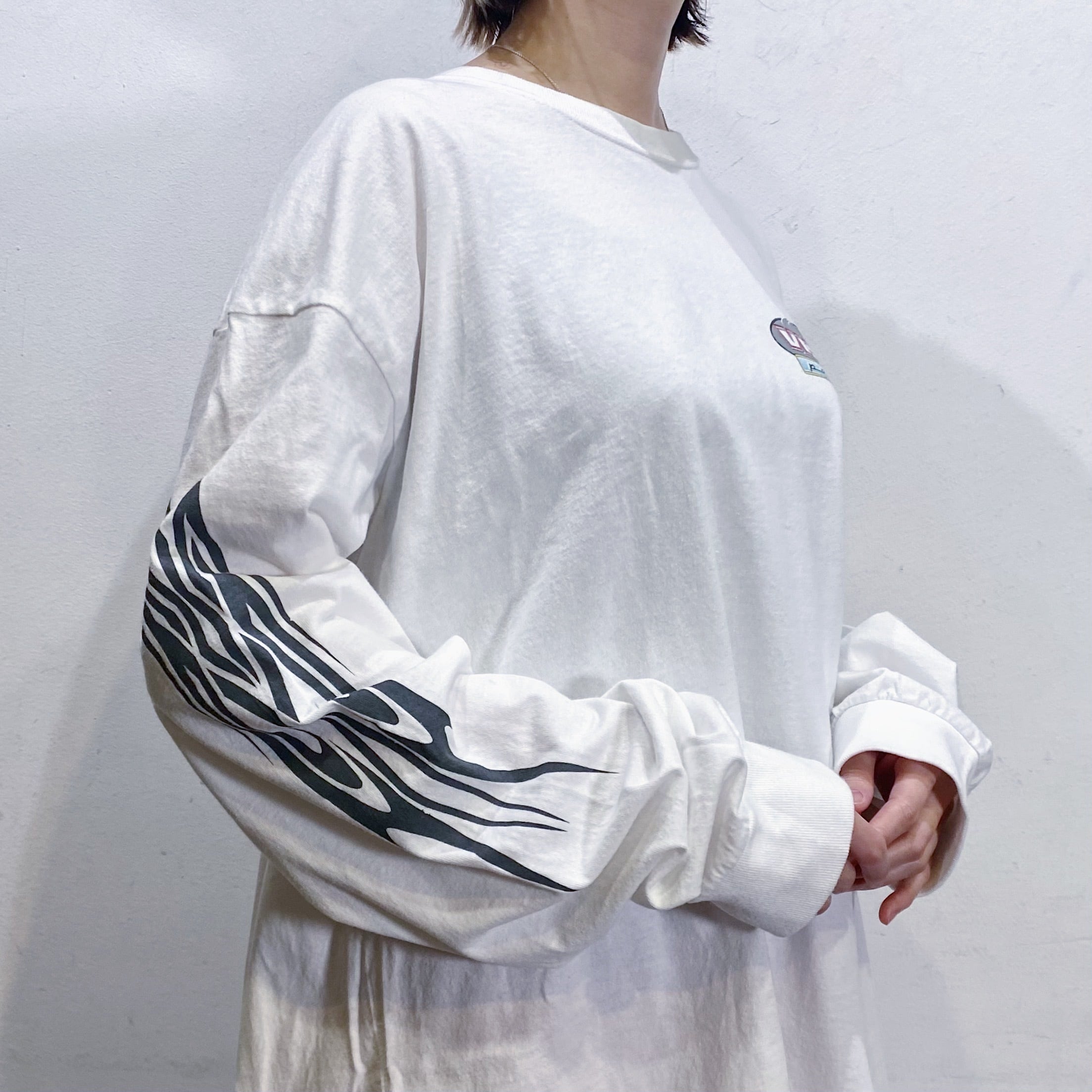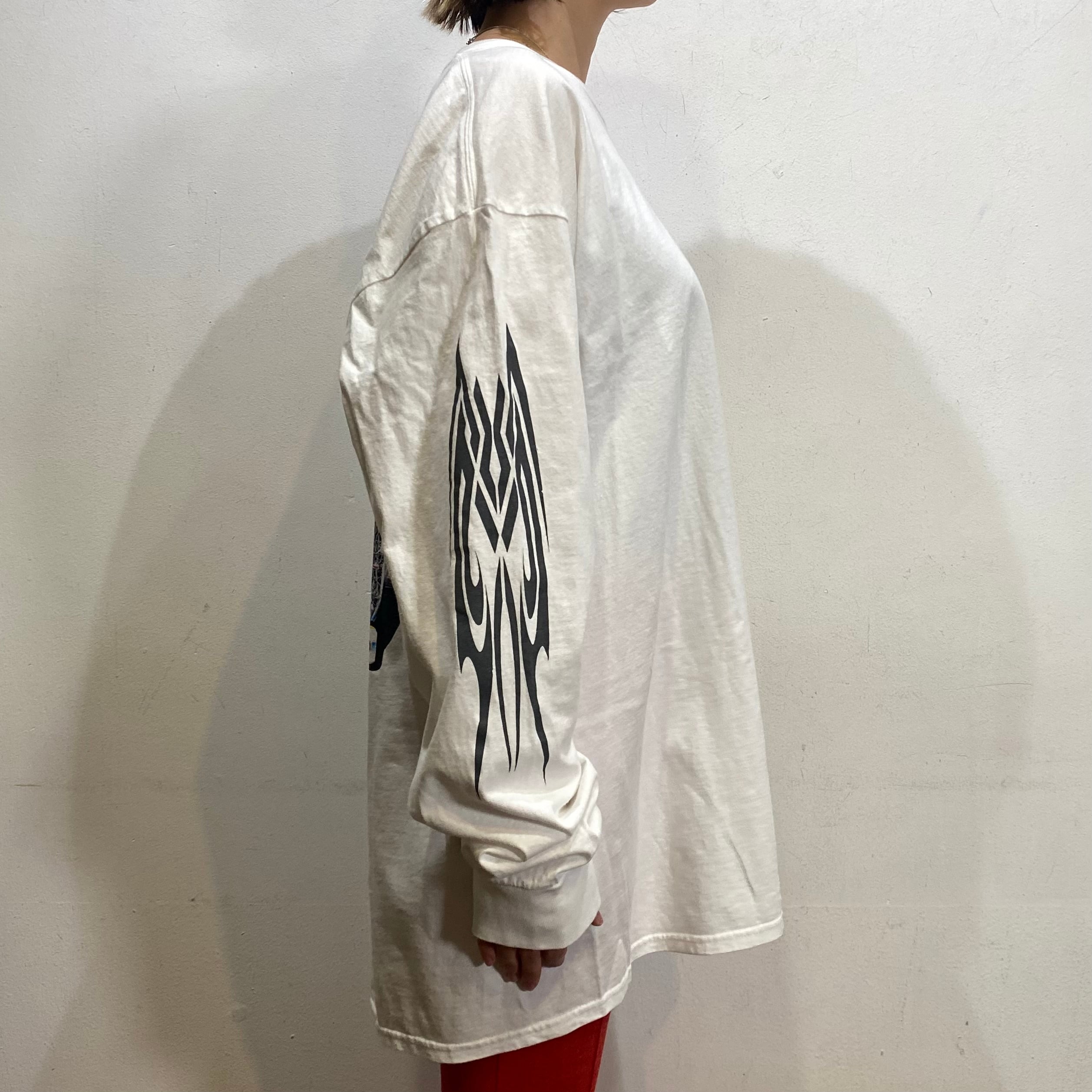 フロントだけでなく、バックや袖にまでプリントが入ったロンTです。