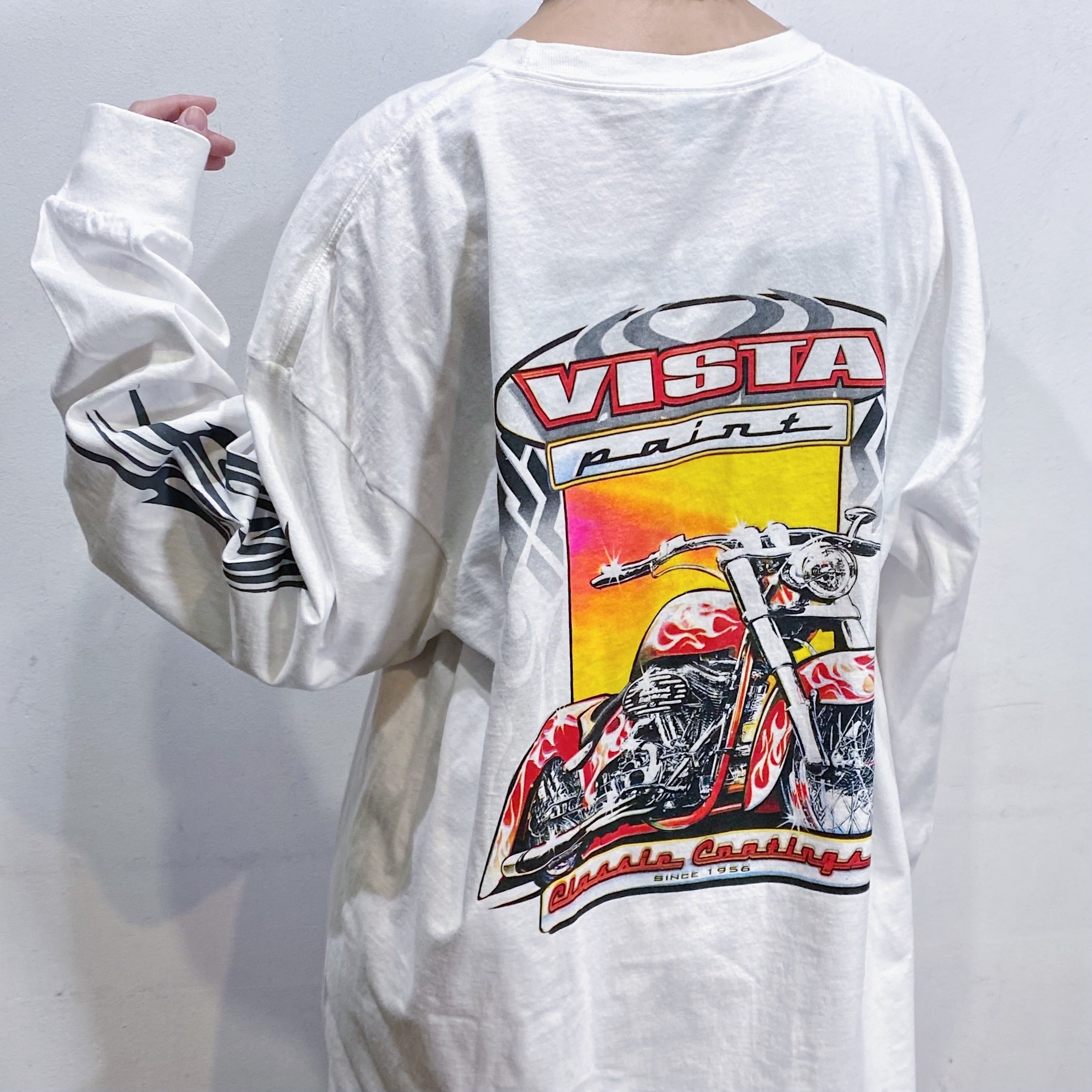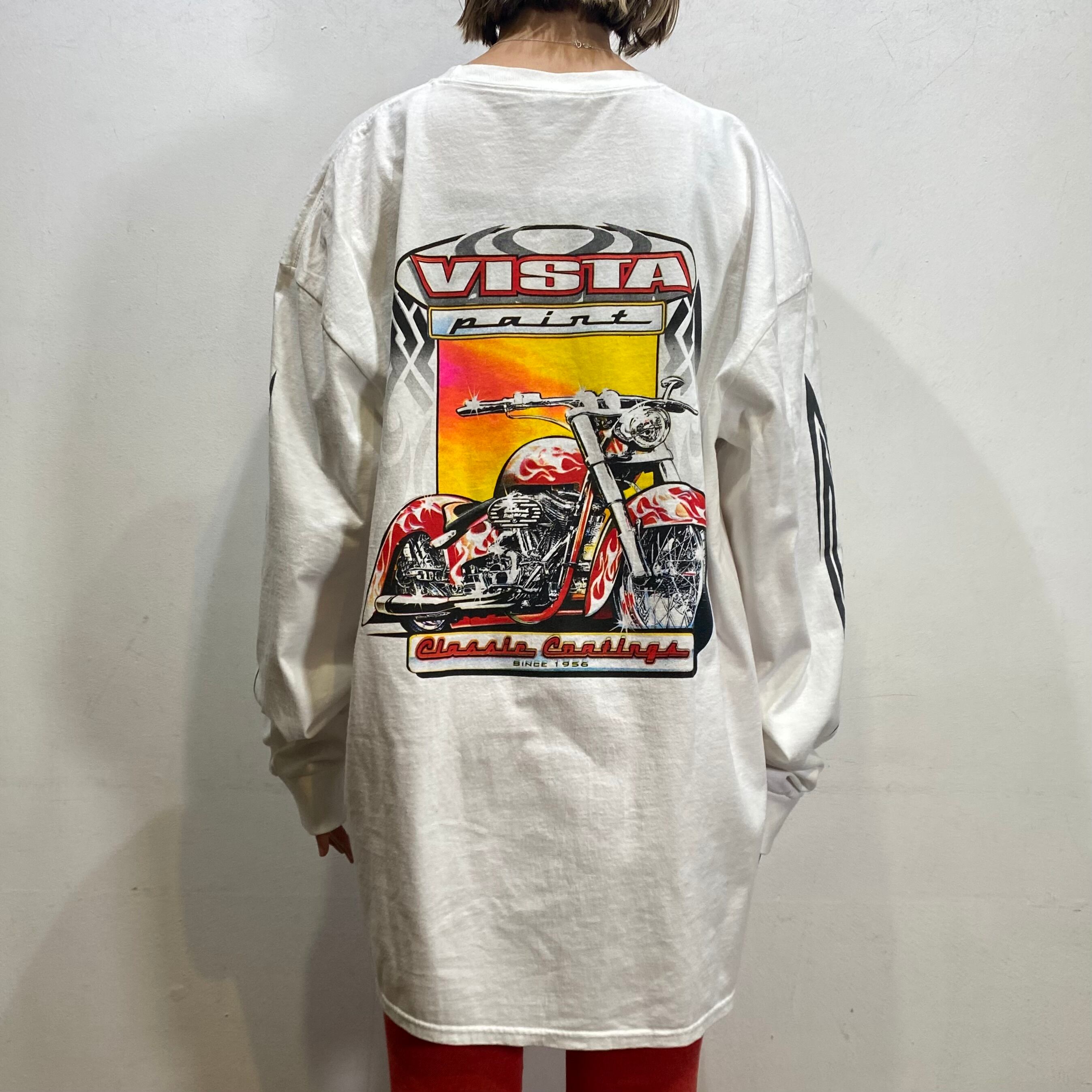 少し厳ついバイクプリントですが、vintegeアイテムと合わせればmixスタイルが楽しめるおすすめの一枚。
